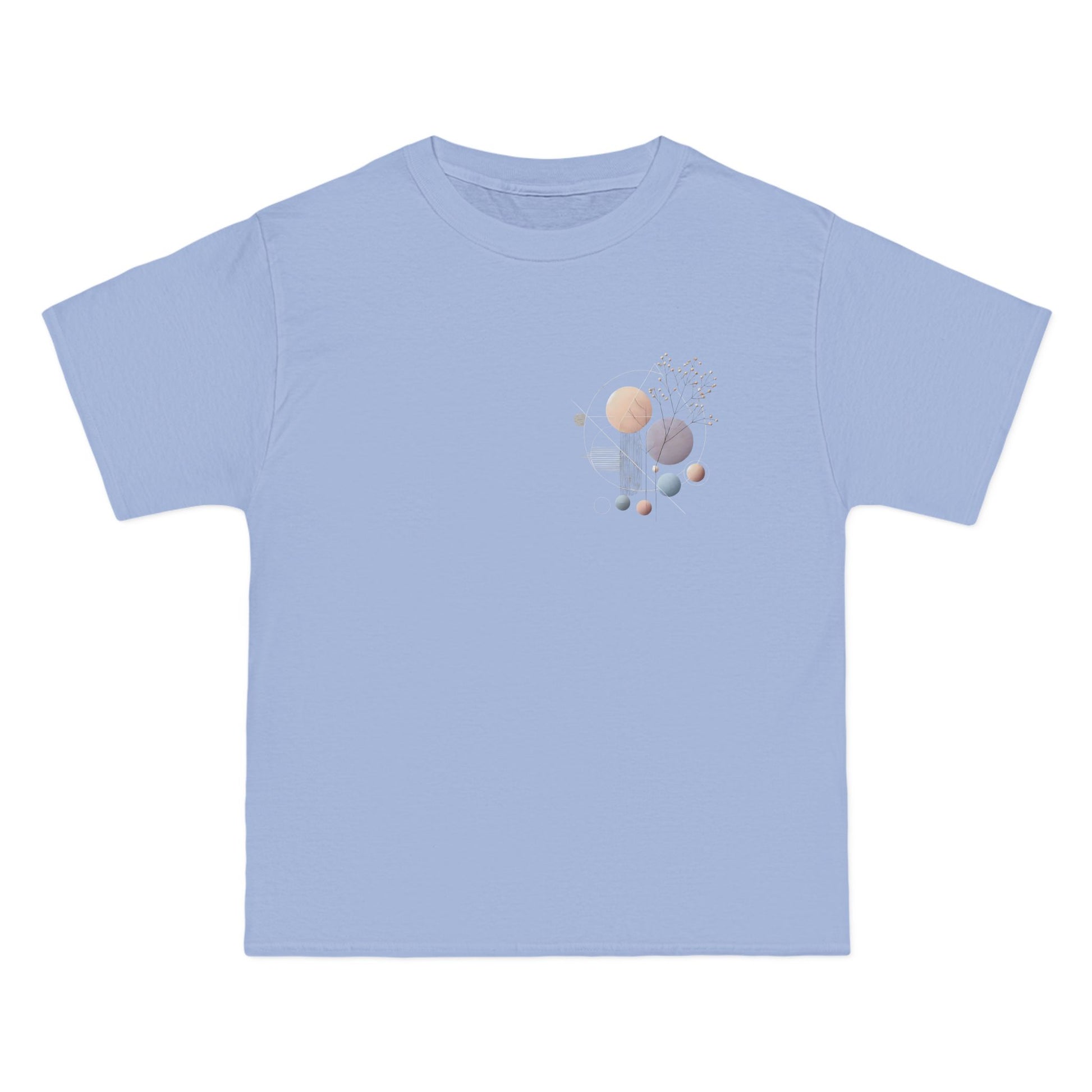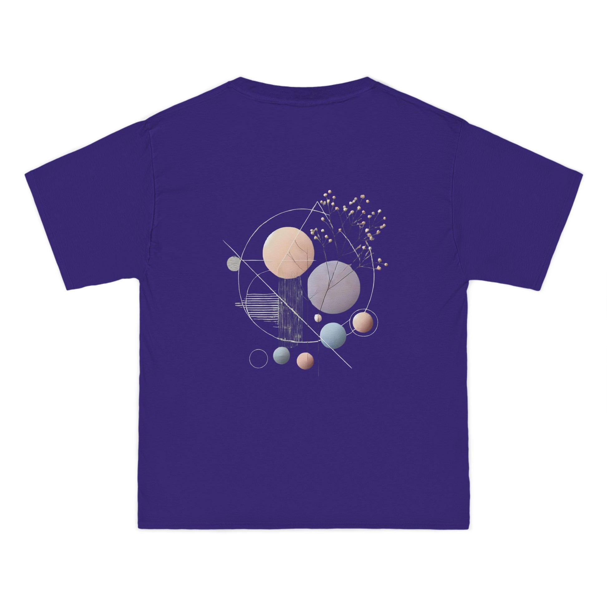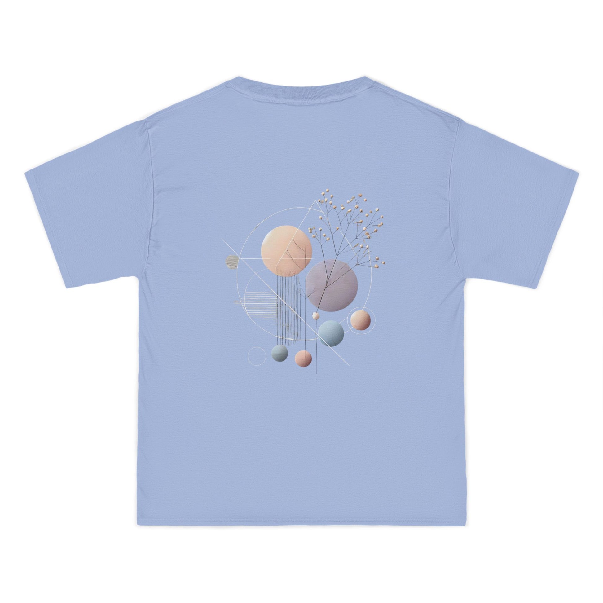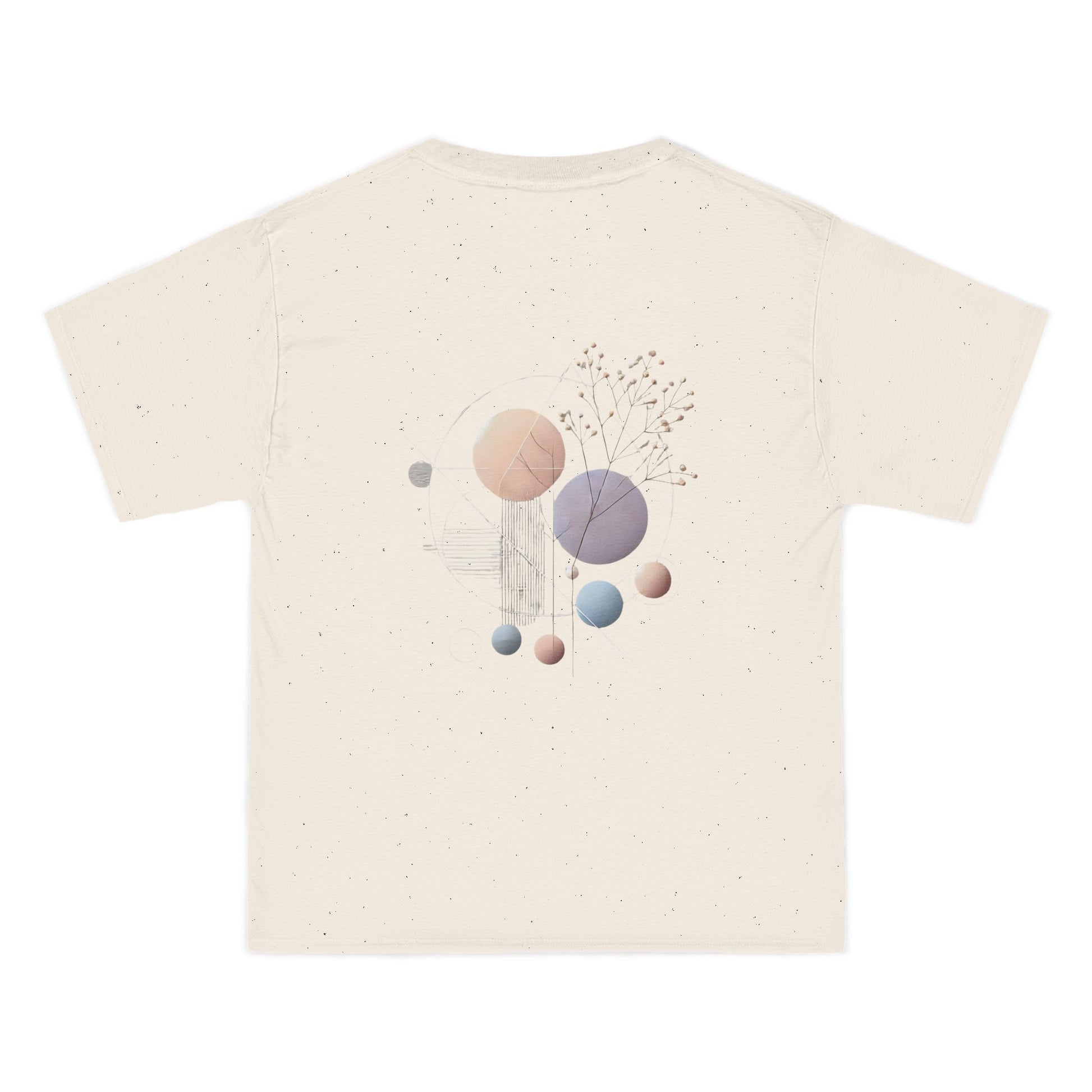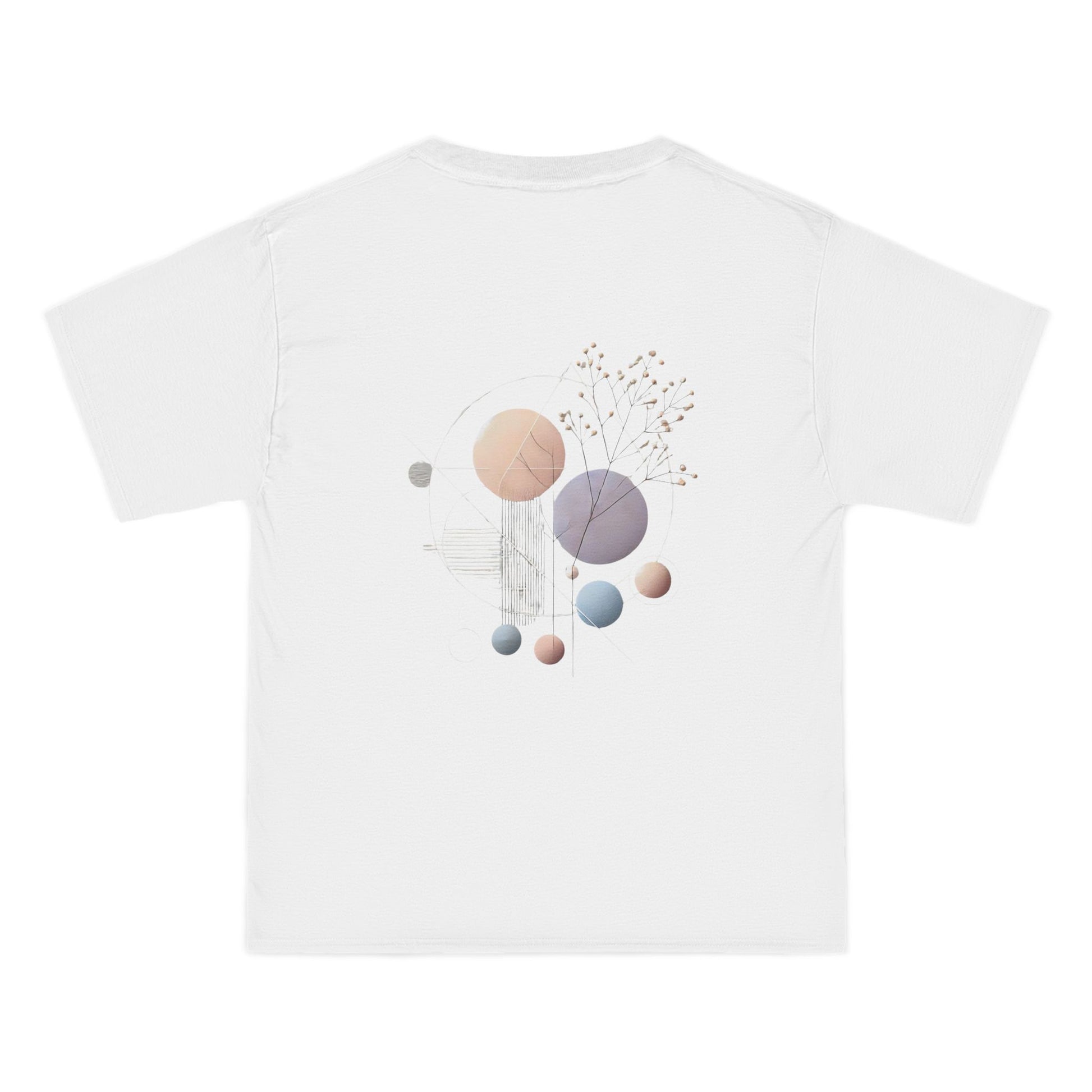 Made from pure cotton, with blended options for added comfort, this tee isn't just a statement, it's a sensory experience. Feel the difference with our double-needle stitching, sturdy shoulder taping, and lay-flat collar, designed to stay true wash after wash. Our specially spun fibers create a durable, print-friendly surface that showcases the soft pastel hues and sharp geometric lines in all their glory.