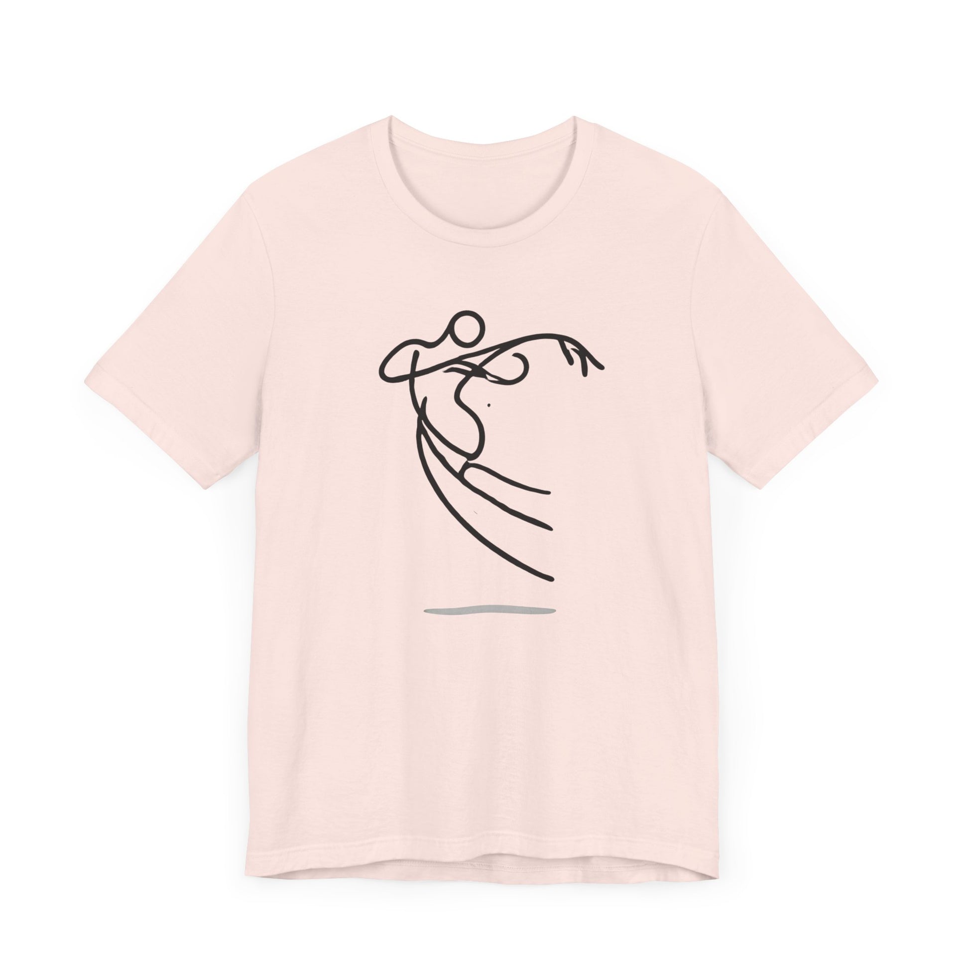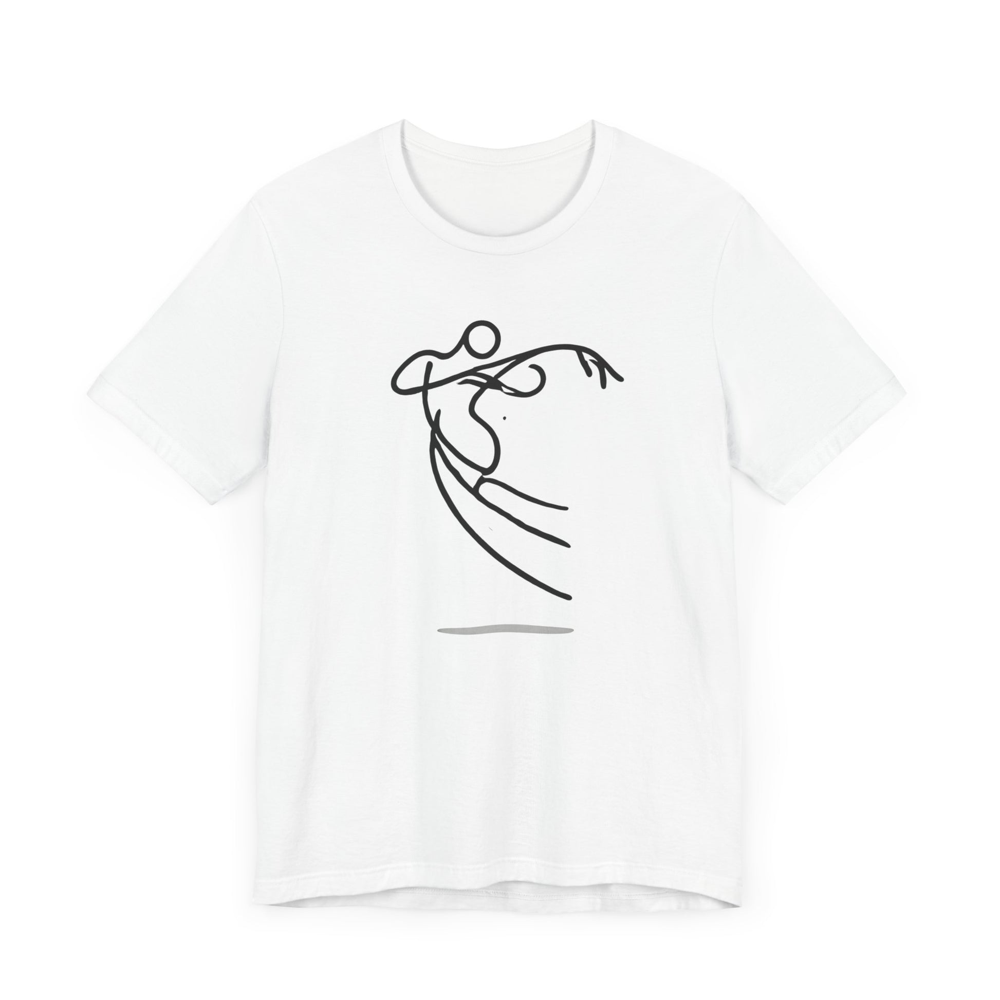 Introducing our Abstract Human Figure: Minimalist Line Art. Crafted with care and brought to life by the power of AI, this intriguing piece invites you to wear your world on your sleeve. Stylized in motion, the human figure captured within this design is a testament to the fluidity of life and the beauty of simplicity. Unleash your creativity and express yourself with this wearable art.