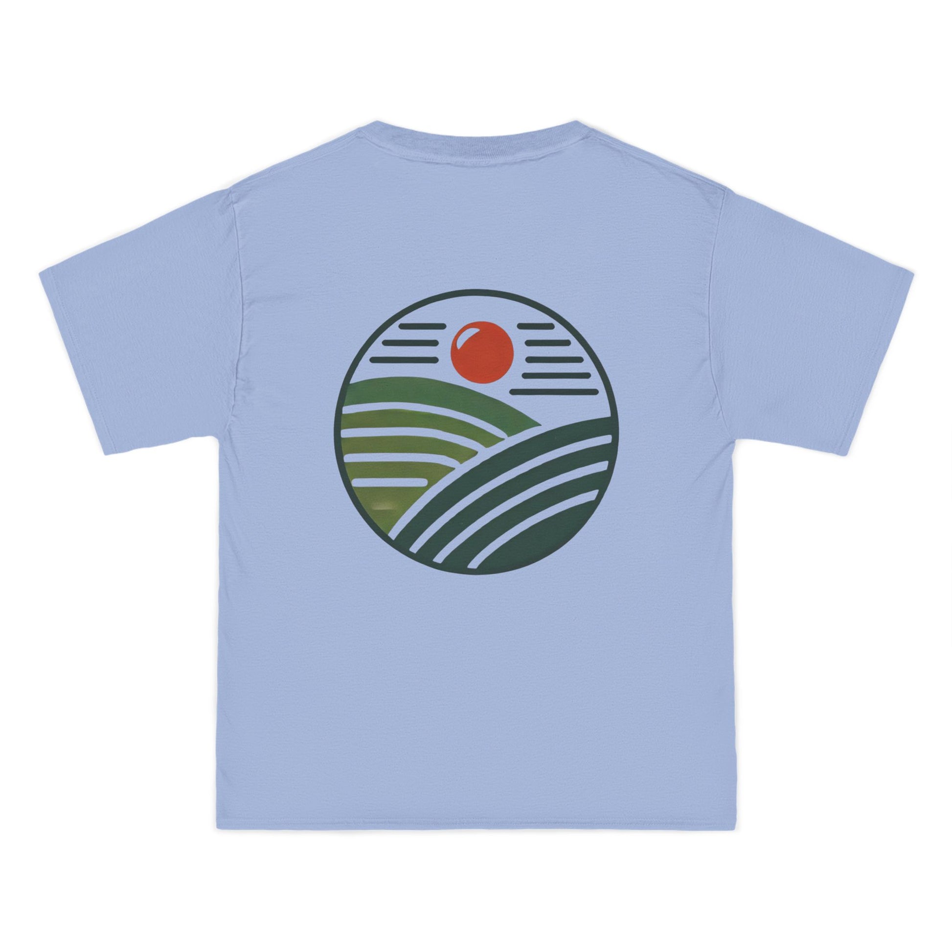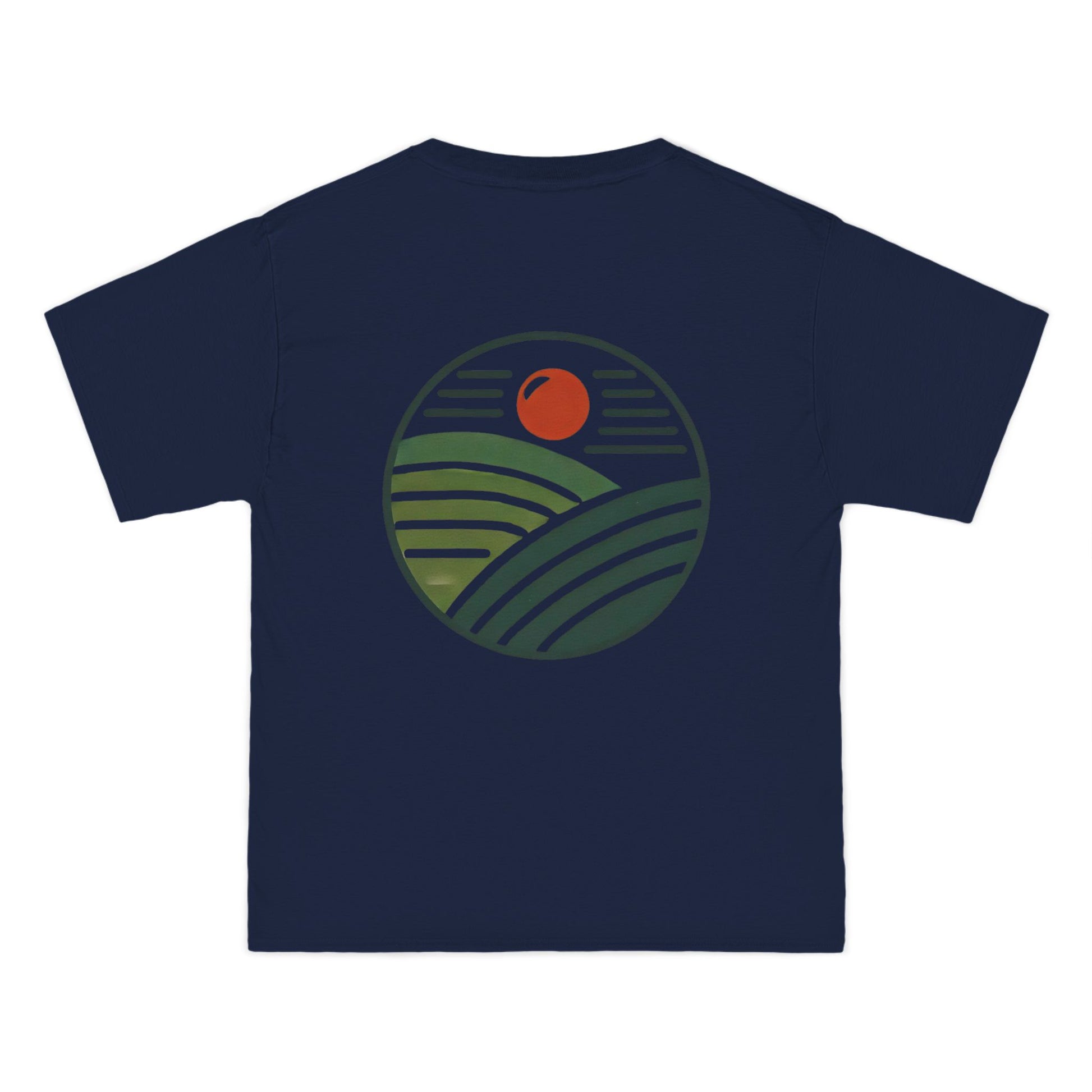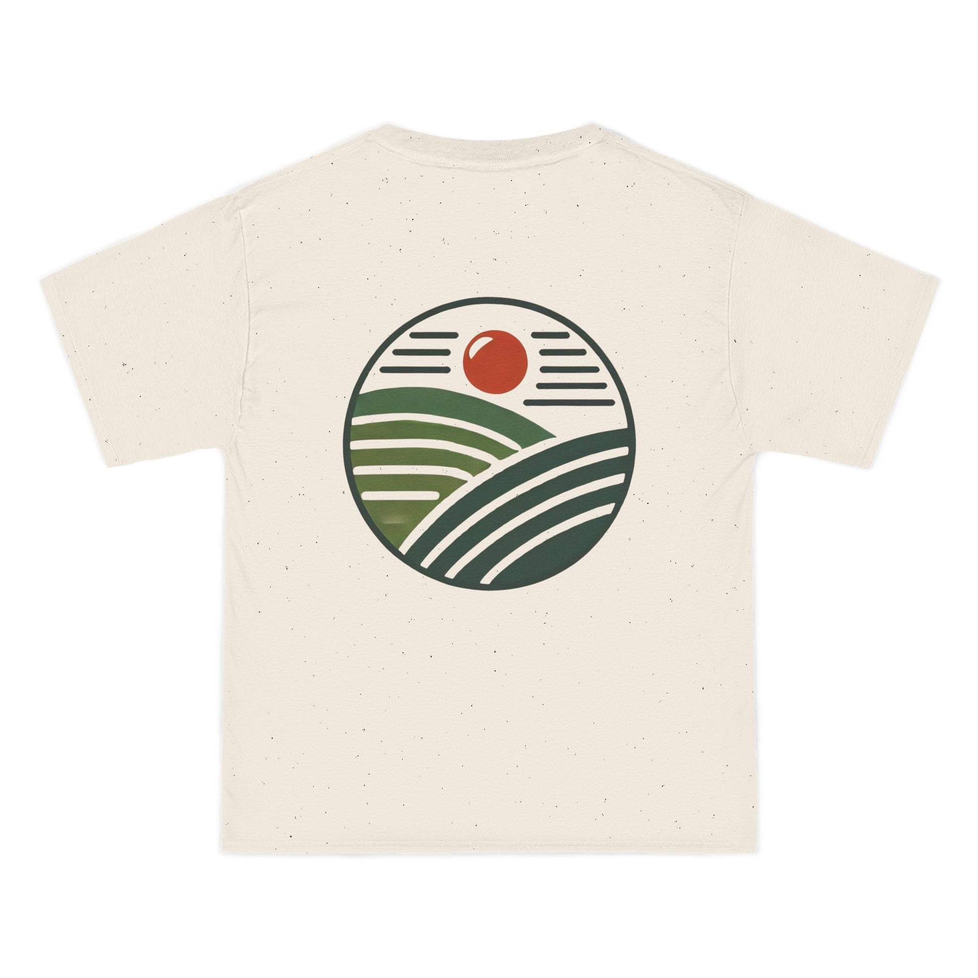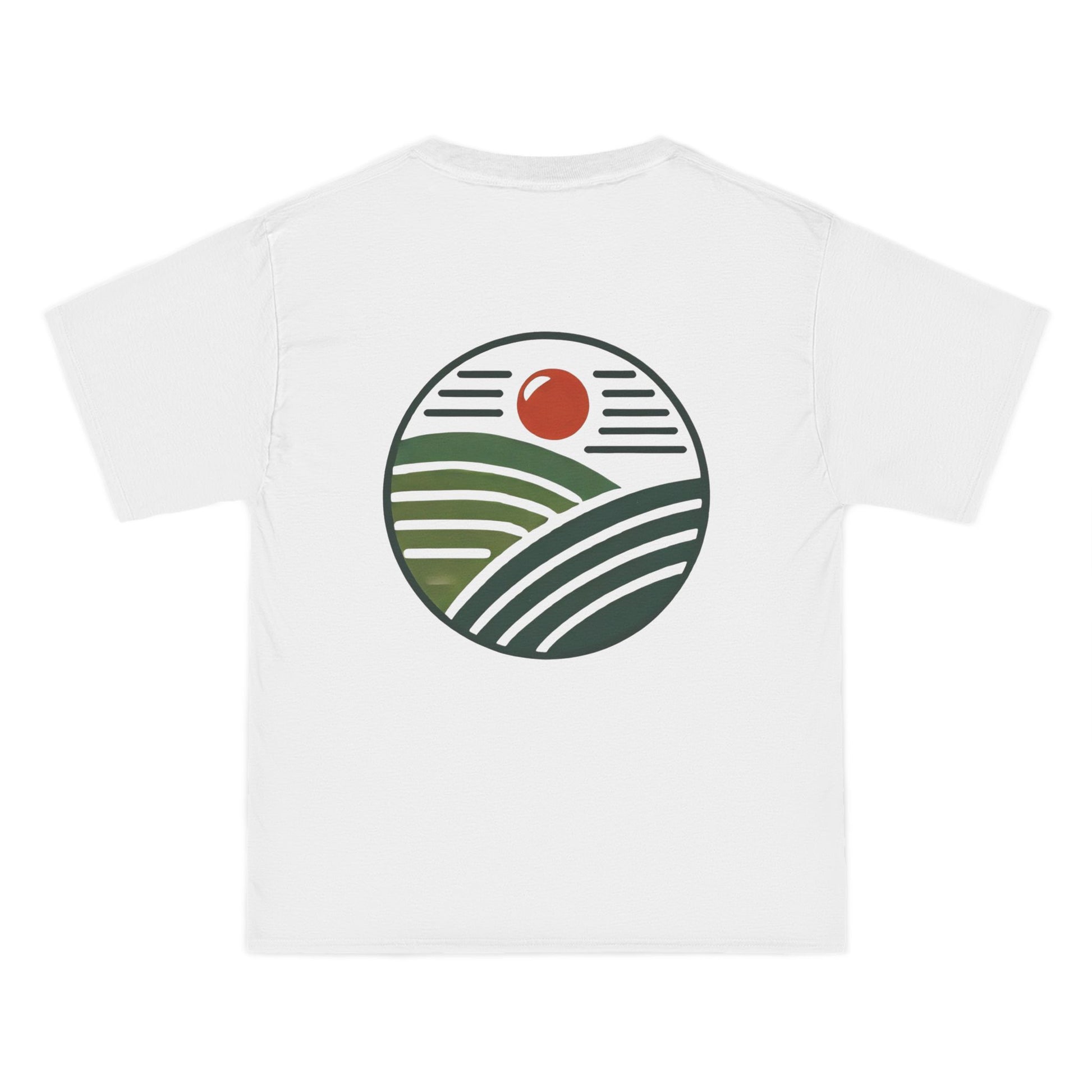 Discover the Abstract Landscape: Floral Orange Vibe tee from Whatever Clothing. This shirt is more than just fabric stitched together; it's your canvas to 'Wear Your World.' Our design, inspired by rolling green hills under a radiant orange sunburst, is a nod to the retro, yet bursting with modern minimalistic charm. It's wearable art, ready to absorb your life's stories.
