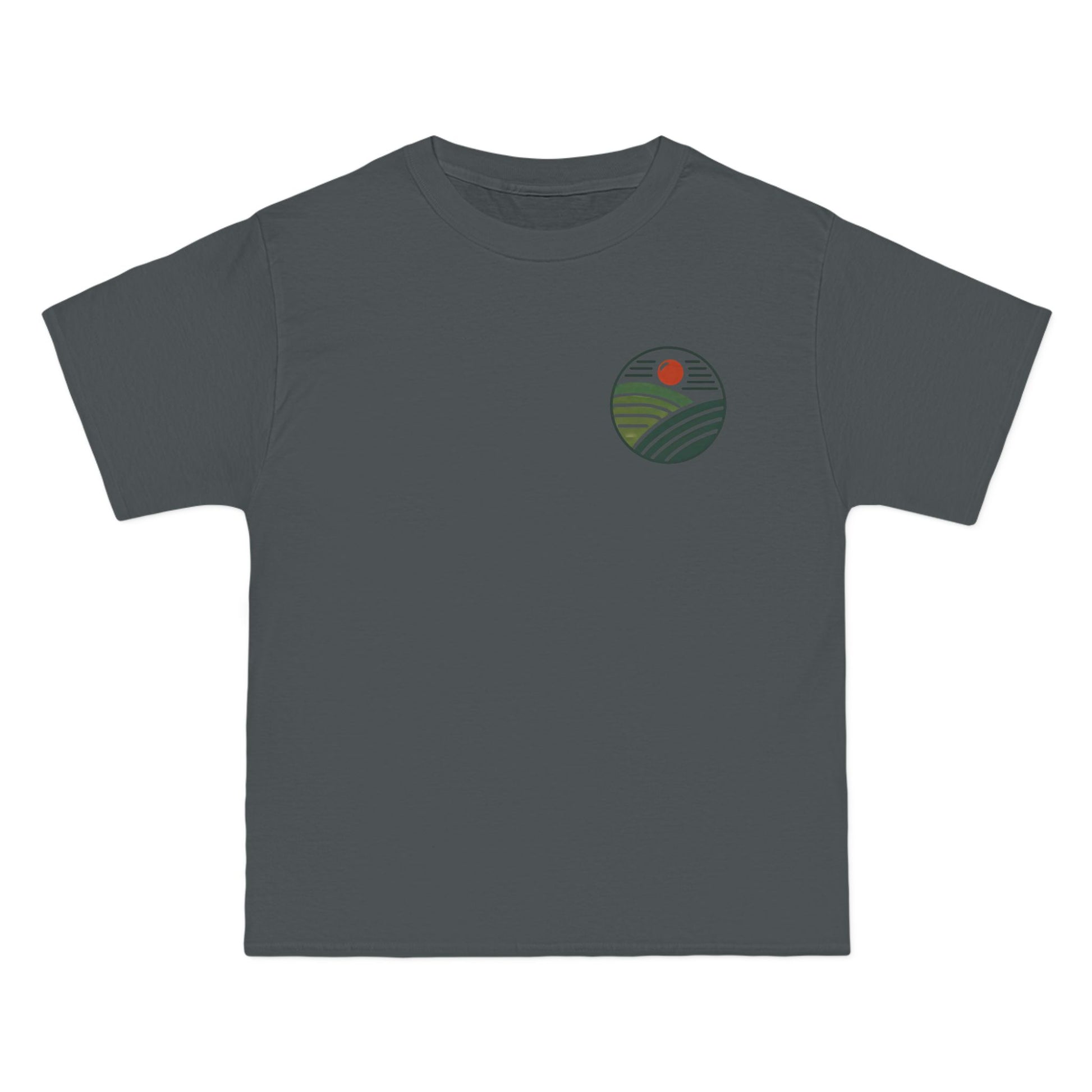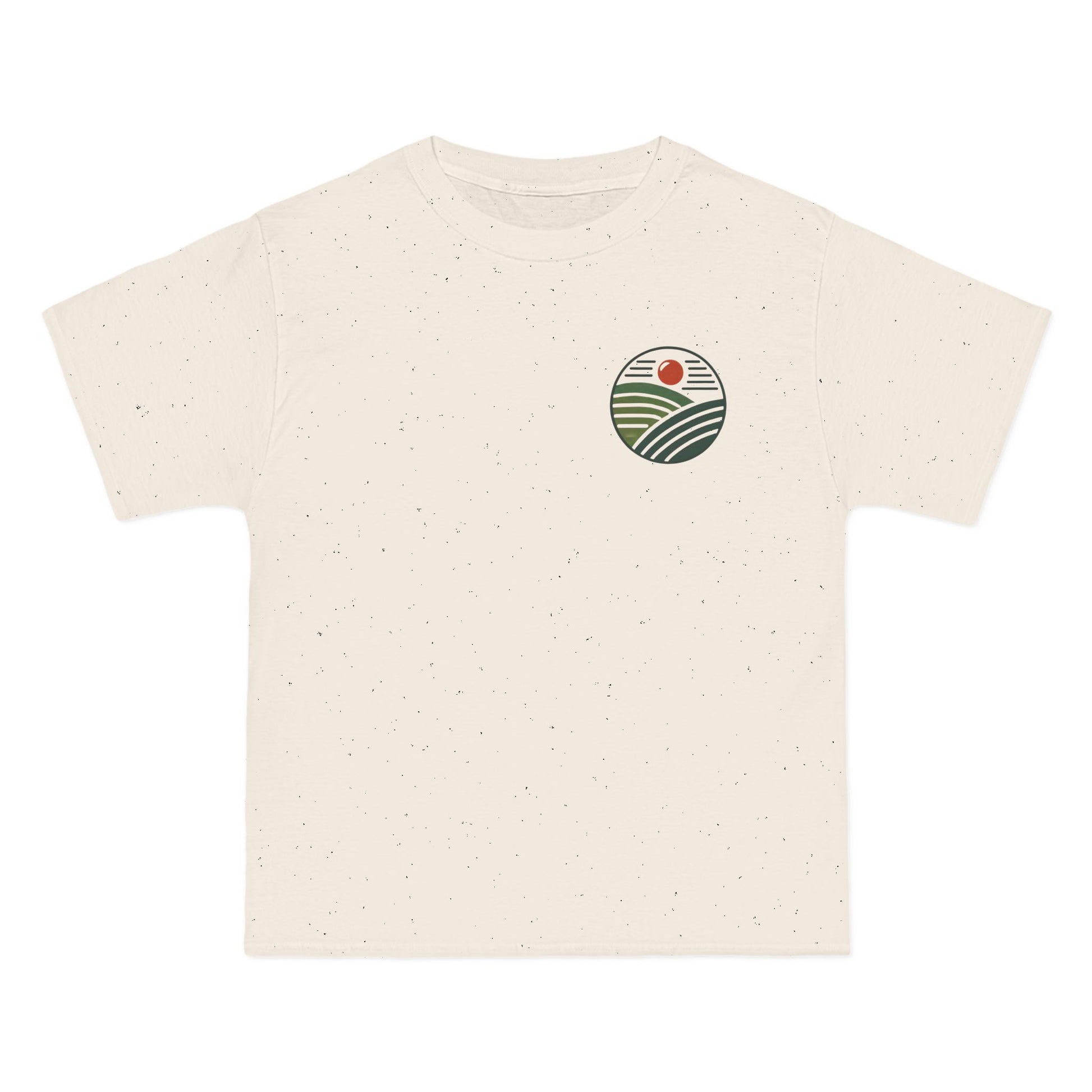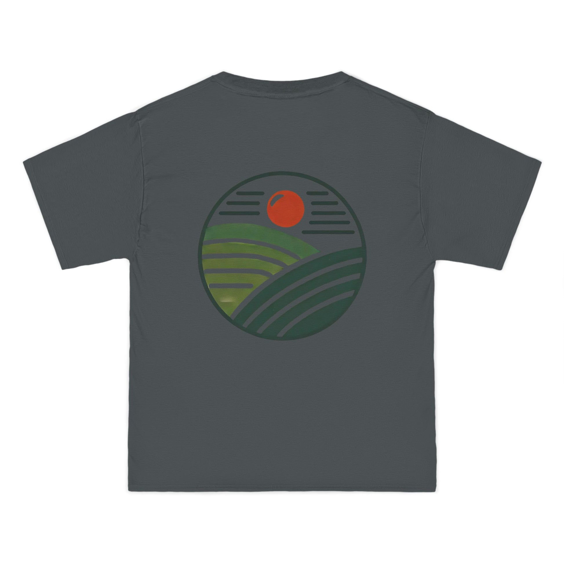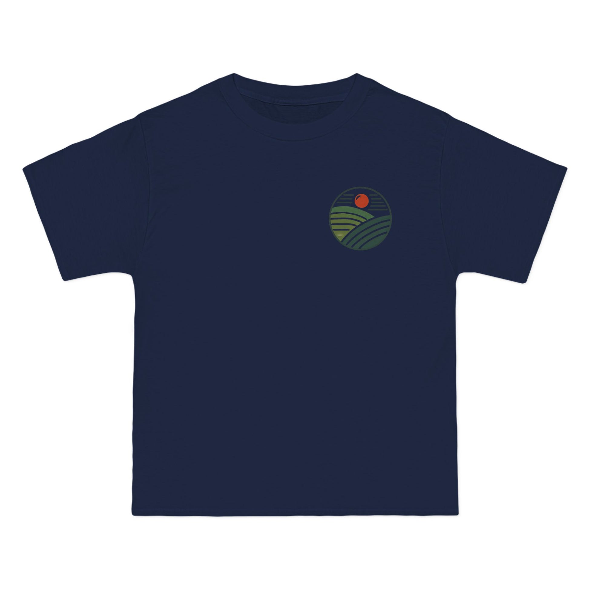 Discover the Abstract Landscape: Floral Orange Vibe tee from Whatever Clothing. This shirt is more than just fabric stitched together; it's your canvas to 'Wear Your World.' Our design, inspired by rolling green hills under a radiant orange sunburst, is a nod to the retro, yet bursting with modern minimalistic charm. It's wearable art, ready to absorb your life's stories.