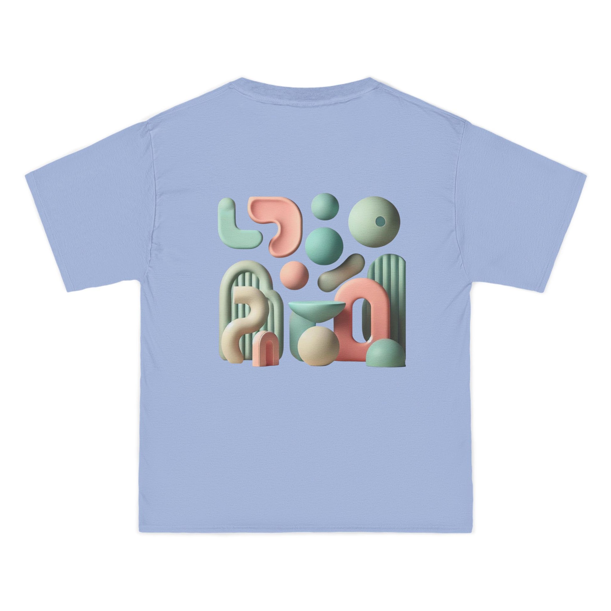 Introducing our Abstract Objects: Retro-Futuristic collection. A playful blend of pastel tones and exaggerated, surreal shapes, this unique design is perfect for those who love to stand out. We've captured the nostalgia of retro vibes and fused it with a futuristic outlook. The result? A wearable art piece that screams 'Express yourself' and 'Wear your World' with pride.