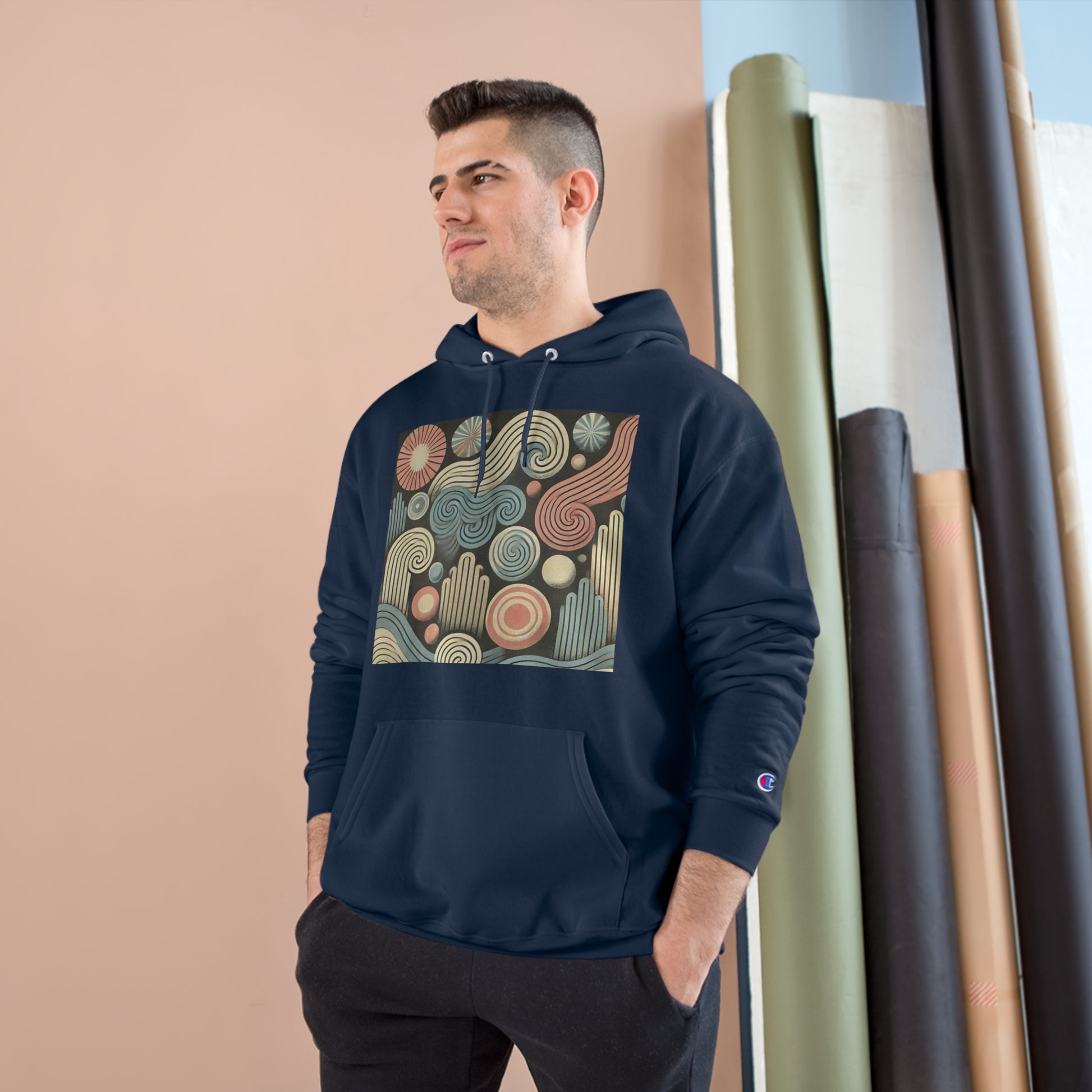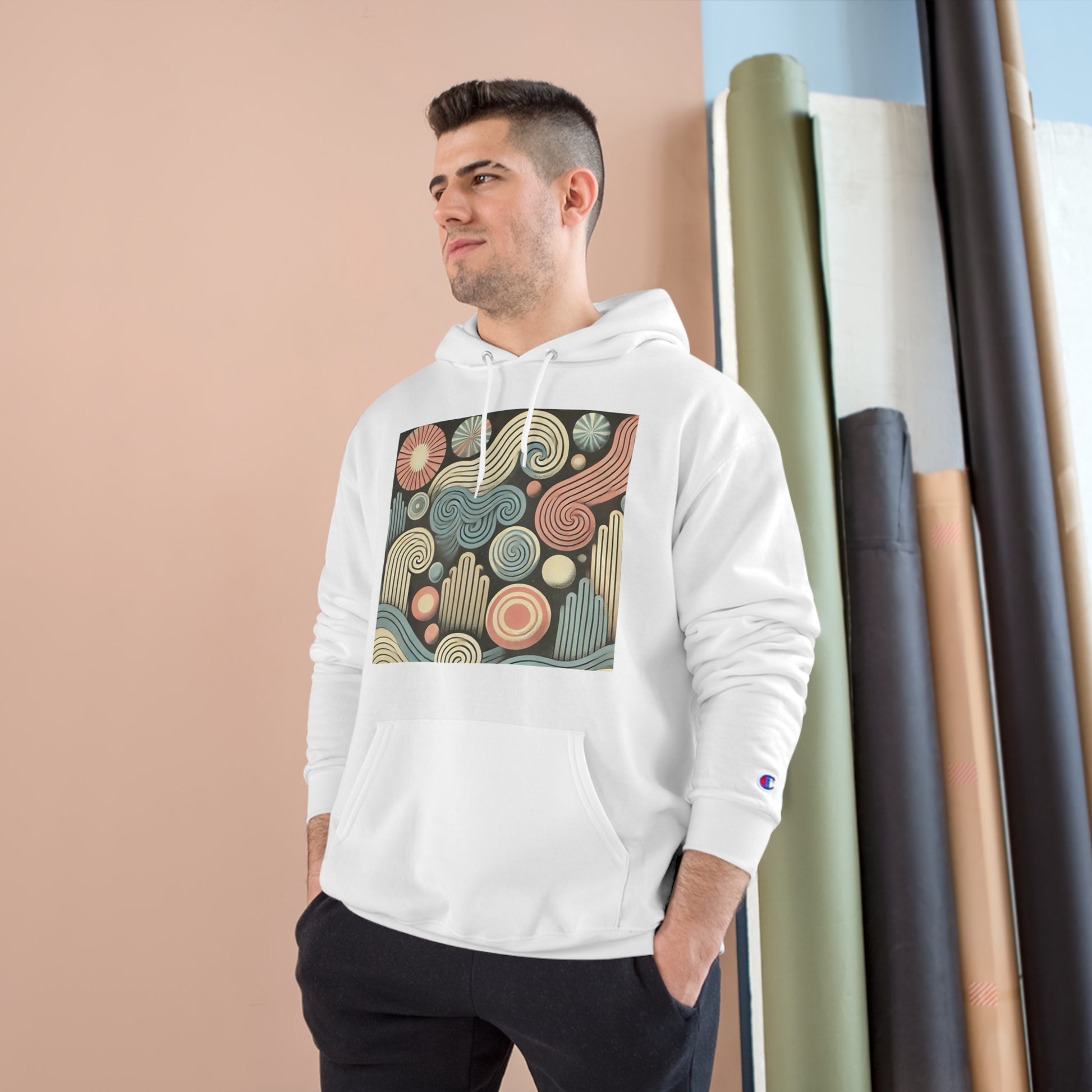 Get ready to ride the wave of creativity and nostalgia with our "Abstract Waves and Spirals: Groovy Retro" hoodie! This piece is a harmonious blend of pastel-colored waves and spirals, giving a dynamic, groovy touch to a retro design with a vintage feel. It's not just a hoodie, it's wearable art!