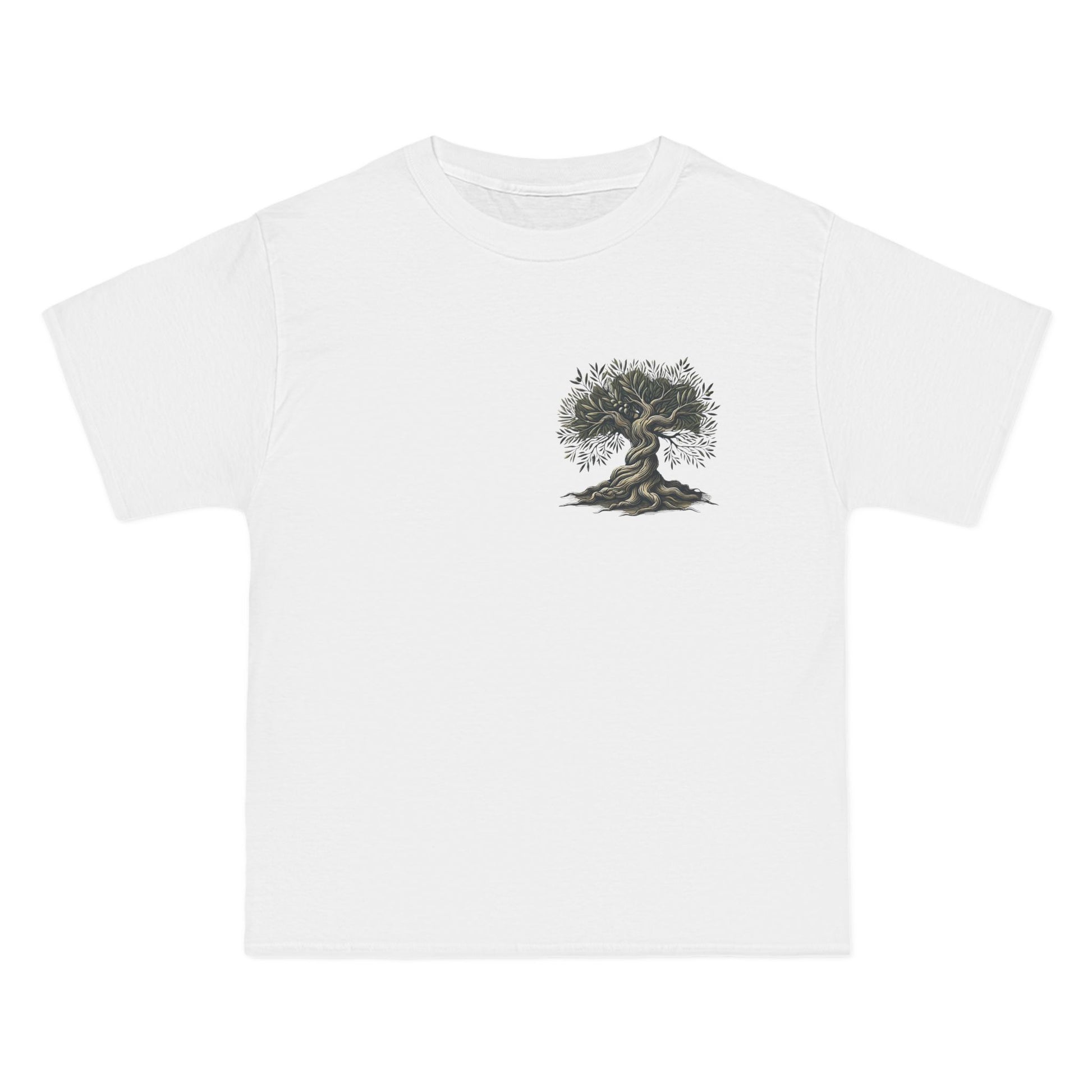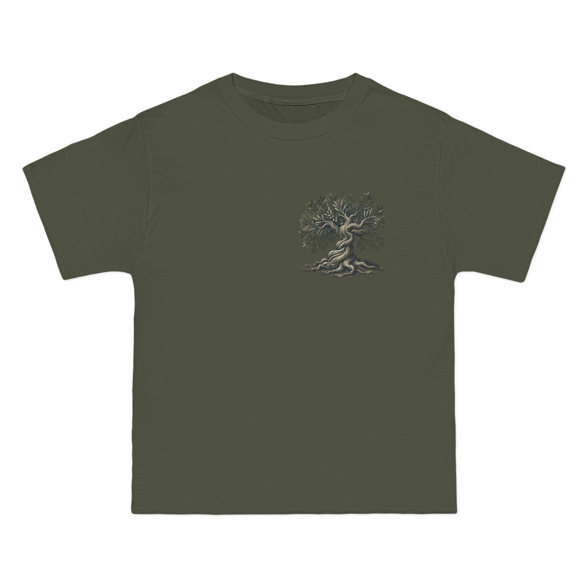 Step into a world where fashion meets individuality with our Ancient Olive Tree: Classical Elegance tee from Whatever Clothing. This one-of-a-kind piece features a gnarled olive tree with twisting branches, symbolizing wisdom, rendered in muted greens and dark browns. It's not just a t-shirt, it's wearable art, a canvas for your own unique expression.