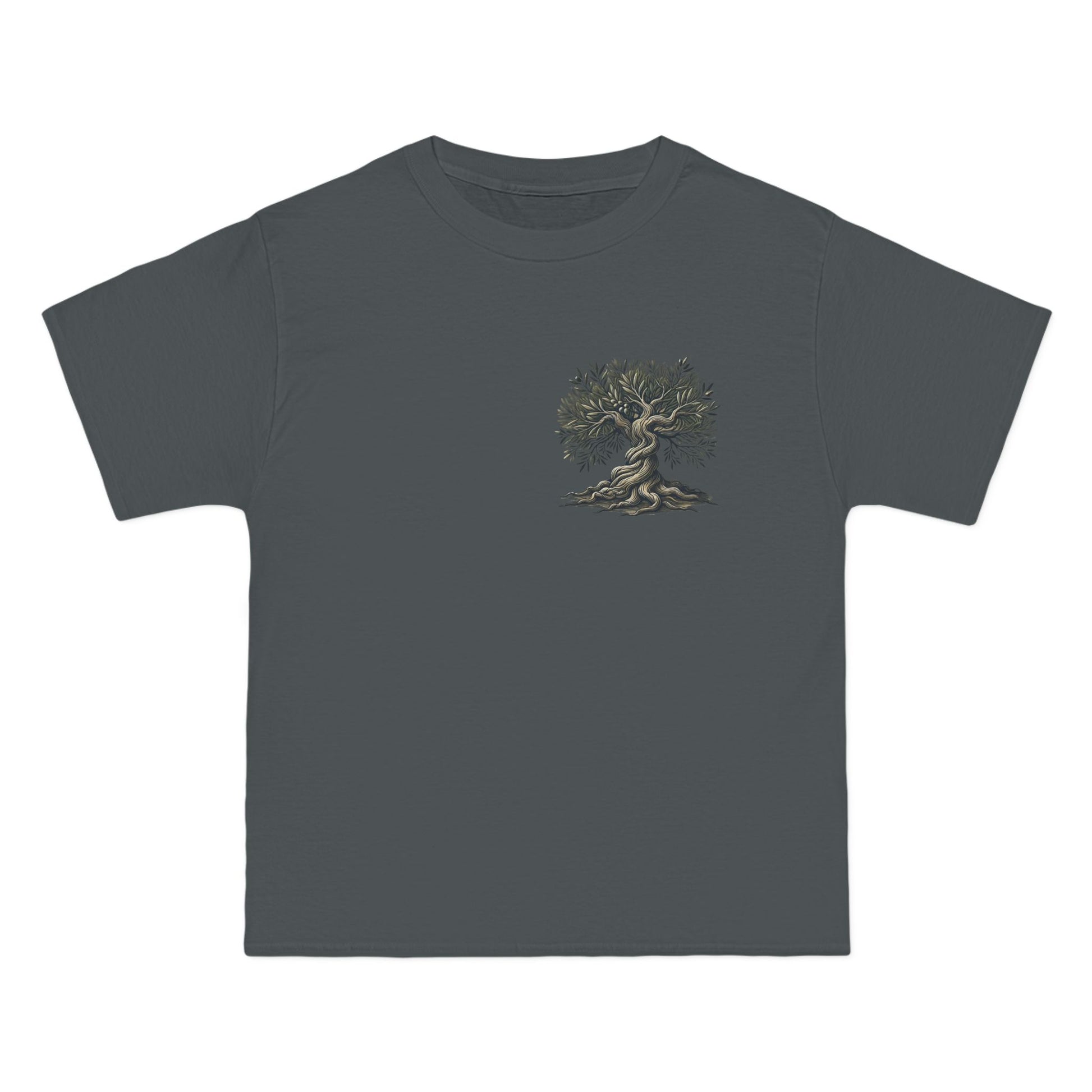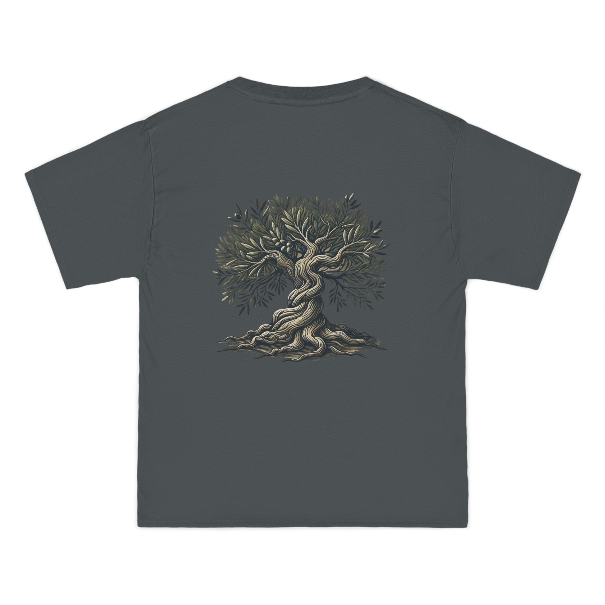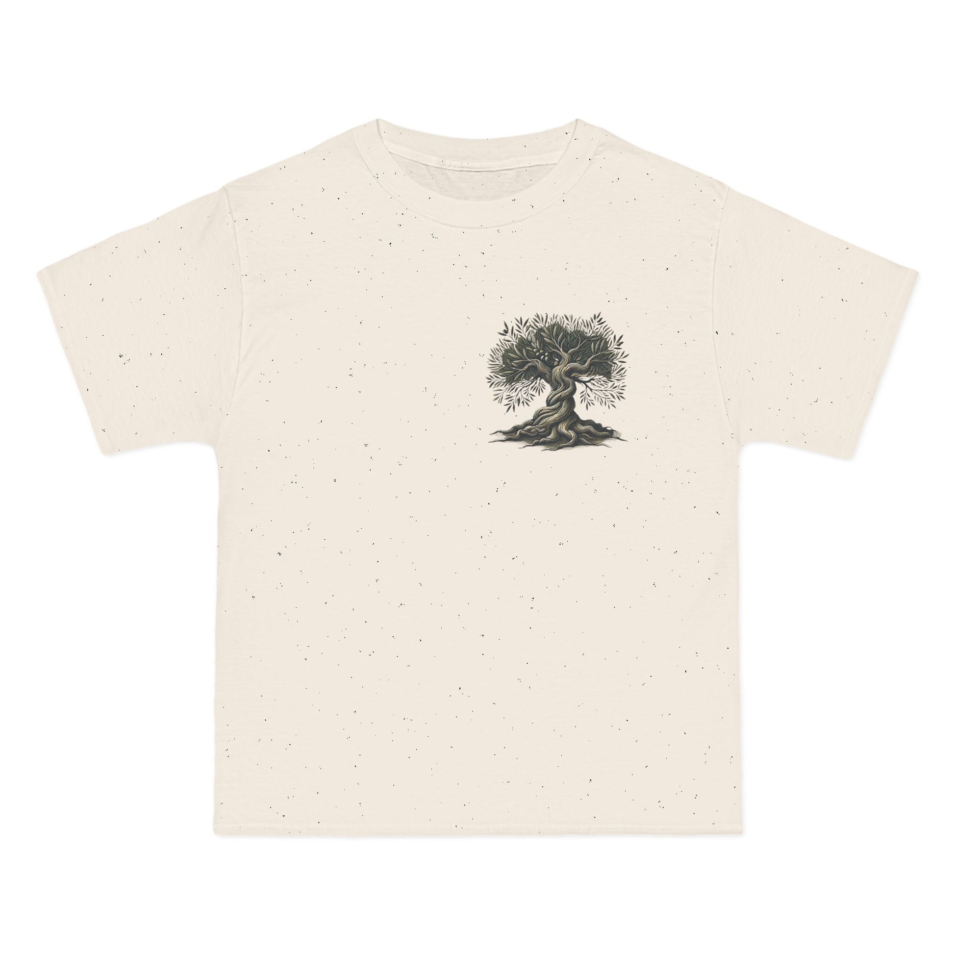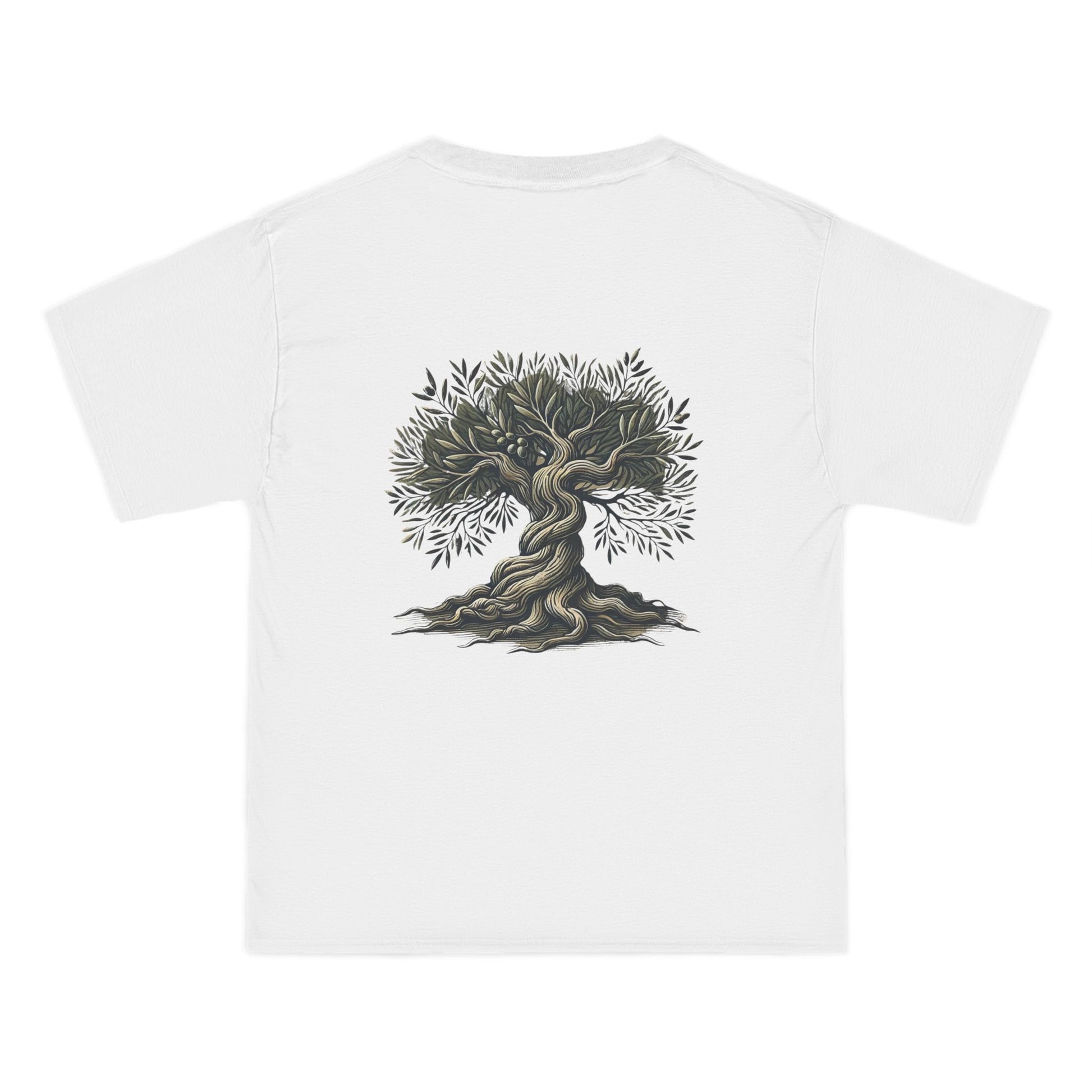 Crafted from the softest cotton blend, this tee offers unparalleled comfort while ensuring durability with features like double-needle stitching and stabilized shoulder seams. Its lay-flat collar retains its shape wash after wash, and the smooth finish creates a print-friendly surface that makes the olive tree design pop, ensuring your wearable art stays vibrant for longer.