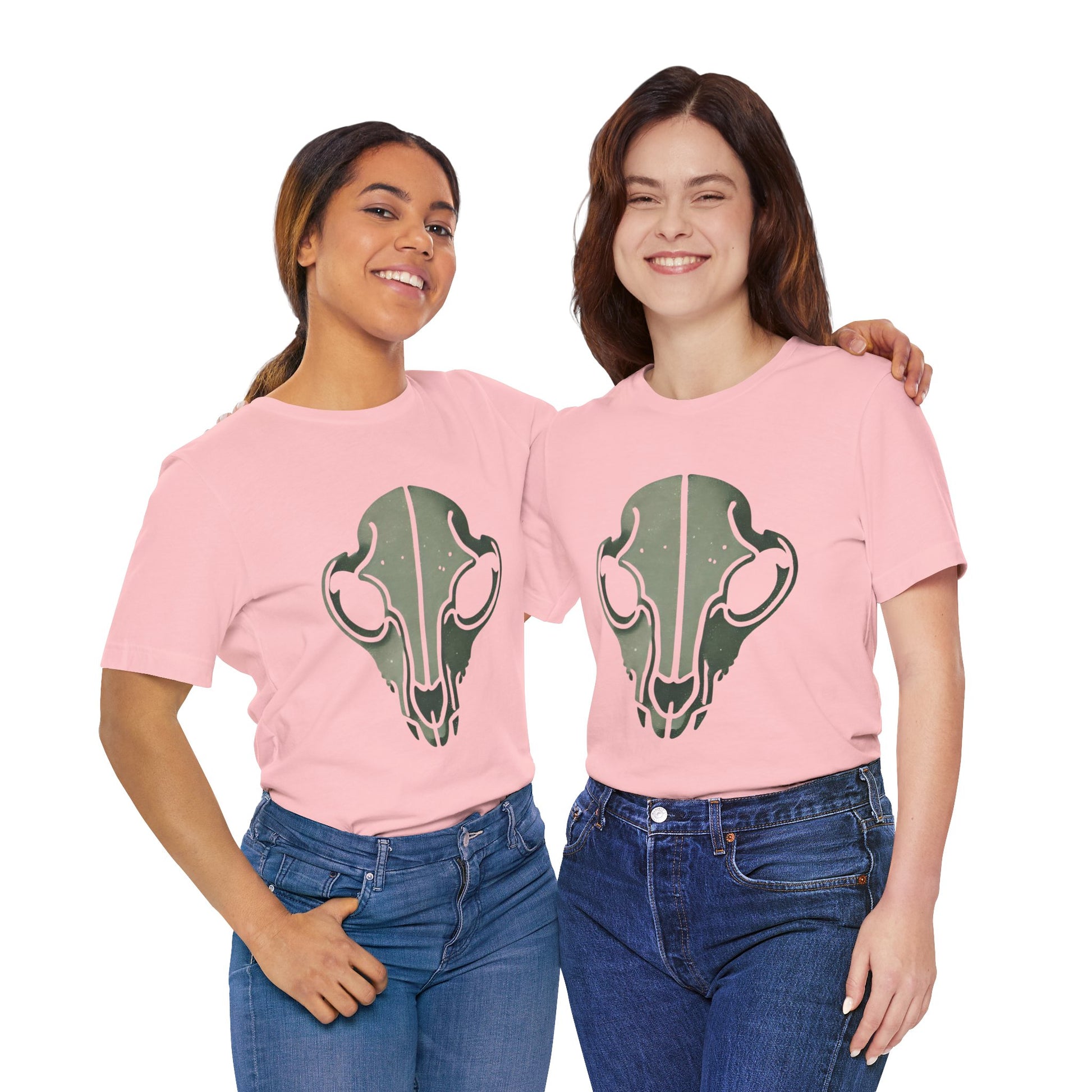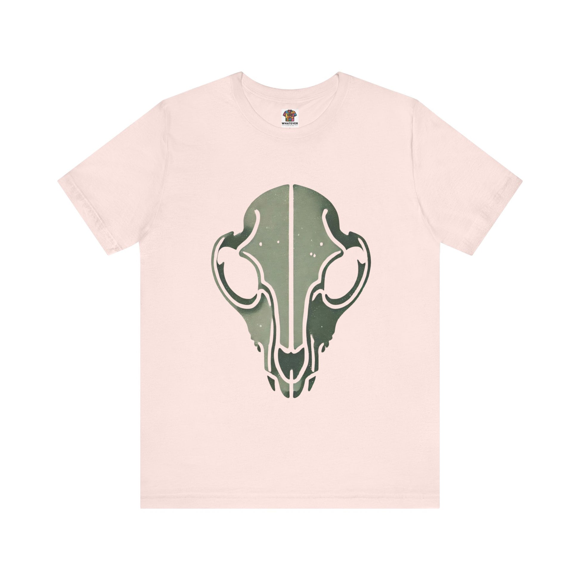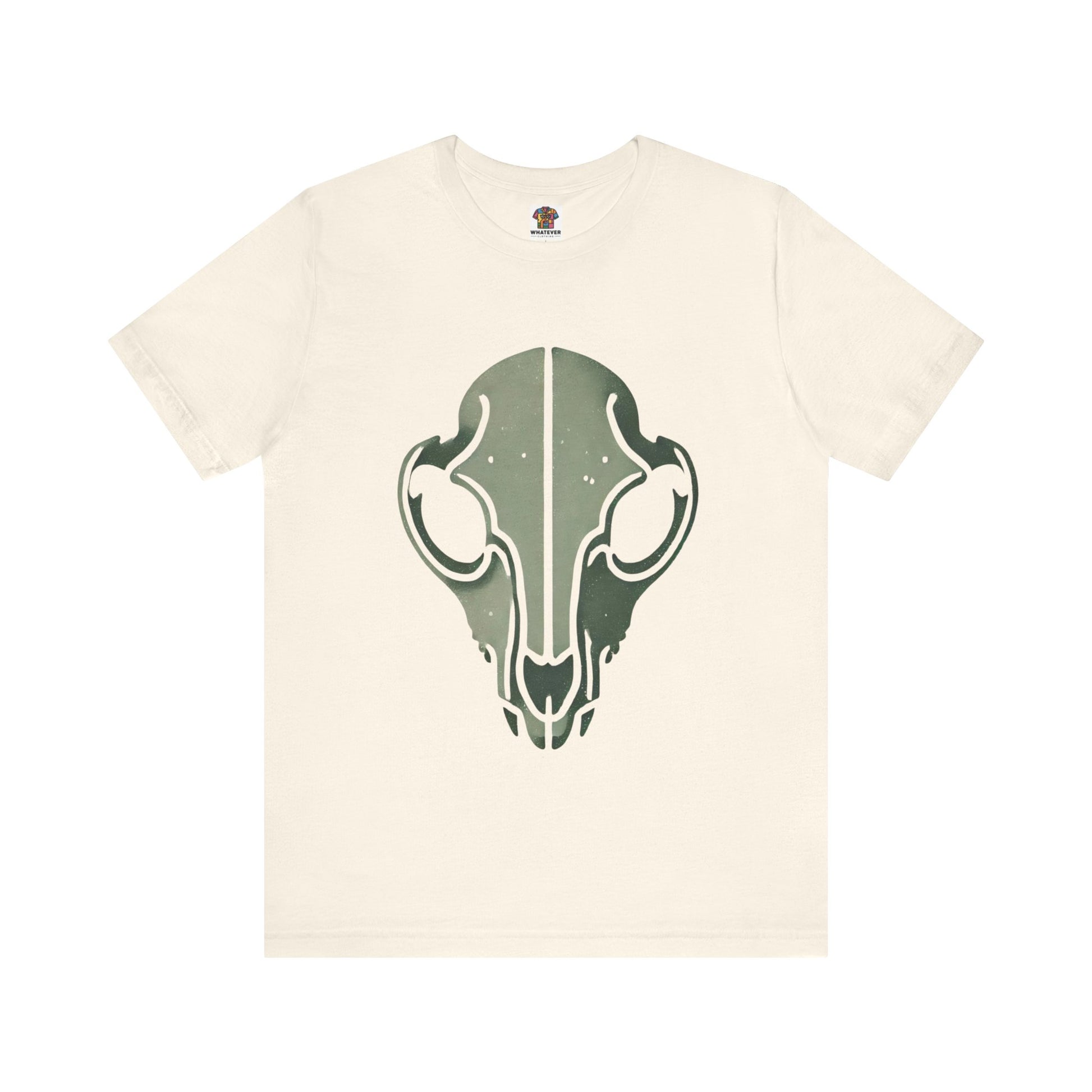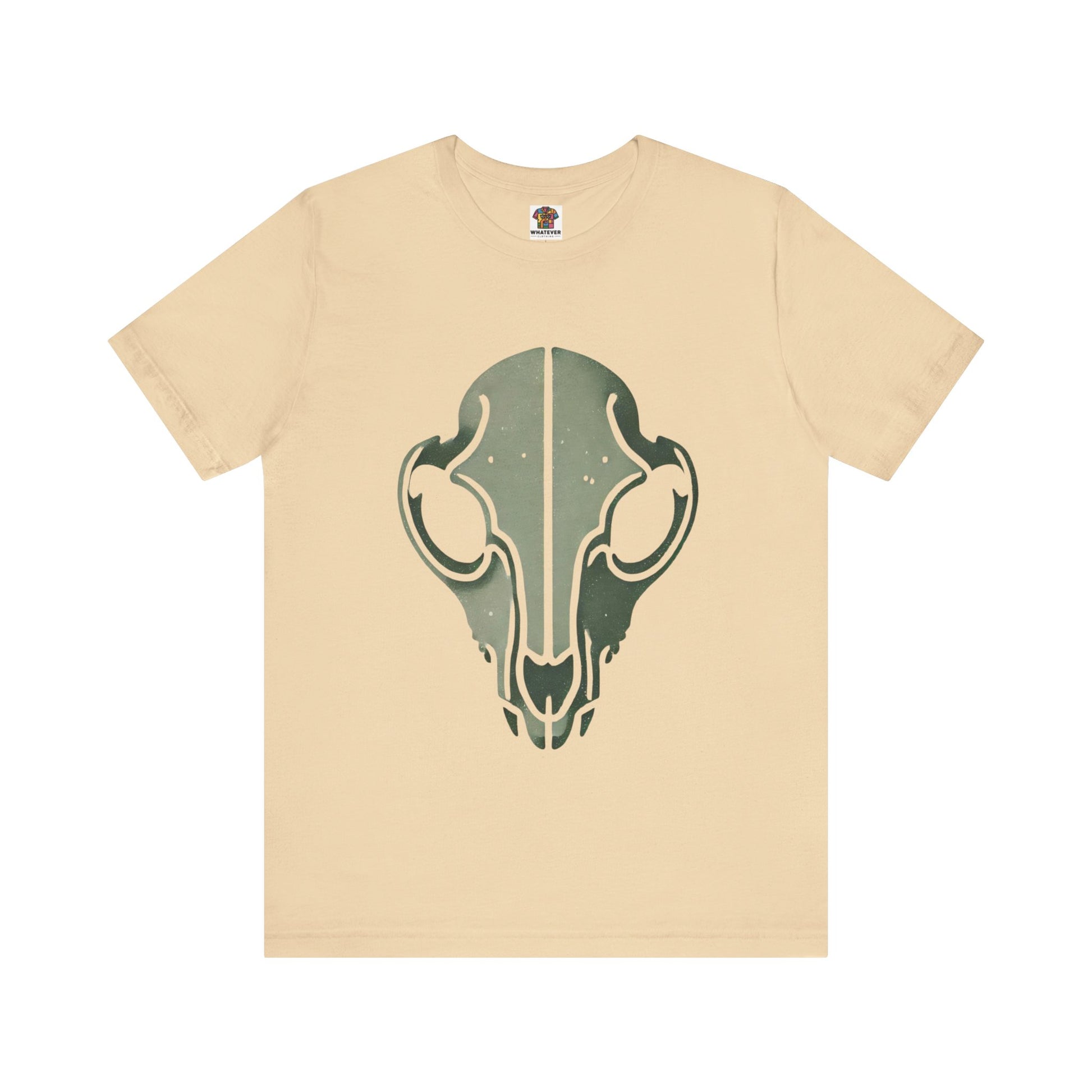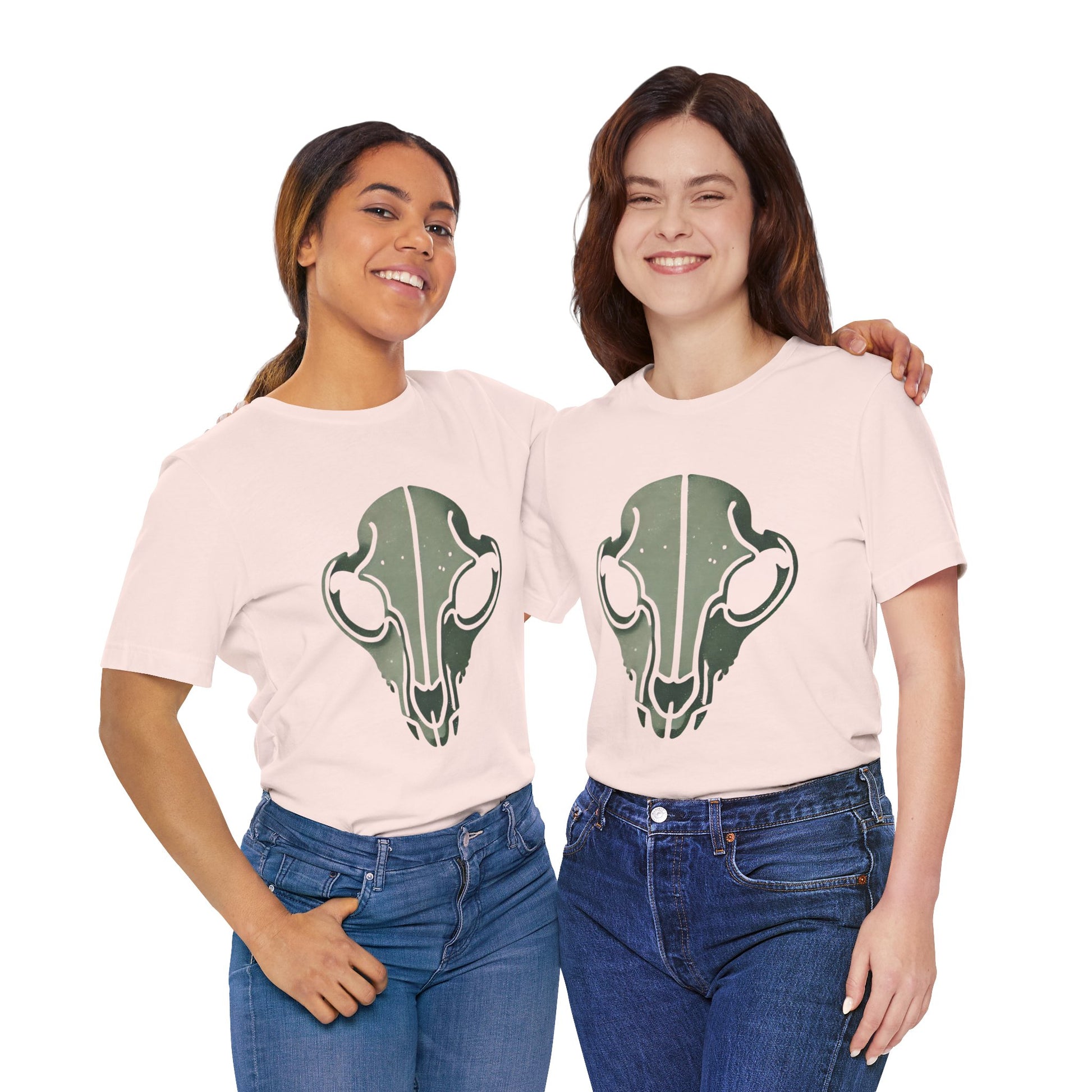 A stylized animal skull with soft, minimal lines and a rustic, wilderness-inspired design.