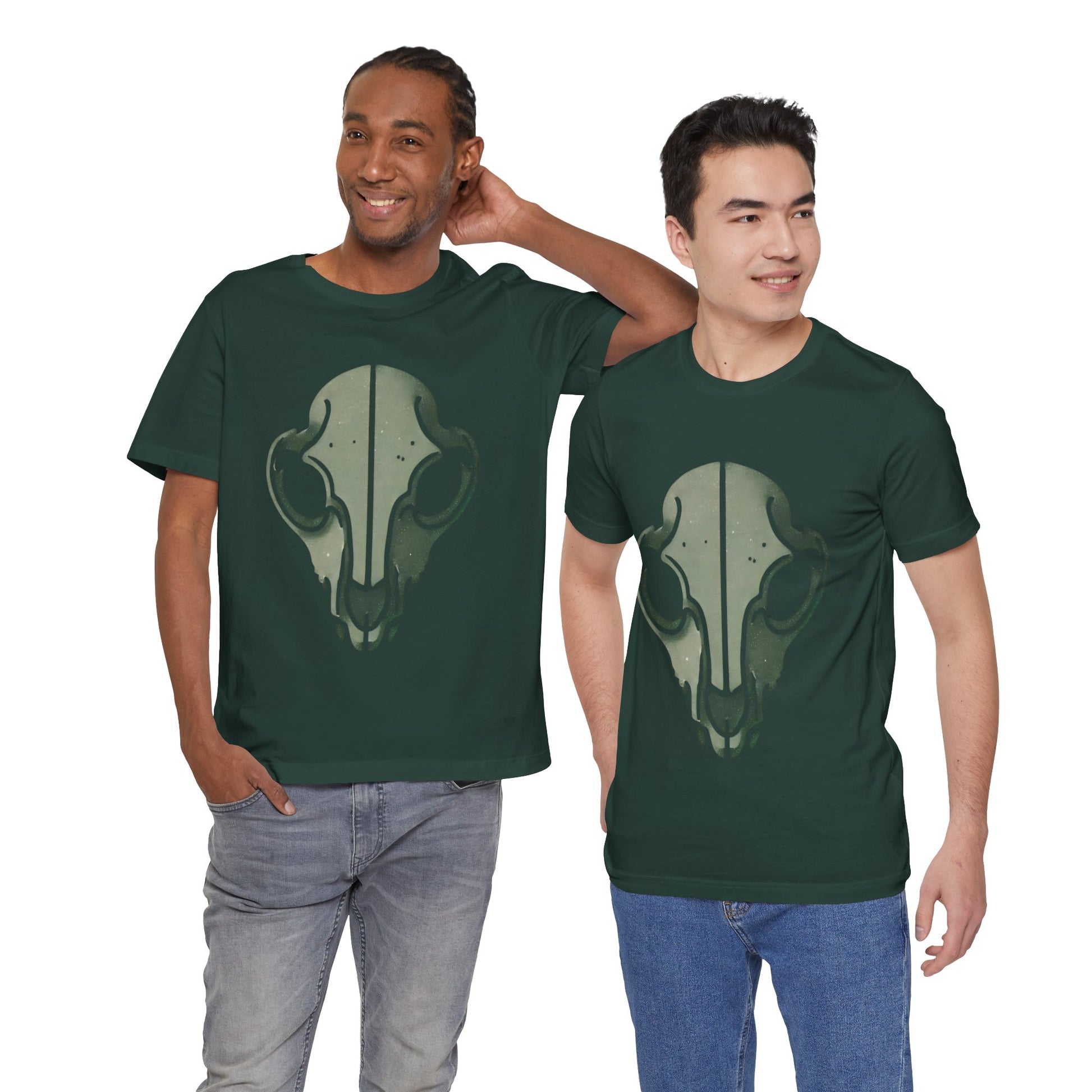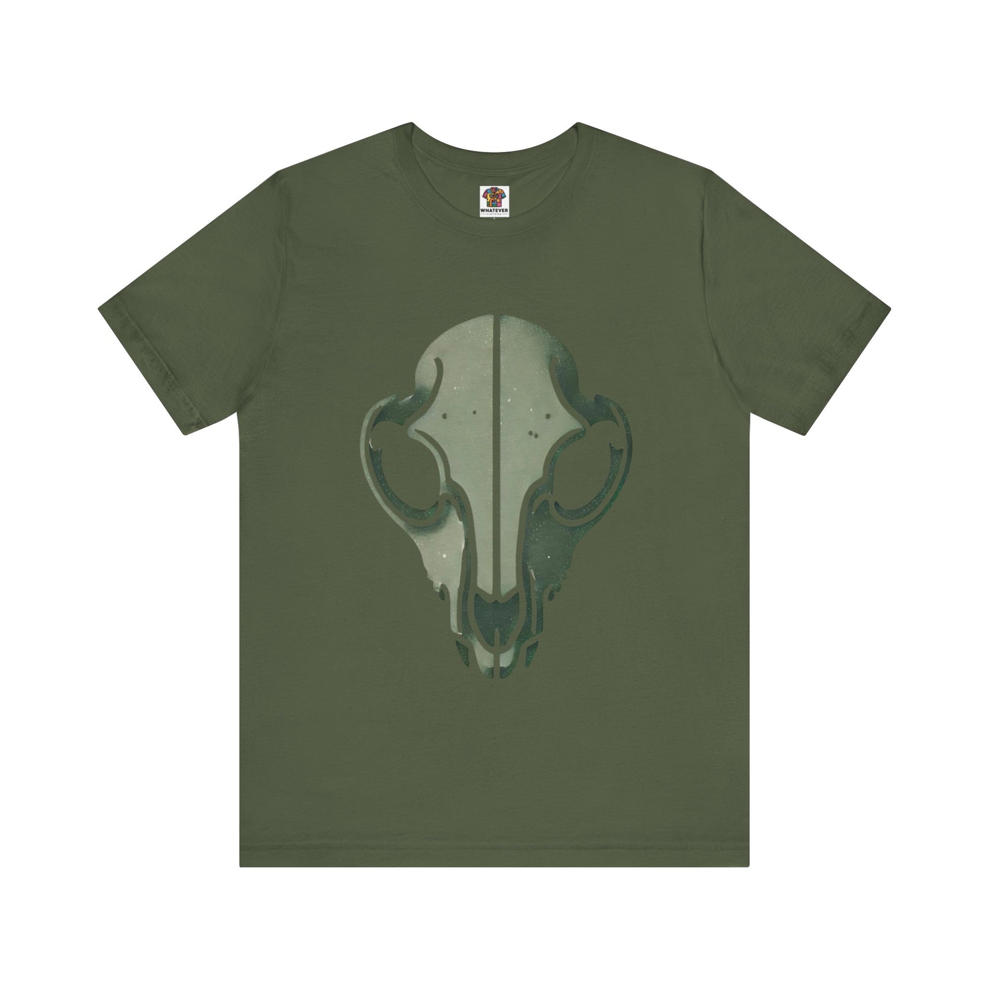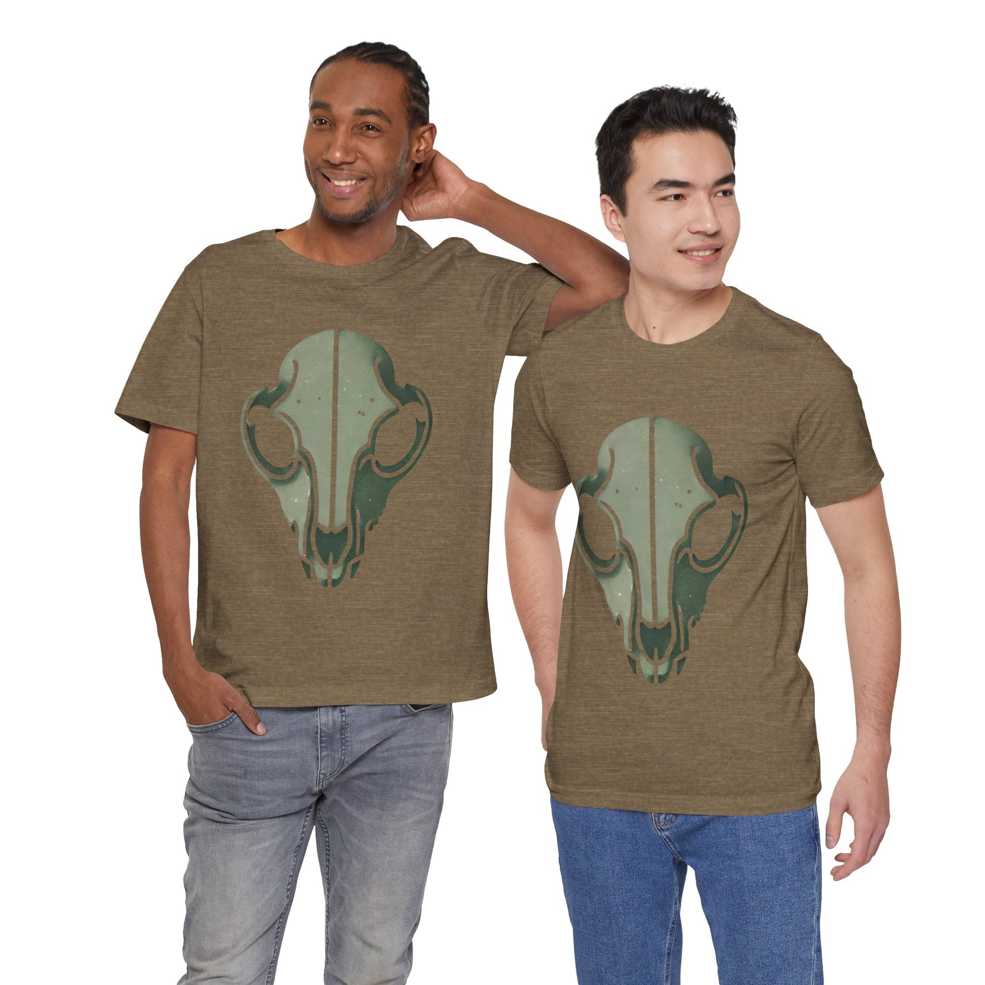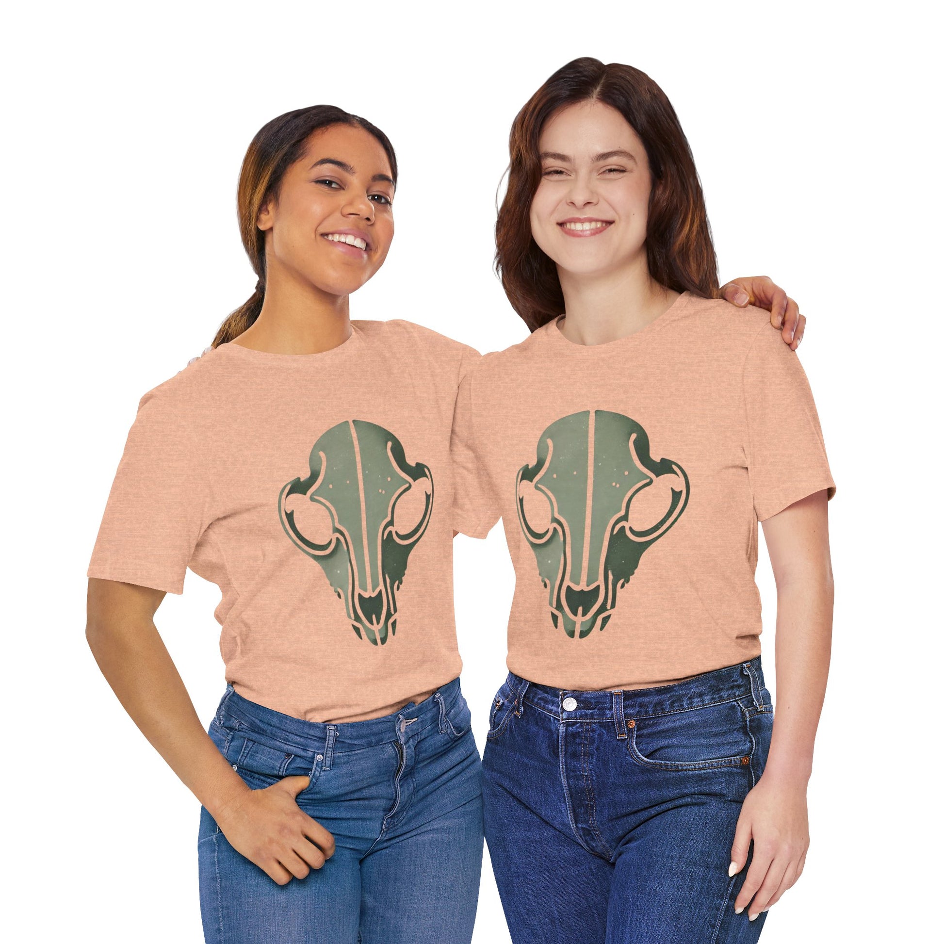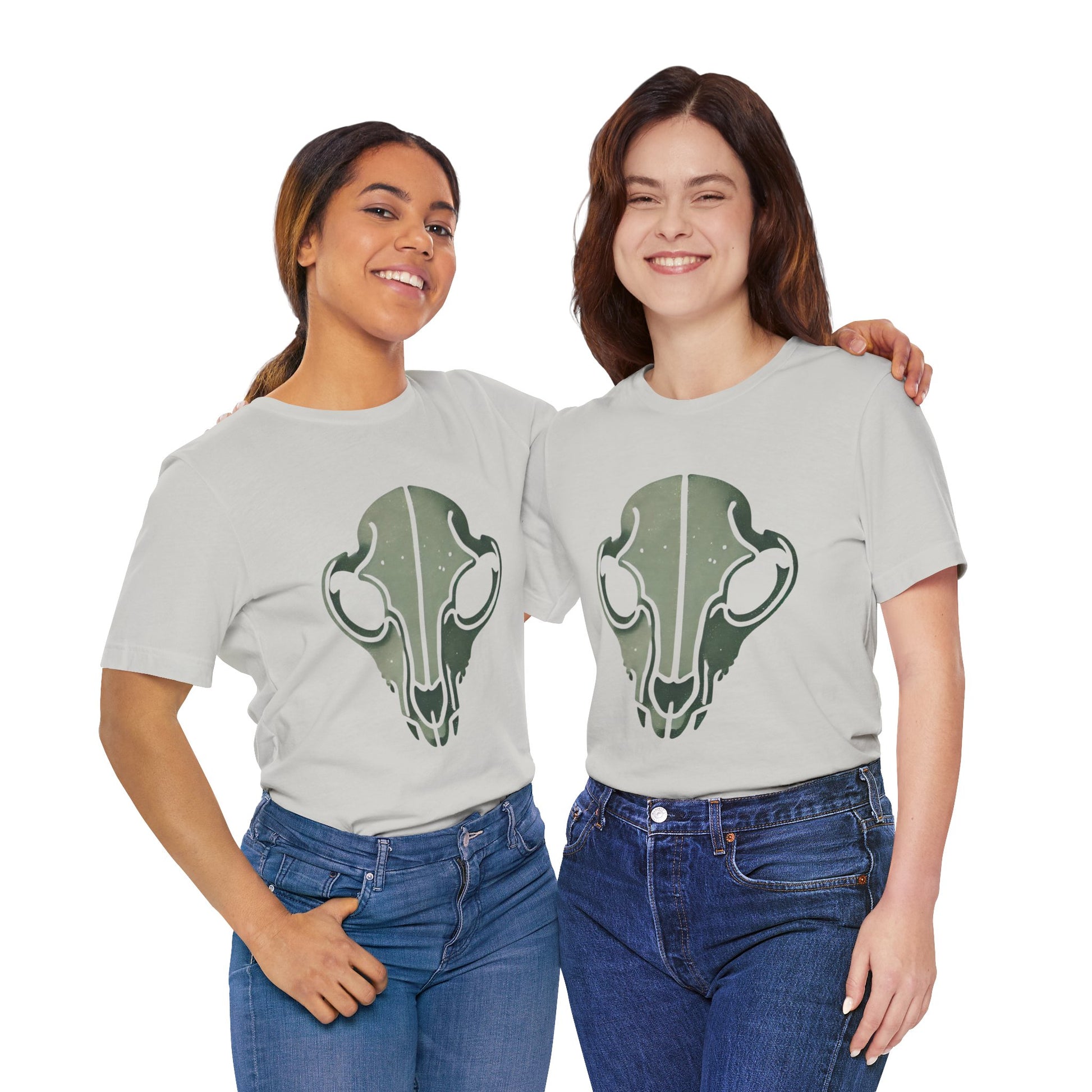 A stylized animal skull with soft, minimal lines and a rustic, wilderness-inspired design.