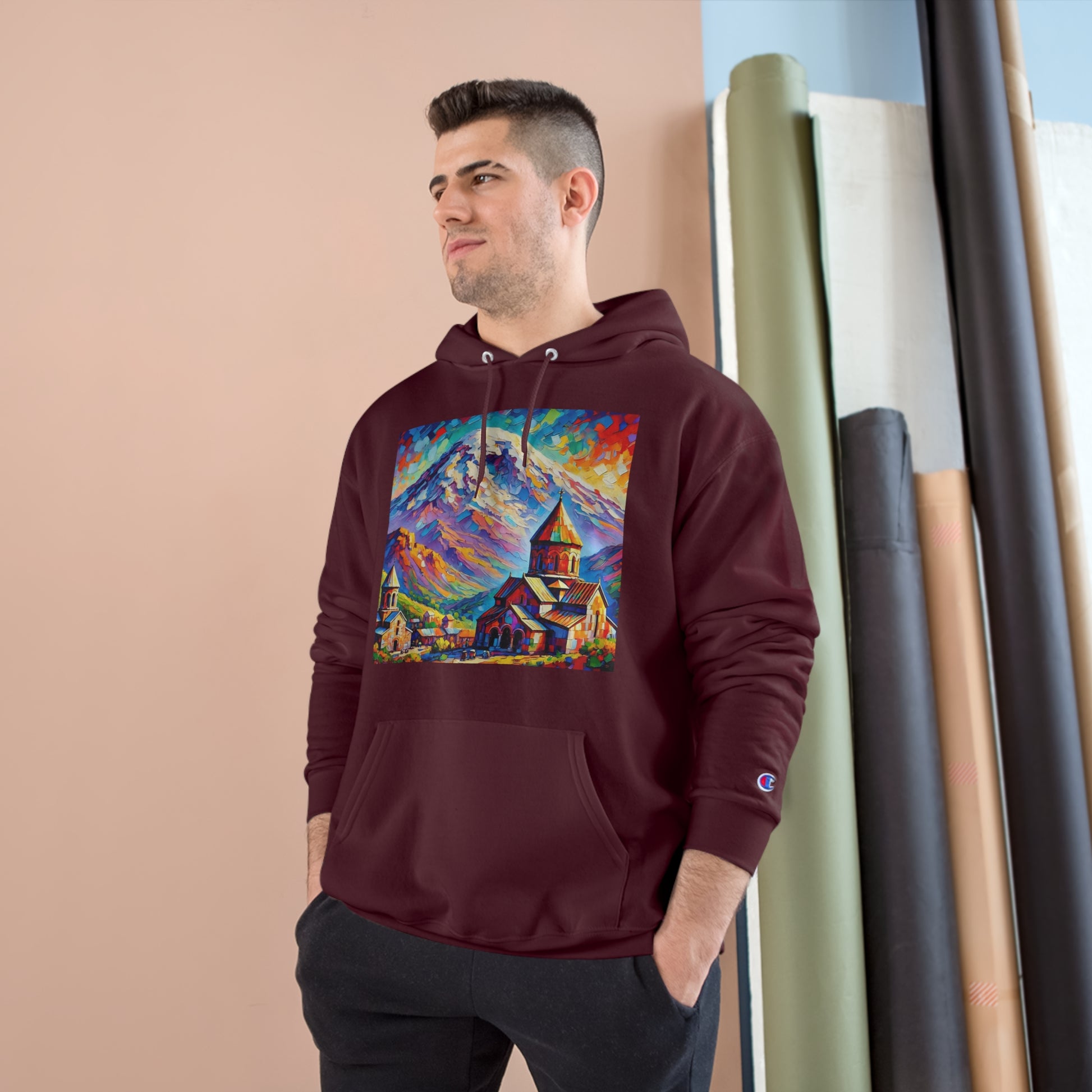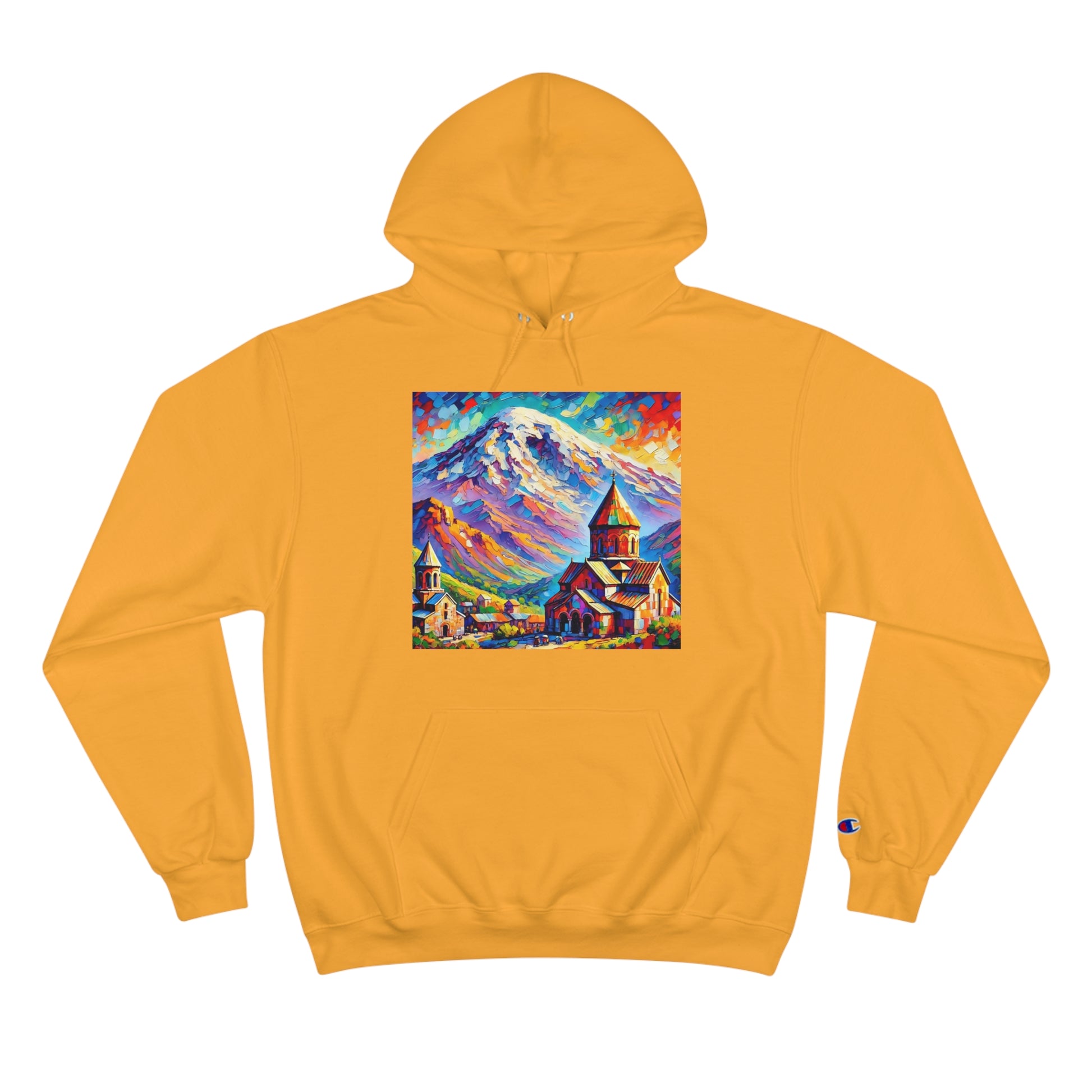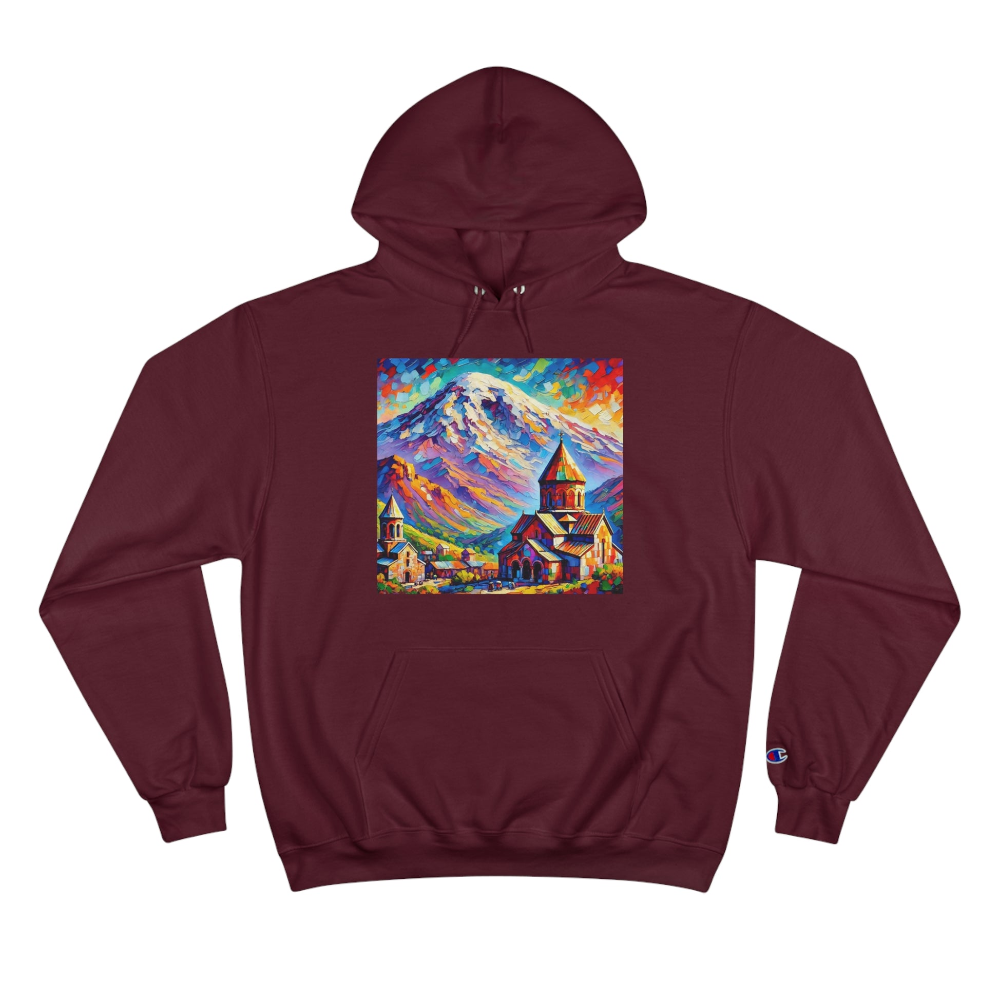Unleash your creativity and wear your world with Whatever Clothing's vibrant Ararat Mountain & Church hoodie. This cozy pullover, made of an eco-friendly blend of cotton and recycled polyester, is your canvas for wearable art inspired by the bold and expressive colors of Post-Impressionist Fauvism.