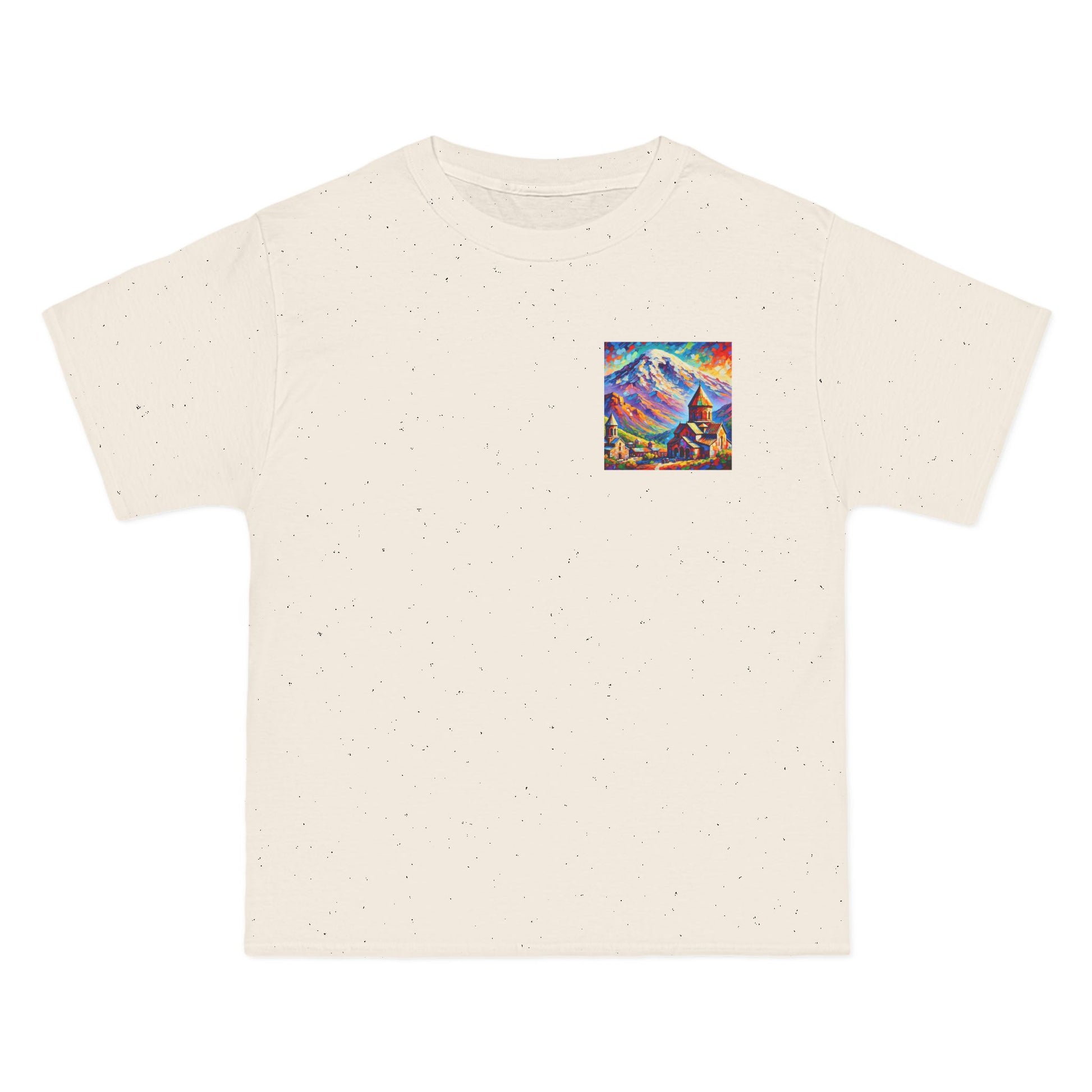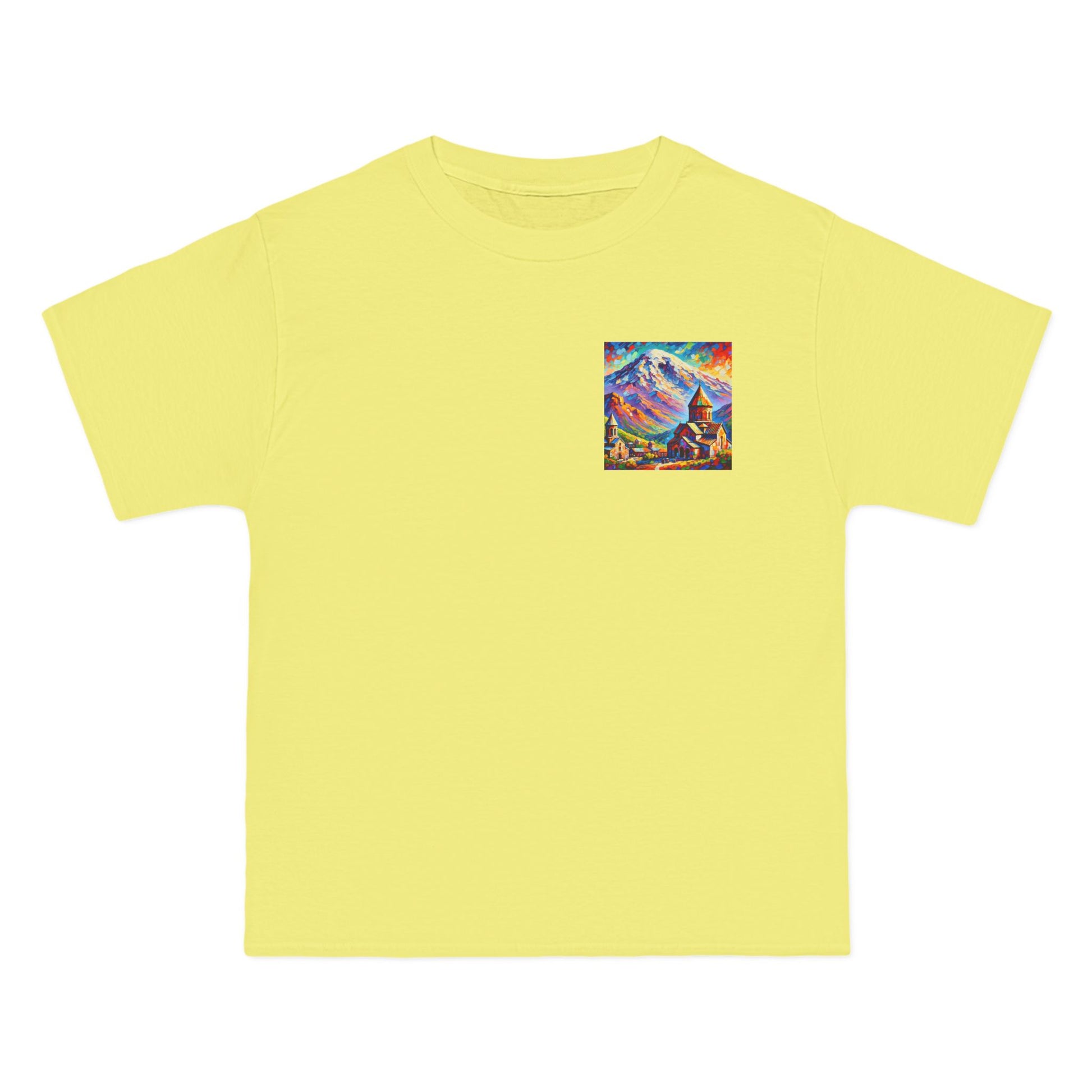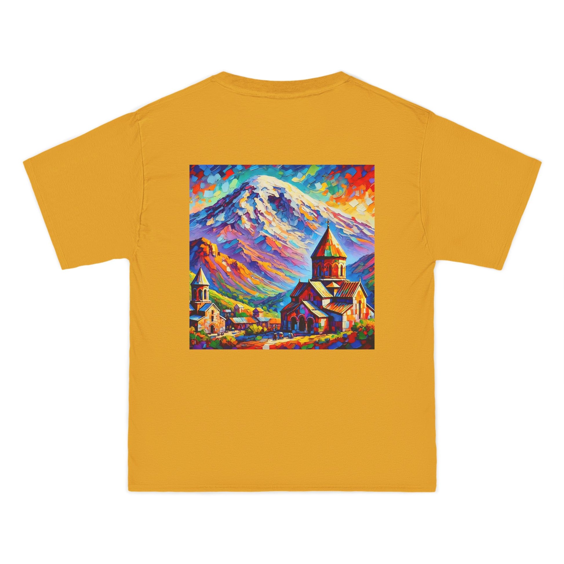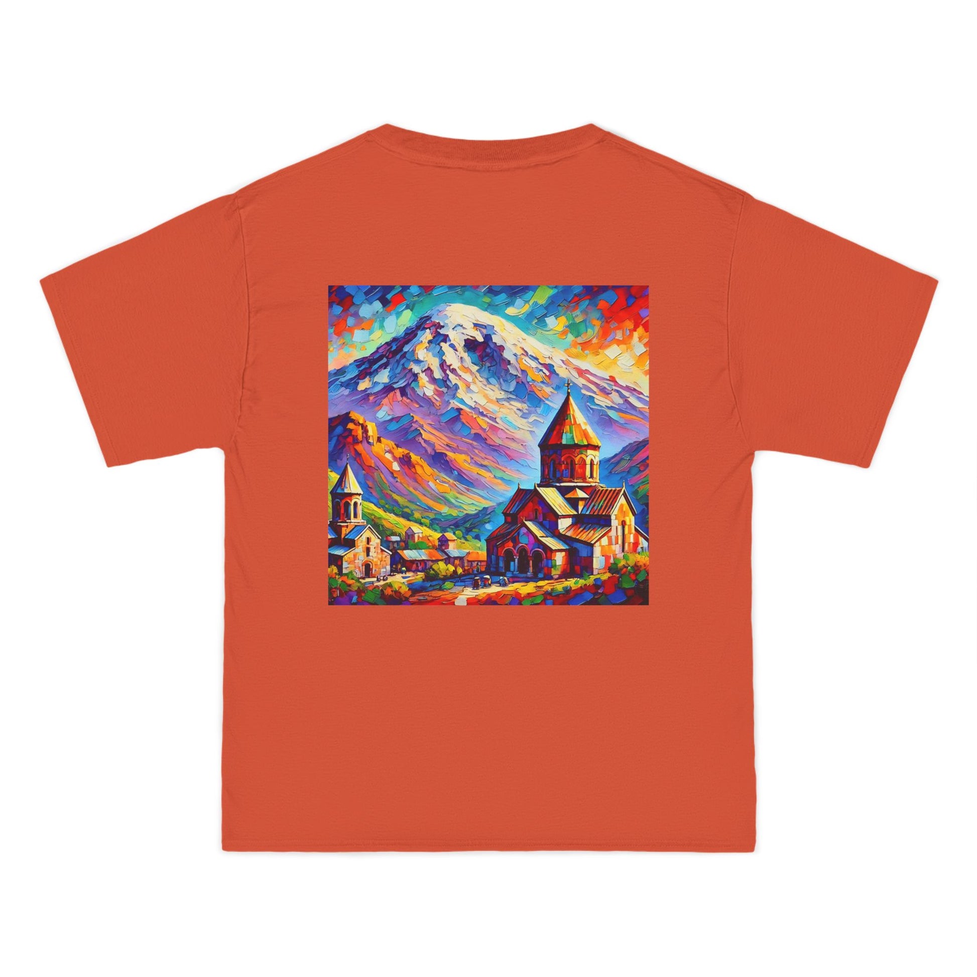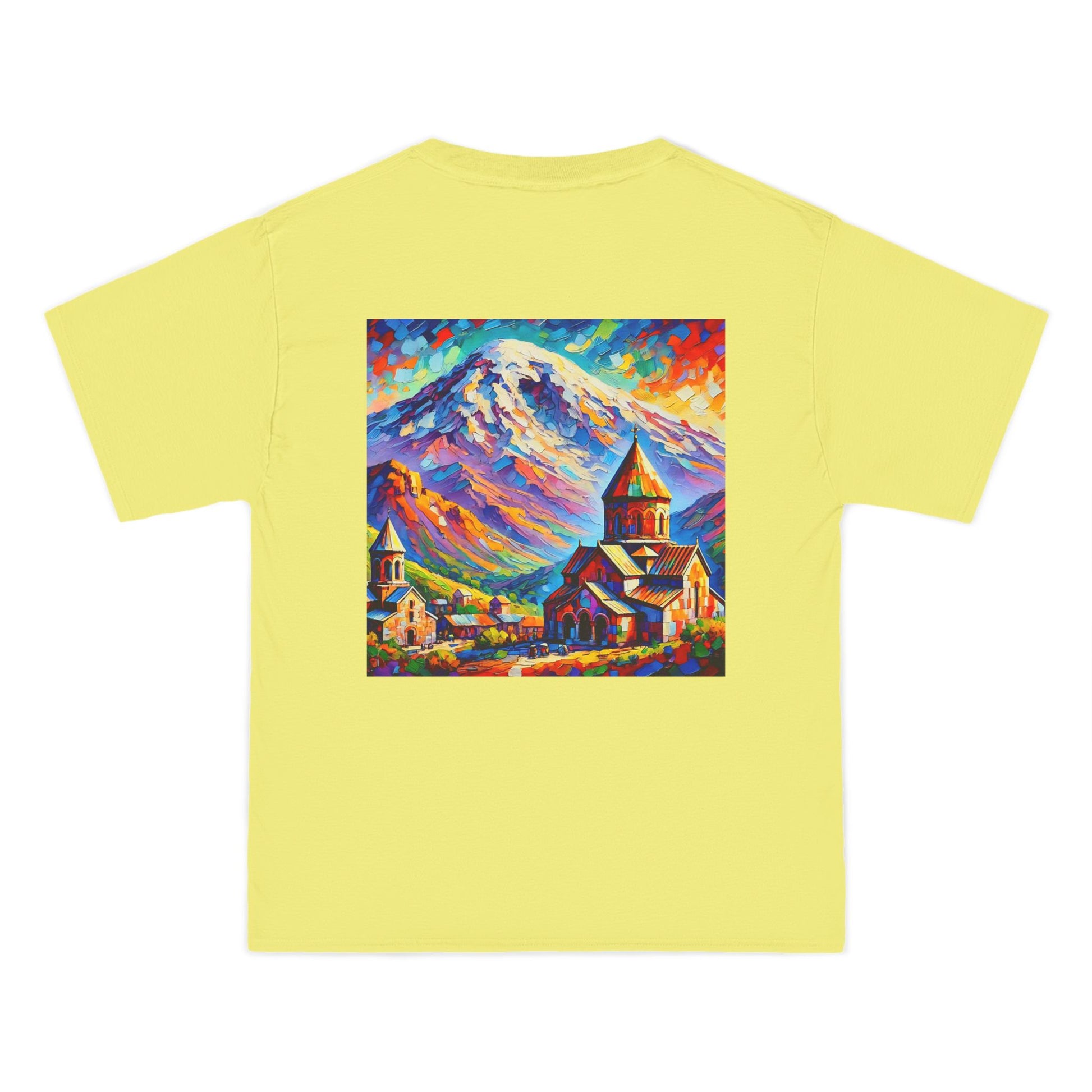 Step into the world of art with our Ararat Mountain & Church Post-Impressionist Fauvism shirt. Reminiscent of a vibrant and bold painting, this design encapsulates the passion of the artist and the beauty of Ararat Mountain with an ancient Armenian church. Let the expressive colors and simplified forms inspire you. It's not just a shirt; it's wearable art.