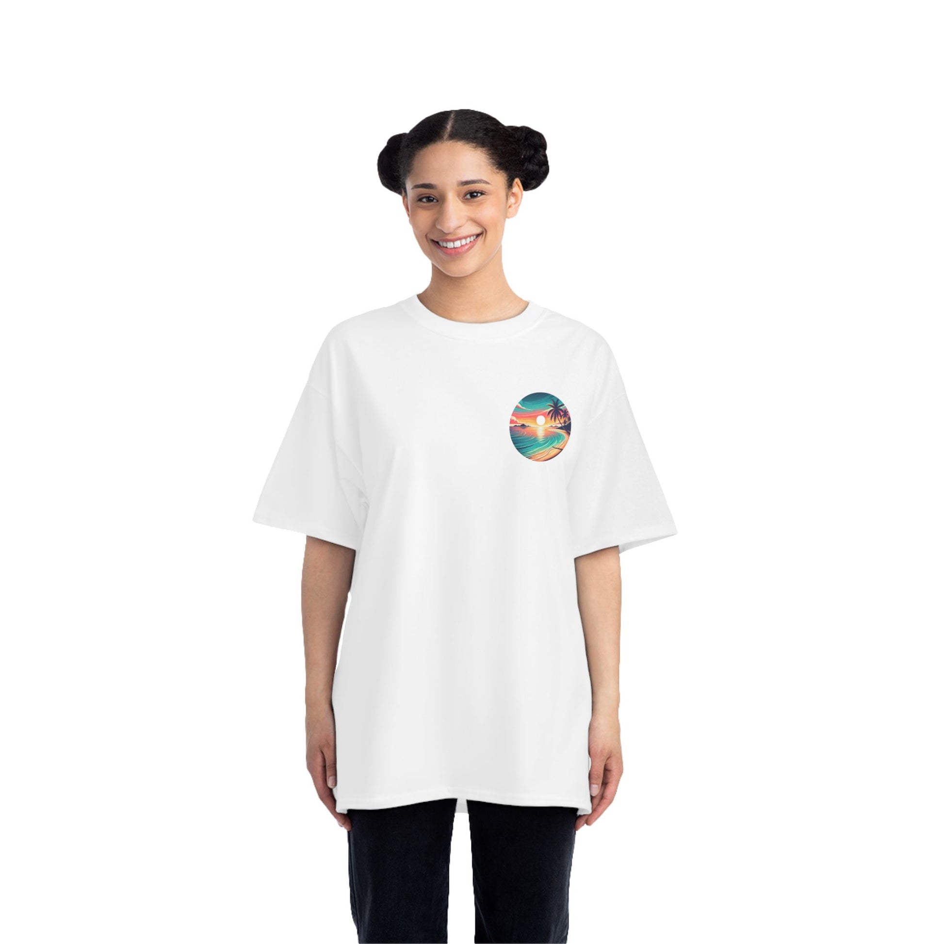 Get ready to Wear Your World with our Beach Landscape: Tropical Vibe t-shirt, a slice of paradise you can carry with you wherever you go. Imagine yourself basking in the warm glow of a setting sun, the calm turquoise waters gently lapping at your feet, and the distant silhouette of islands whispering secrets of unexplored wonders. This isn't just a shirt; it's wearable art, skillfully crafted by our innovative AI technology.