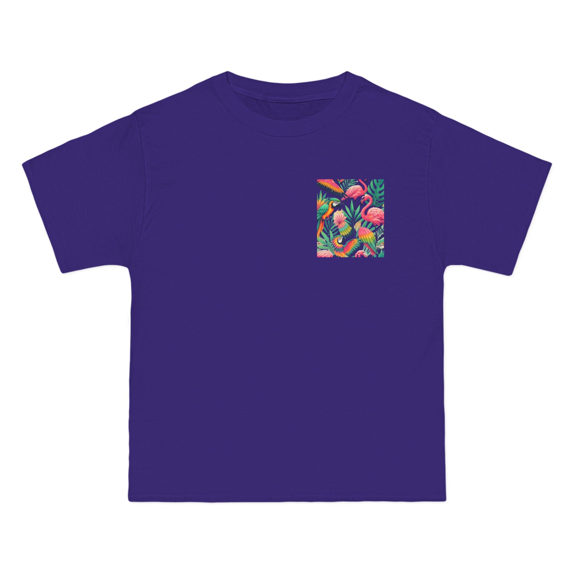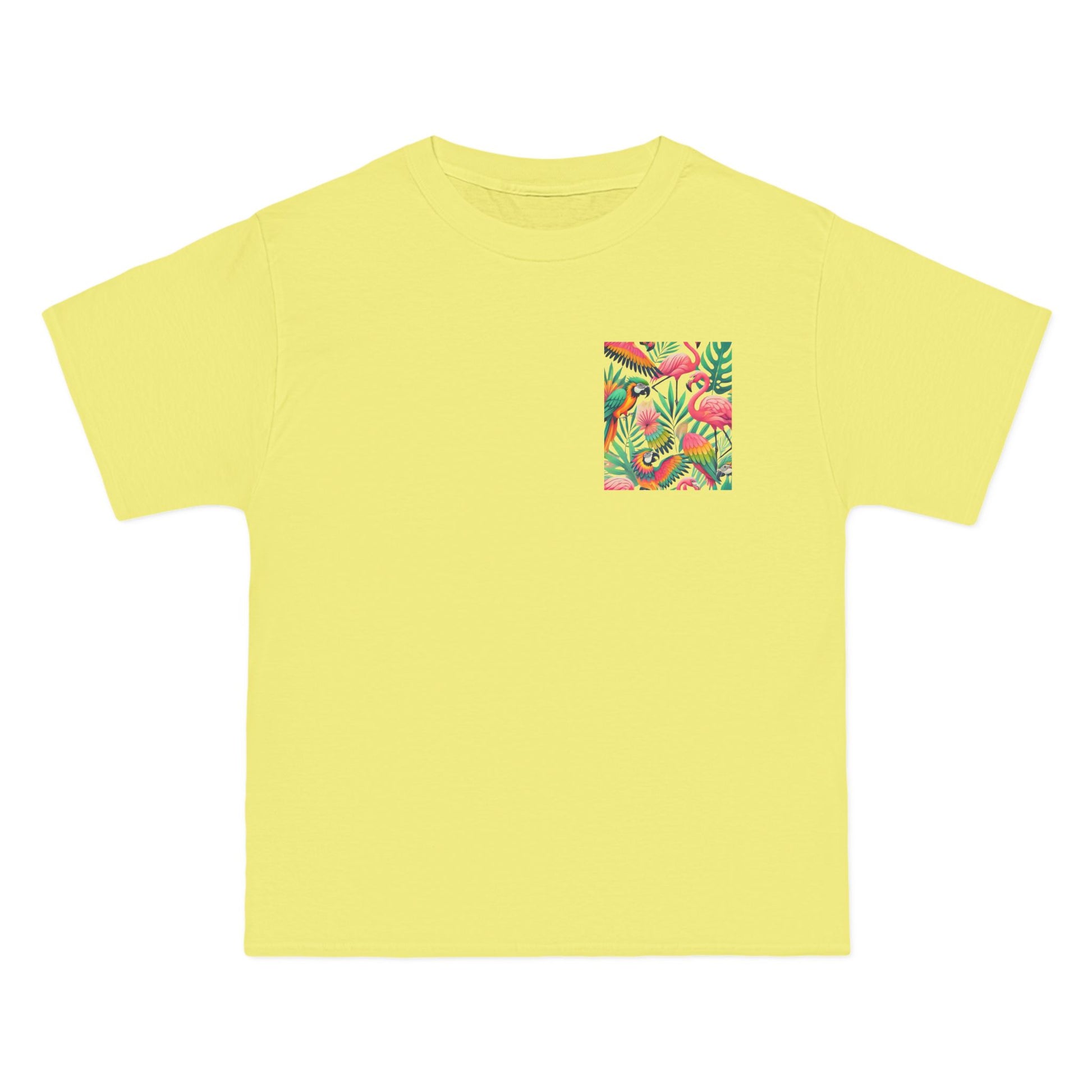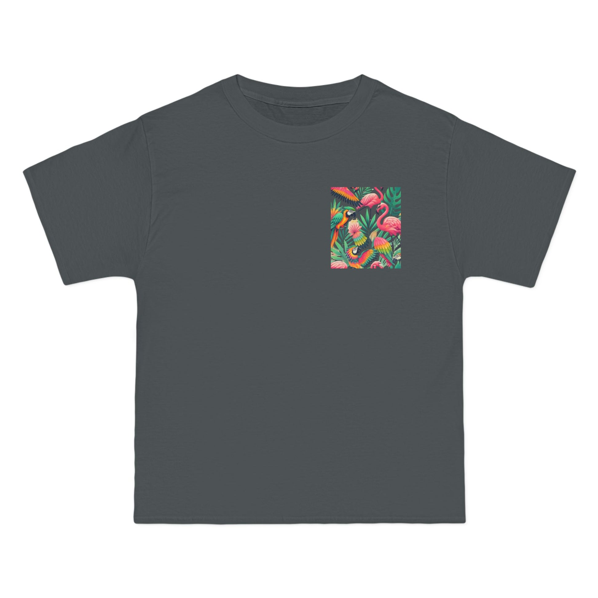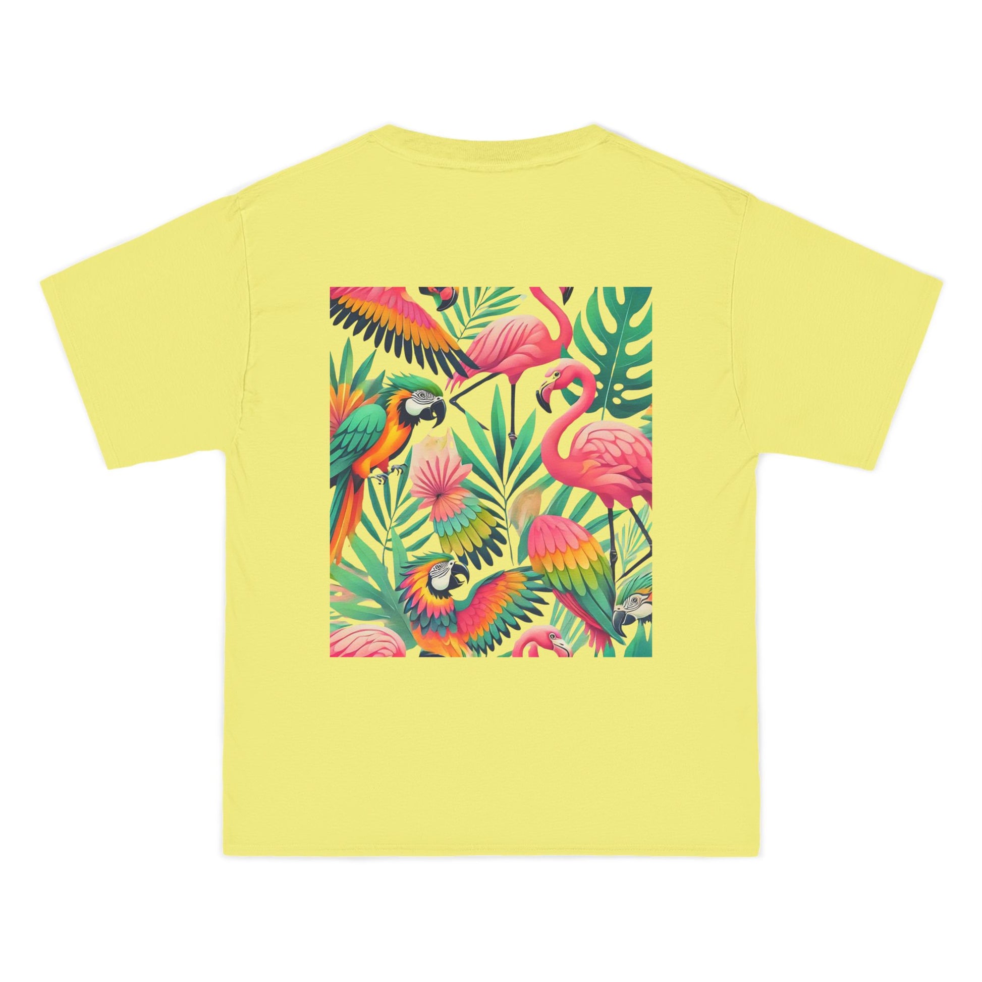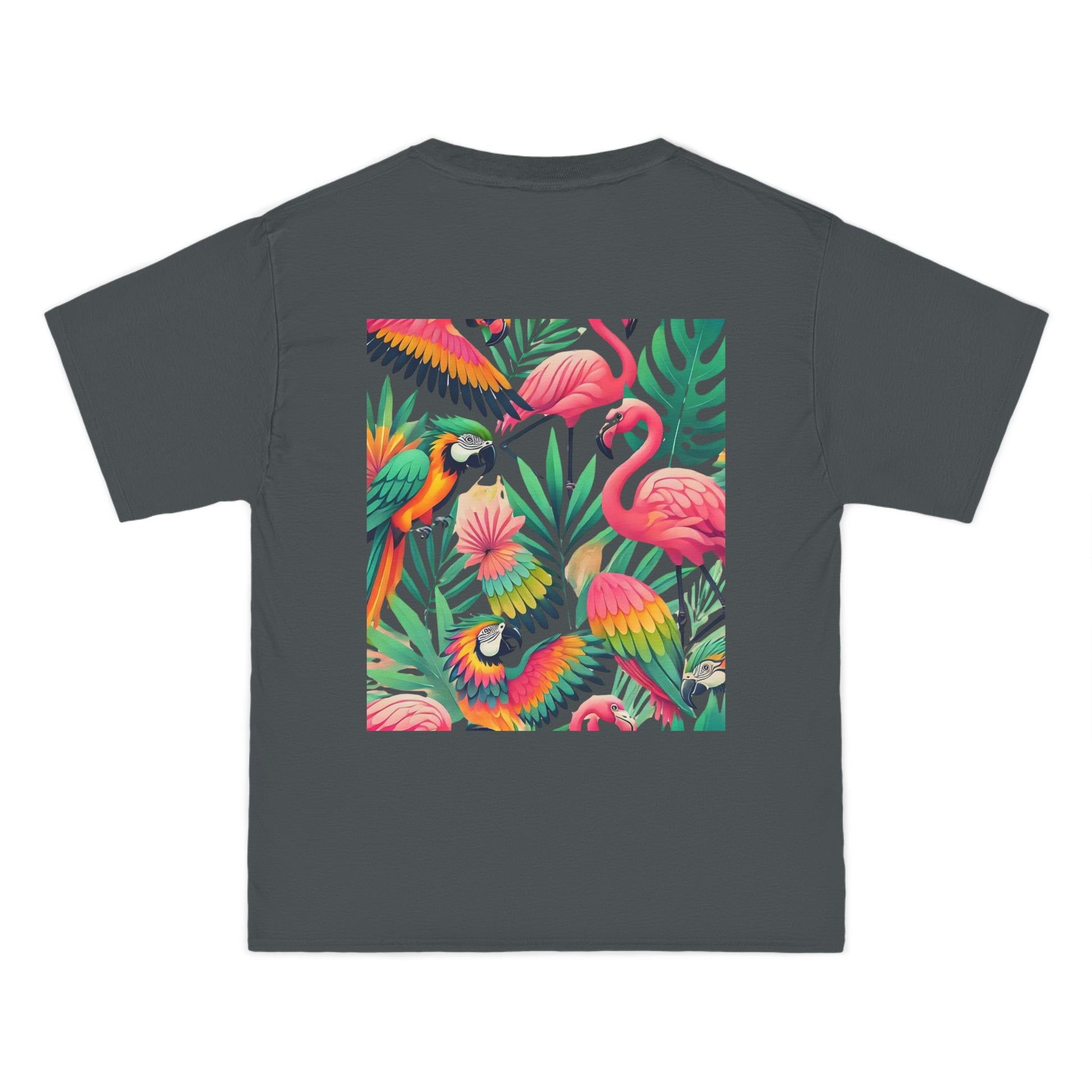 Welcome to the vibrant world of the Birds Pattern: Playful Summer tee from Whatever Clothing! Bursting with color and charm, this unique piece creates a whimsical symphony of stylized parrots and flamingos, their exaggerated bright feathers dancing against a dreamy pastel backdrop. It's more than just a shirt - it's wearable art.