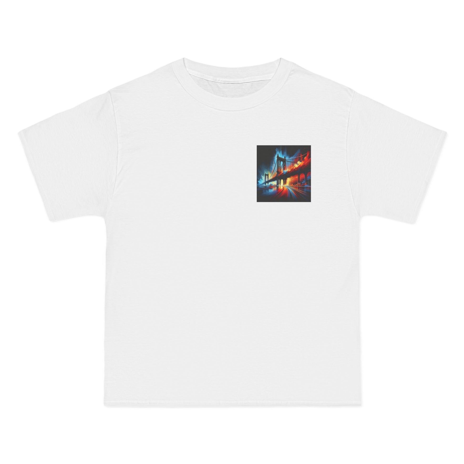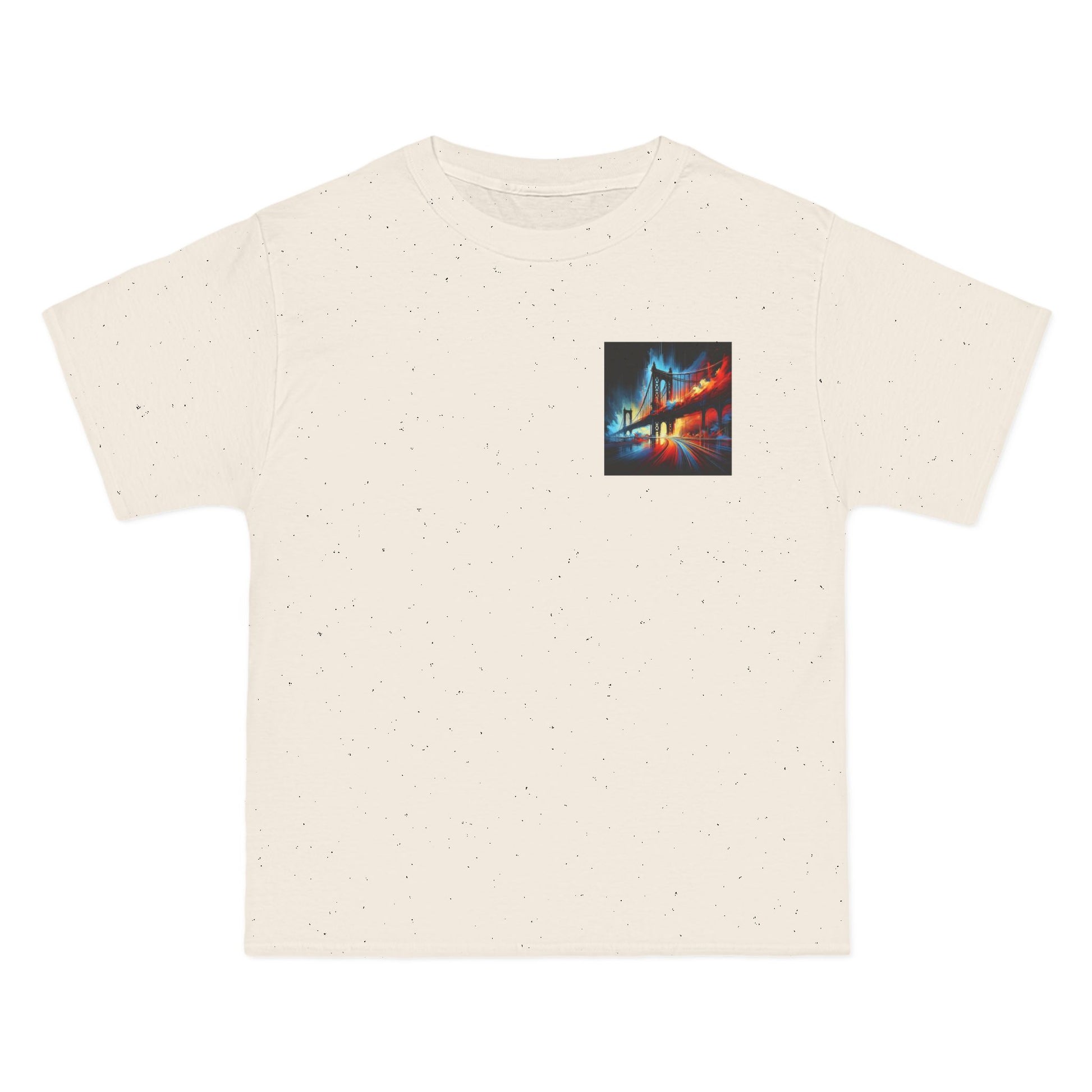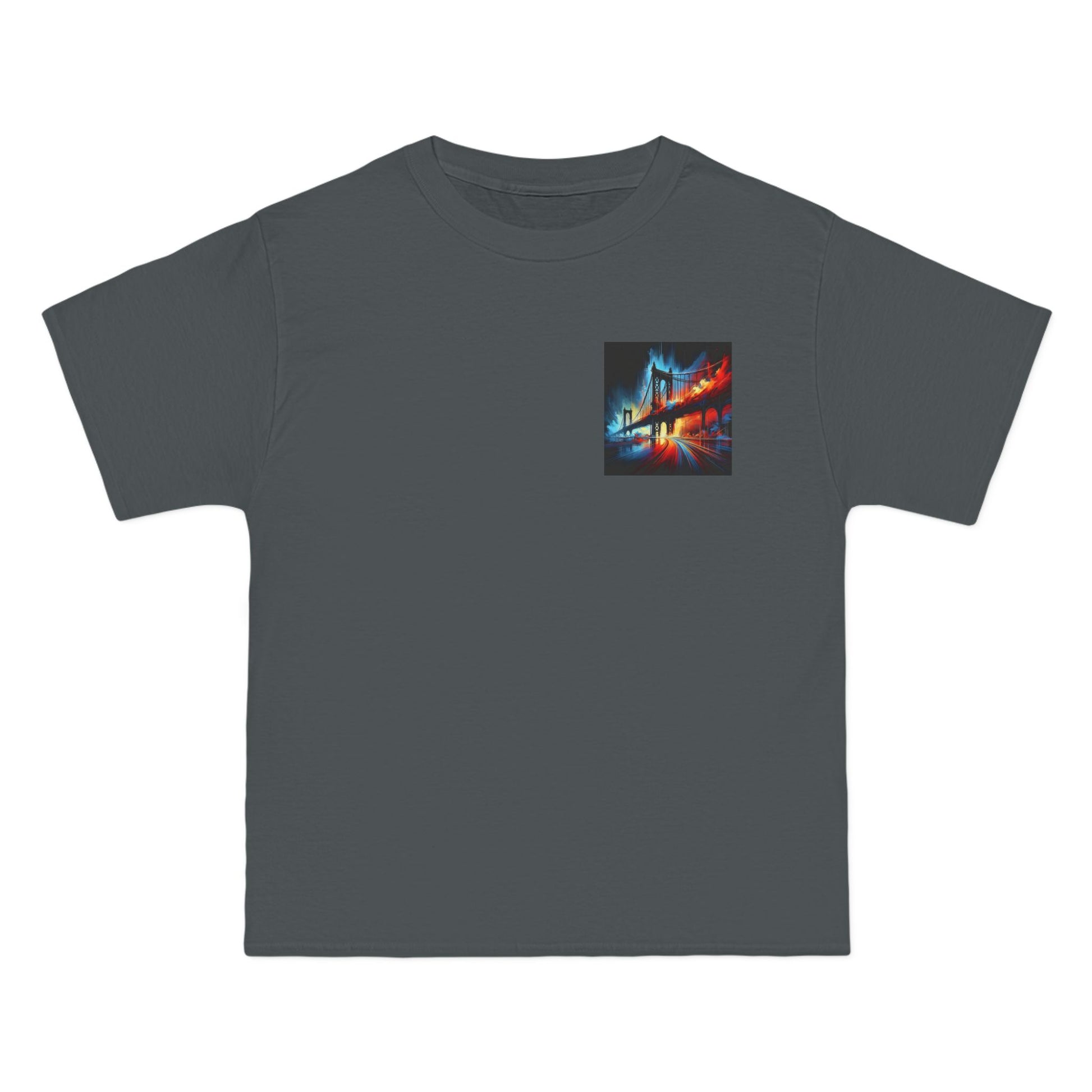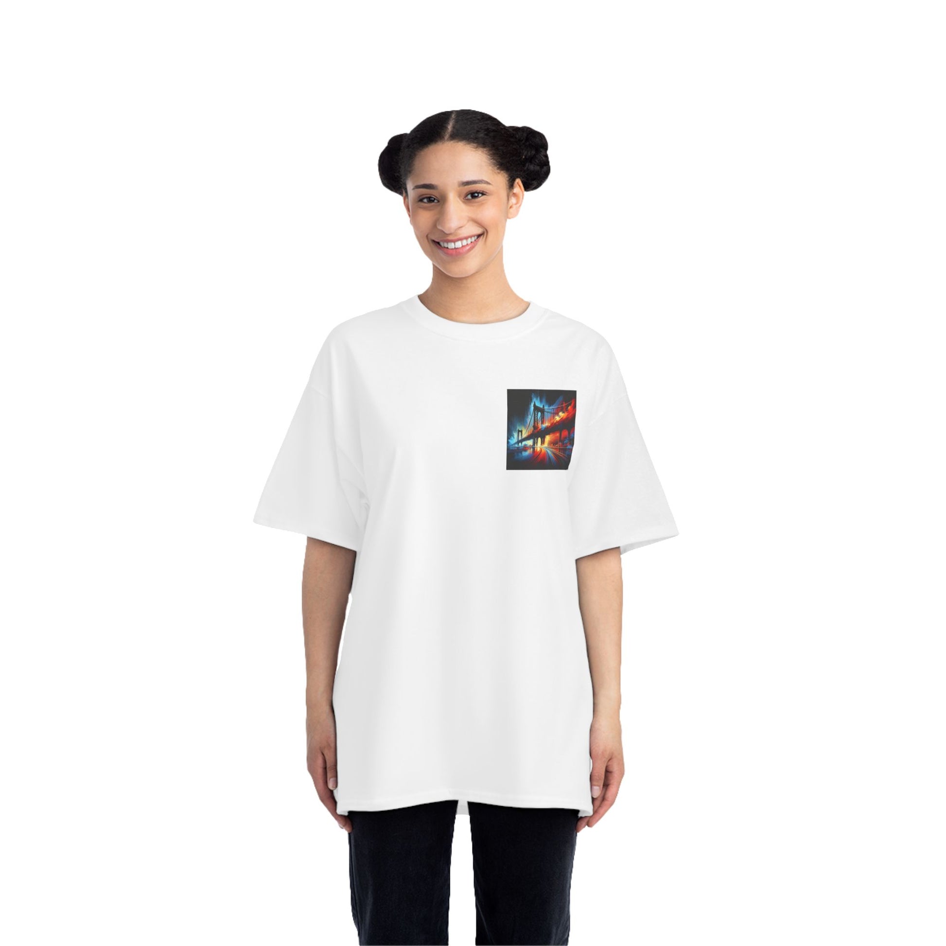 This expressive design captures the invigorating energy of a bridge in motion, brought to life with splashes of red, orange, and blue against a dark background. Every detail is a testament to your individuality and taste for the extraordinary. It's more than just a clothing piece; it's a statement of your distinct style and passion for the unconventional.