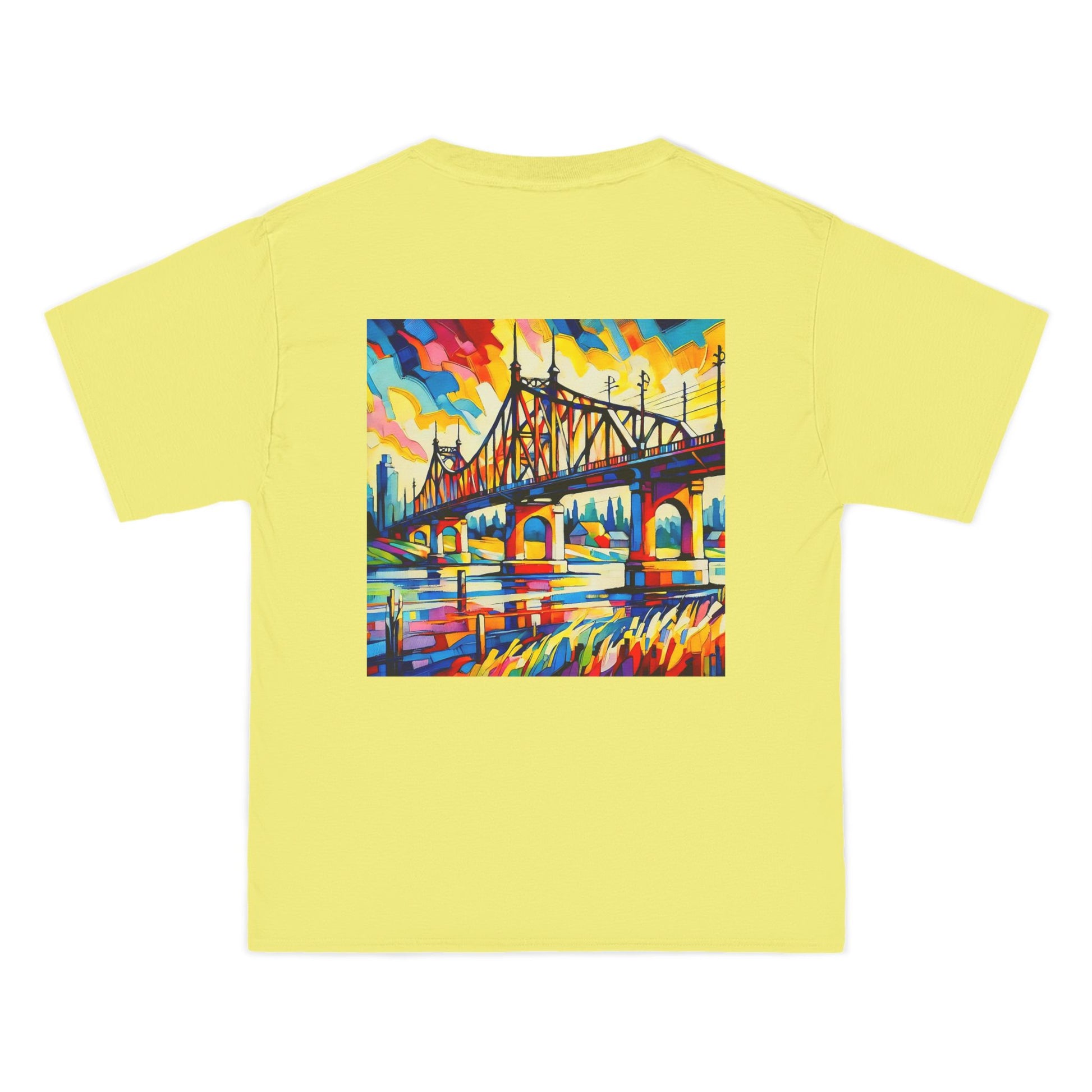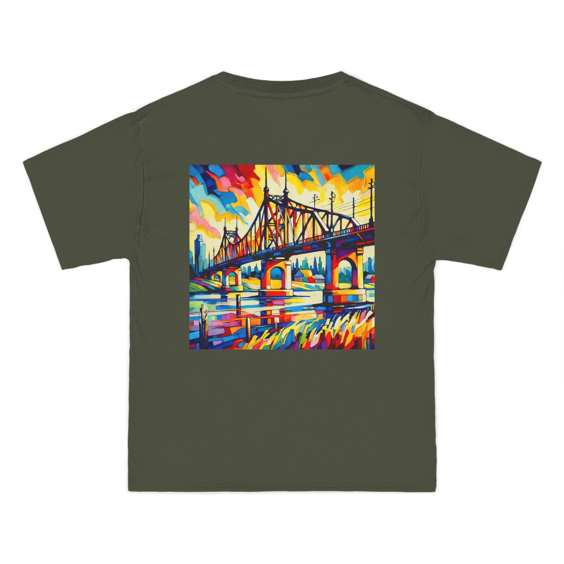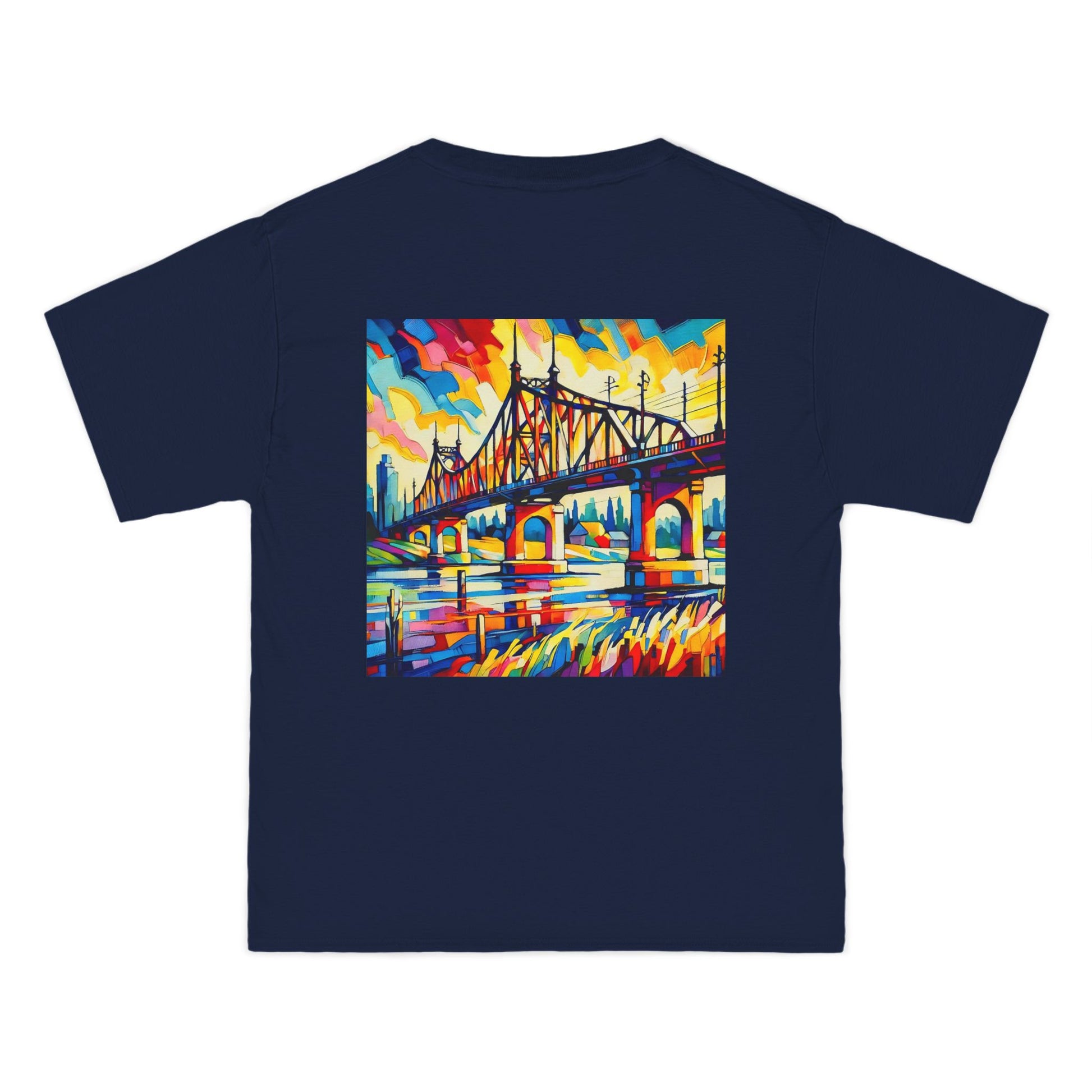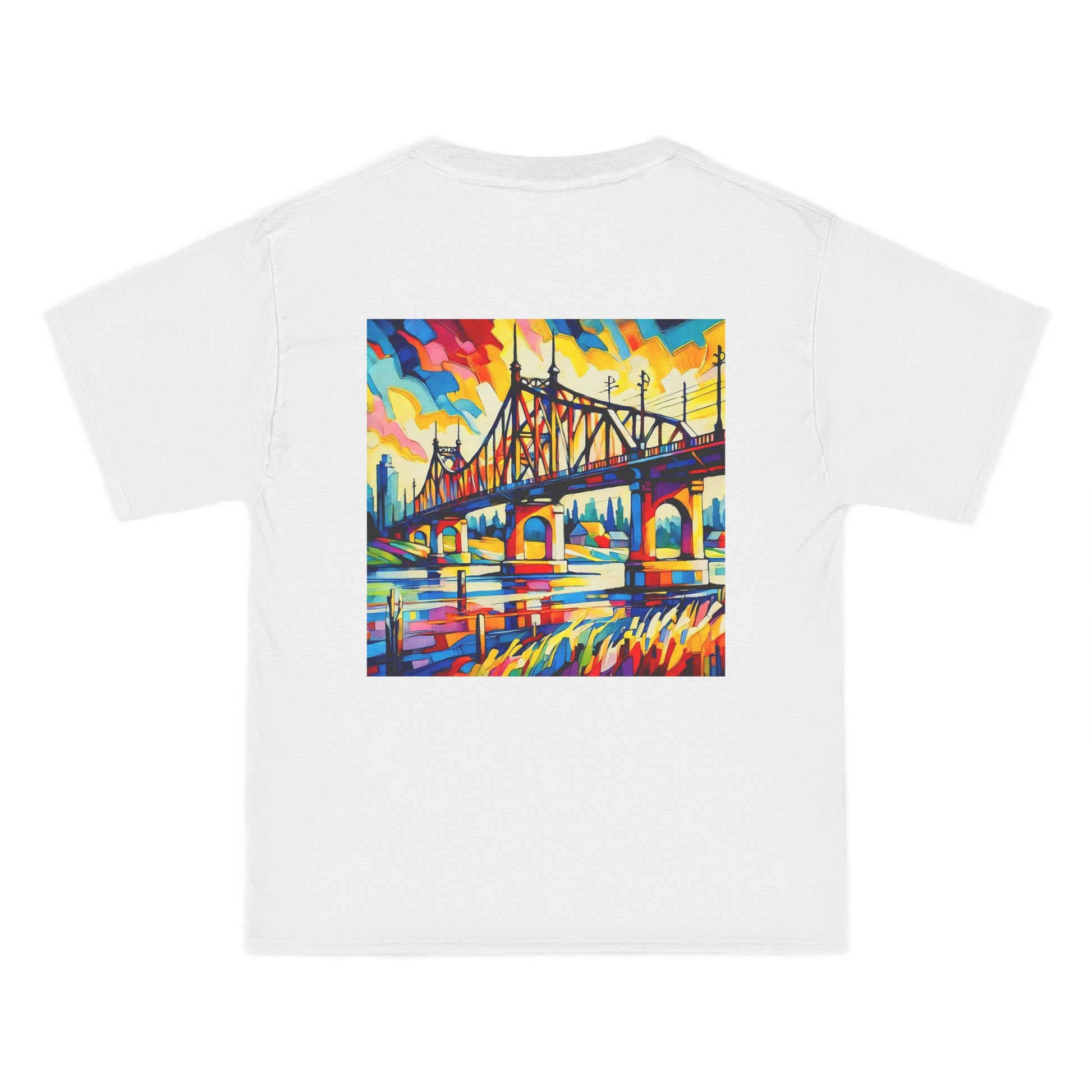 Step into a world of color and creativity with our "Bridge: Post-Impressionist Fauvism" tee. This wearable piece of art, featuring a bright, bold painting of a bridge over a river, is a testament to your unique taste and style. The design, bathed in vivid colors and simplified forms, echoes the harmony of art and nature, inviting you to Wear Your World.