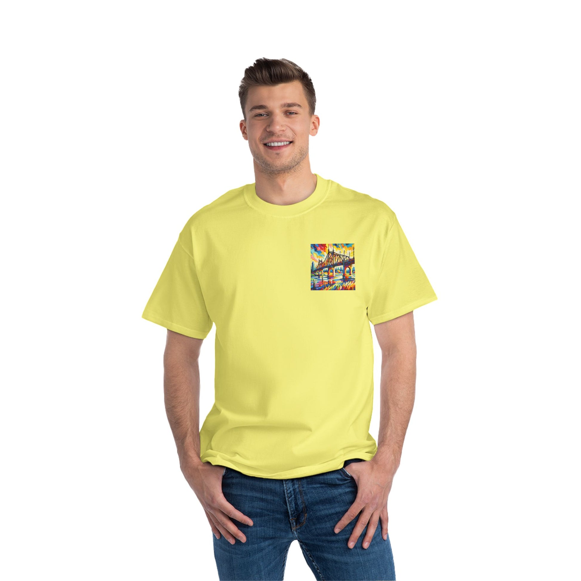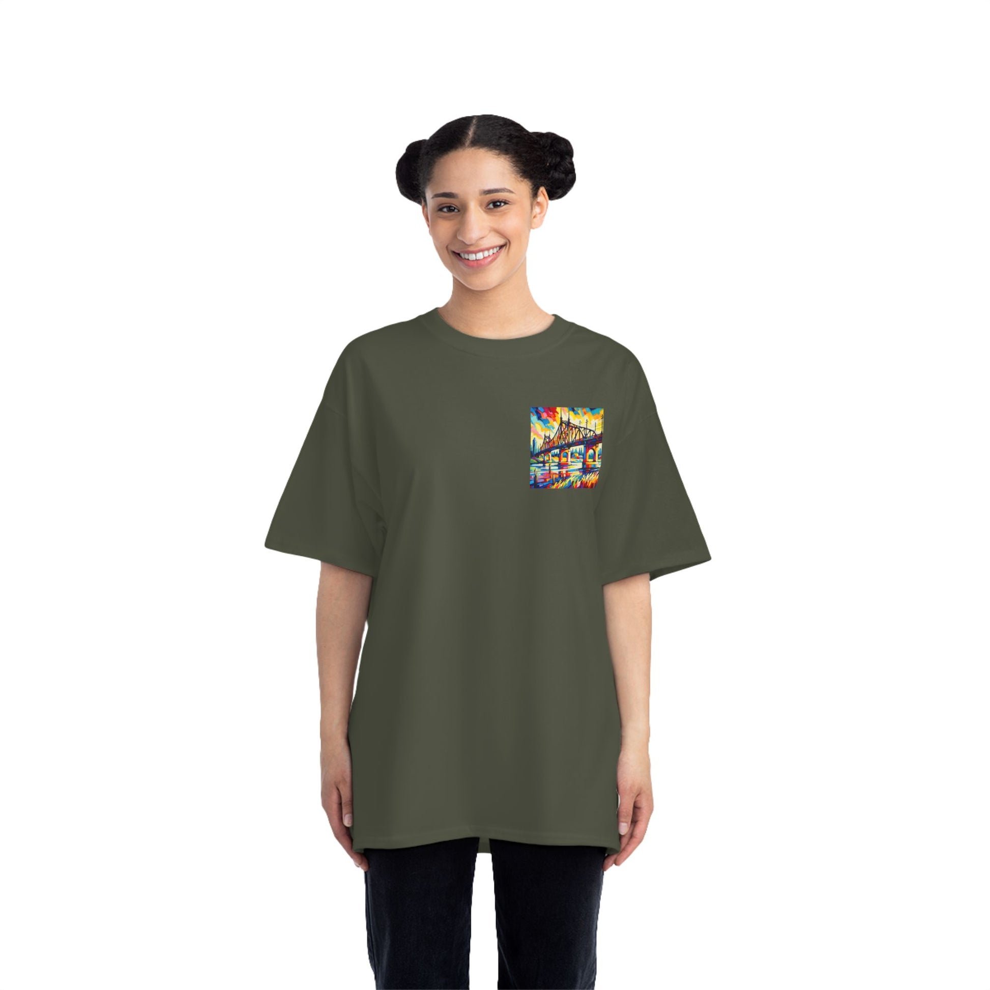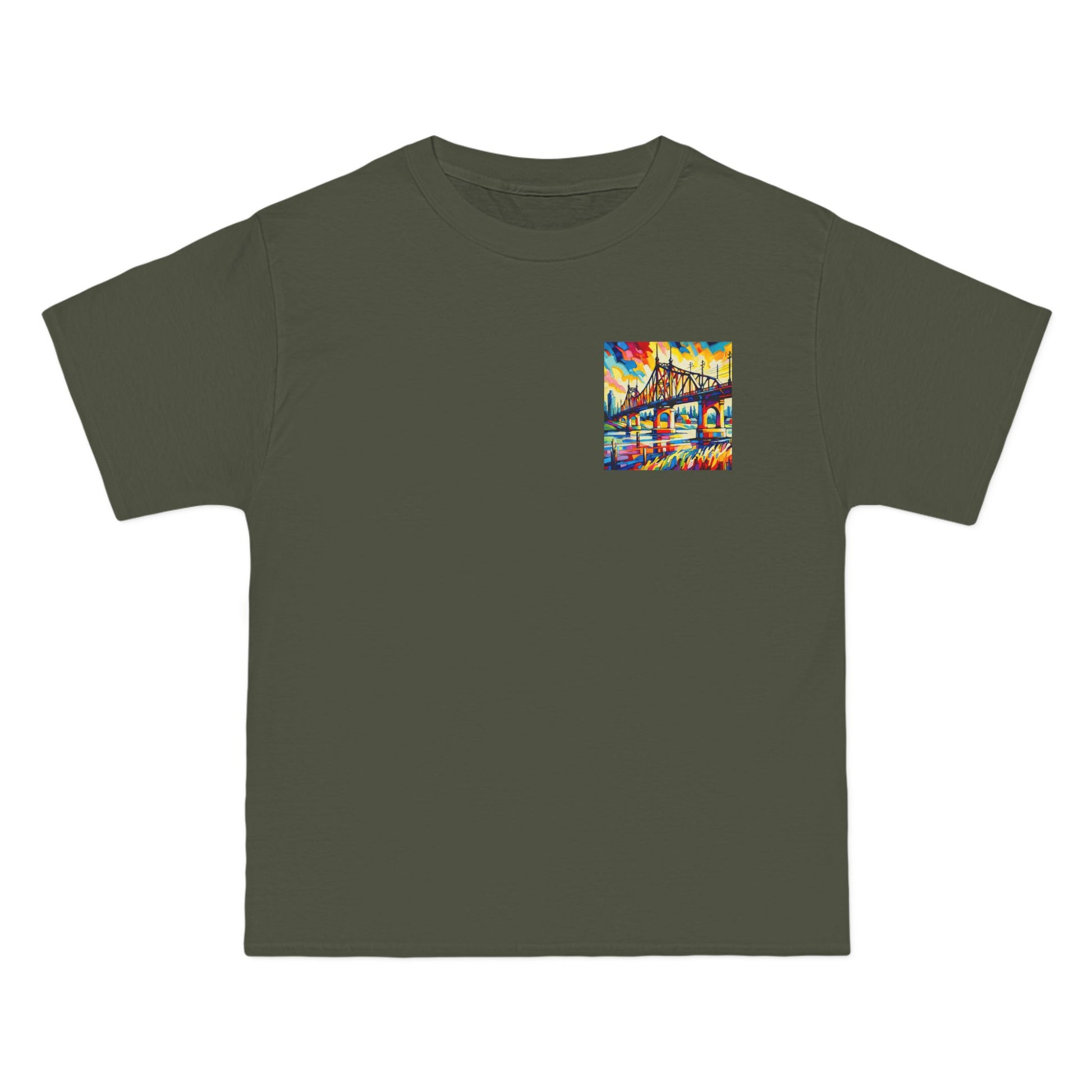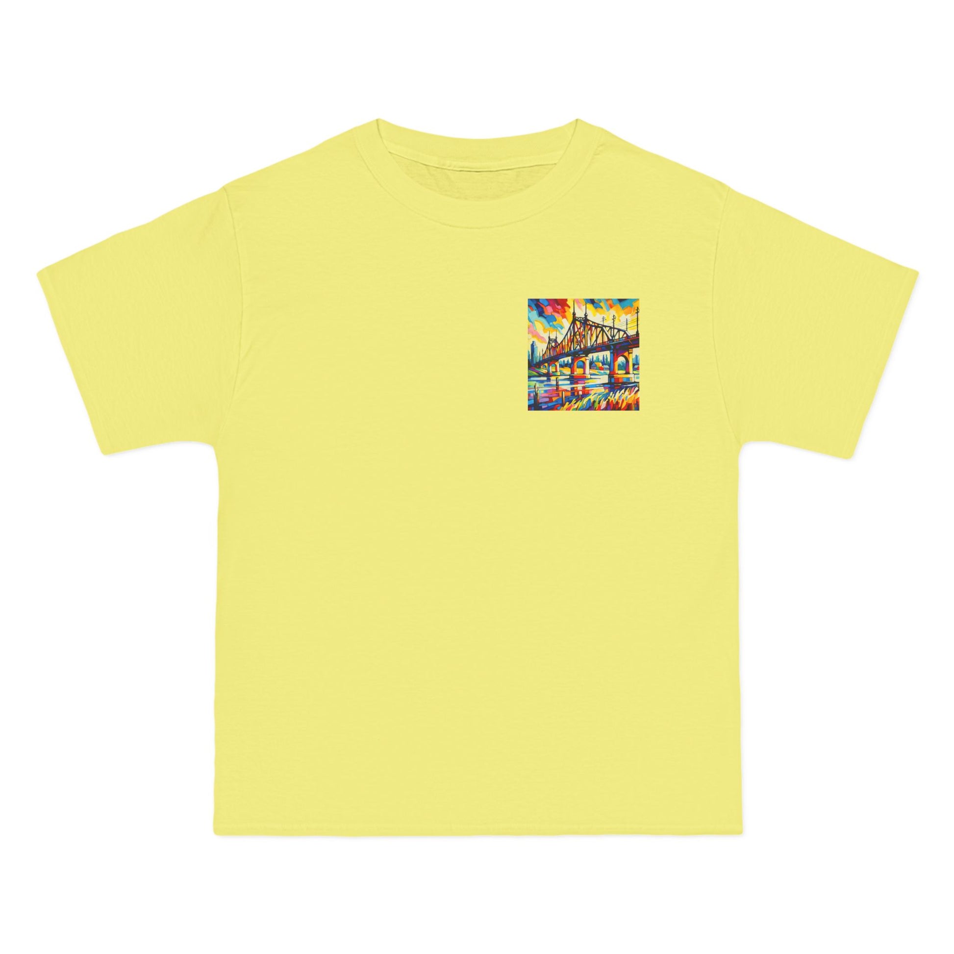 Step into a world of color and creativity with our "Bridge: Post-Impressionist Fauvism" tee. This wearable piece of art, featuring a bright, bold painting of a bridge over a river, is a testament to your unique taste and style. The design, bathed in vivid colors and simplified forms, echoes the harmony of art and nature, inviting you to Wear Your World.
