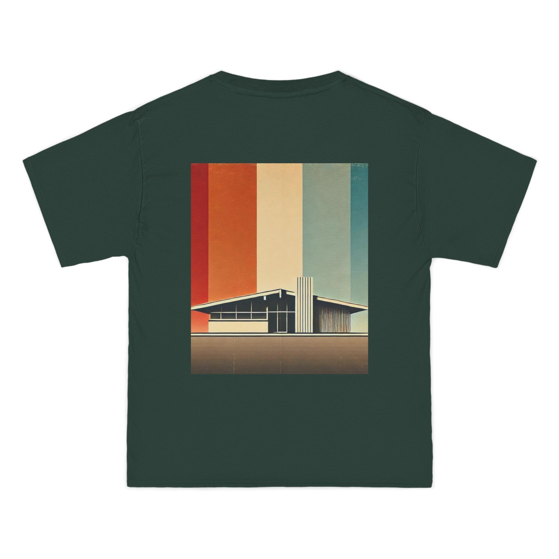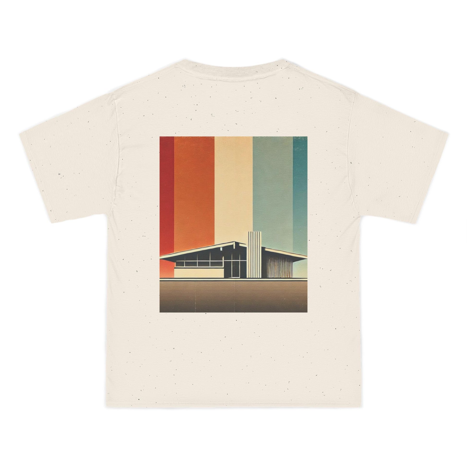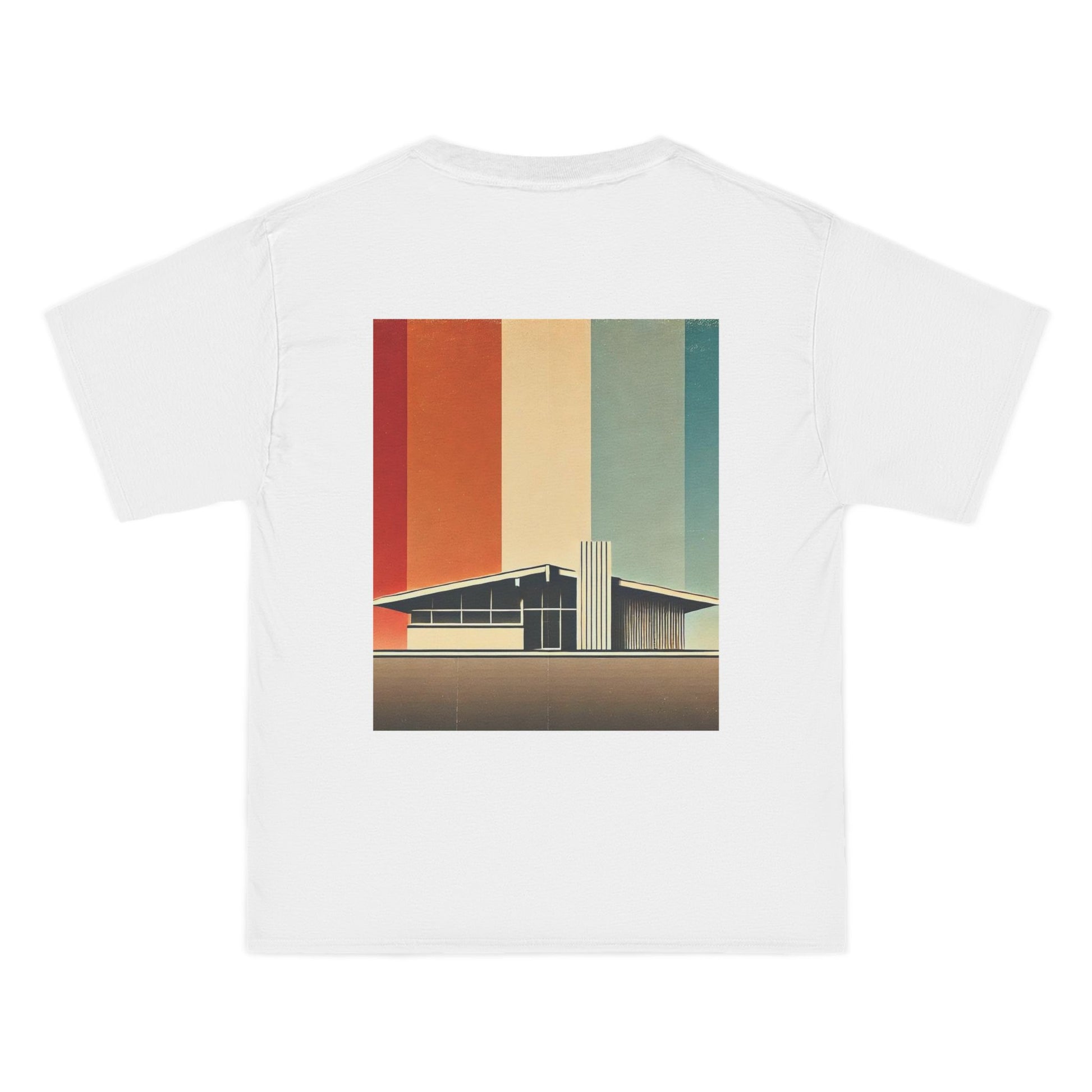 Step into a world where fashion meets art and nostalgia with our Buildings: Minimalist Retro tee. This shirt showcases a captivating minimalist mid-century modern house, beautifully set against a gradient background. The vintage, grainy texture adds a touch of nostalgia, turning back the hands of time while maintaining a modern edge.