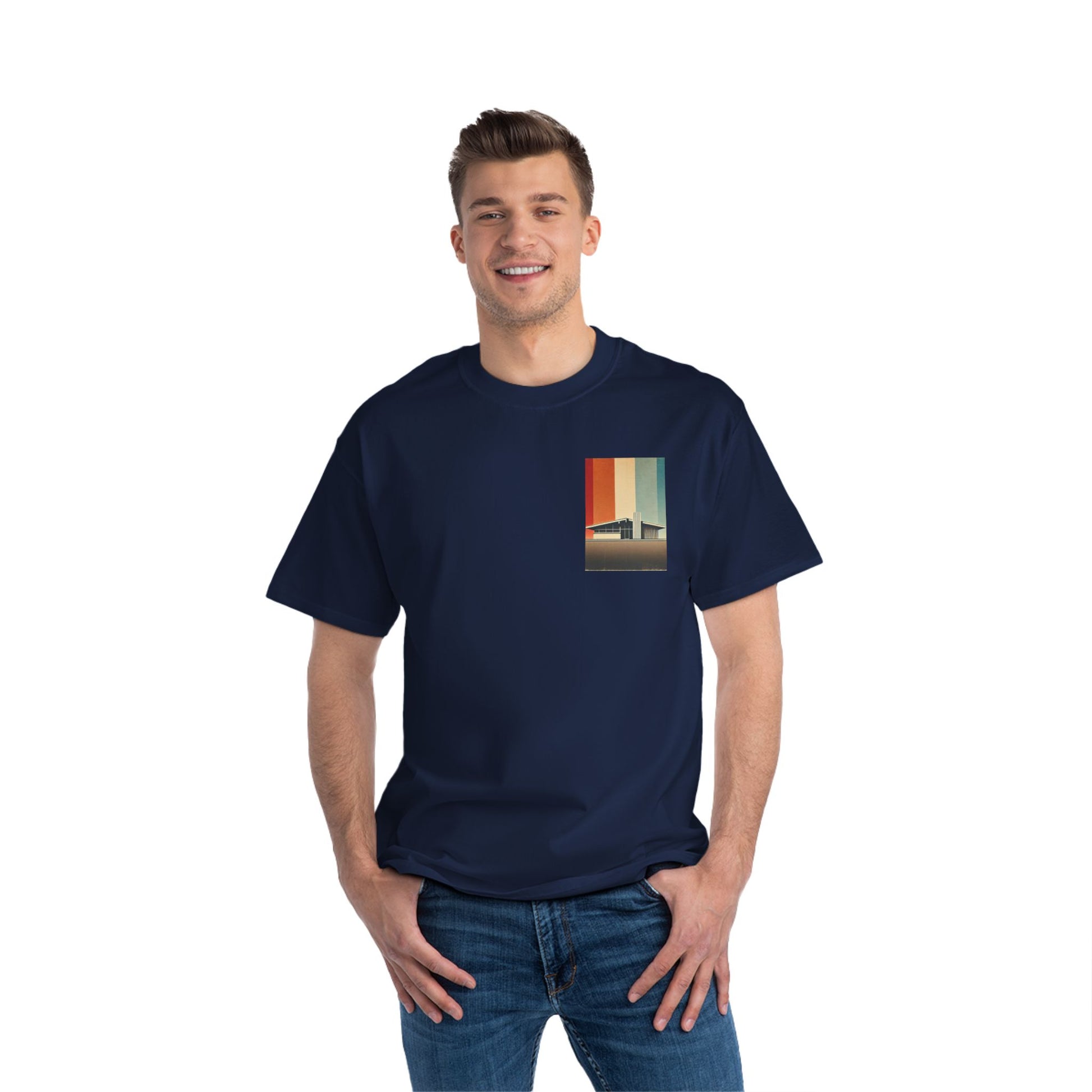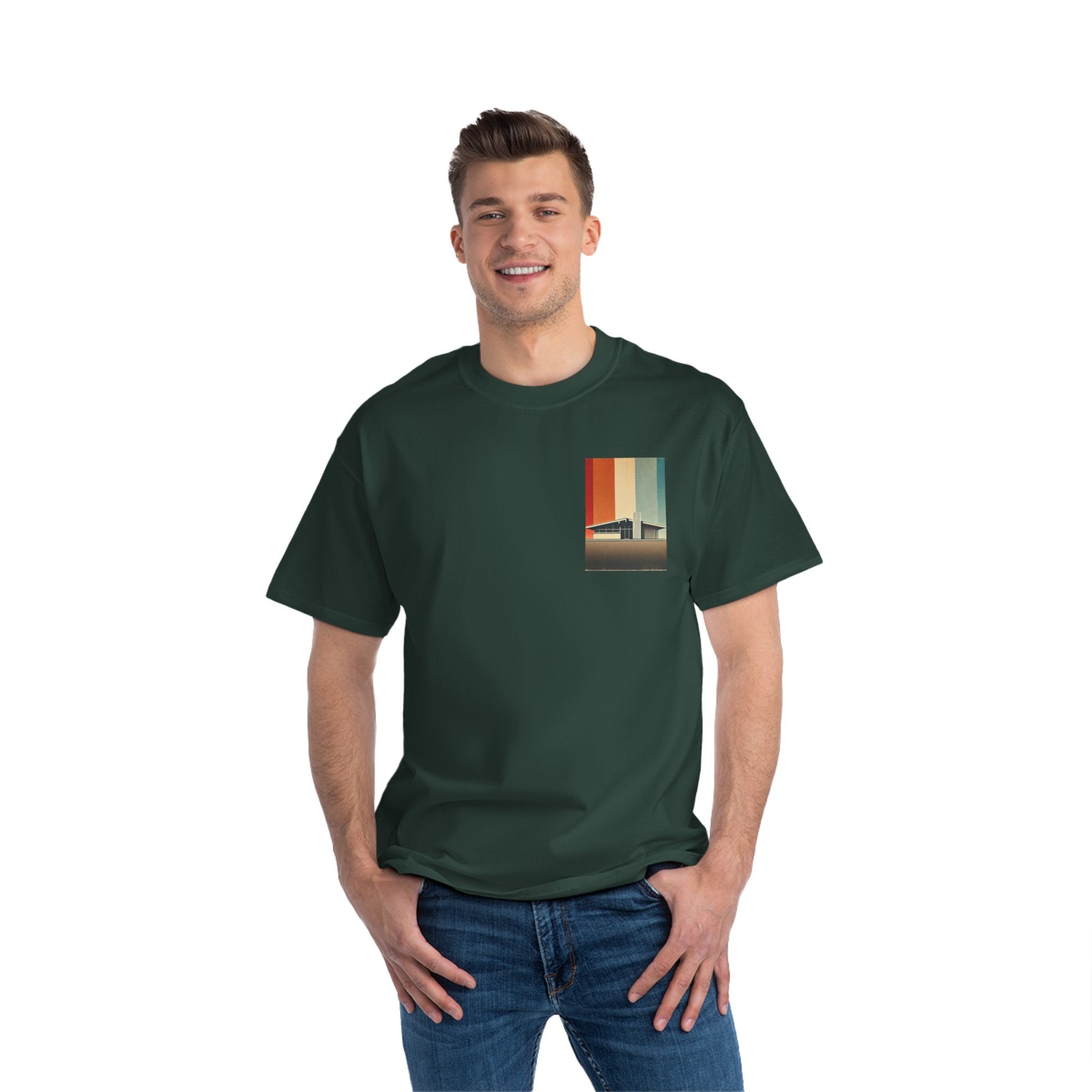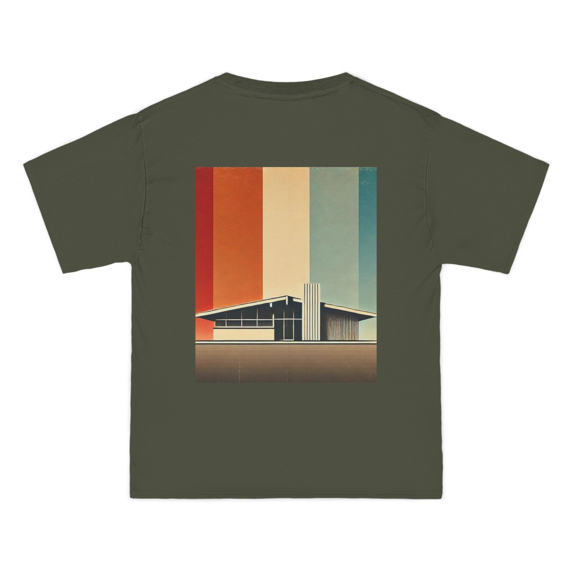 Step into a world where fashion meets art and nostalgia with our Buildings: Minimalist Retro tee. This shirt showcases a captivating minimalist mid-century modern house, beautifully set against a gradient background. The vintage, grainy texture adds a touch of nostalgia, turning back the hands of time while maintaining a modern edge.