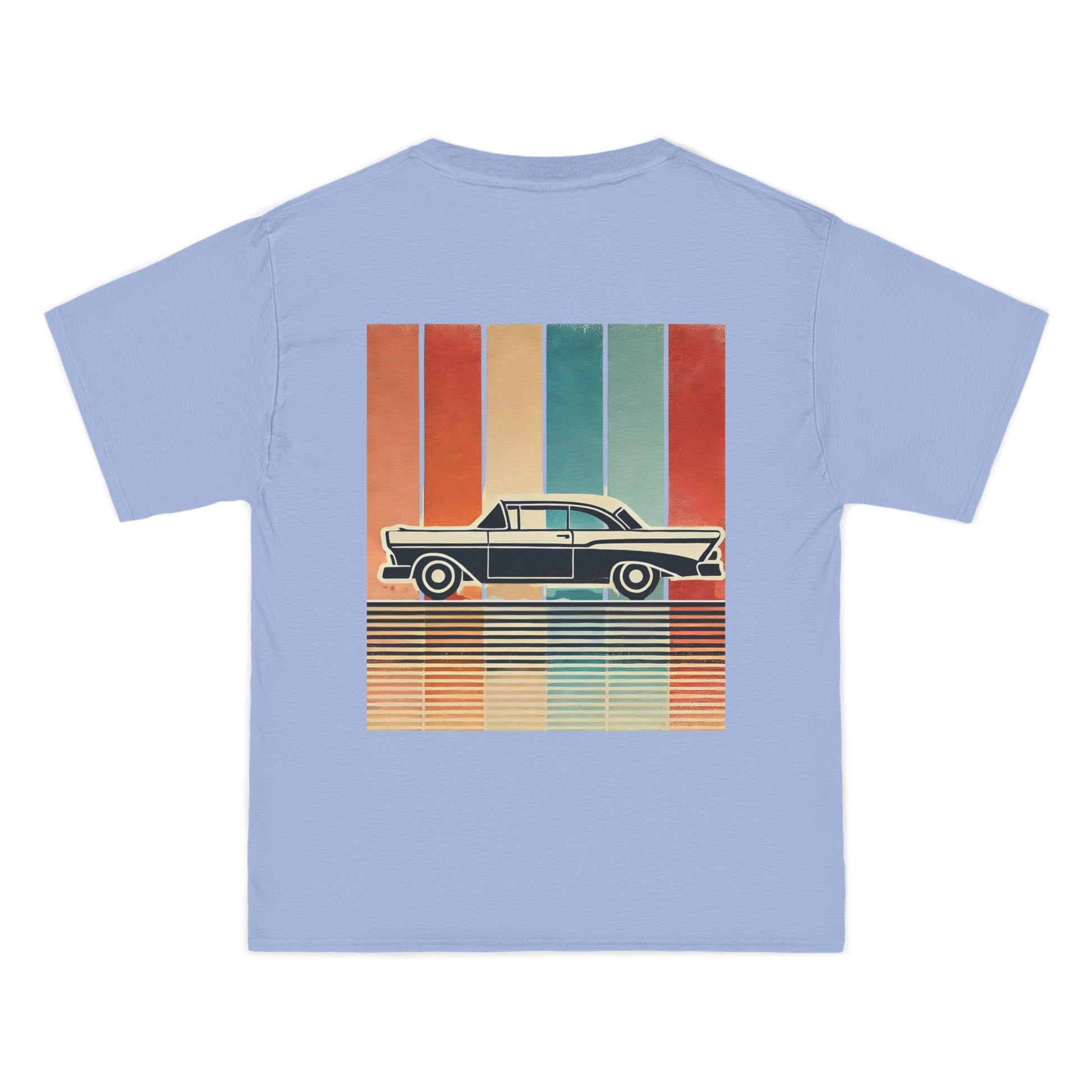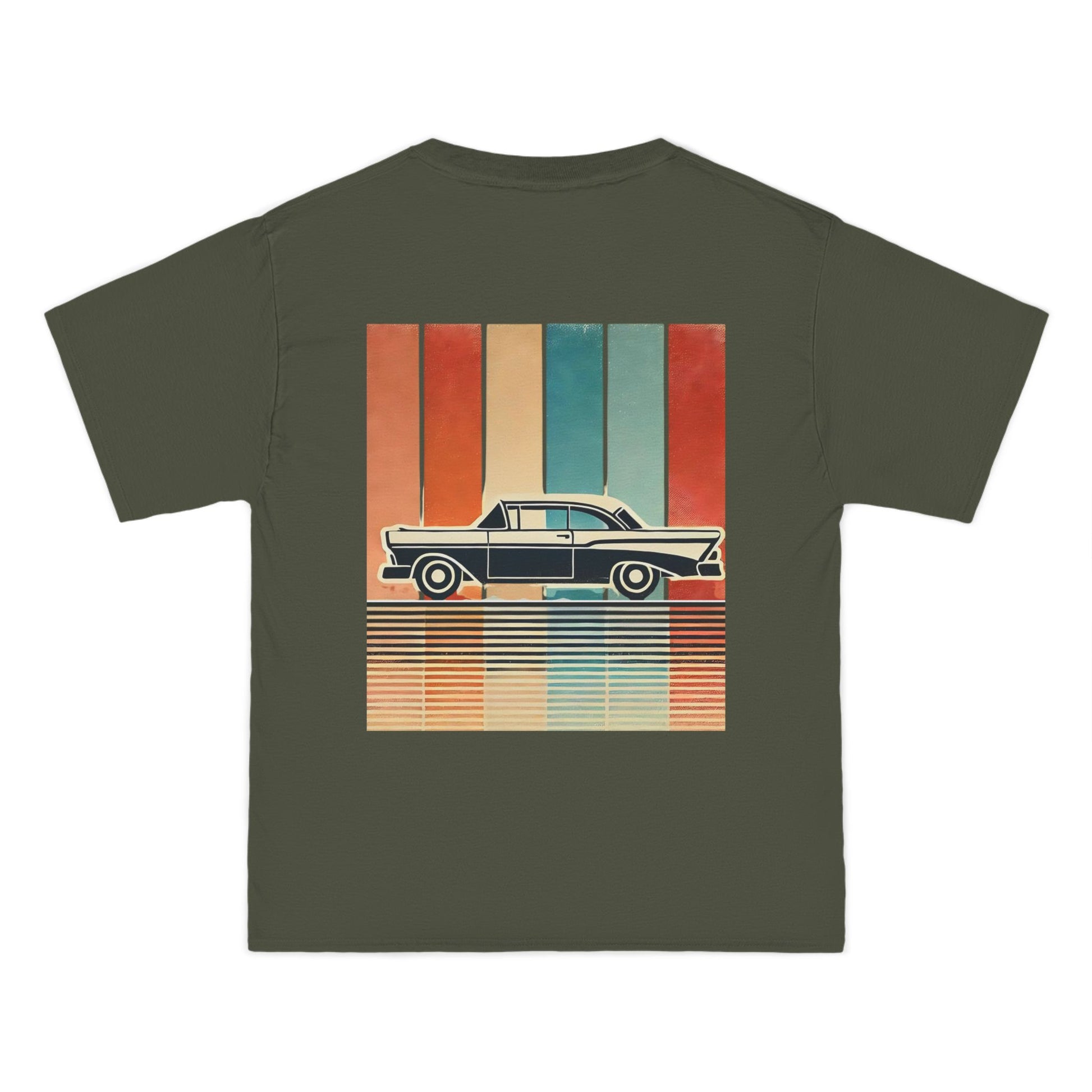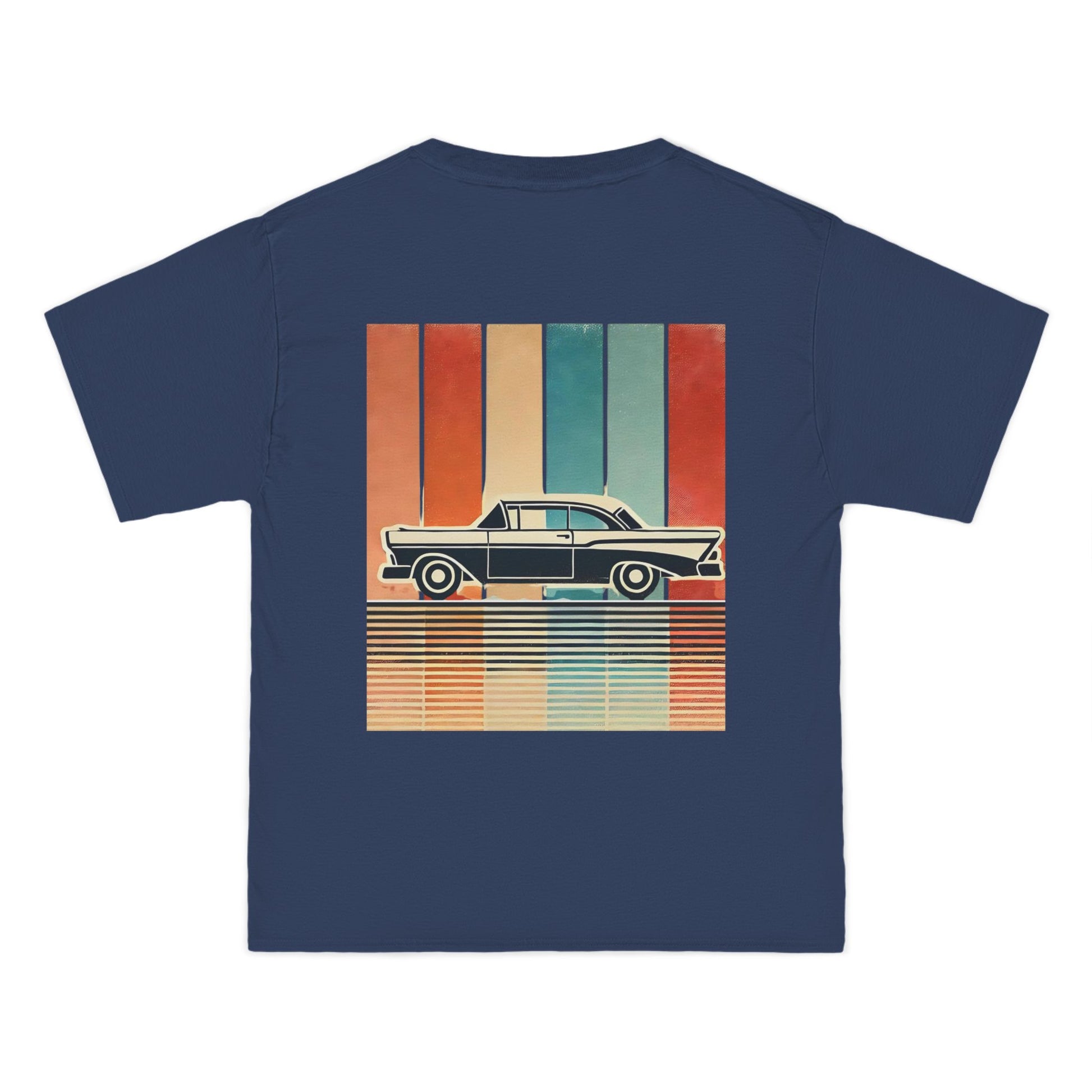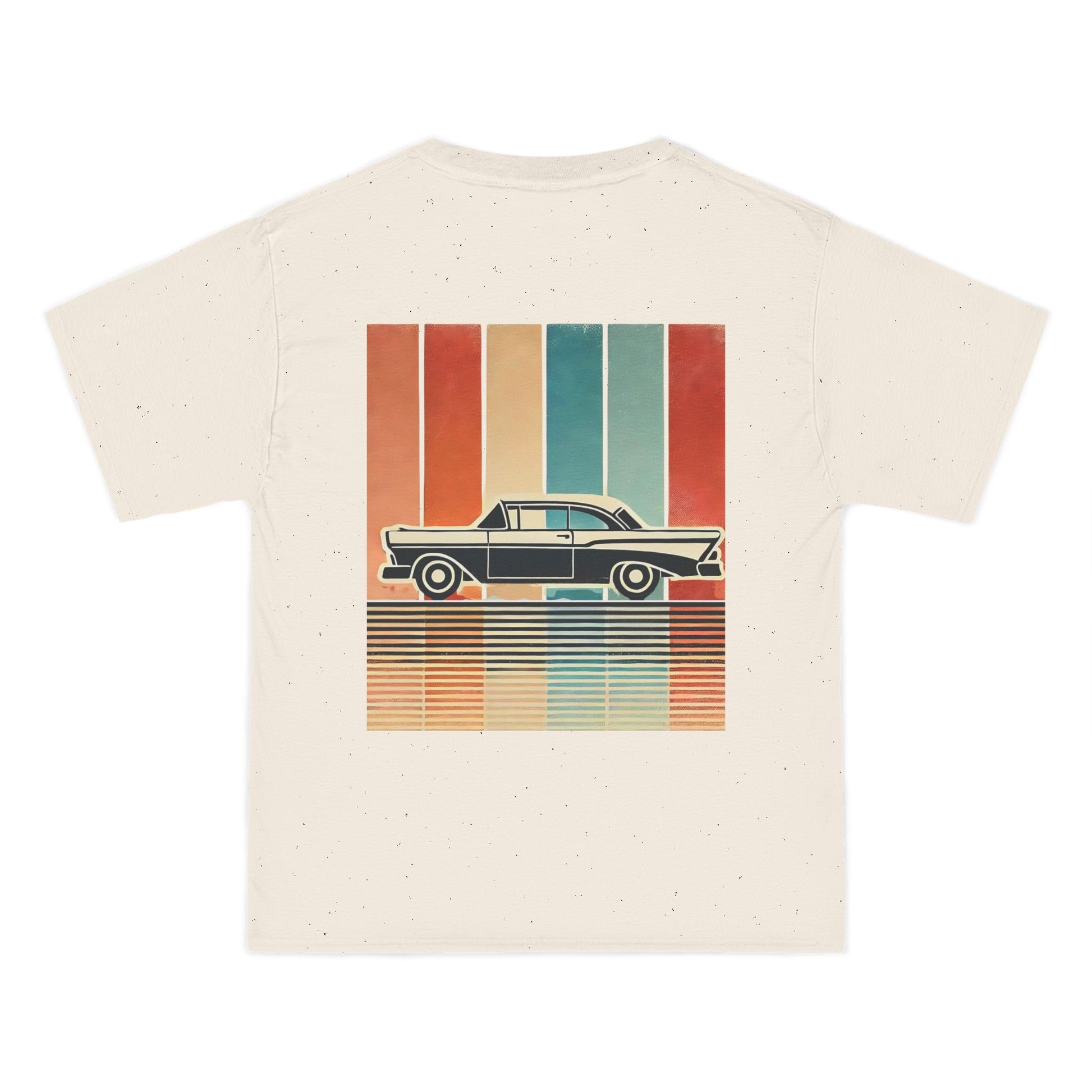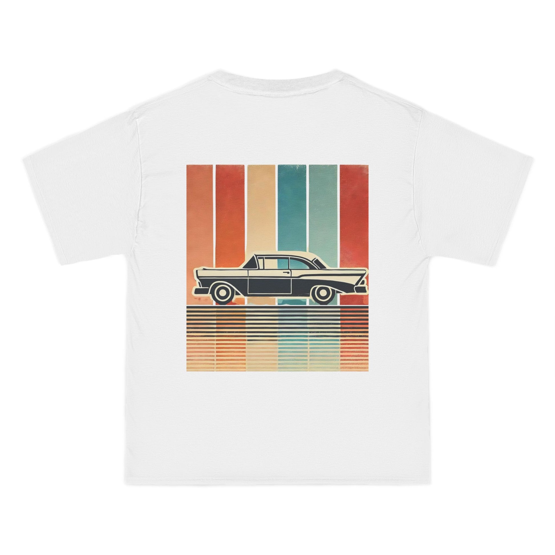 Take a ride down memory lane with our Cars: Minimalist Retro tee. This design is more than just a shirt; it's wearable art. Feel the nostalgia of a bygone era with the vintage car silhouette, meticulously crafted with bold, clean lines. Set against a backdrop of a vertical gradient in muted retro colours, the design evokes a sense of captivating simplicity. The grainy, worn texture adds a touch of authenticity, like a treasured photo from a classic road trip.