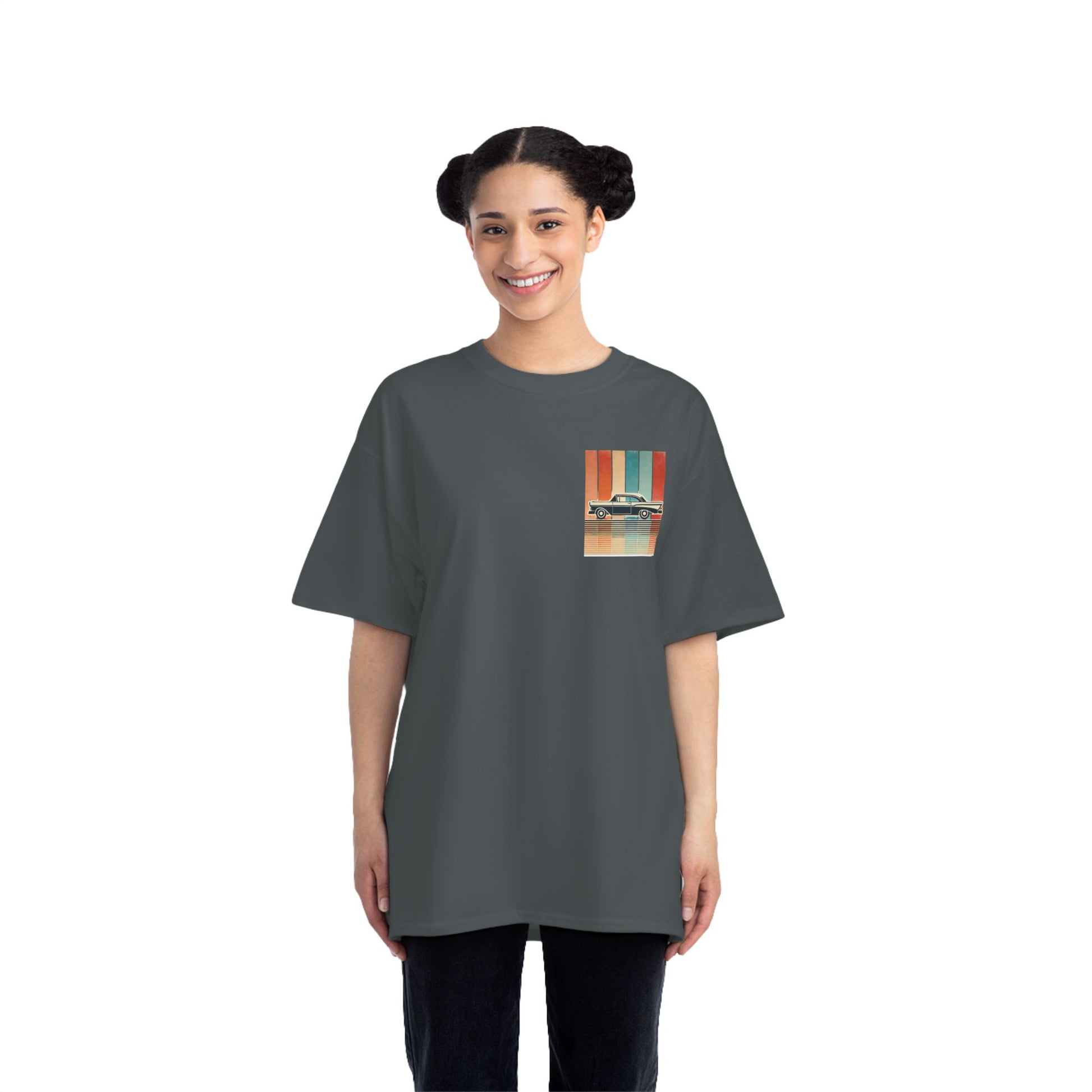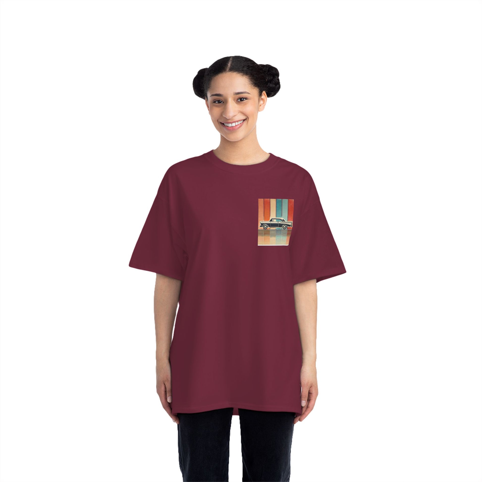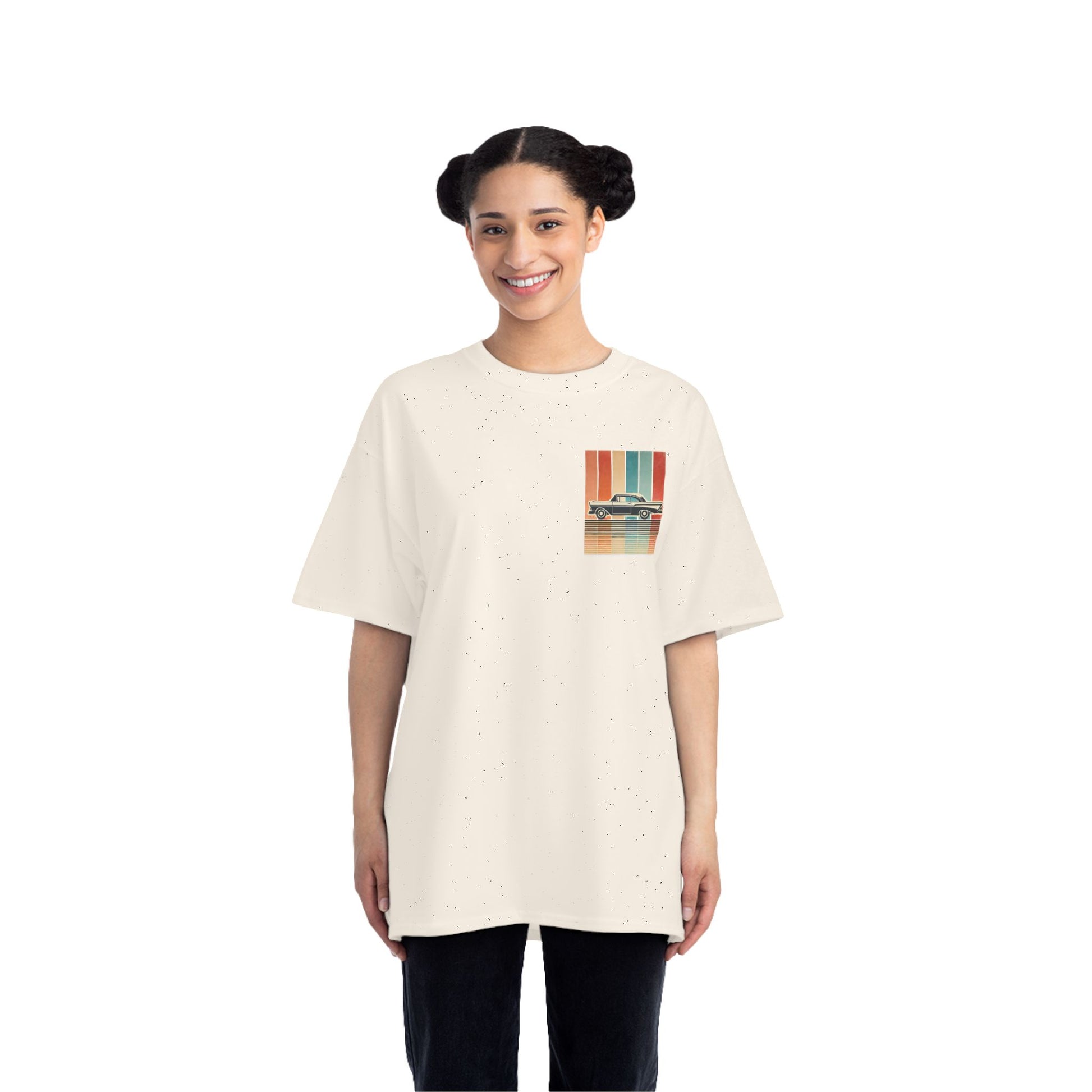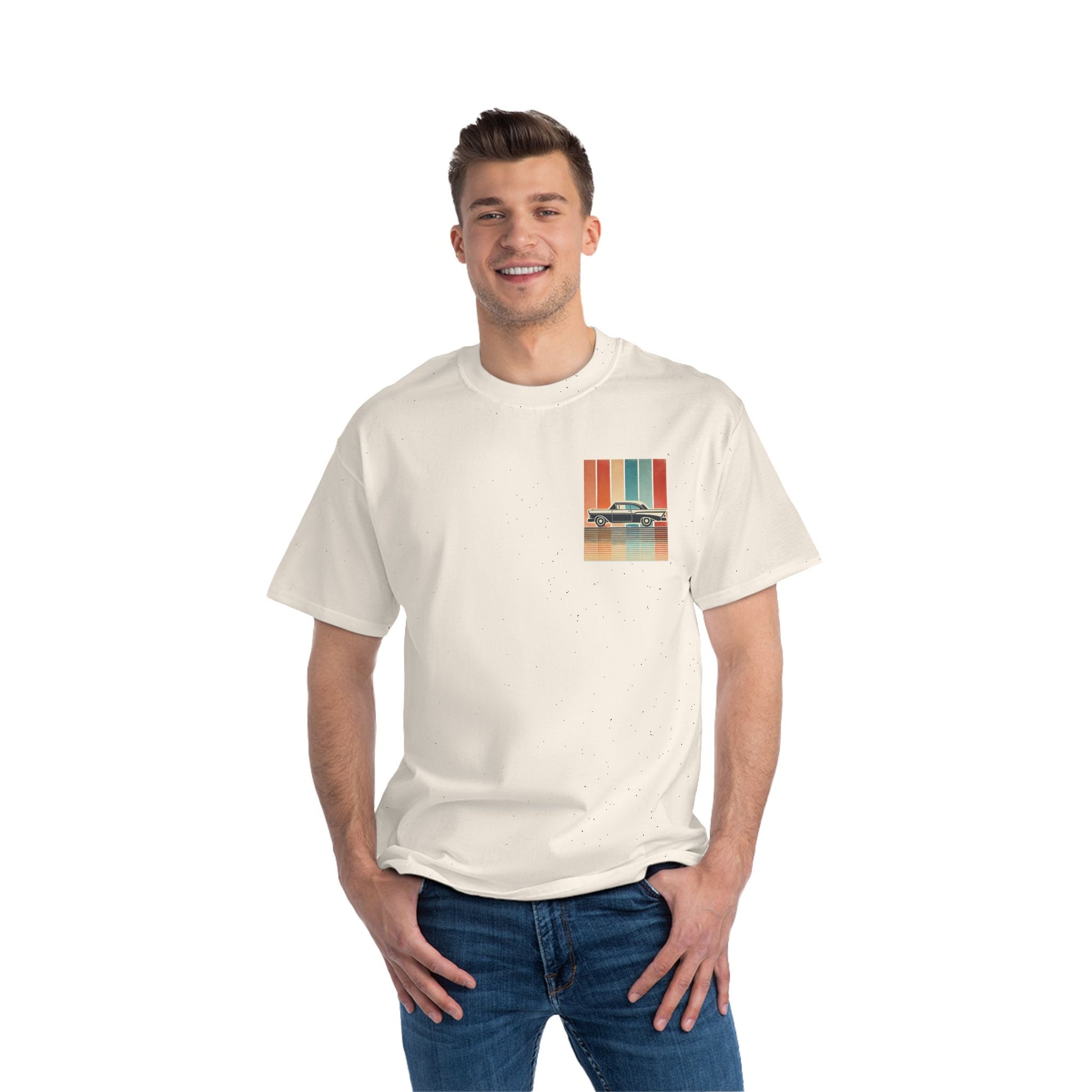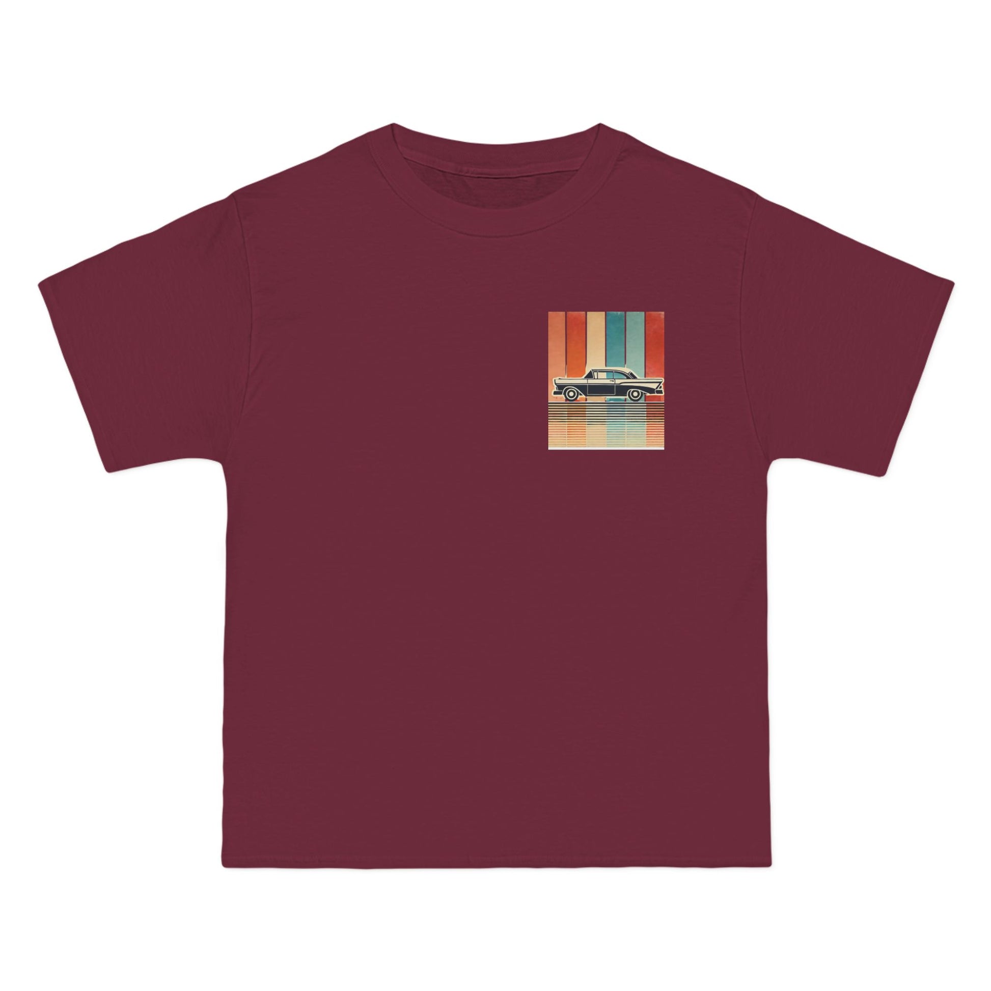 Take a ride down memory lane with our Cars: Minimalist Retro tee. This design is more than just a shirt; it's wearable art. Feel the nostalgia of a bygone era with the vintage car silhouette, meticulously crafted with bold, clean lines. Set against a backdrop of a vertical gradient in muted retro colours, the design evokes a sense of captivating simplicity. The grainy, worn texture adds a touch of authenticity, like a treasured photo from a classic road trip.