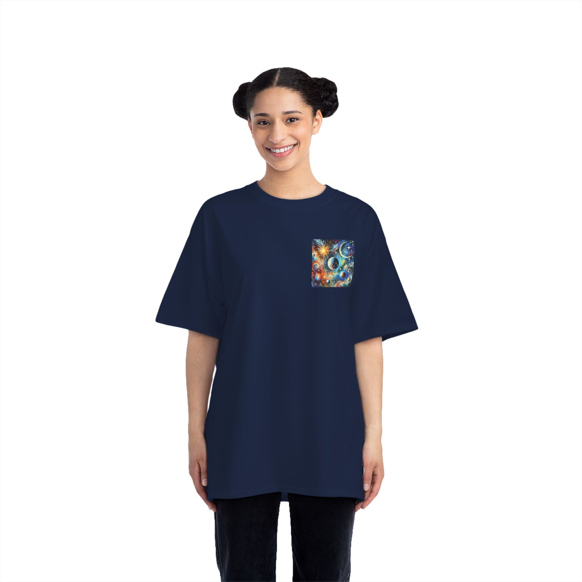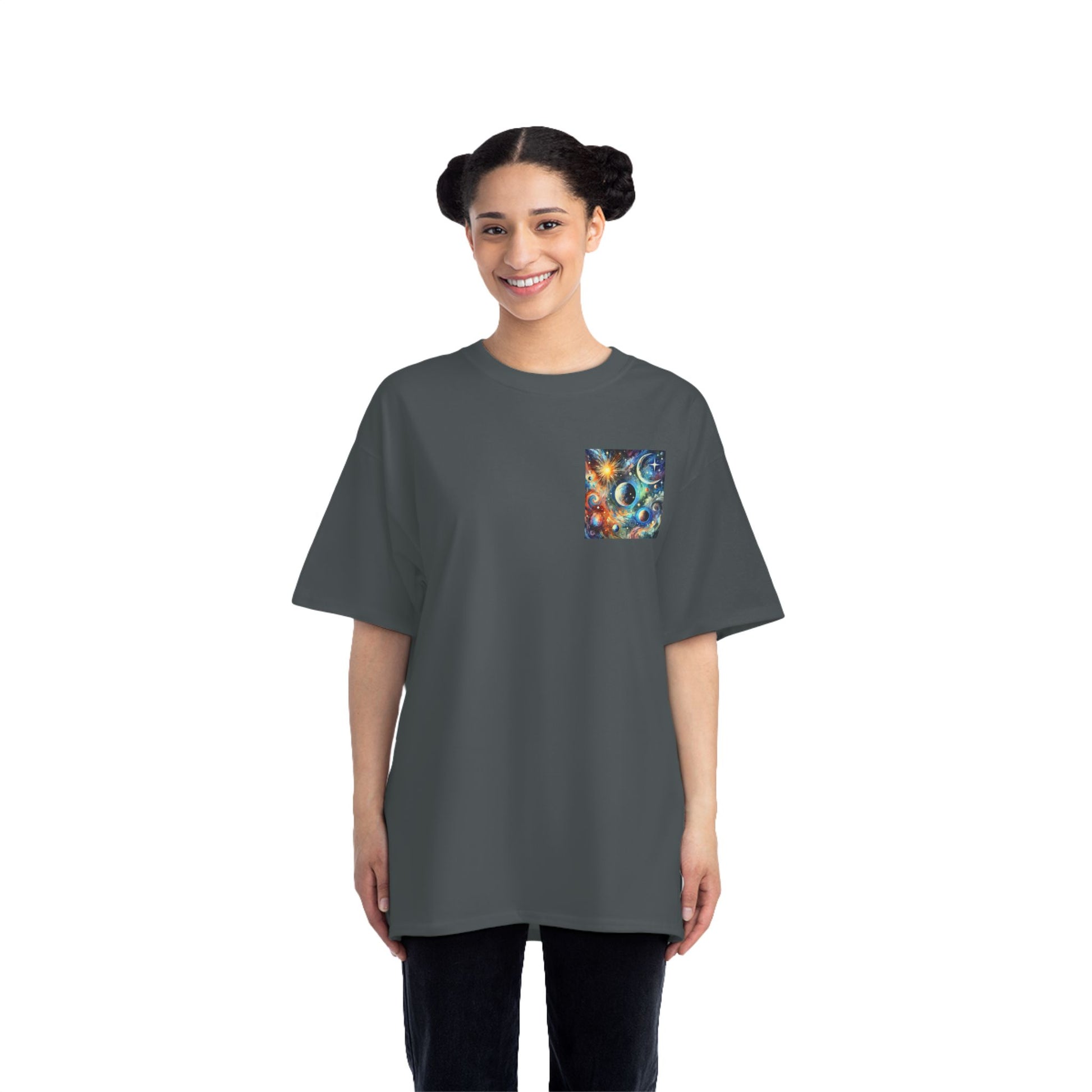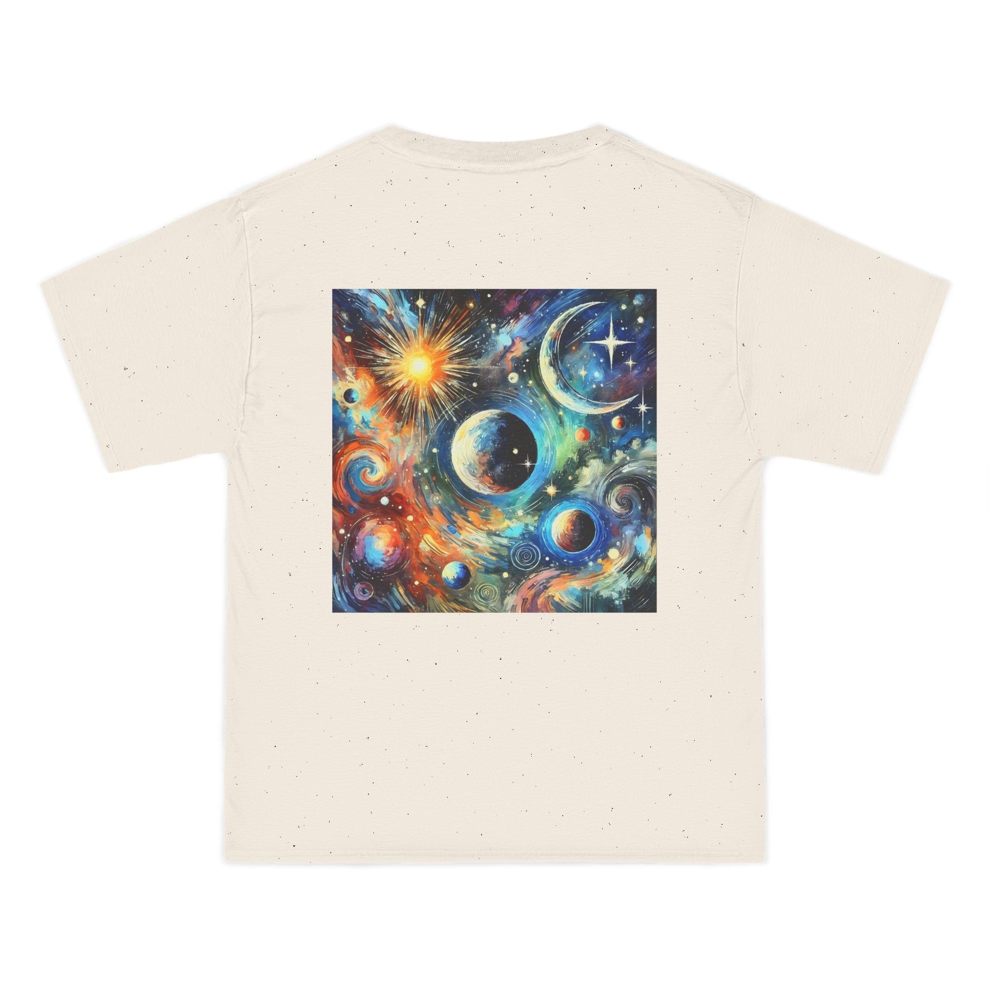 Step into a dreamy cosmic realm with our Celestial Bodies t-shirt, an abstract masterpiece that marries fashion with the mysteries of the universe. This mystical, ethereal design showcases the sun, moon, and stars in an artistic symphony of impressionistic strokes, creating a captivating celestial landscape that's as unique as you.