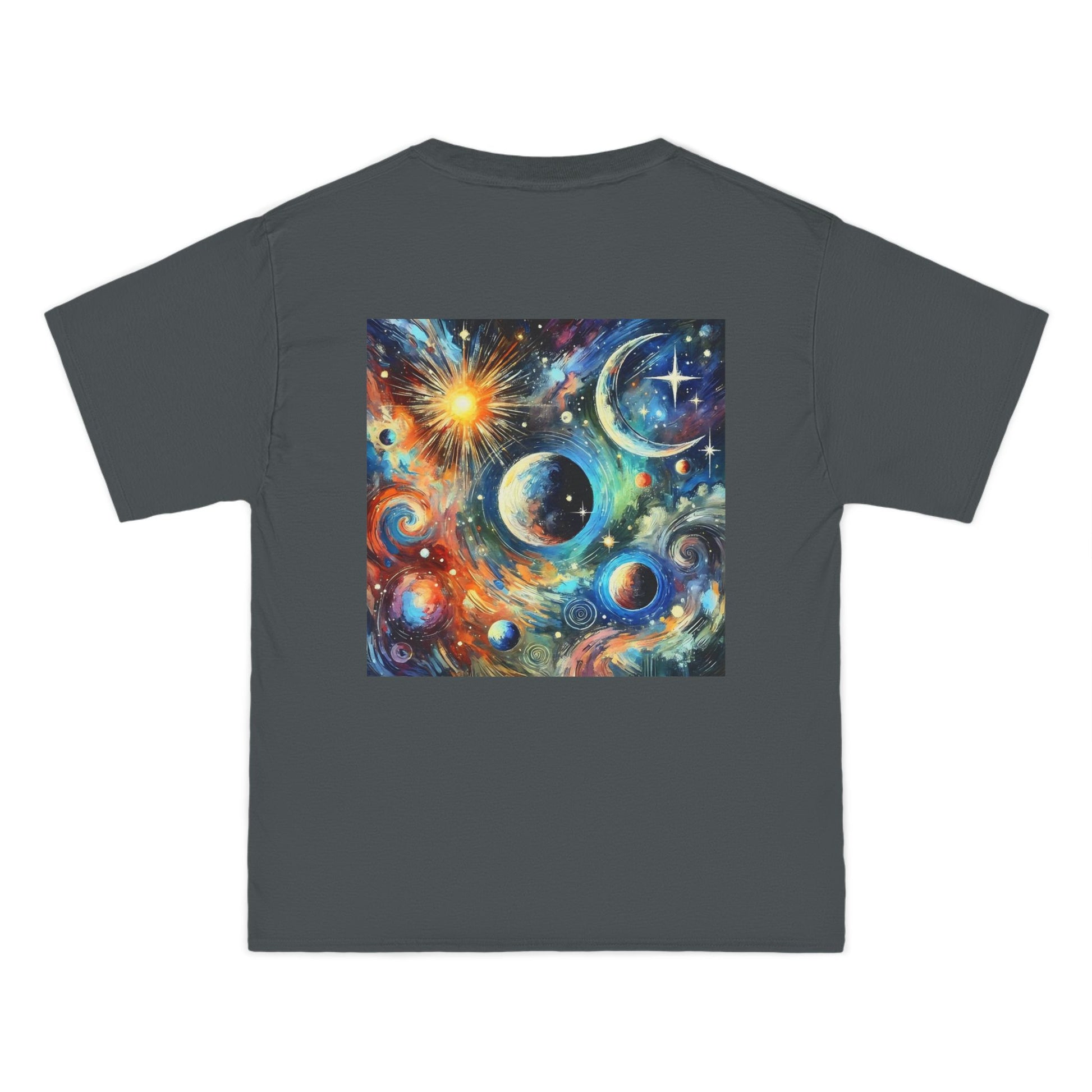 So, why not 'Express Yourself' with our Celestial Bodies t-shirt? It's more than a piece of clothing; it's a statement, a conversation starter, a testament to your individuality. Let this tee take you on a cosmic journey, evoking feelings of joy, pride, and nostalgia, and reminding you of the infinite possibilities that lie within your creative universe.