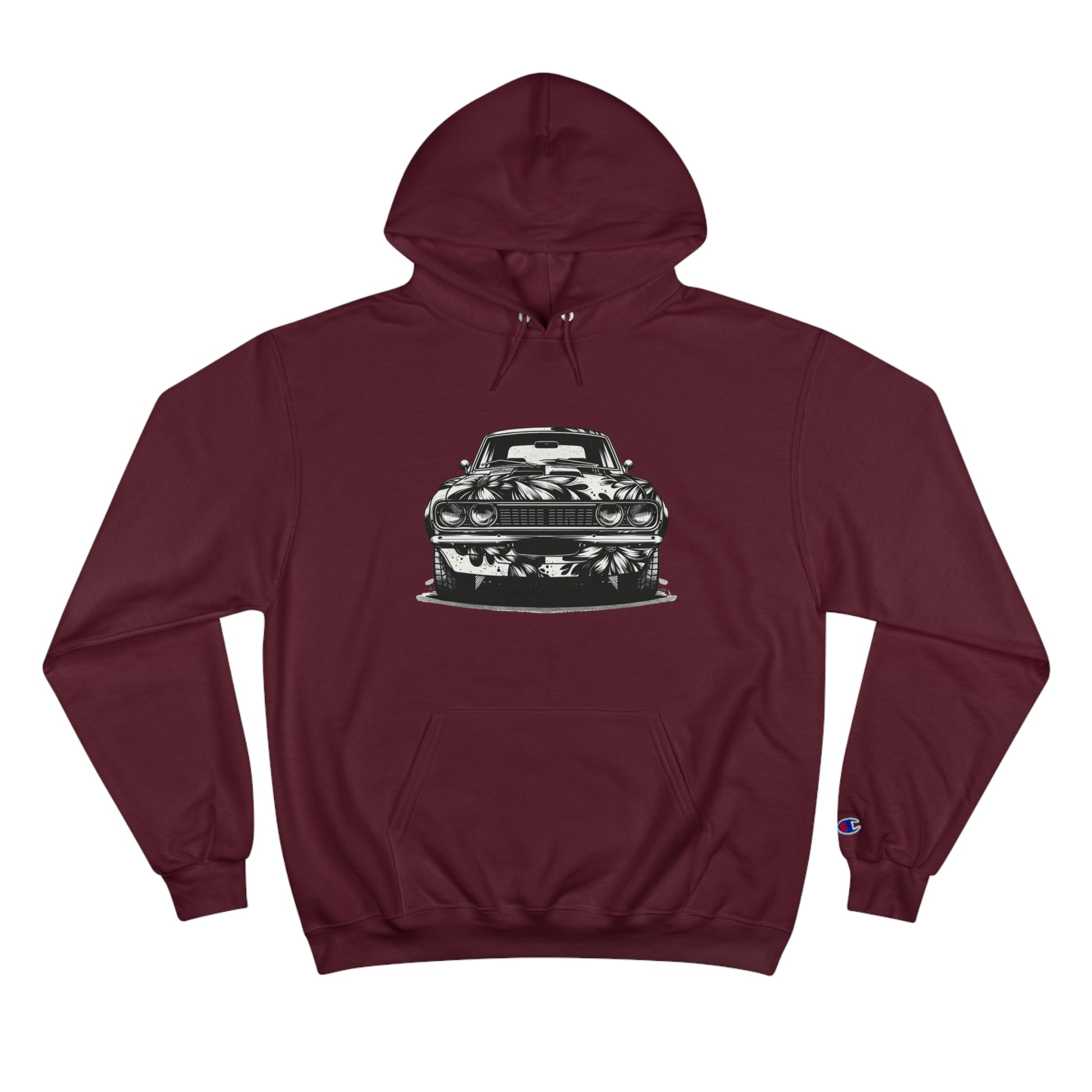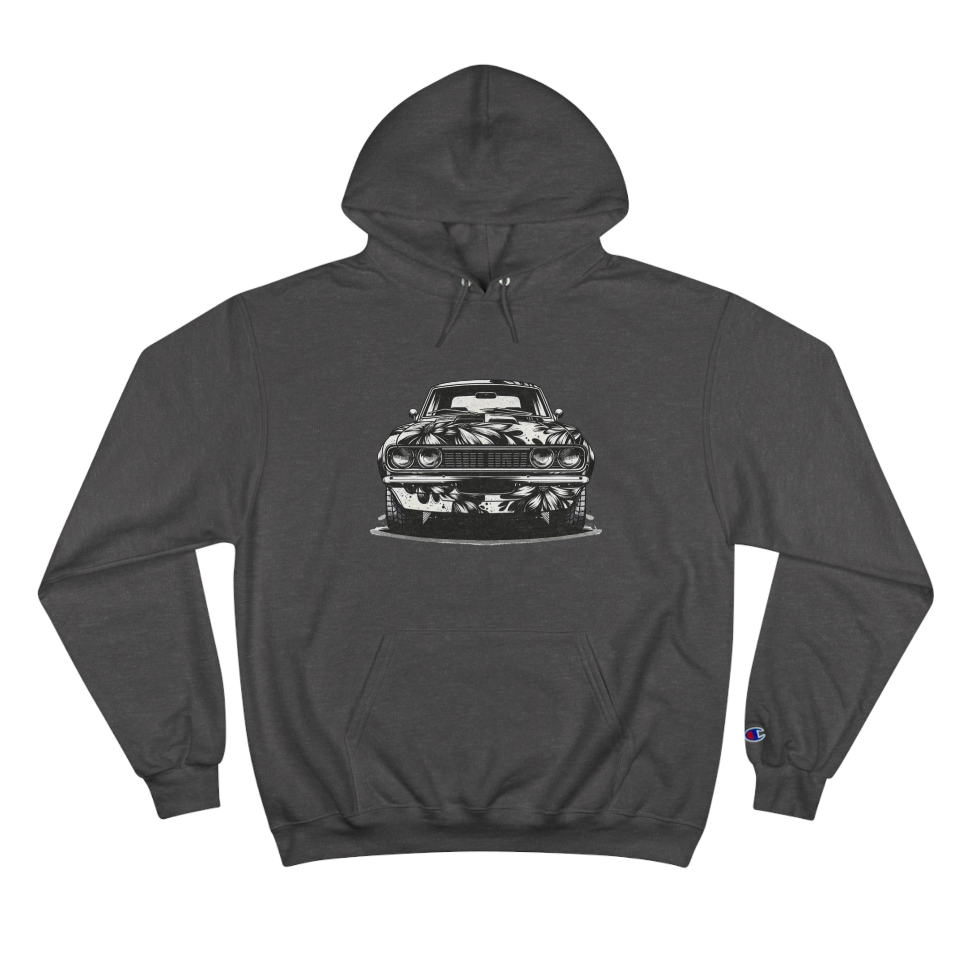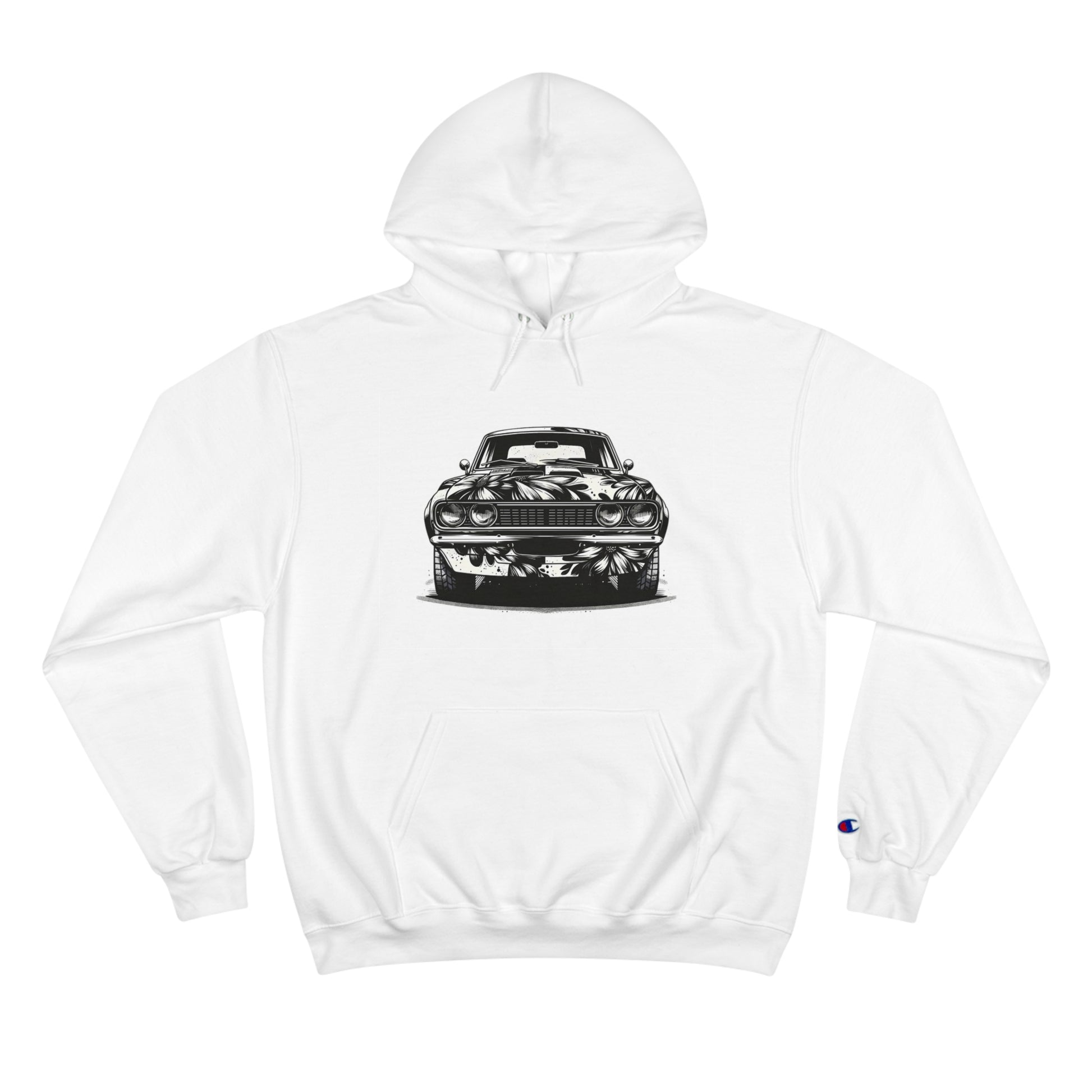 The star of the show is the dynamic vintage car design, centered and brought to life in a stunning black and white floral pattern. AI-generated splashes of red add an unexpected twist, making each shirt a unique piece of wearable art. It's more than just clothing - it's a canvas where technology meets fashion.