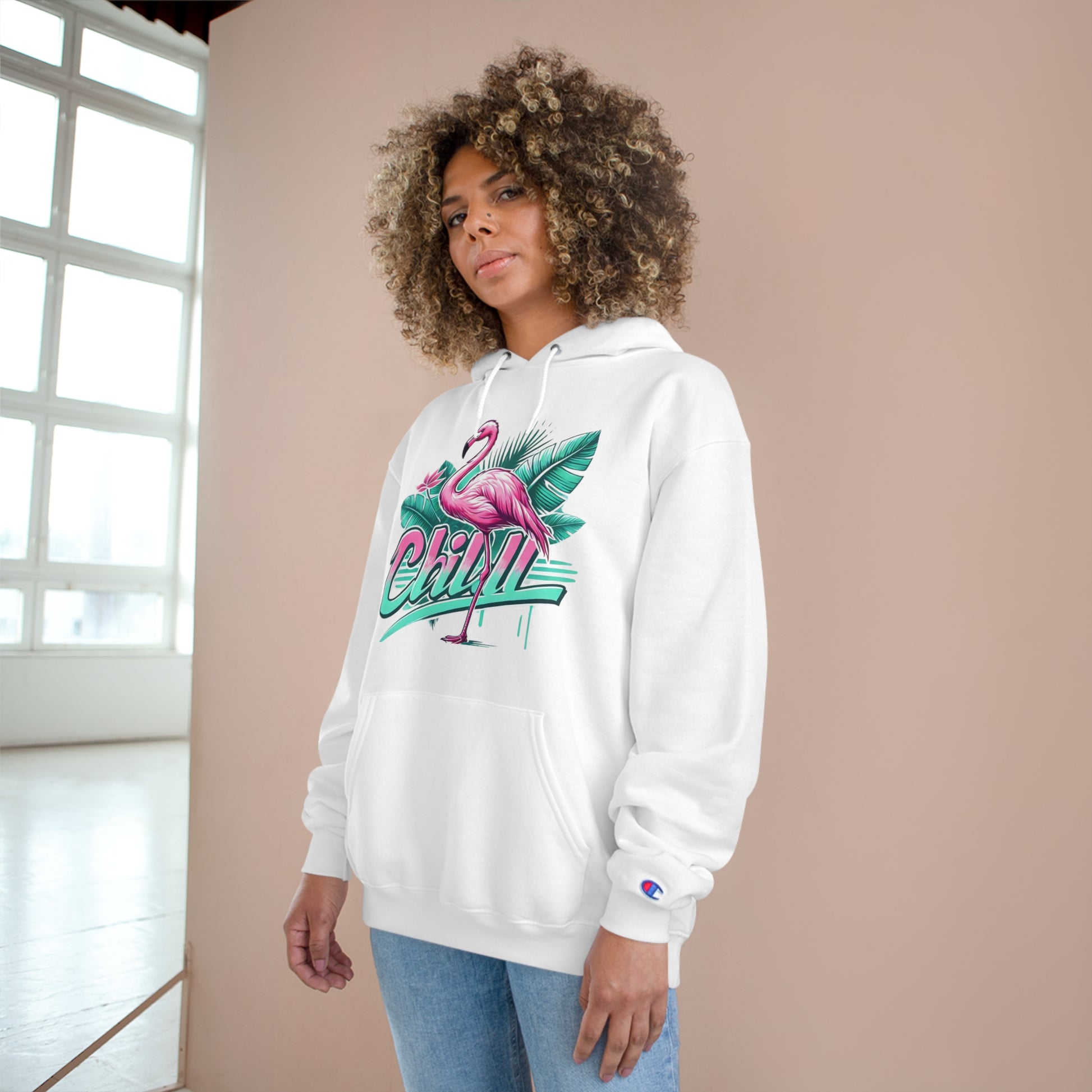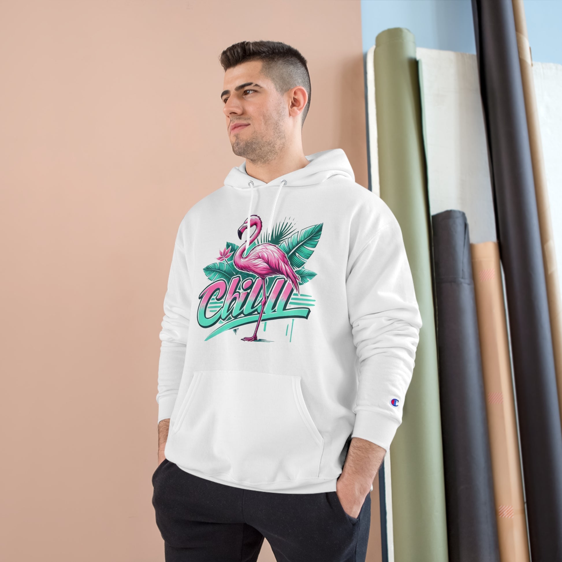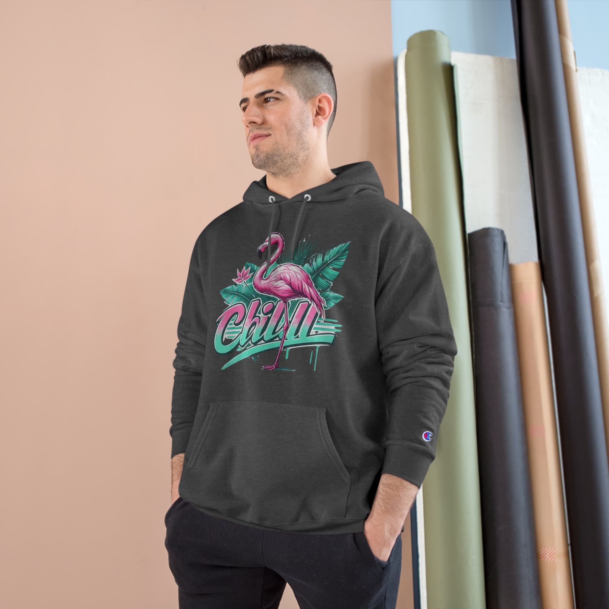 The Chill Flamingo's soft pink hue is beautifully juxtaposed with vibrant green tropical leaves, while the graffiti-style "Chill" text in light blue adds an edgy urban twist. Crafted to inspire, this design invites you to wear your world and express your laid-back, free-spirited attitude.