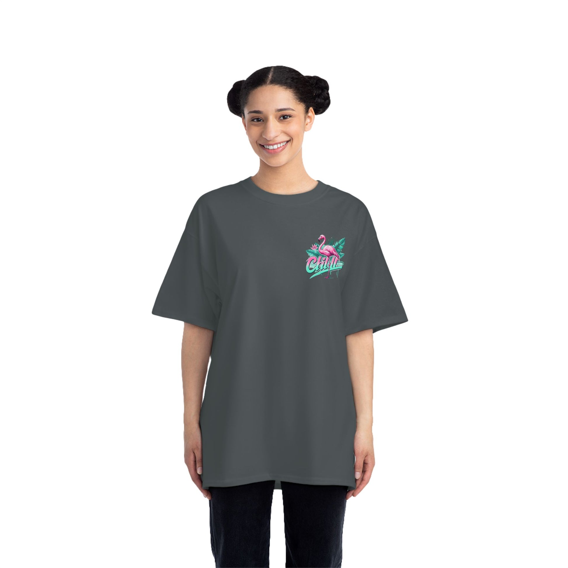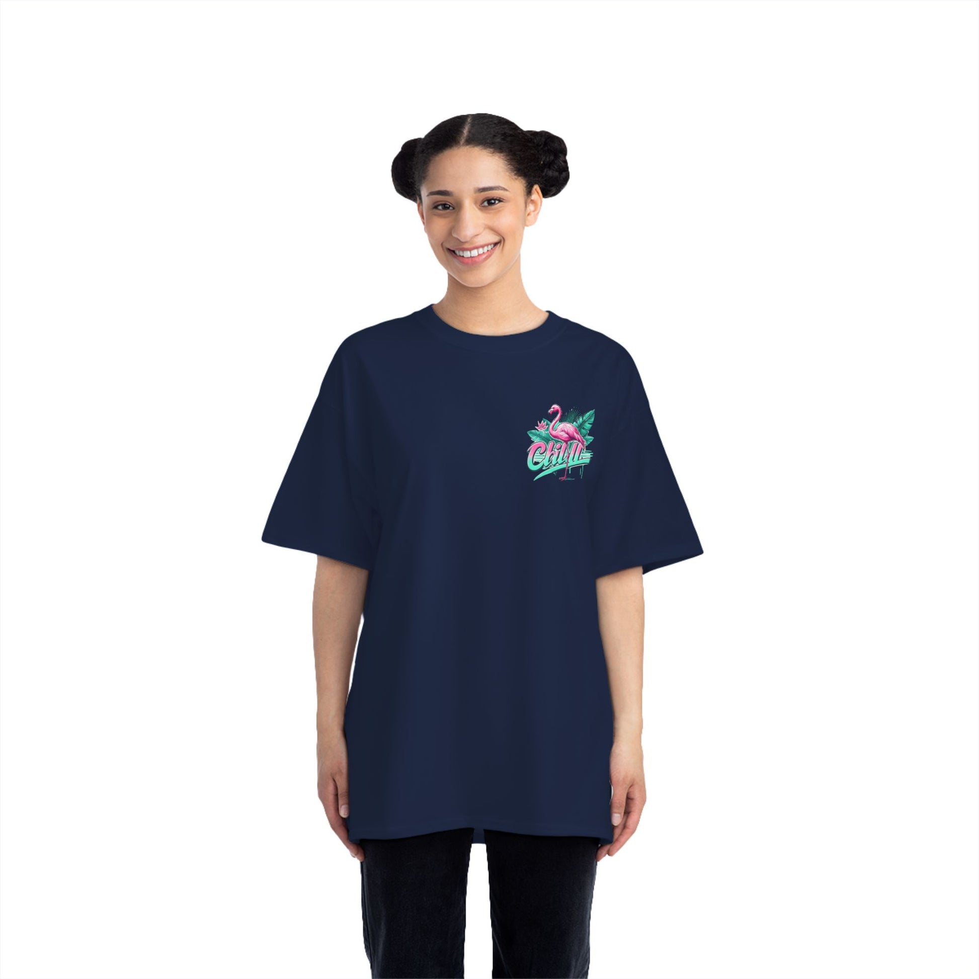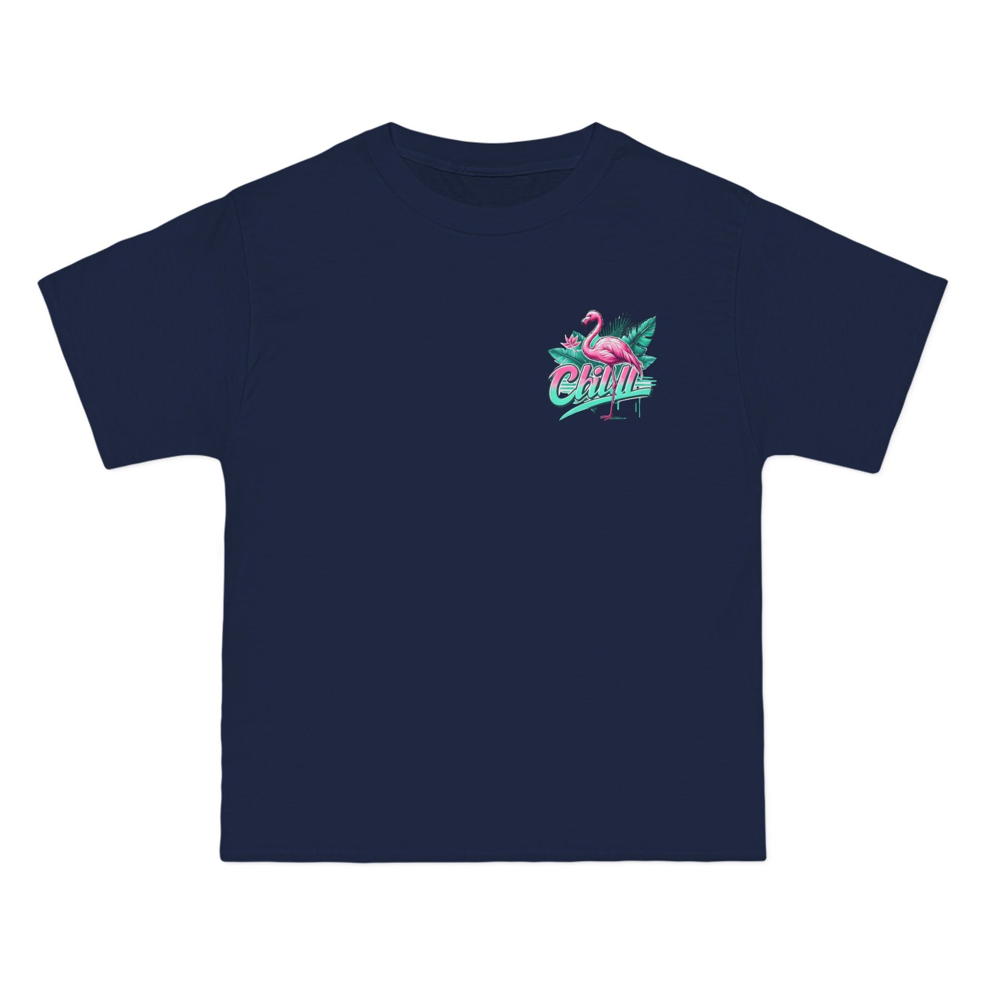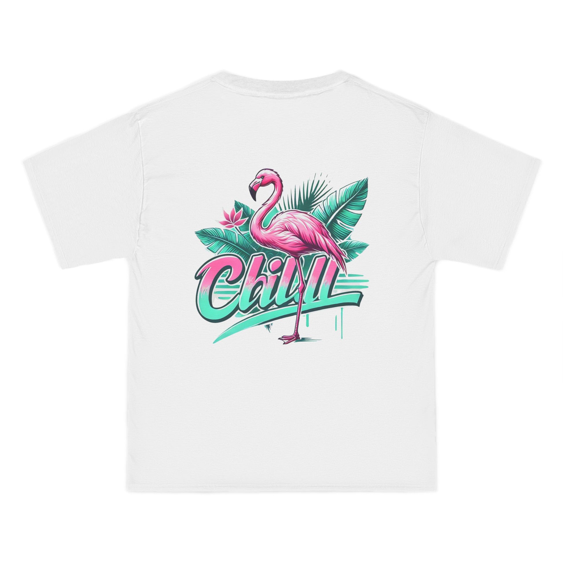 Meet our Chill Flamingo: Urban Graffiti tee, a wearable work of art that's about as chill as it gets. This isn't just a piece of clothing, it's a canvas for your self-expression. Crafted in 100% cotton or our comfy cotton-poly blends, this tee is made to last and designed to impress. The design showcases a laid-back flamingo, chillin' amidst tropical green leaves and a cool, graffiti-style 'Chill' text in light blue. It's the perfect blend of urban edge and beachy vibes, all rolled into one.