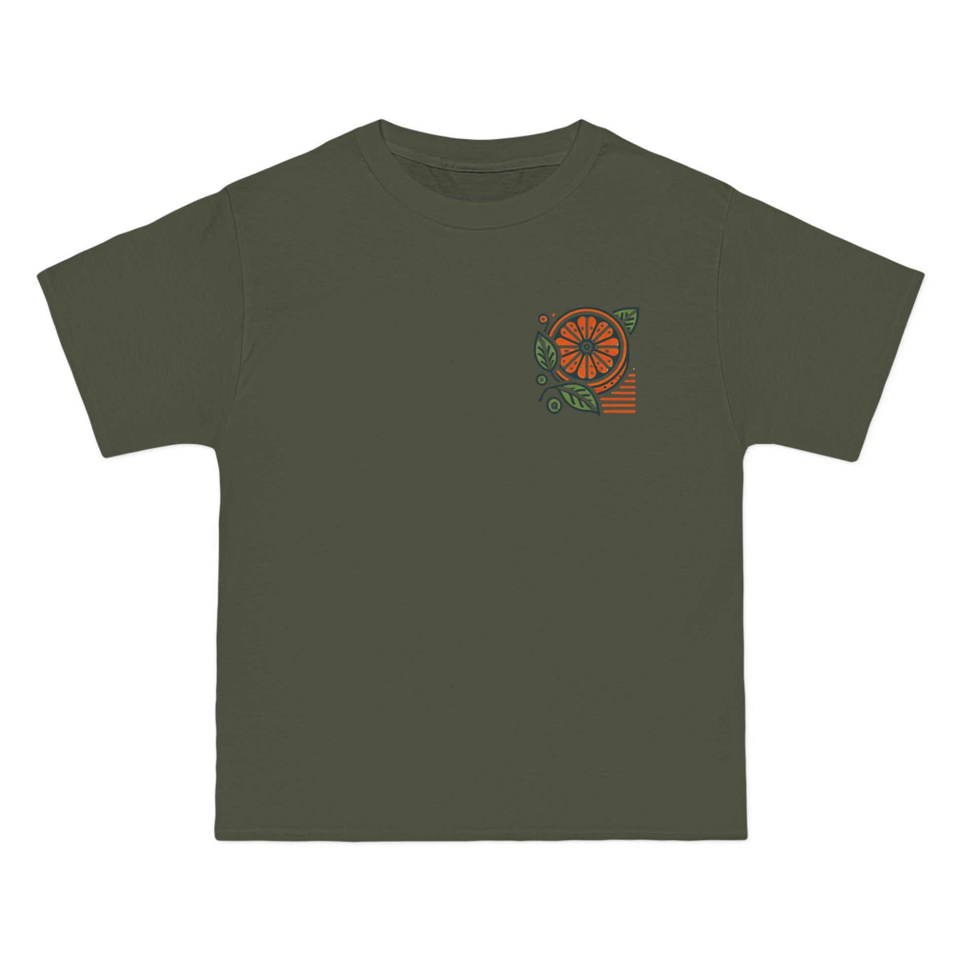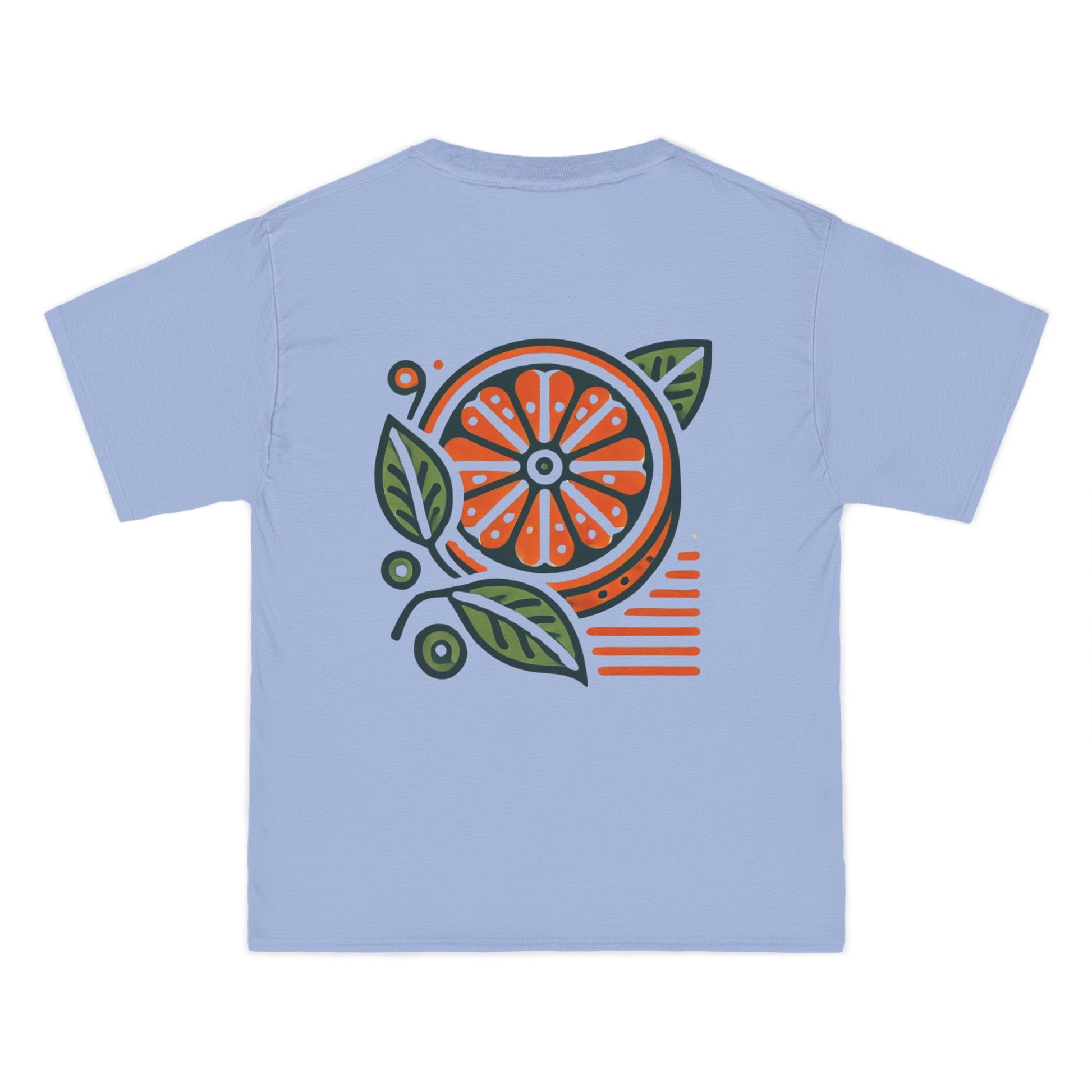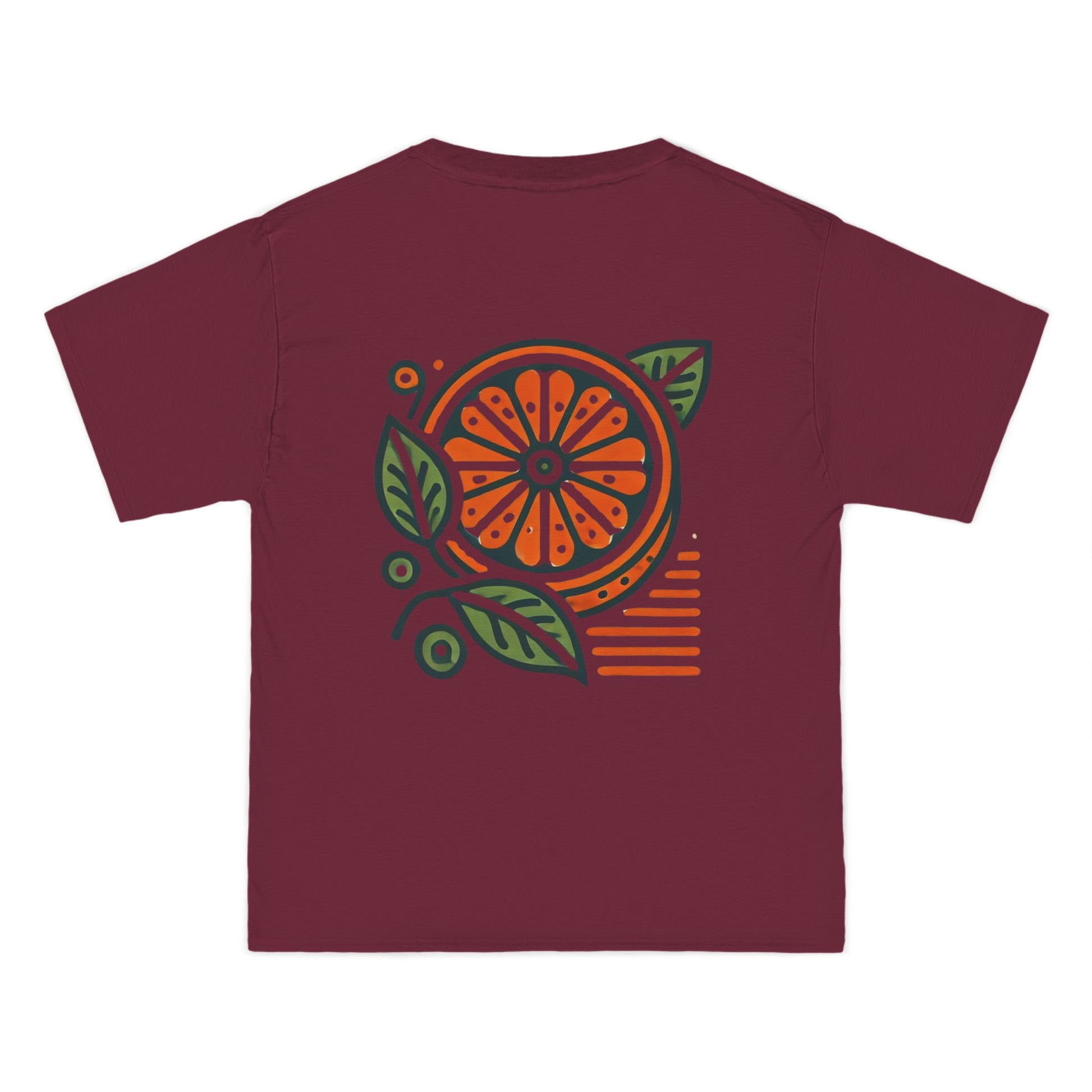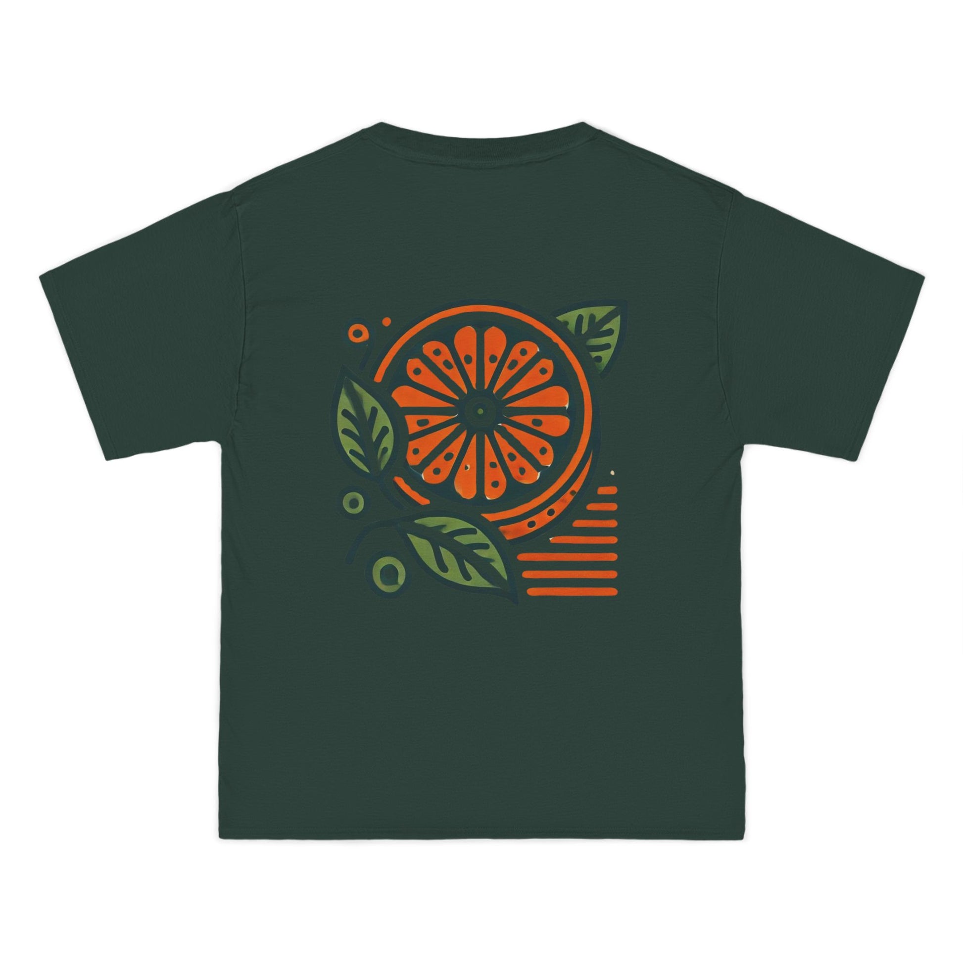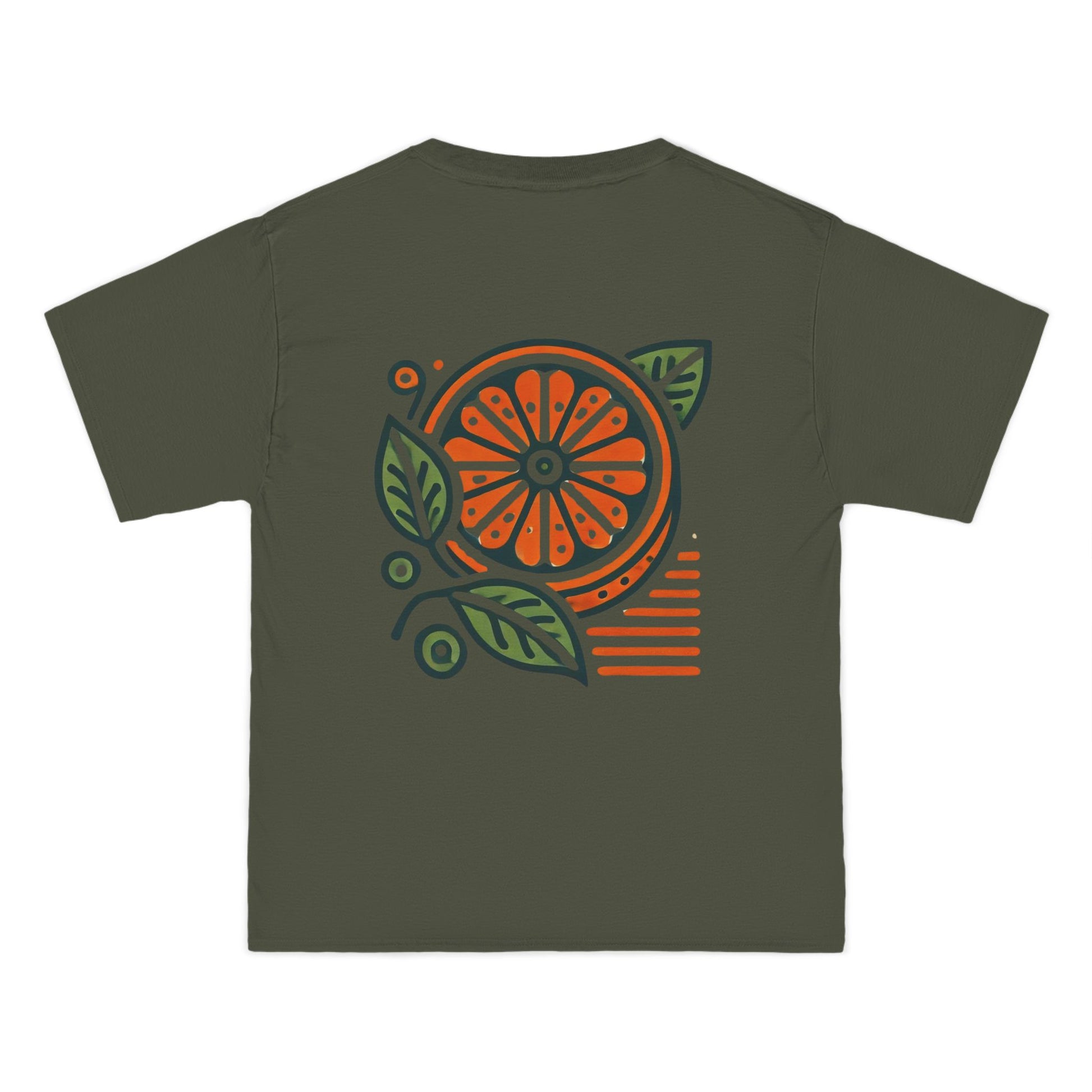 Unleash your creativity with our Citrus Slice: Floral Orange Vibe tee from Whatever Clothing! This eye-catching design, with its stylized citrus fruit slice and vibrant colors, perfectly embodies the spirit of 'Wearable Art.' The bold outlines and bright orange center, enhanced by green rind accents, bring a splash of sunshine to your wardrobe, inspiring joy and nostalgia with every wear.