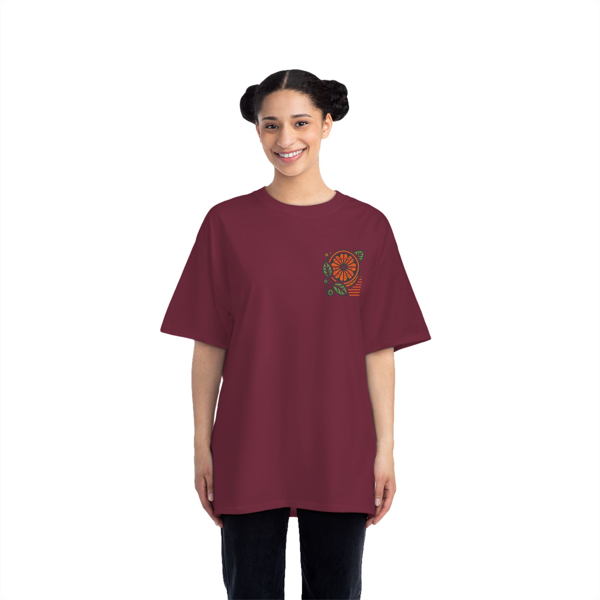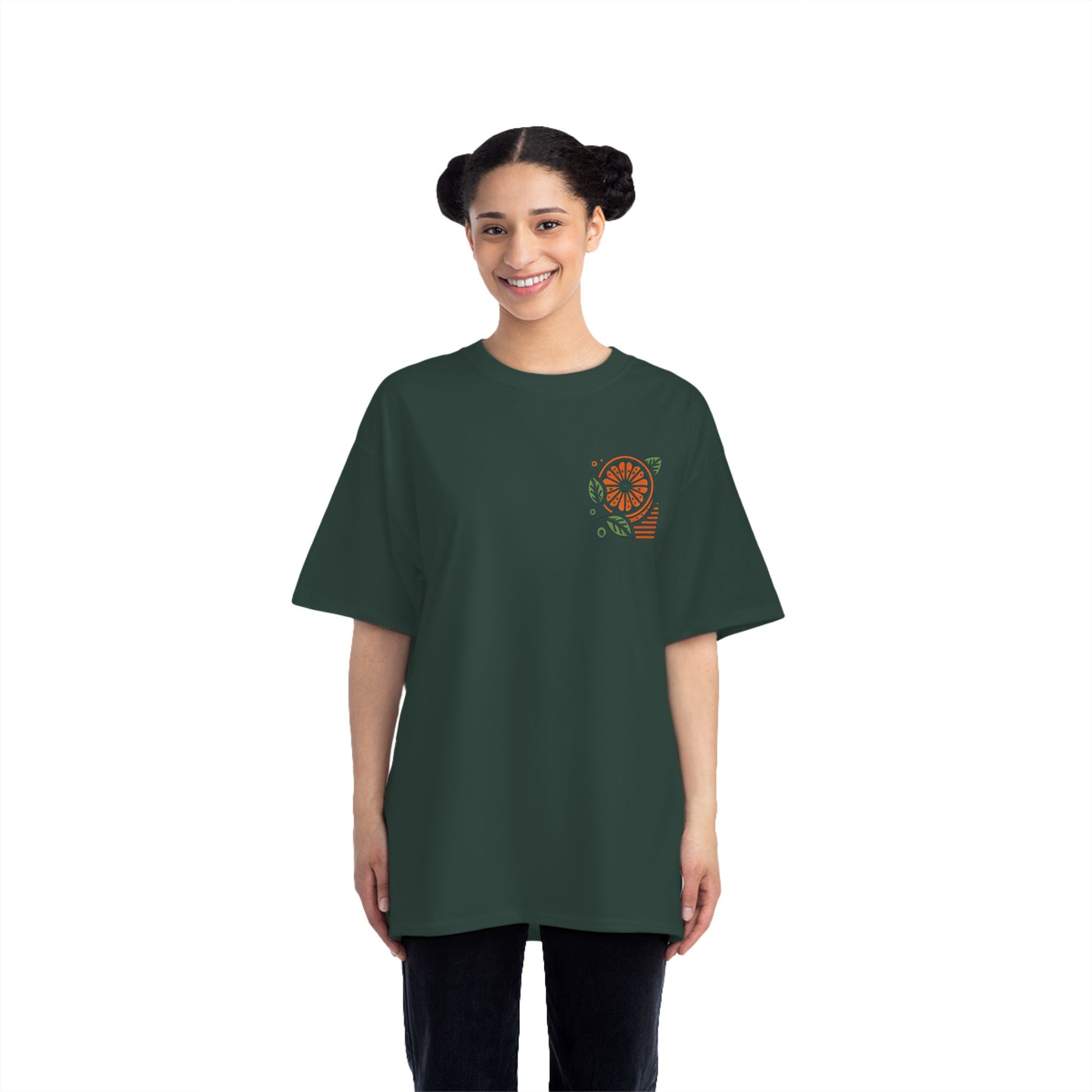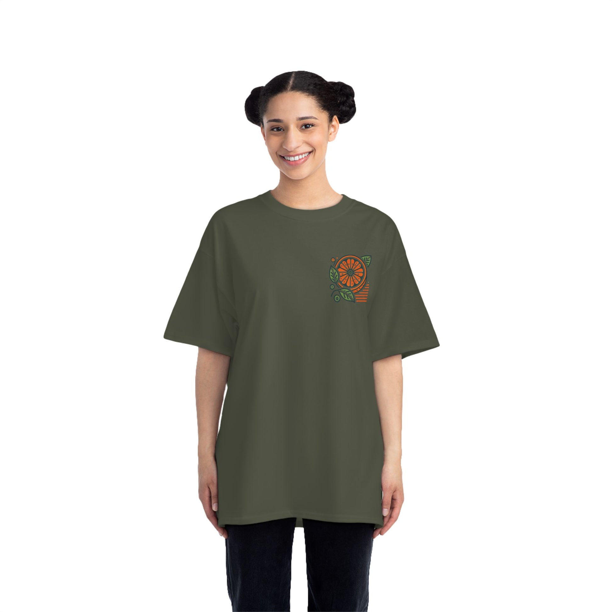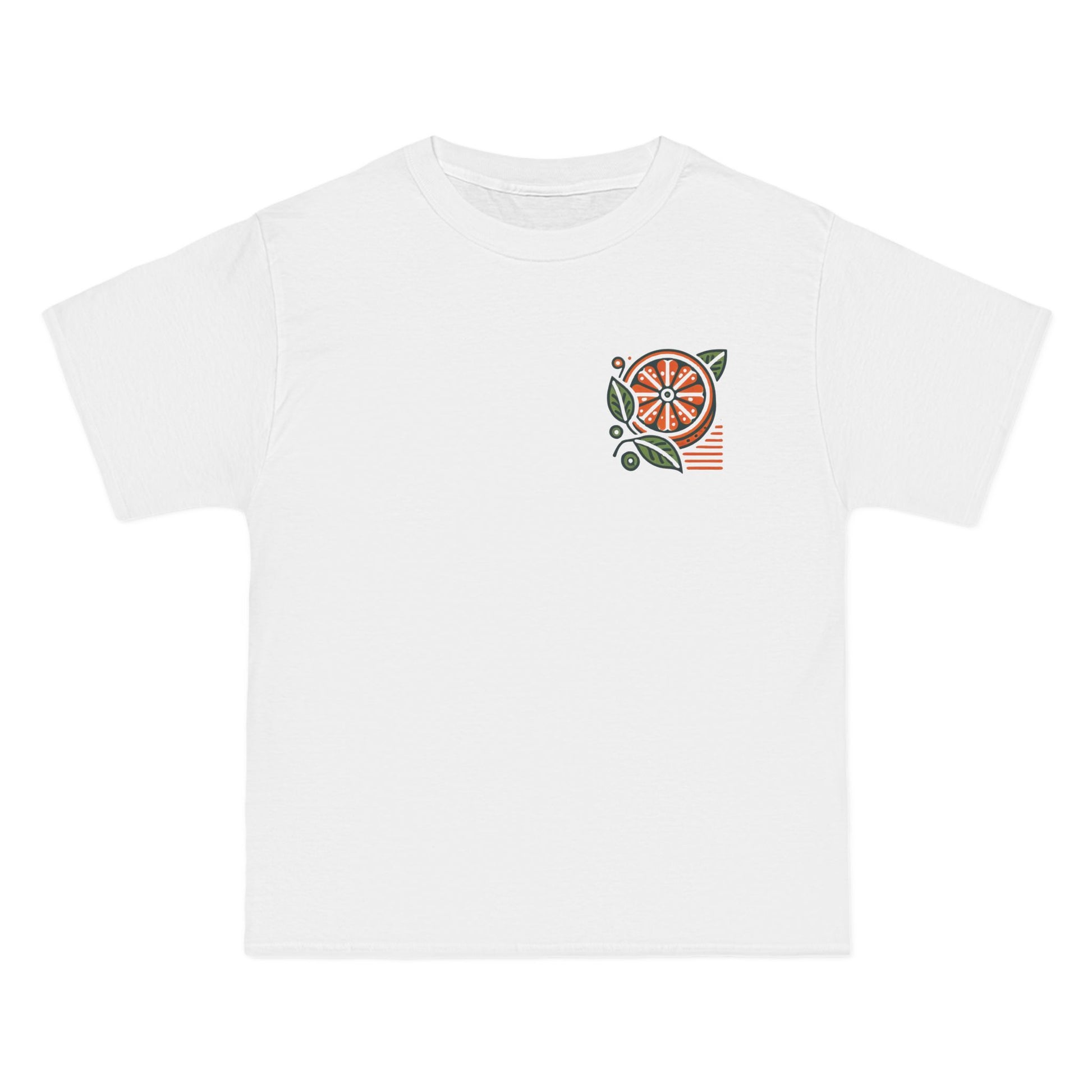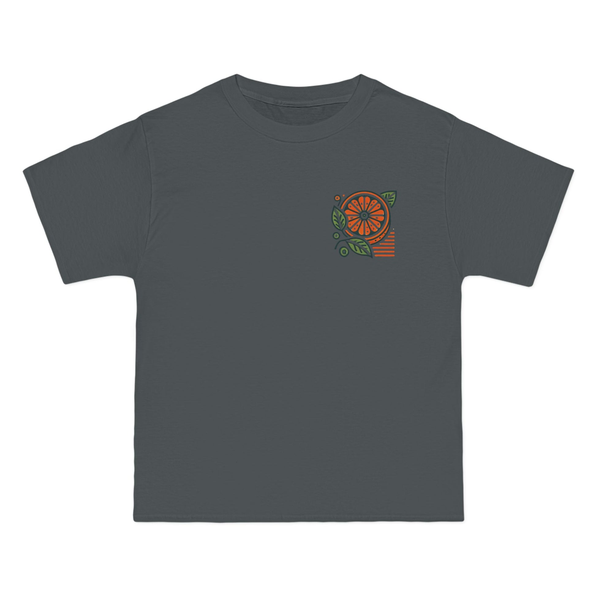Unleash your creativity with our Citrus Slice: Floral Orange Vibe tee from Whatever Clothing! This eye-catching design, with its stylized citrus fruit slice and vibrant colors, perfectly embodies the spirit of 'Wearable Art.' The bold outlines and bright orange center, enhanced by green rind accents, bring a splash of sunshine to your wardrobe, inspiring joy and nostalgia with every wear.