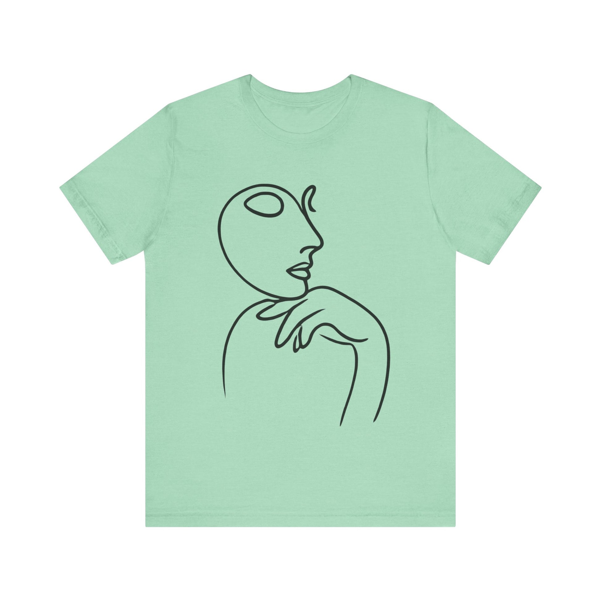 Introducing our Contemplative Face: Minimalist Line Art, a true embodiment of wearable art. Crafted with precision, this piece features a human face outlined in a single, continuous line, offering a slightly abstract yet captivating appeal.