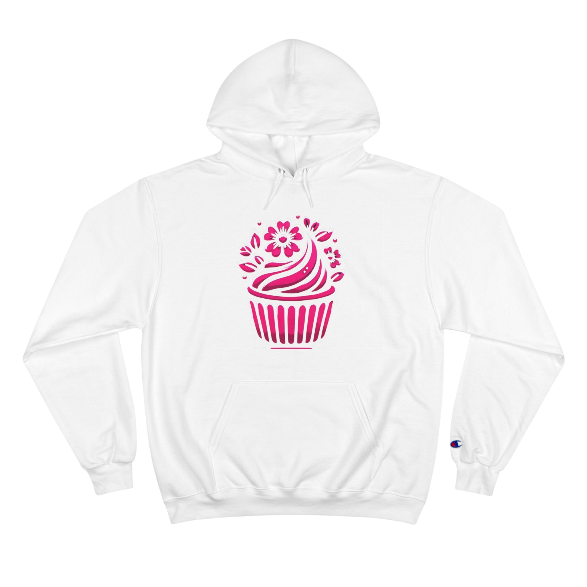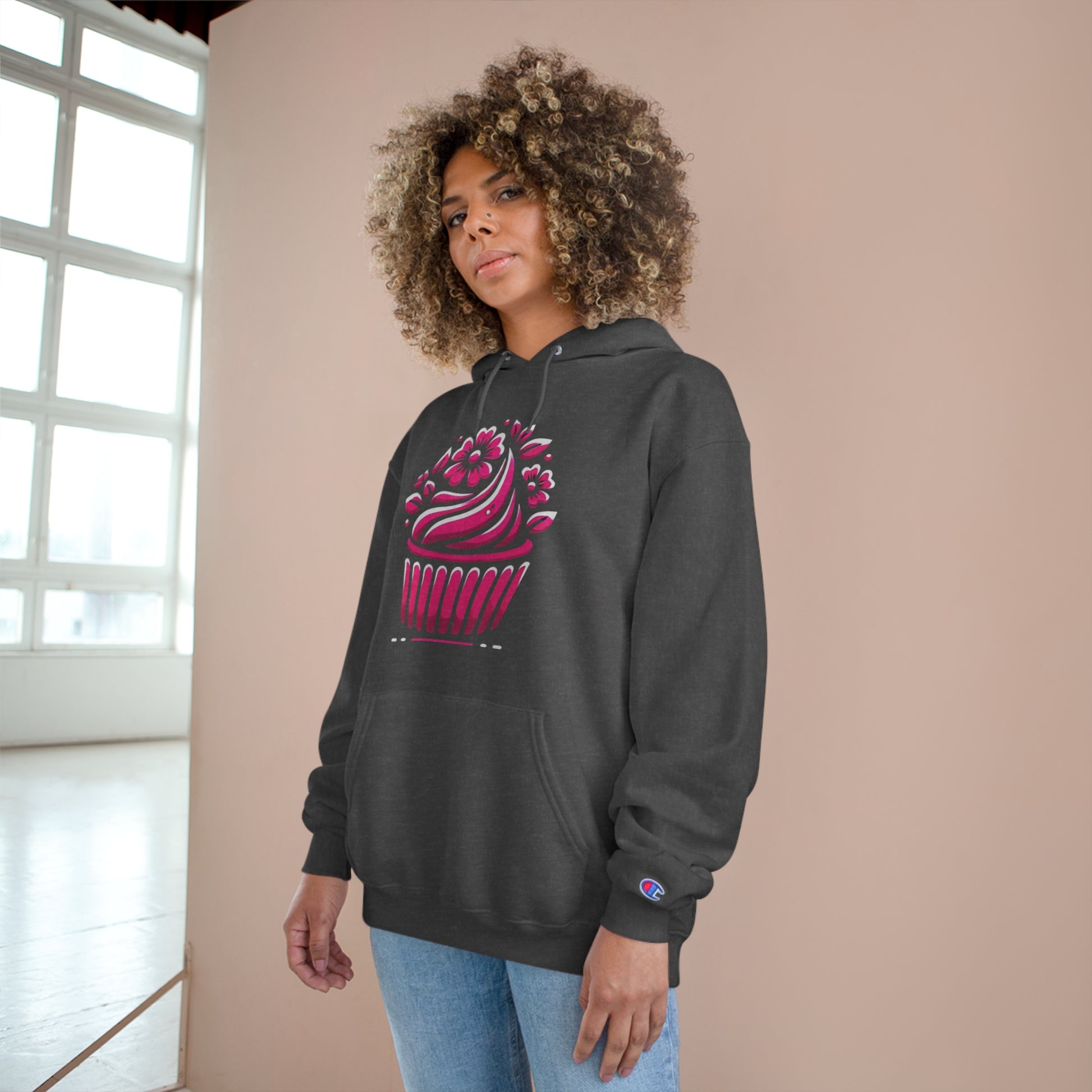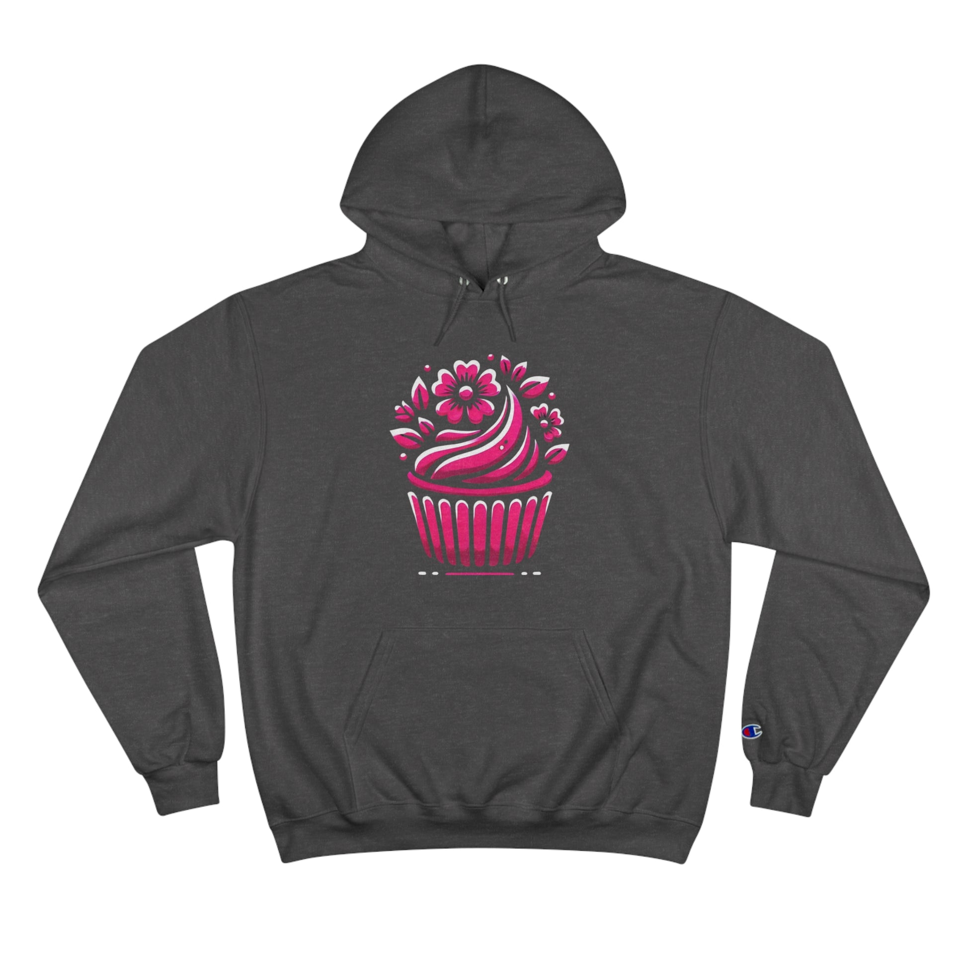 Indulge in the sweet style of our Cupcake with Floral Frosting: Floral Noir hoodie, a tantalizing blend of whimsy and sophistication. This wearable art piece, crafted from 50% cotton and 50% polyester (made of up to 5% recycled plastic bottles, because we care), features a stylized cupcake topped with a magenta floral frosting, set against a seductive black background. It's a bold, innovative design, spun from the threads of AI technology.