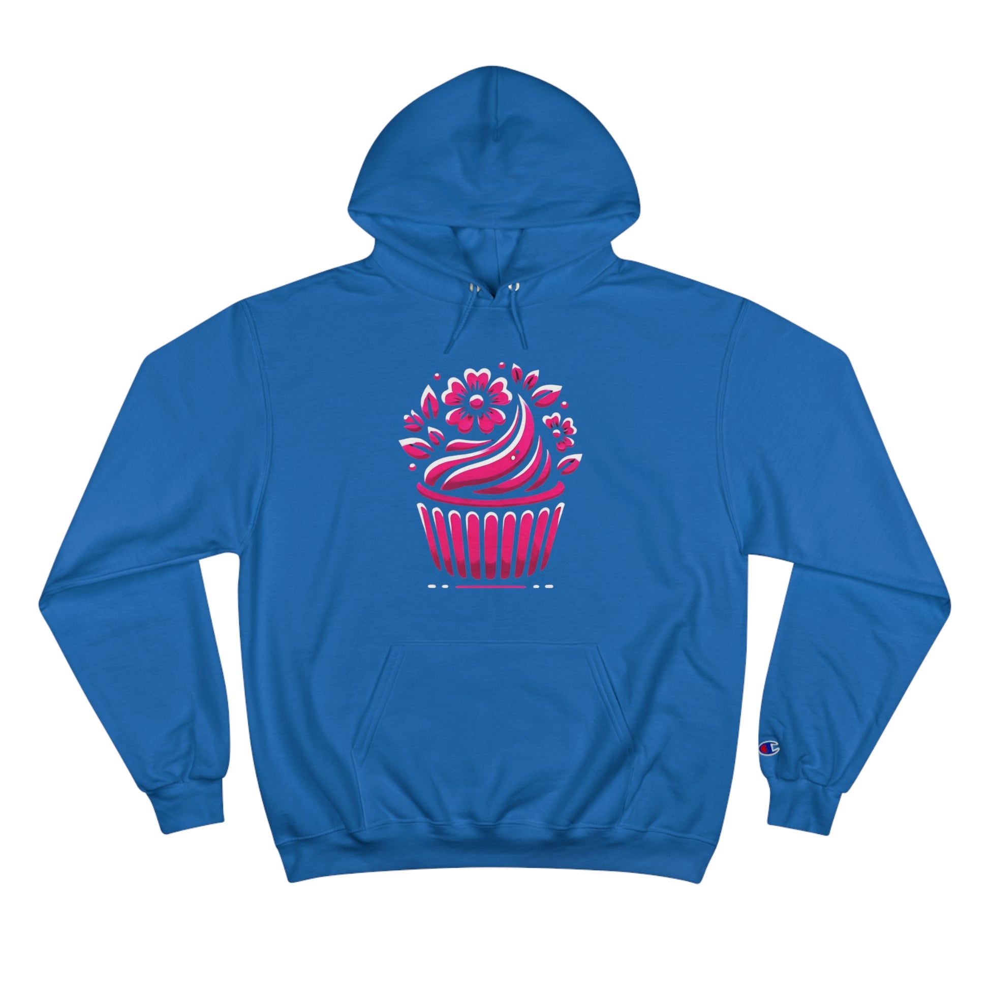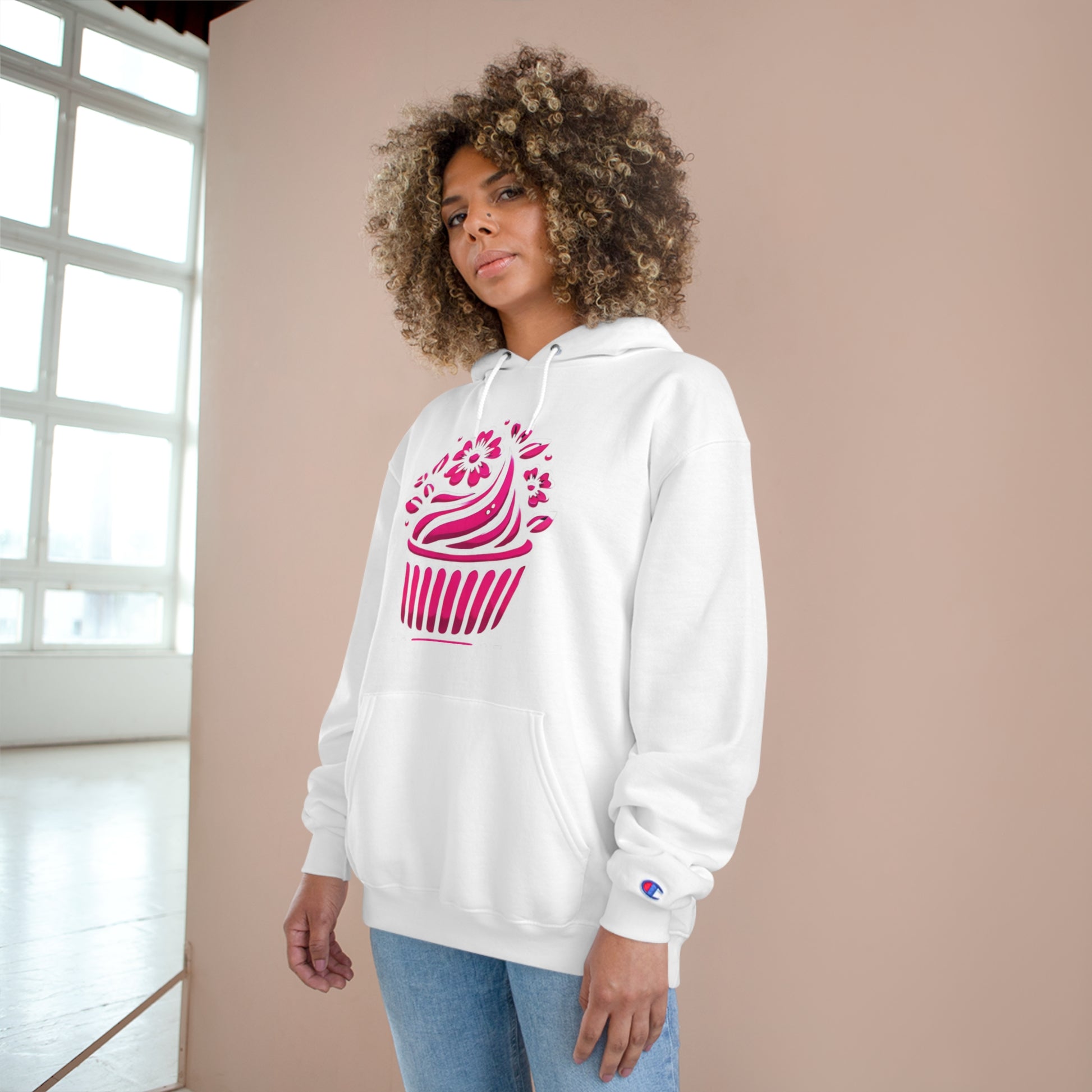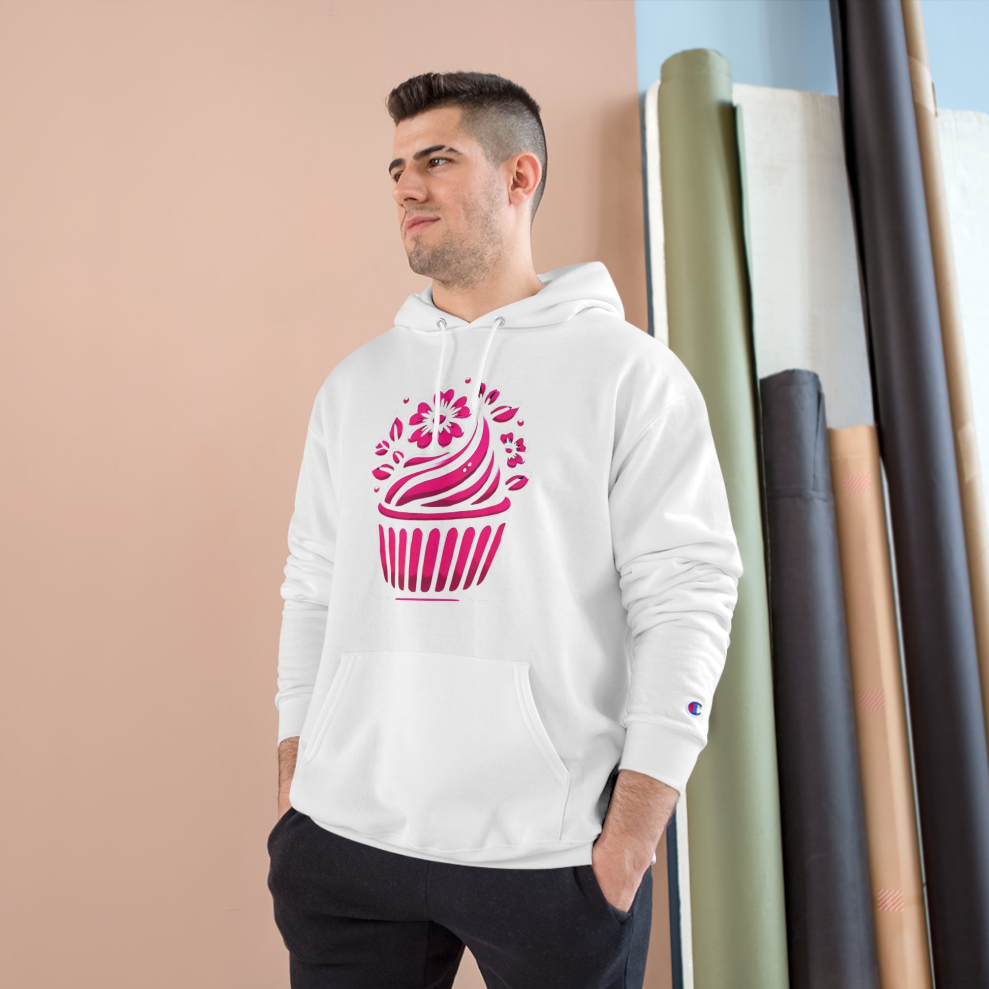 Indulge in the sweet style of our Cupcake with Floral Frosting: Floral Noir hoodie, a tantalizing blend of whimsy and sophistication. This wearable art piece, crafted from 50% cotton and 50% polyester (made of up to 5% recycled plastic bottles, because we care), features a stylized cupcake topped with a magenta floral frosting, set against a seductive black background. It's a bold, innovative design, spun from the threads of AI technology.