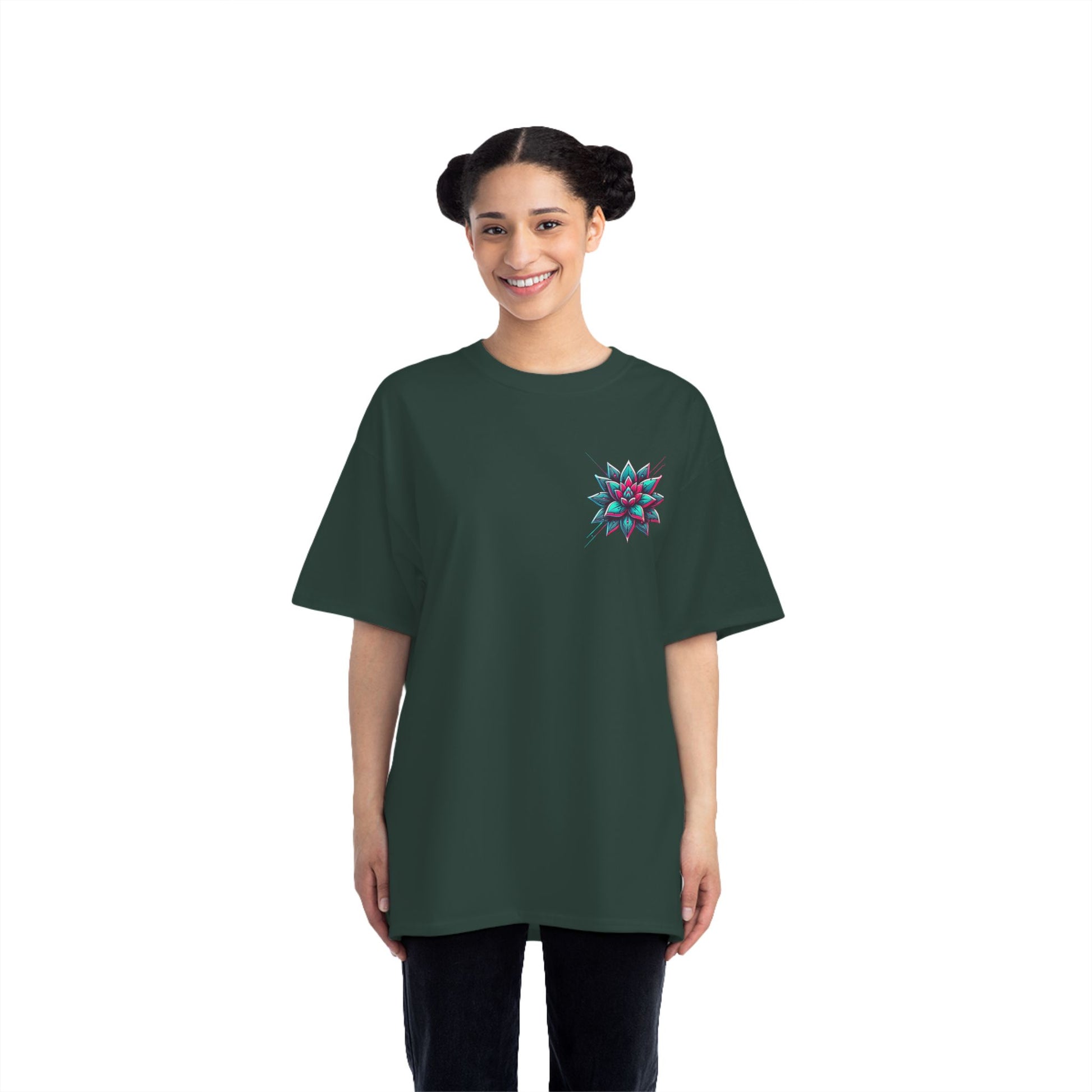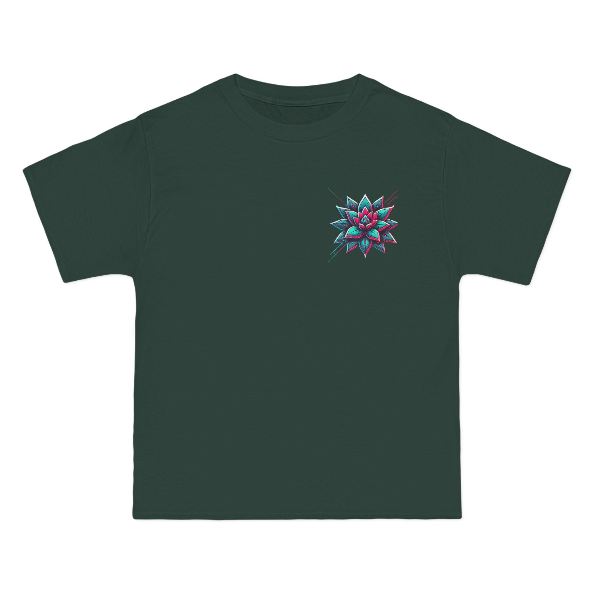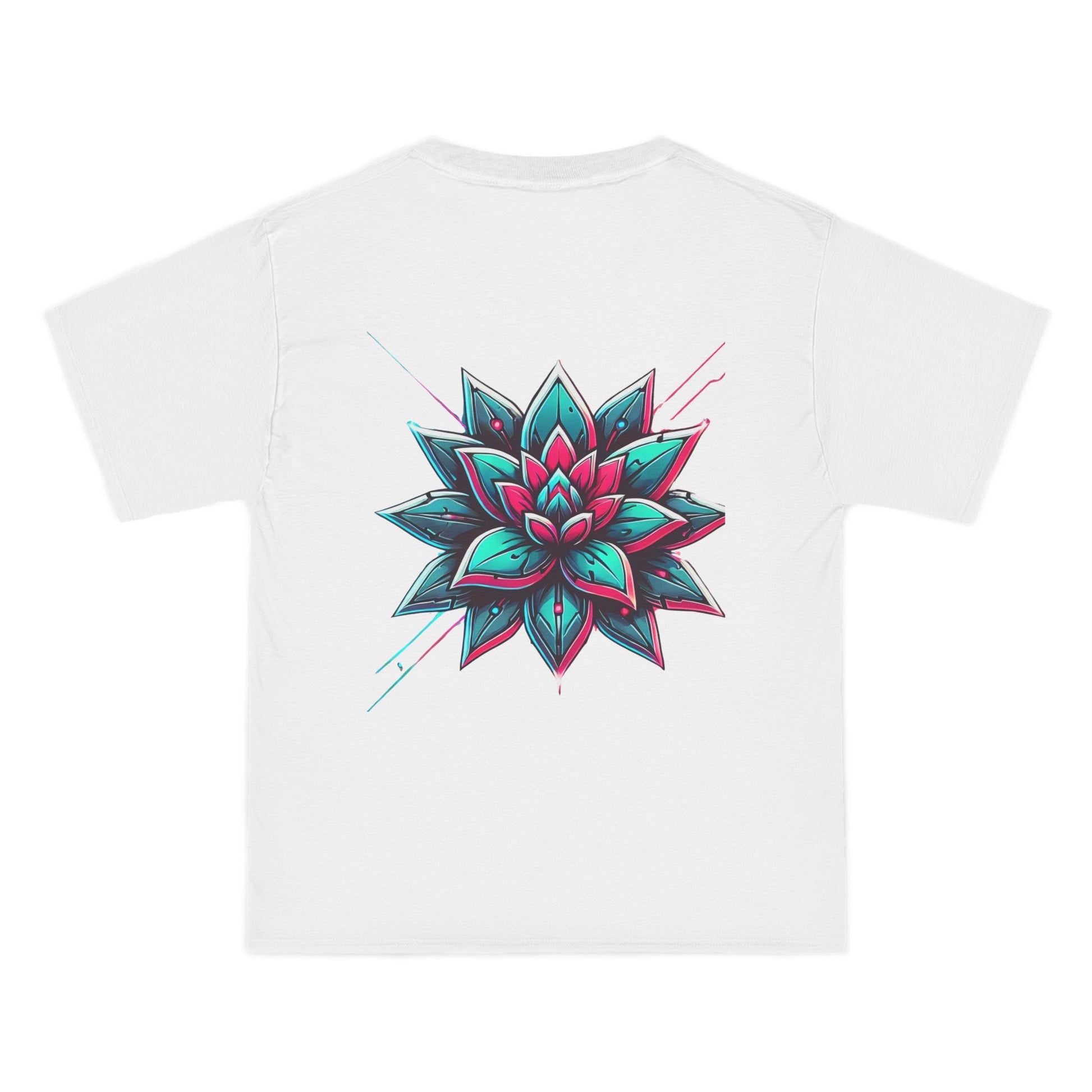 Step into the future with Whatever Clothing's Cybernetic Flower tee, where retro-futuristic vibes meet cutting-edge AI technology. This unique design features a dazzling, futuristic flower with metallic petals and neon-lit edges, glowing brightly against a dark, cyberpunk background. It's the perfect wearable art to express your world and unleash your creativity!