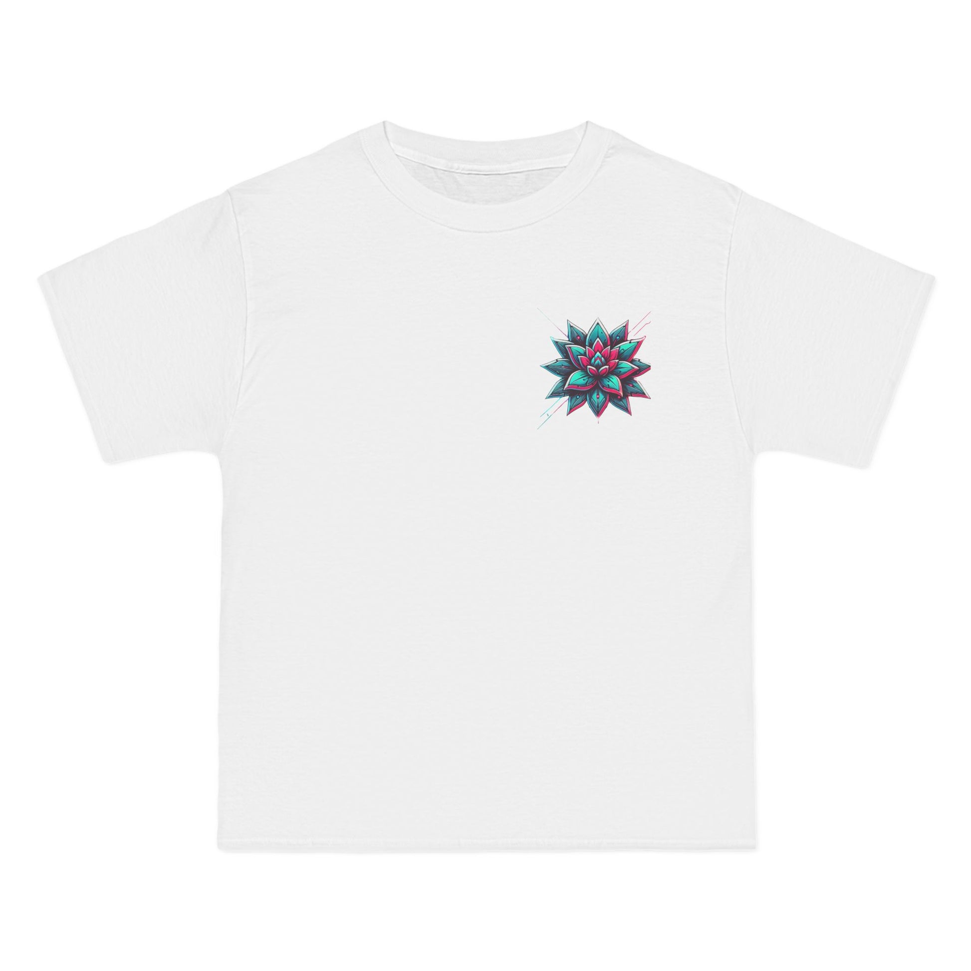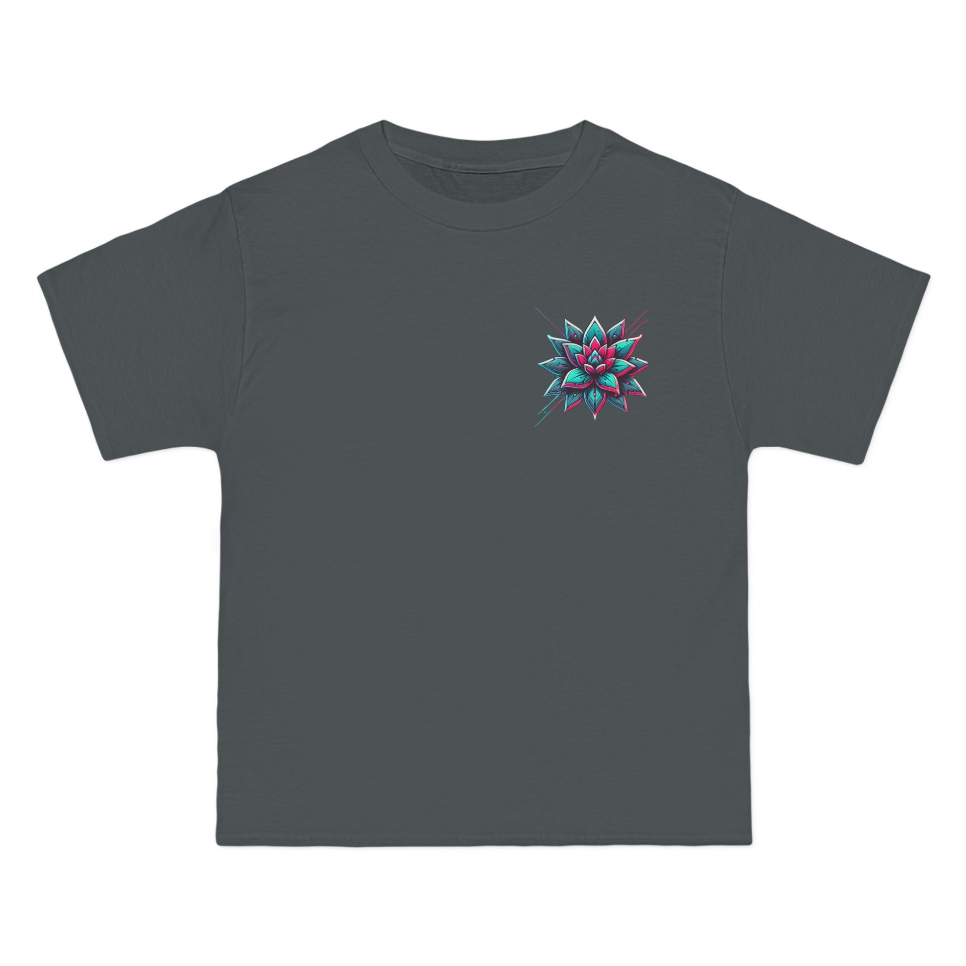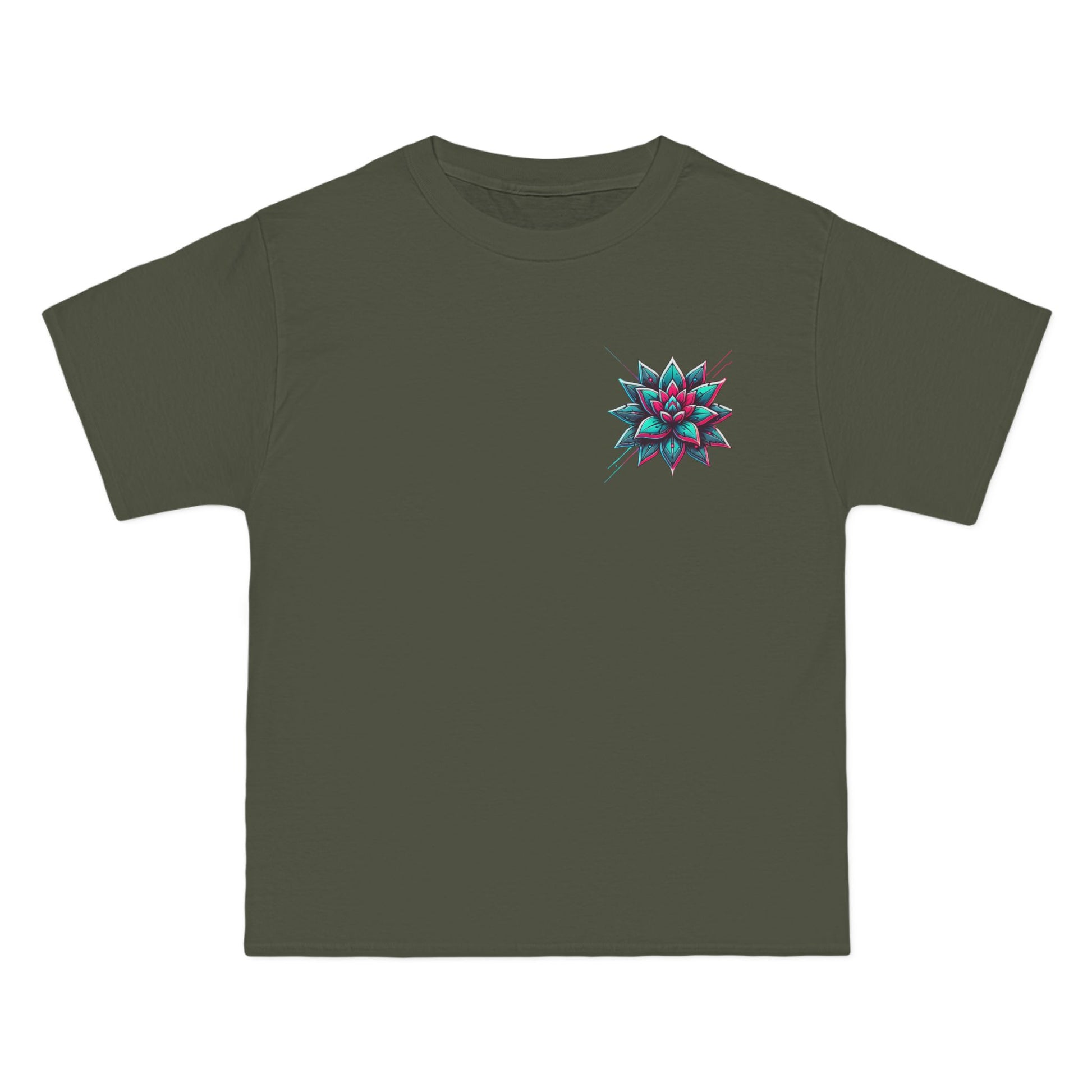 Step into the future with Whatever Clothing's Cybernetic Flower tee, where retro-futuristic vibes meet cutting-edge AI technology. This unique design features a dazzling, futuristic flower with metallic petals and neon-lit edges, glowing brightly against a dark, cyberpunk background. It's the perfect wearable art to express your world and unleash your creativity!