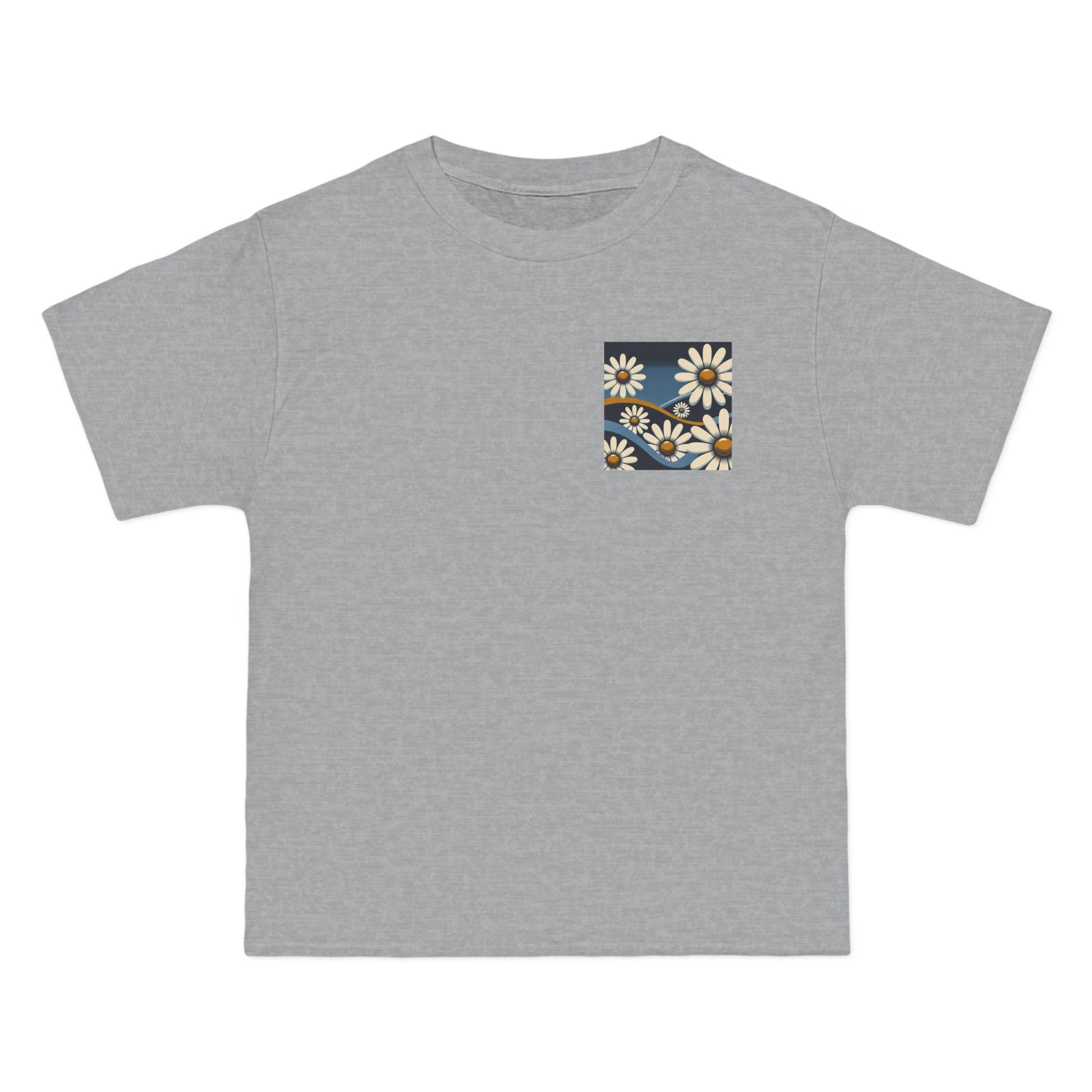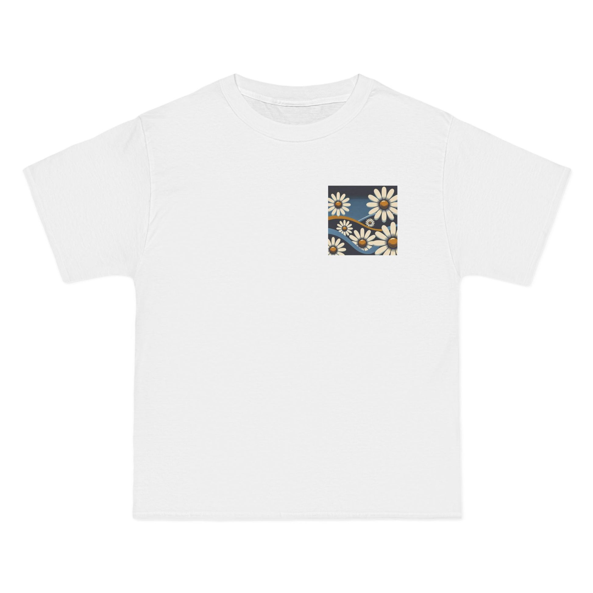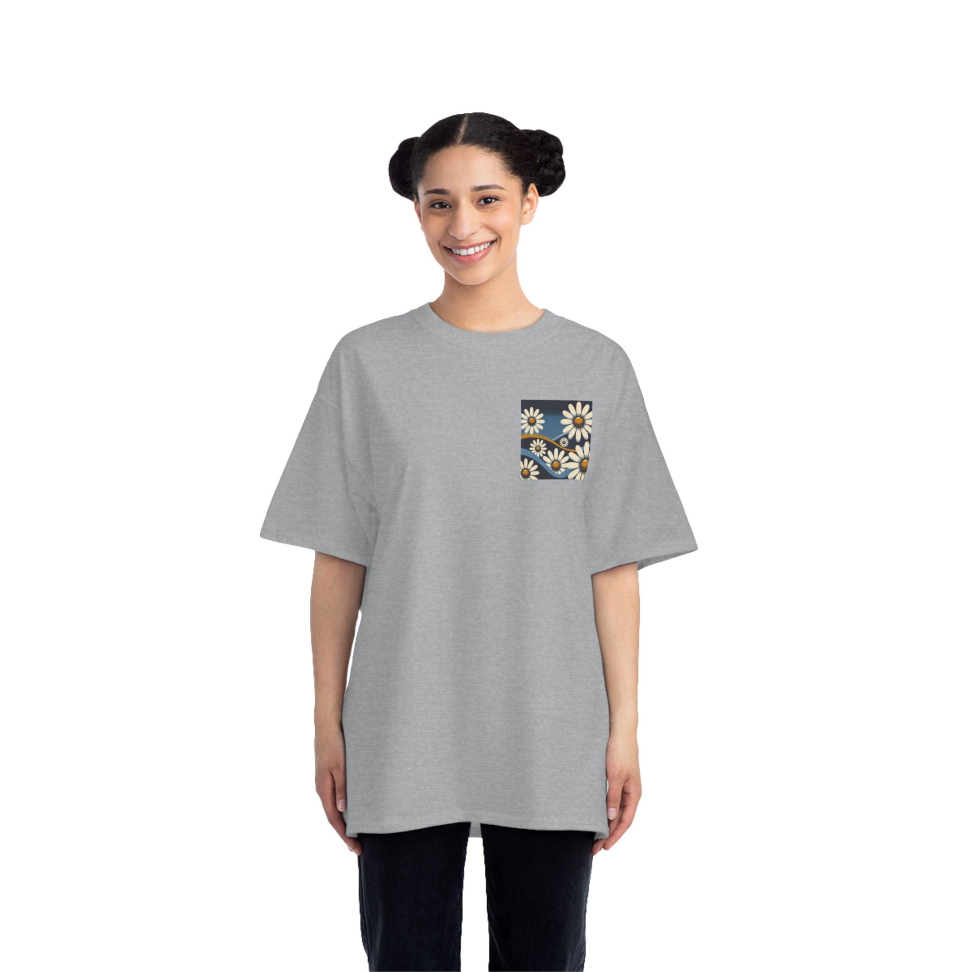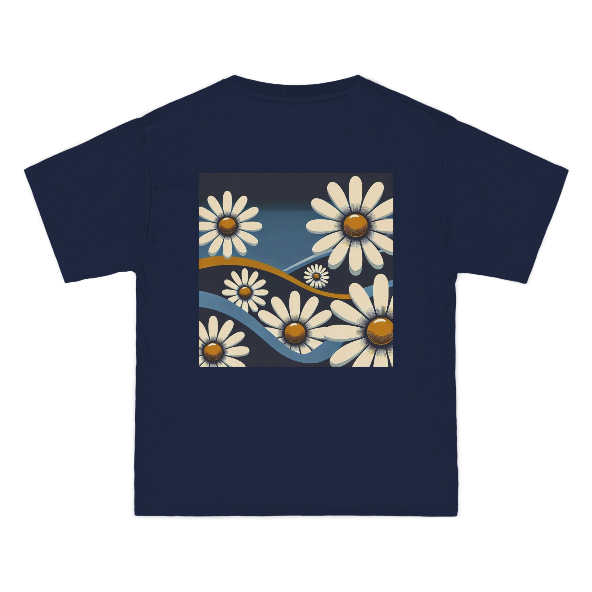 Crafted from the finest cotton blends, our tees are as comfortable as they are durable. The reinforced double-needle stitching on the sleeves and bottom hem ensure durability while the stabilized shoulder seams prevent stretching, making it a perfect fit. The lay-flat collar retains its shape wash after wash, and the smooth finish provides a print-friendly surface that showcases the vibrant daisy landscape in all its glory.