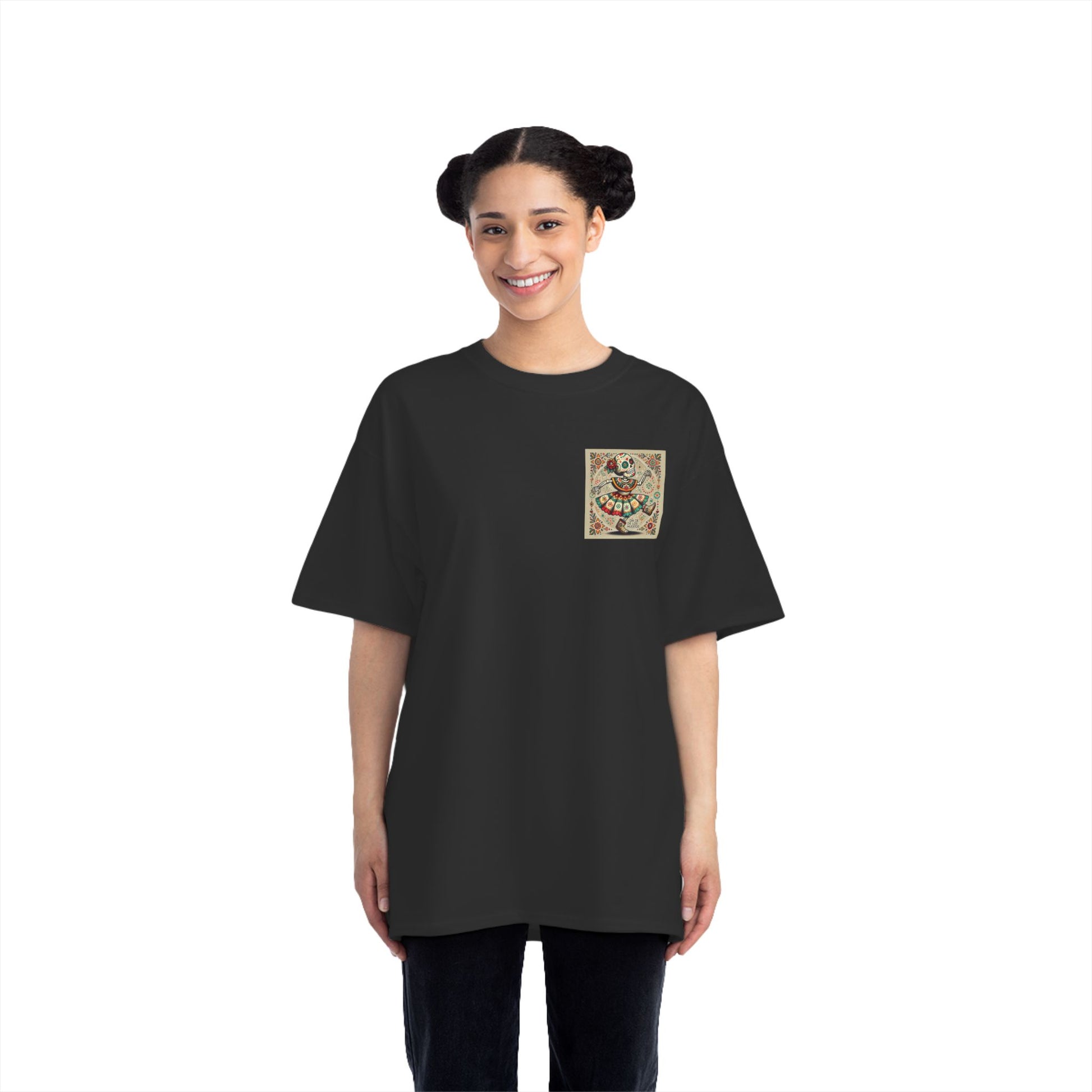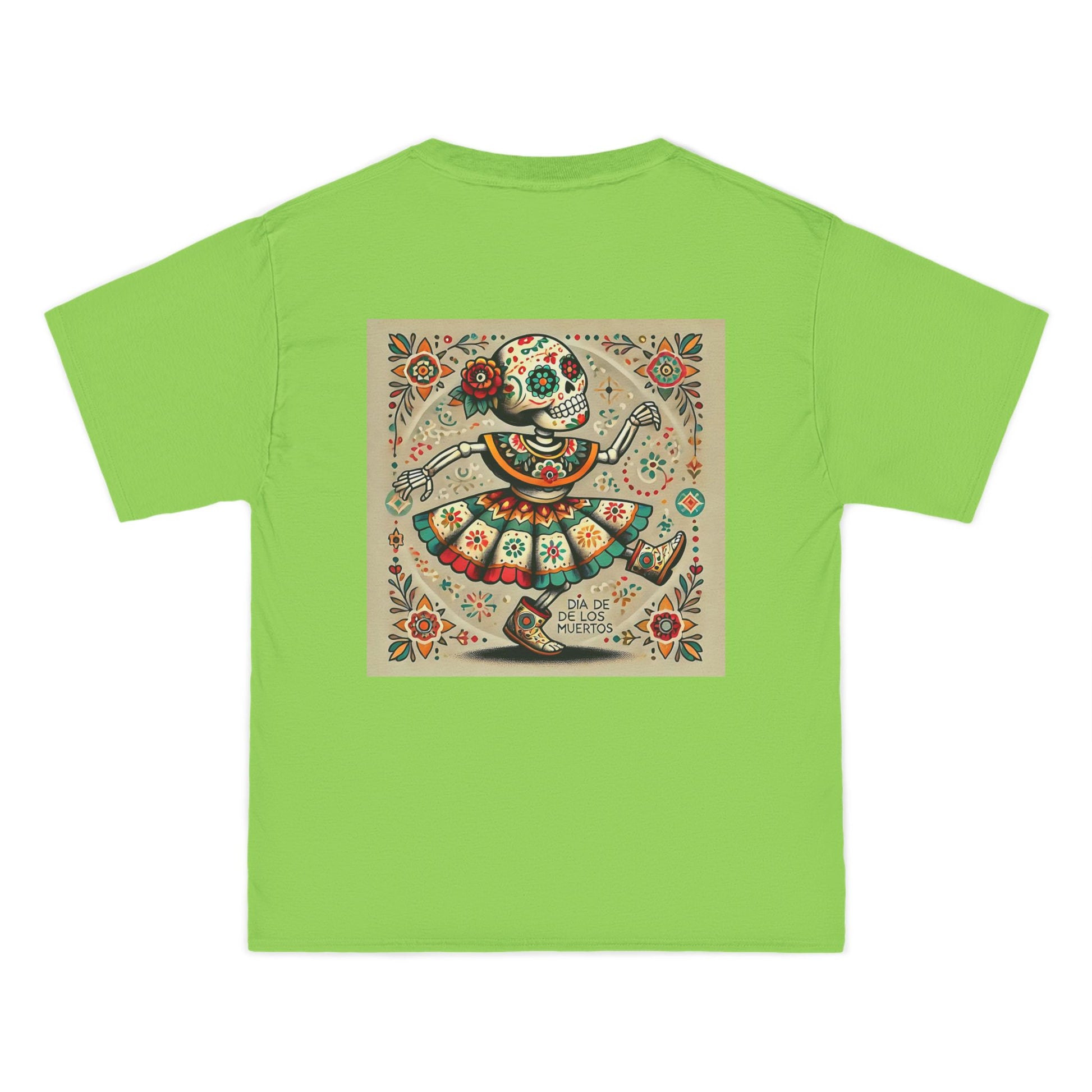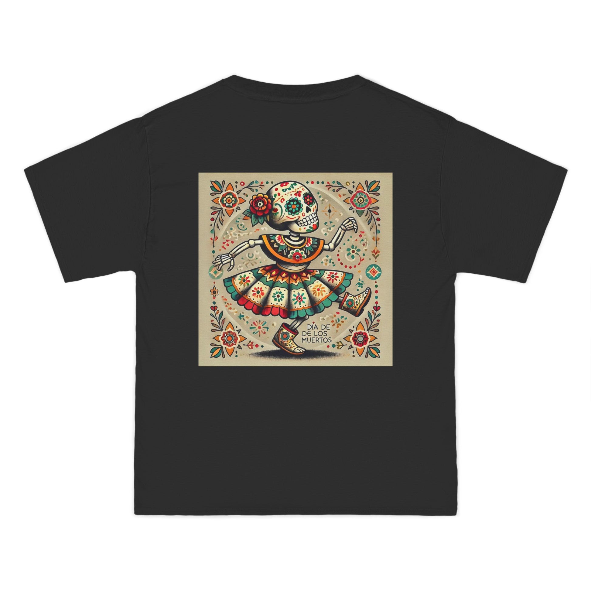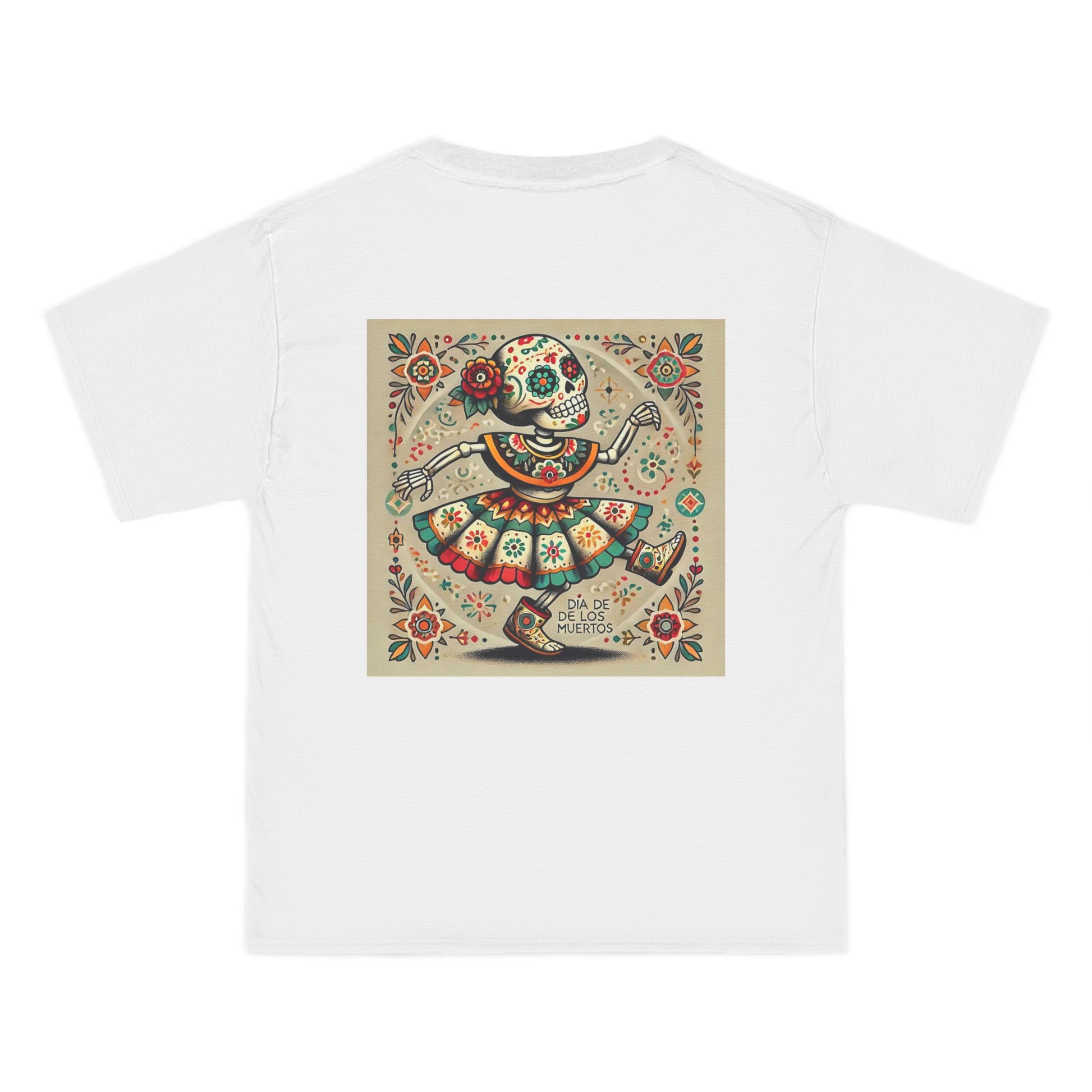 Step into the vibrant world of Mexican folk culture with our Dancing Skeleton tee! Crafted with love and a dash of AI magic, this wearable art piece captures the spirit of celebration in the most playful way. The shirt features a lively skeleton, dressed to the nines in traditional attire, grooving to the beats of a fiesta. With intricate floral and geometric details, it's more than just a piece of clothing, it's a canvas that lets you wear your world.