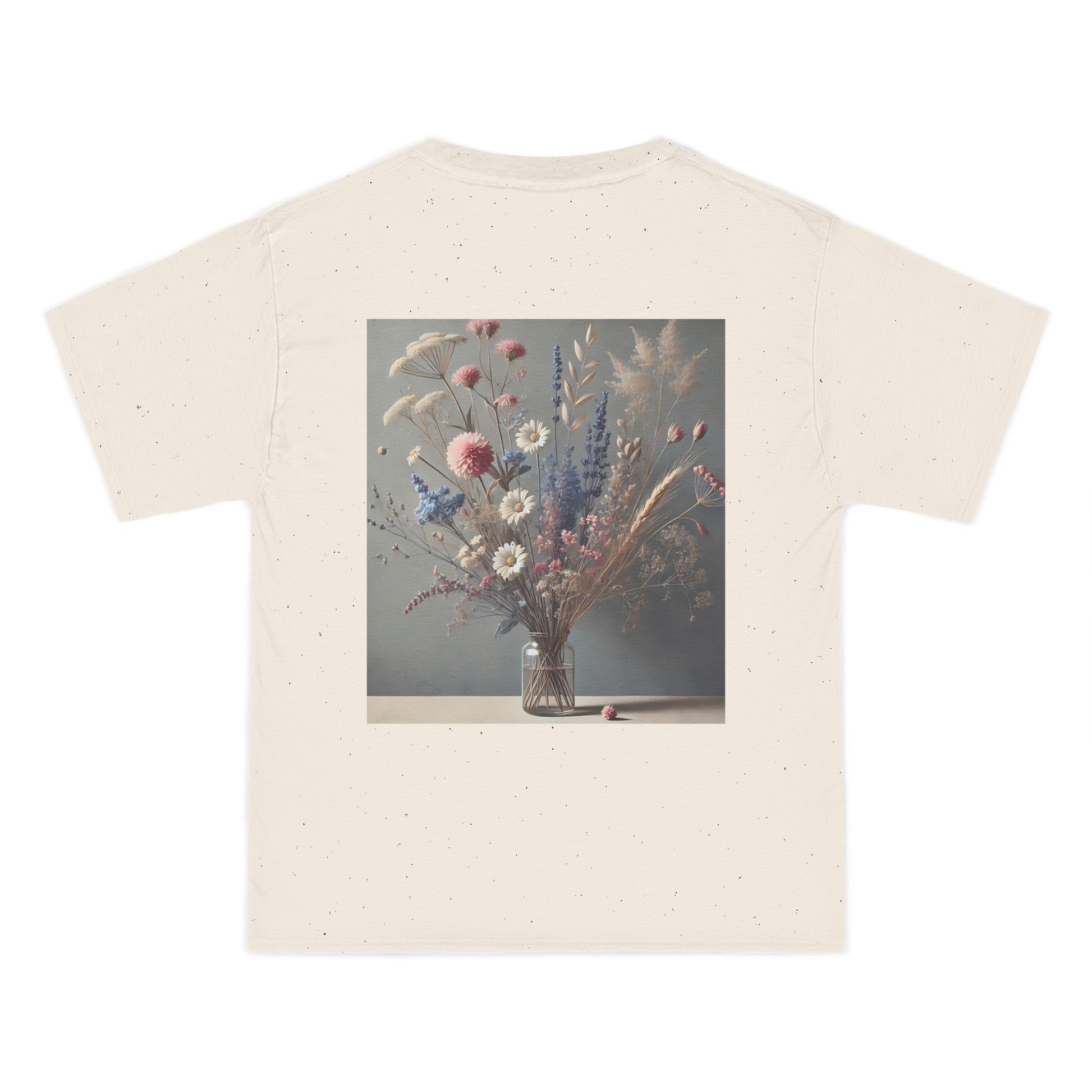Crafted from the coziest cotton blends, this tee is as comfortable as it is creative. The smooth finish creates a perfect setting for the AI-generated floral design, while the double-needle stitching and shoulder taping ensures your wearable art stands the test of time. And with a lay-flat collar that retains its shape wash after wash, this tee isn't just a fashion statement—it's a long-lasting expression of your unique style.