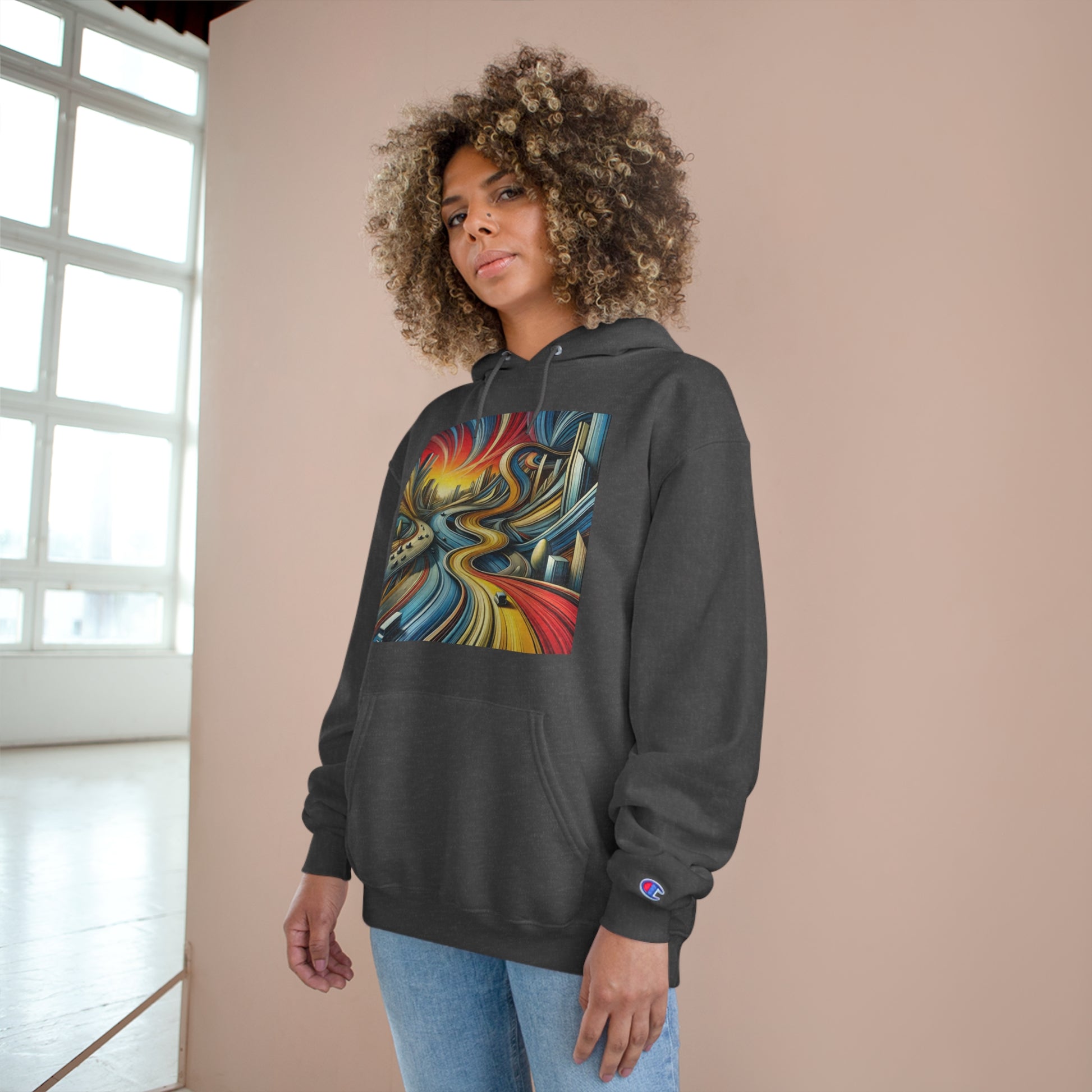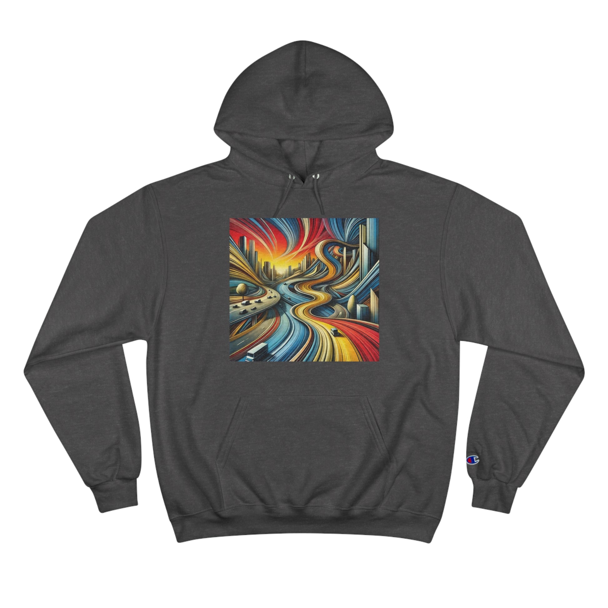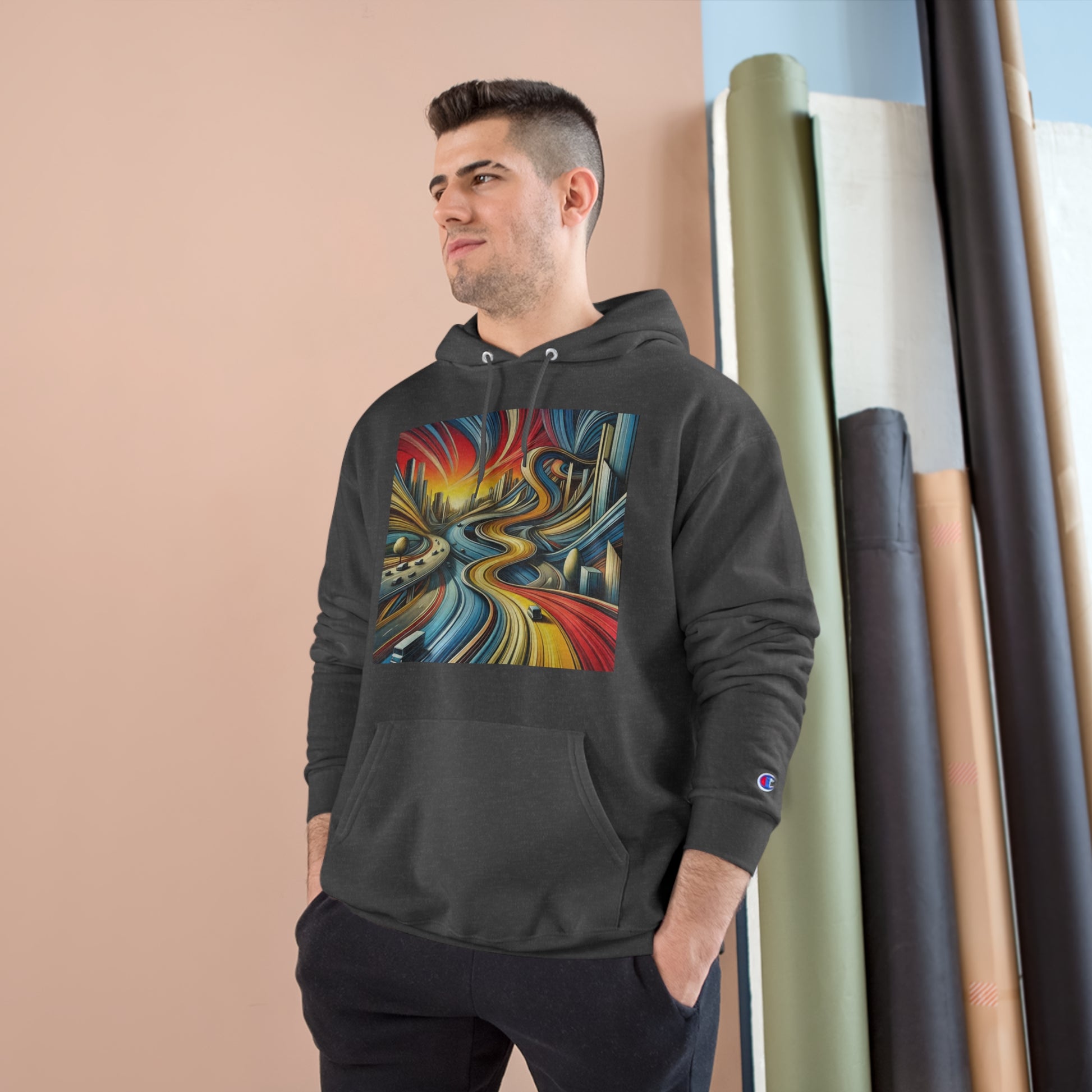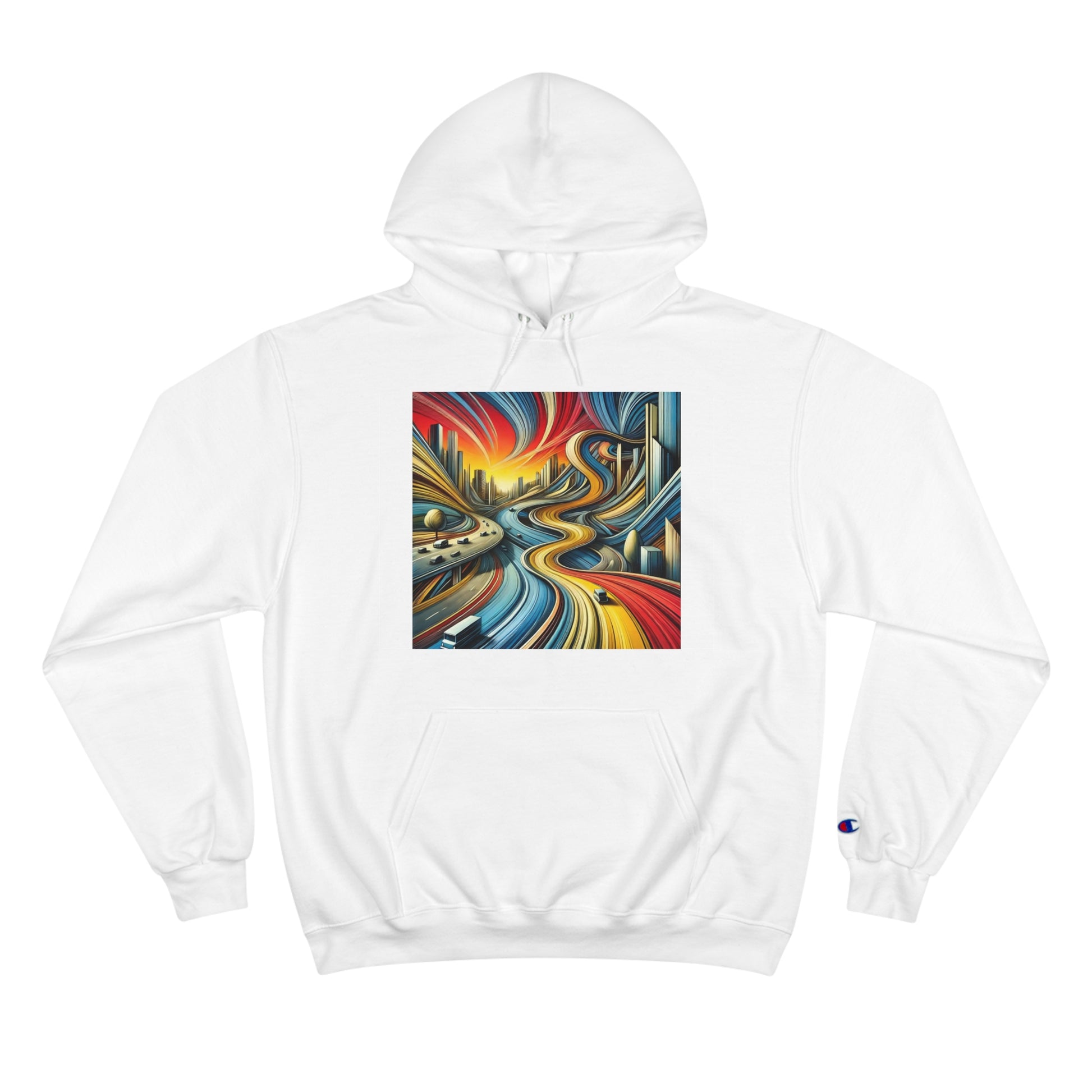 Featuring a unique design of rolling, distorted roads and warped horizons within a chaotic urban environment, this hoodie allows you to wear your world. Its futuristic, AI-generated design transforms the ordinary into the extraordinary, reminding us that beauty lies in the eye of the beholder.