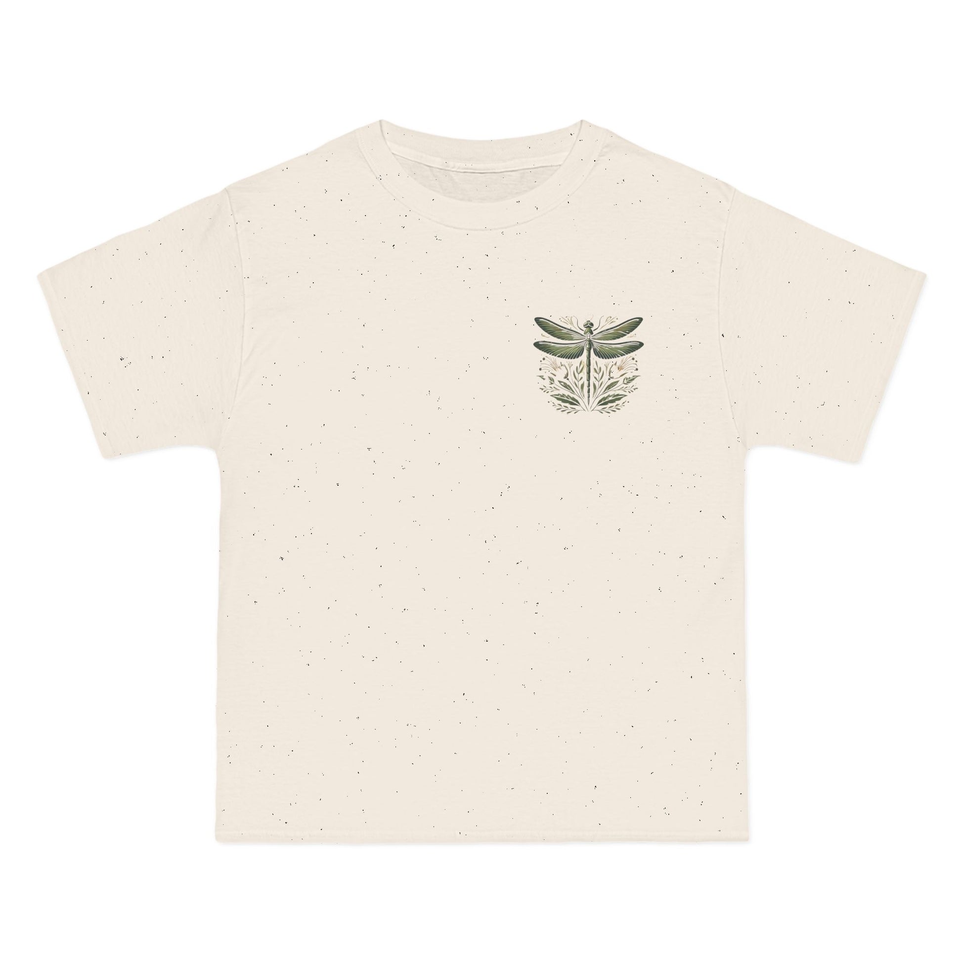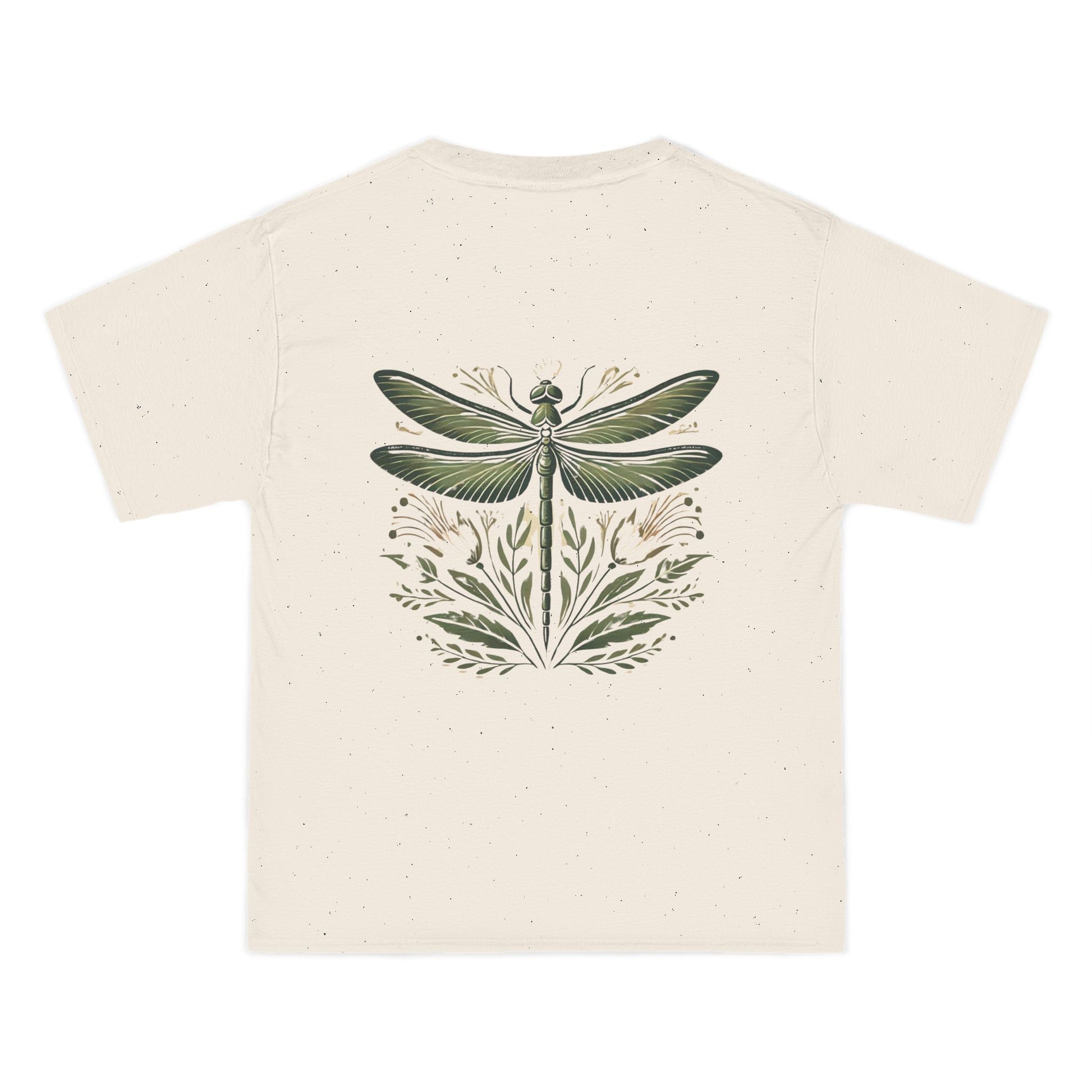 Step into the world of wearable art with our Dragonfly: Floral Sepia shirt. This exquisite piece, brought to life by AI technology, features a captivating dragonfly motif, its wings elongated and adorned with delicate light green and orange patterns. The dragonfly, poised against a warm, sepia-toned backdrop, evokes feelings of nostalgia and the simple beauty of nature.