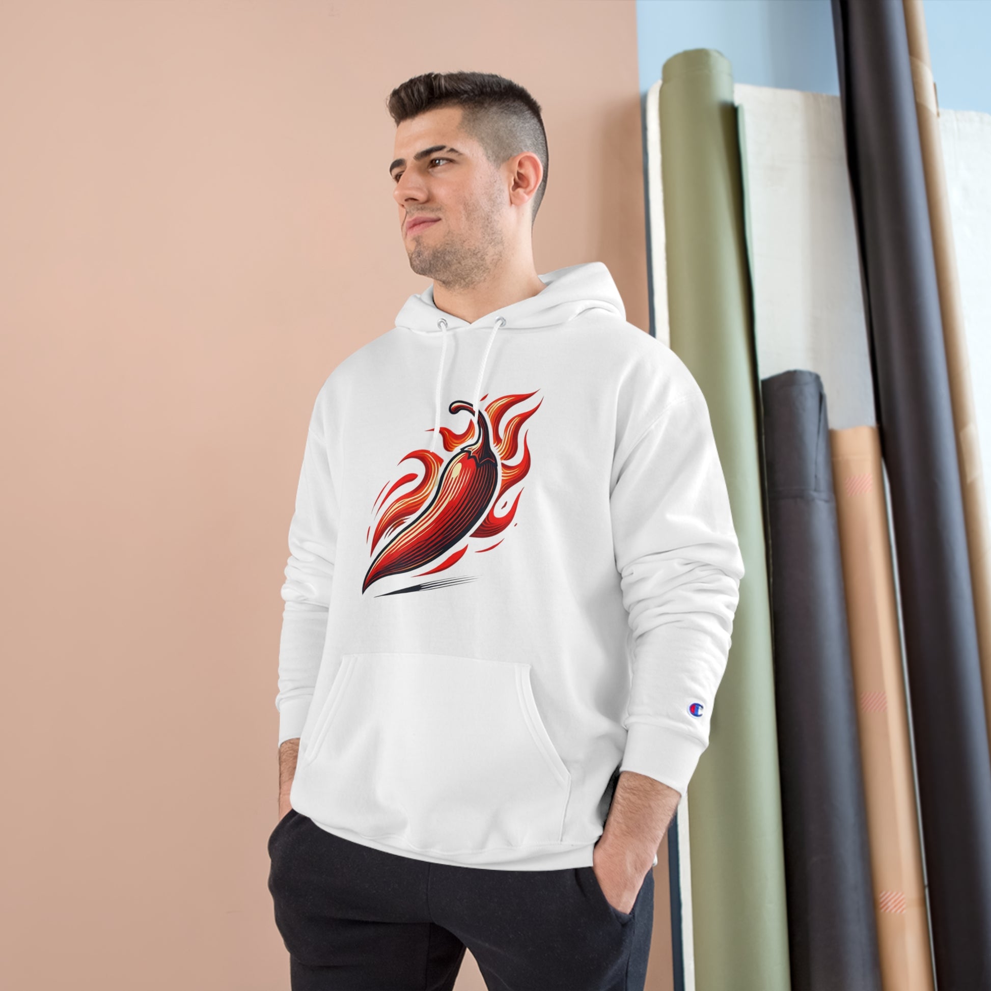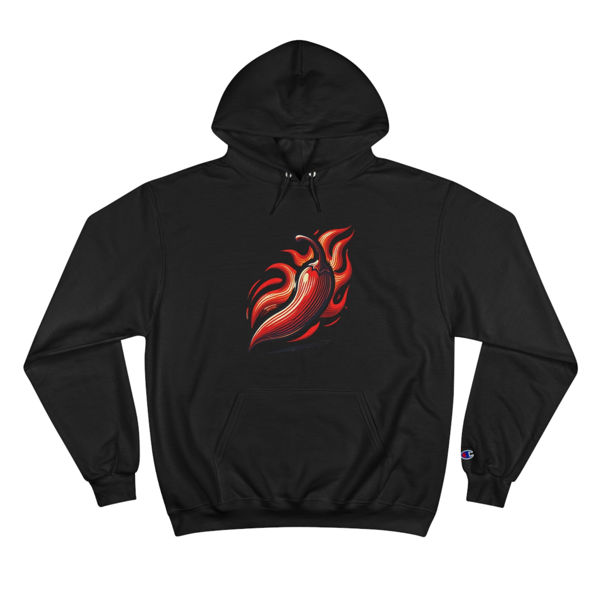 The radiant design, featuring a bright red and orange chili pepper engulfed in flames, is not just a style statement, it's wearable art. Created through unique AI-powered technology, this hoodie lets you express your passion for creativity and innovation. It's your world, wear it with pride and let your fiery spirit shine through.