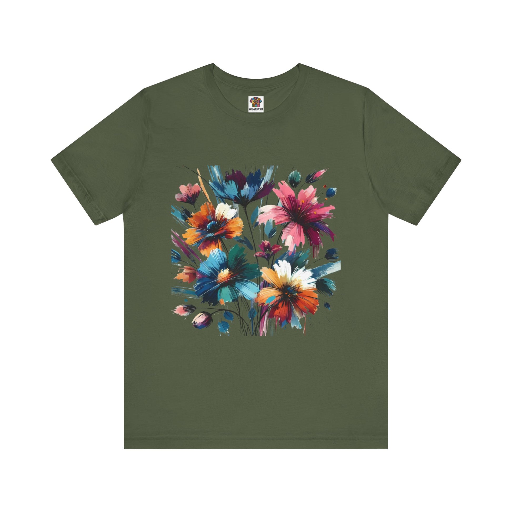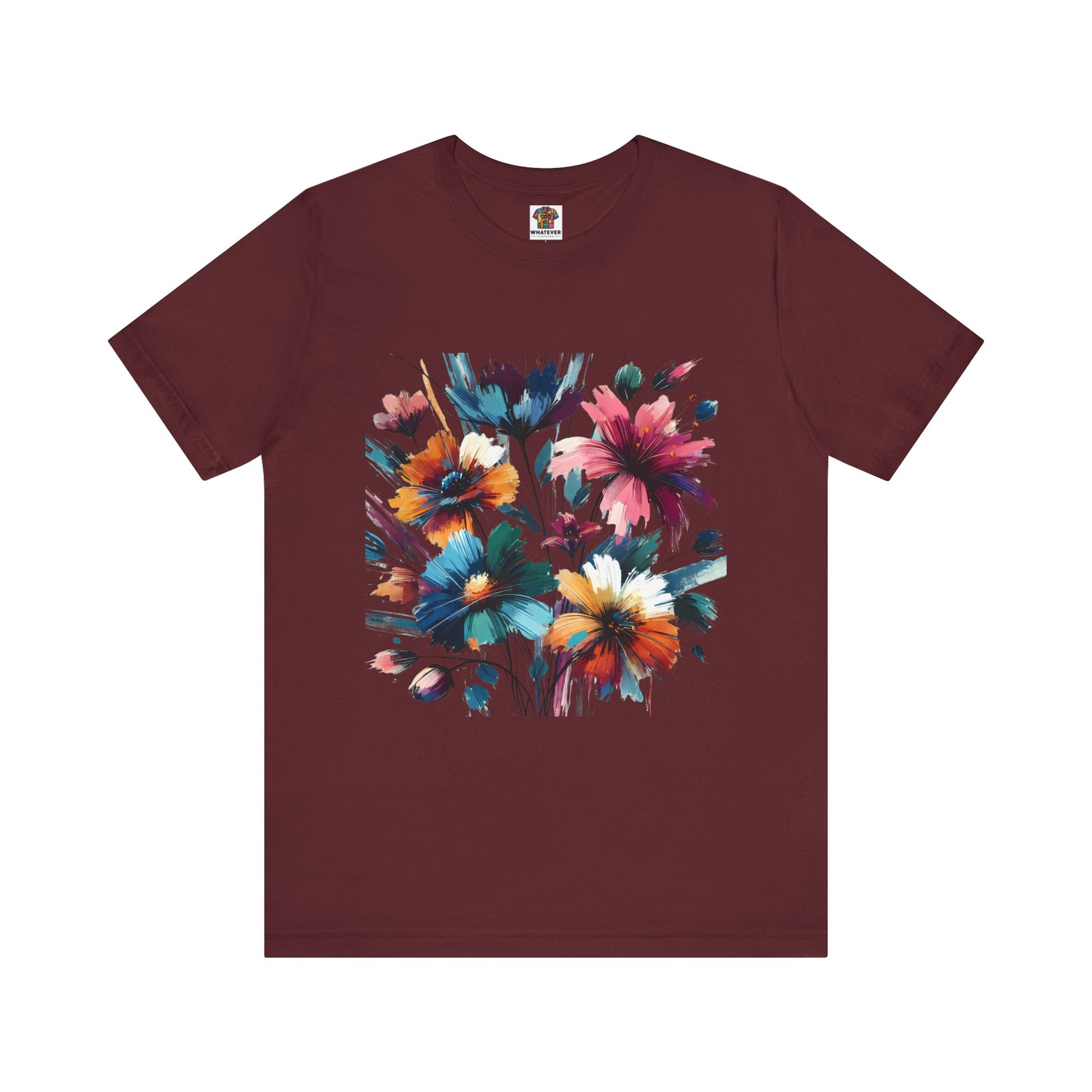 A floral pattern in abstract impressionism, featuring vibrant, layered colors and artistic brush strokes.