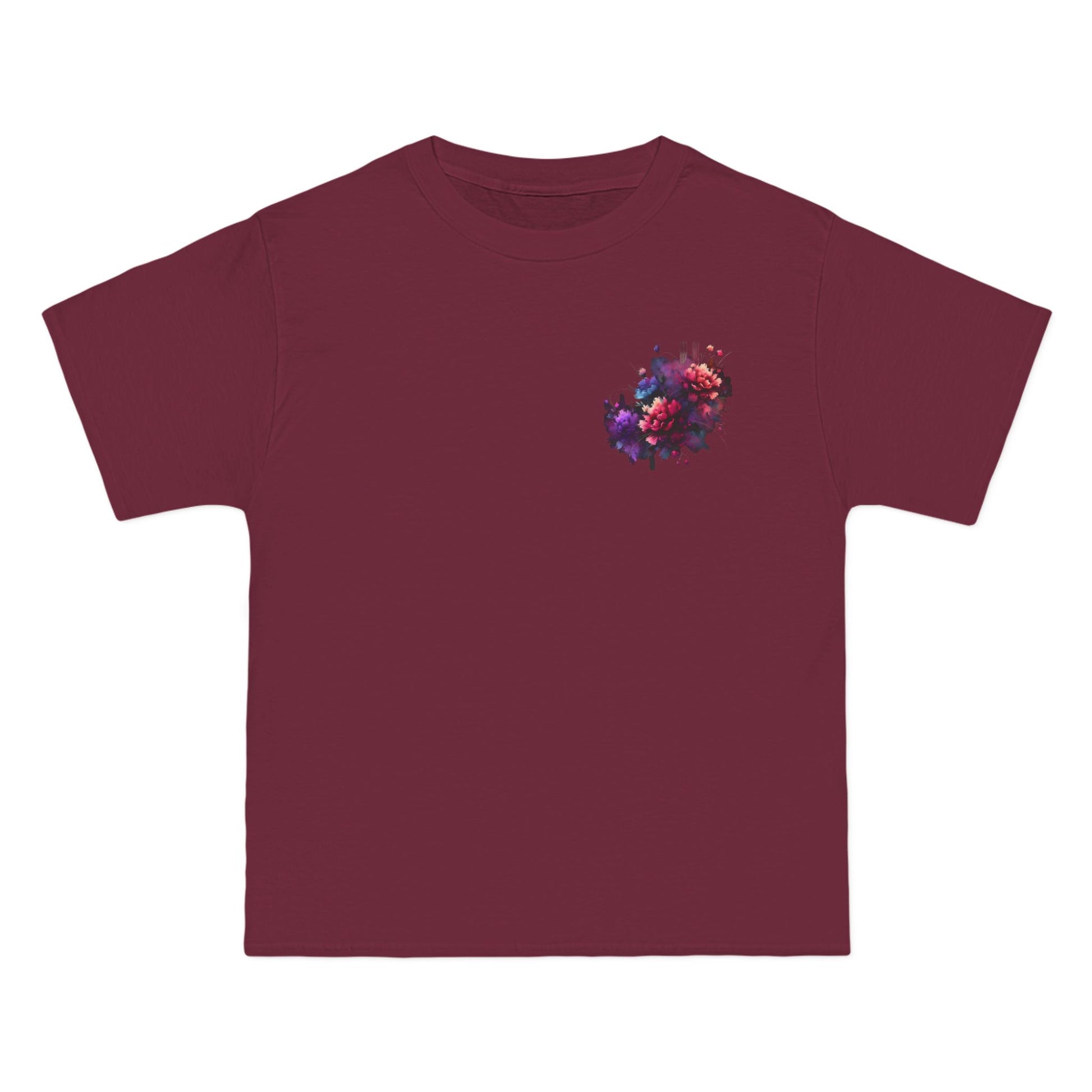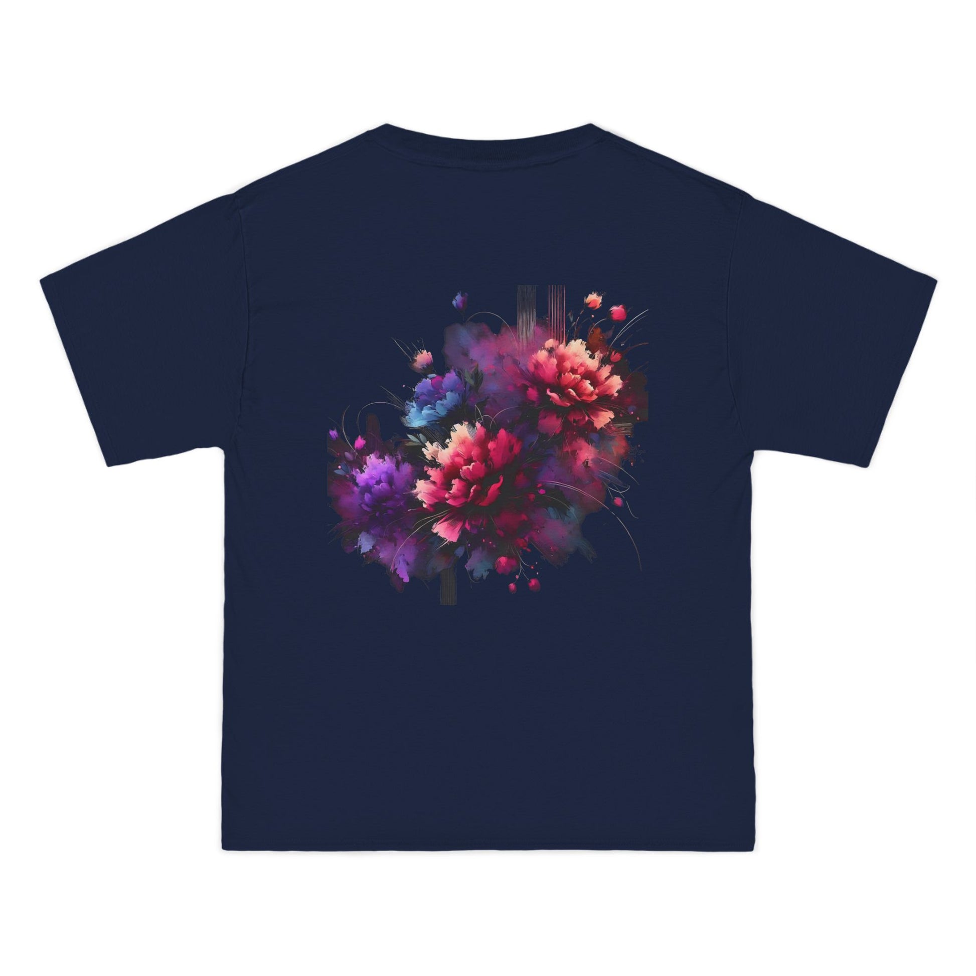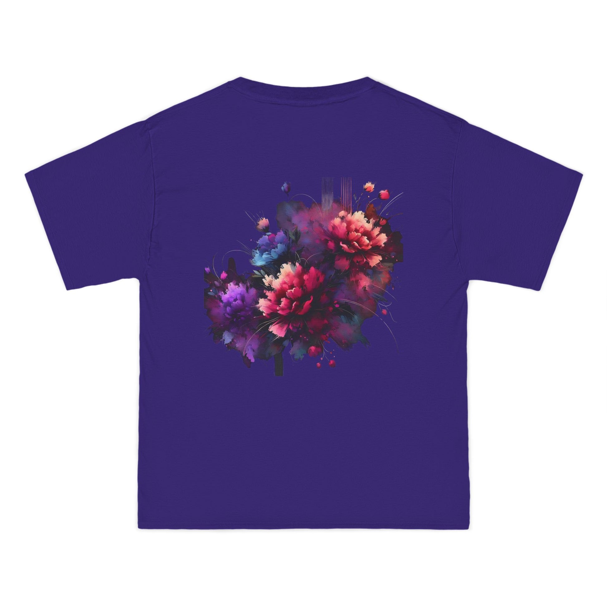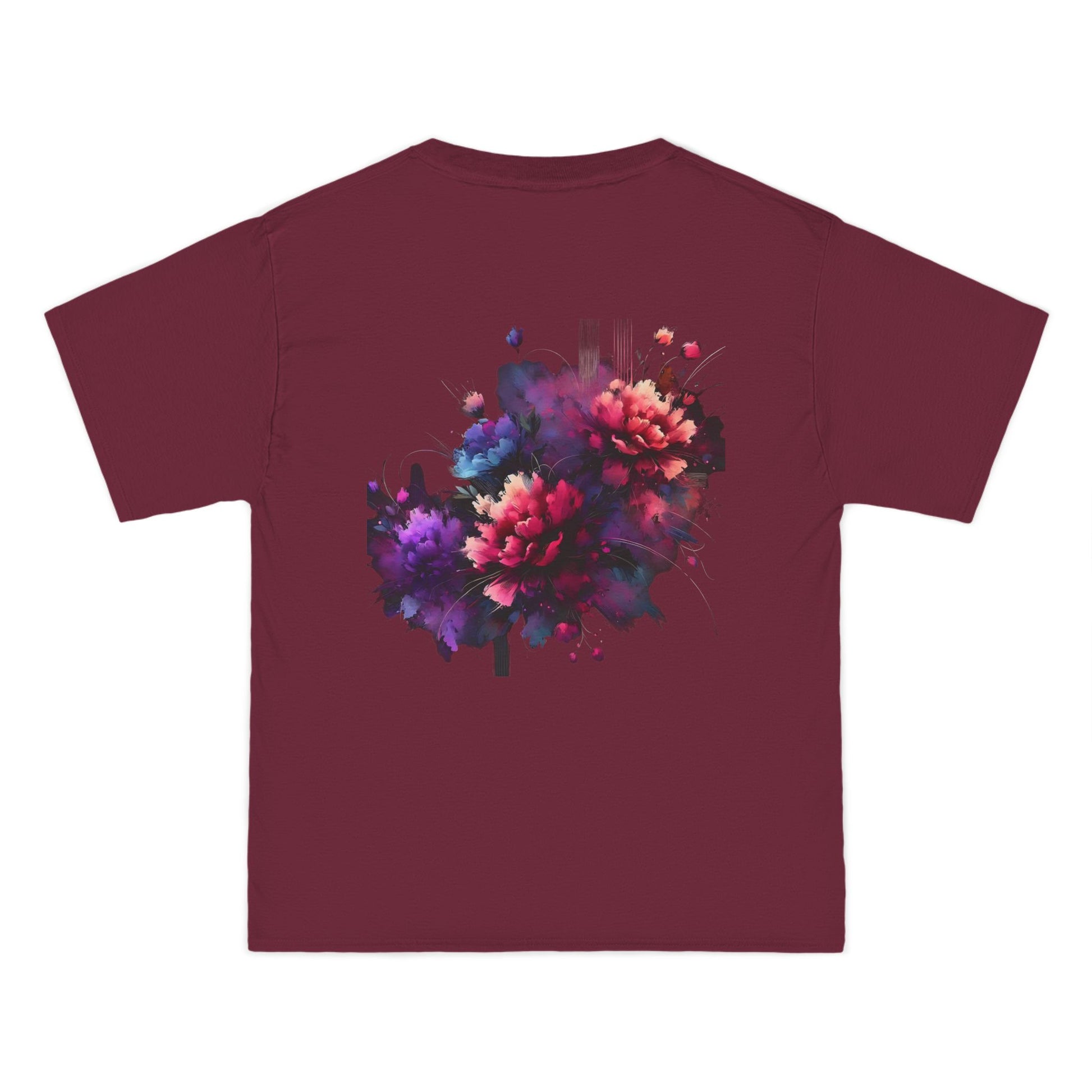 Dive into a world of color and creativity with our Floral Design: Abstract Splash. This design is more than just a garment; it's wearable art that allows you to express yourself and wear your world. Brought to life on a canvas of dark, sumptuous fabric, a vibrant symphony of bright pinks and deep purples dances in an abstract floral pattern. The gradient effect creates a sense of movement, like petals swaying in a summer breeze.