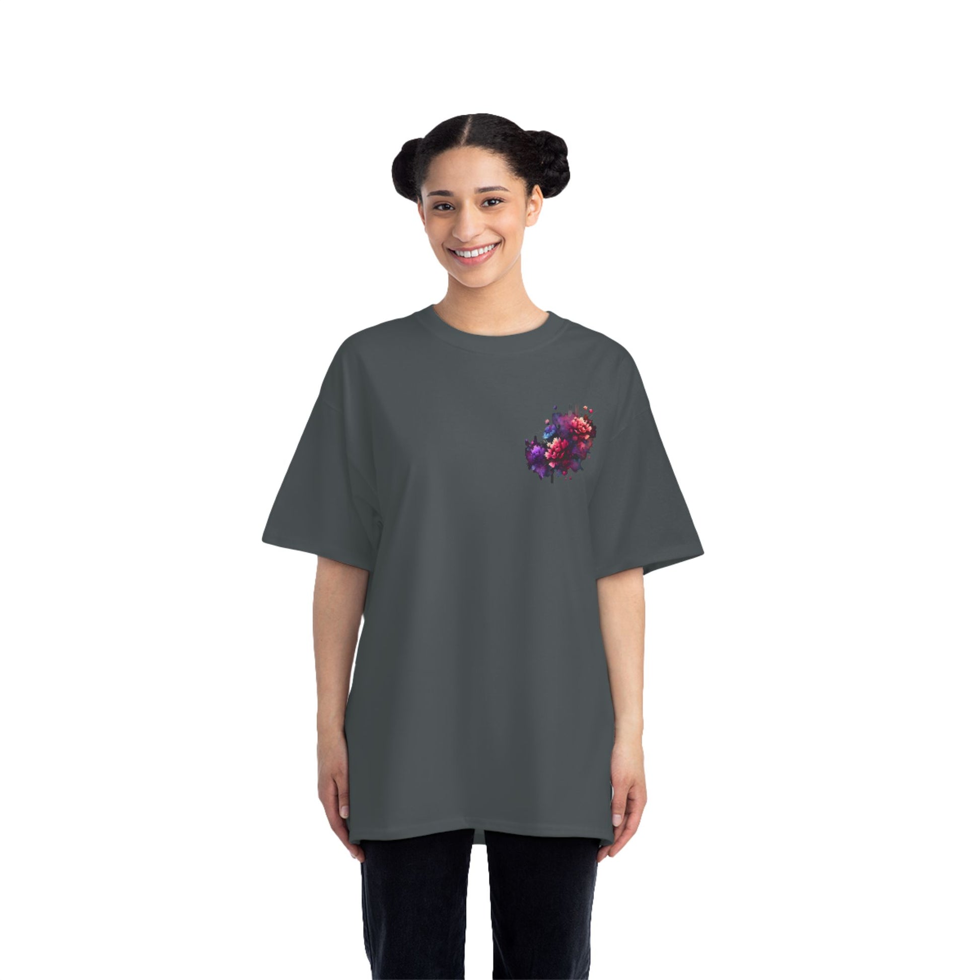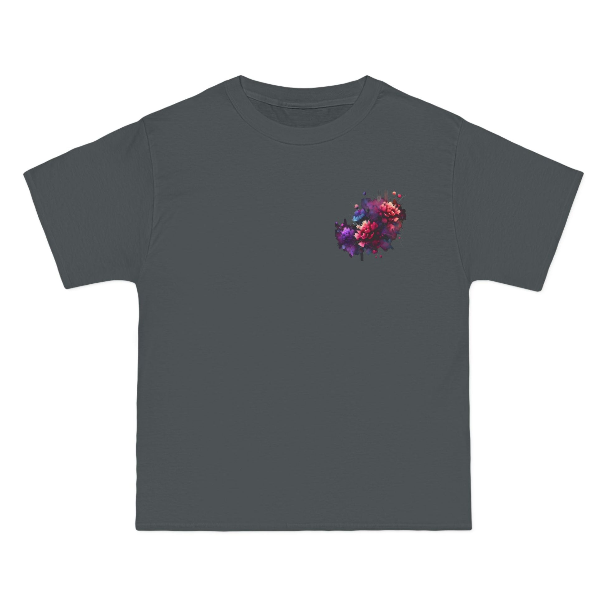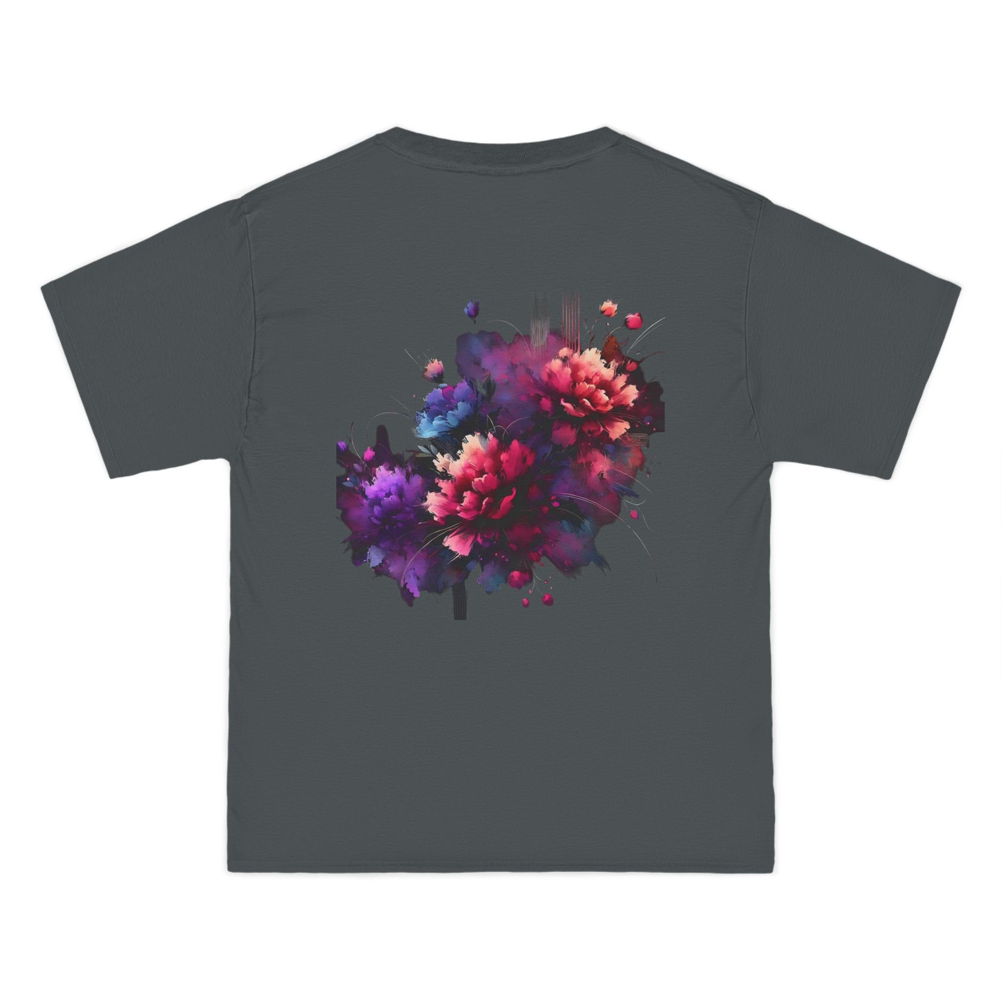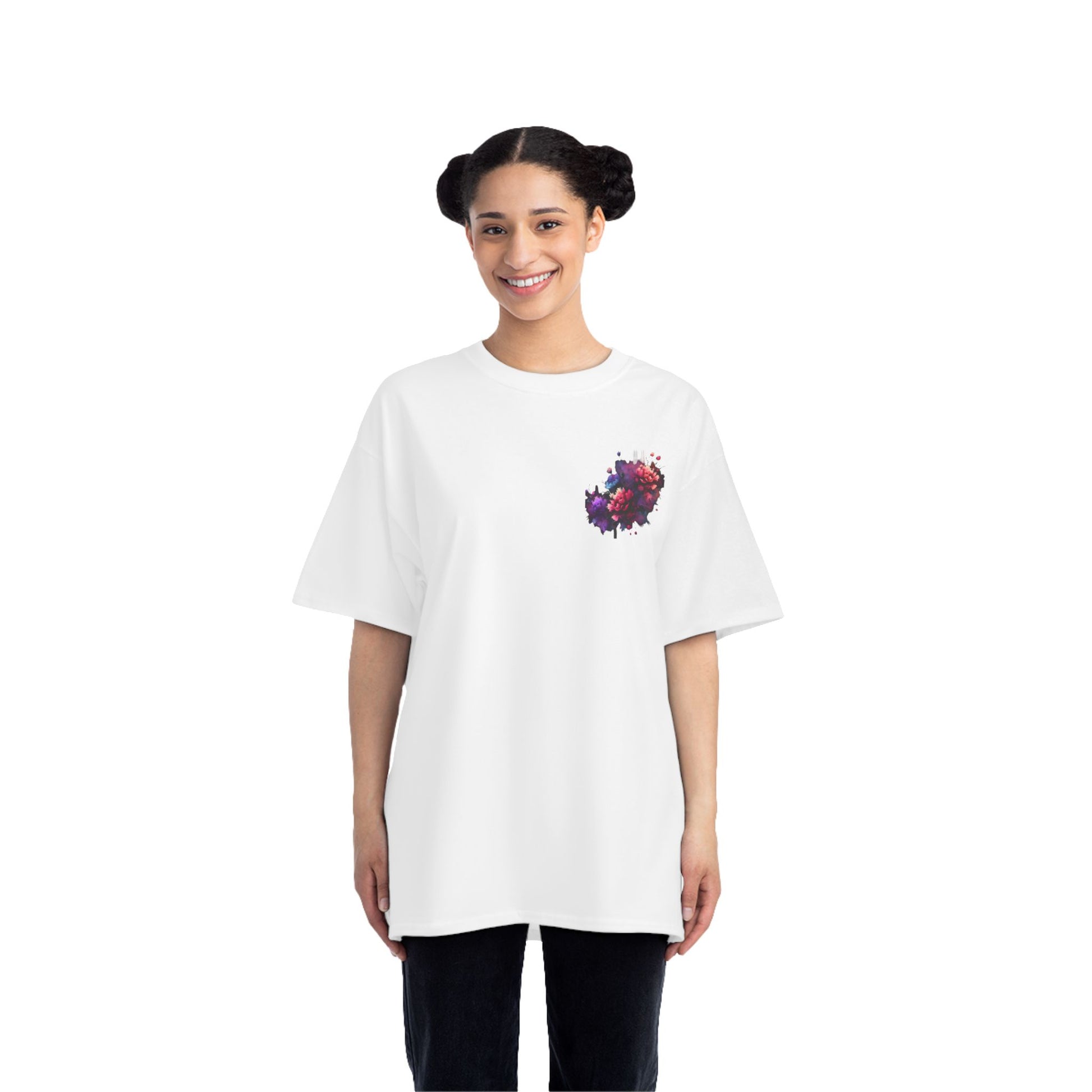 Dive into a world of color and creativity with our Floral Design: Abstract Splash. This design is more than just a garment; it's wearable art that allows you to express yourself and wear your world. Brought to life on a canvas of dark, sumptuous fabric, a vibrant symphony of bright pinks and deep purples dances in an abstract floral pattern. The gradient effect creates a sense of movement, like petals swaying in a summer breeze.