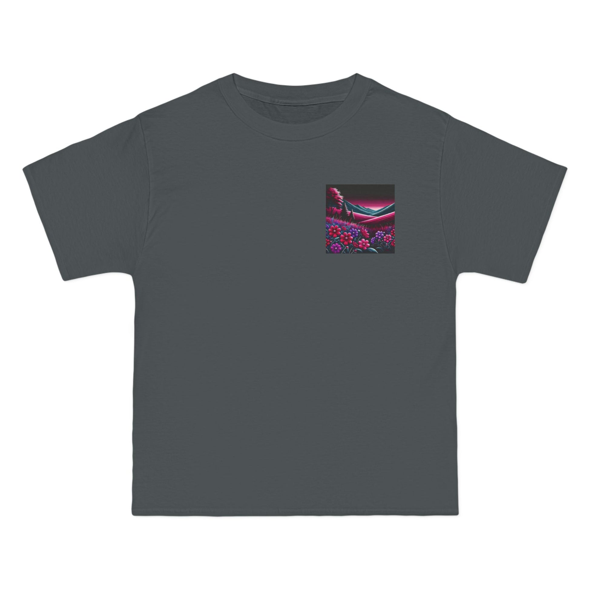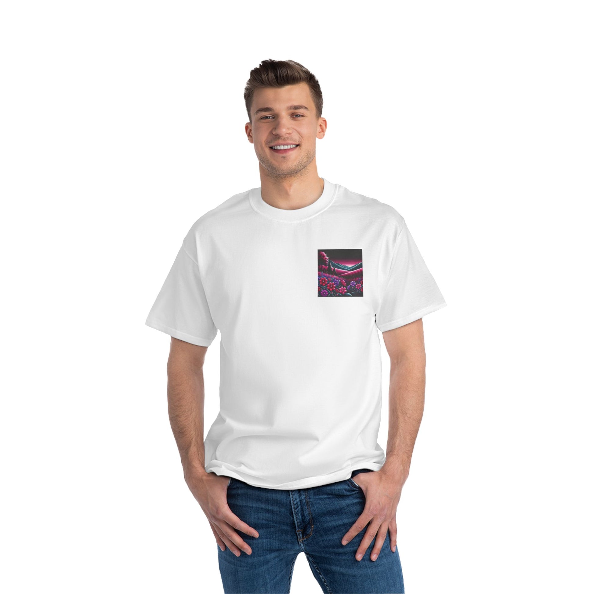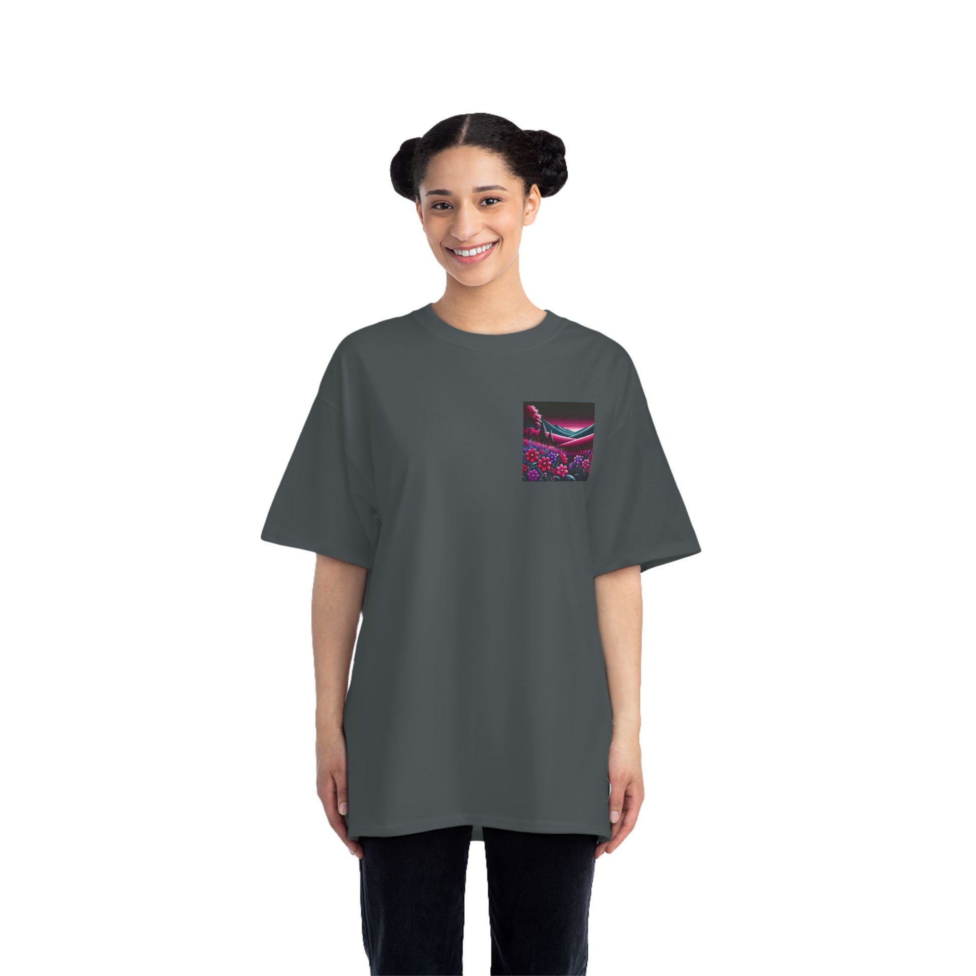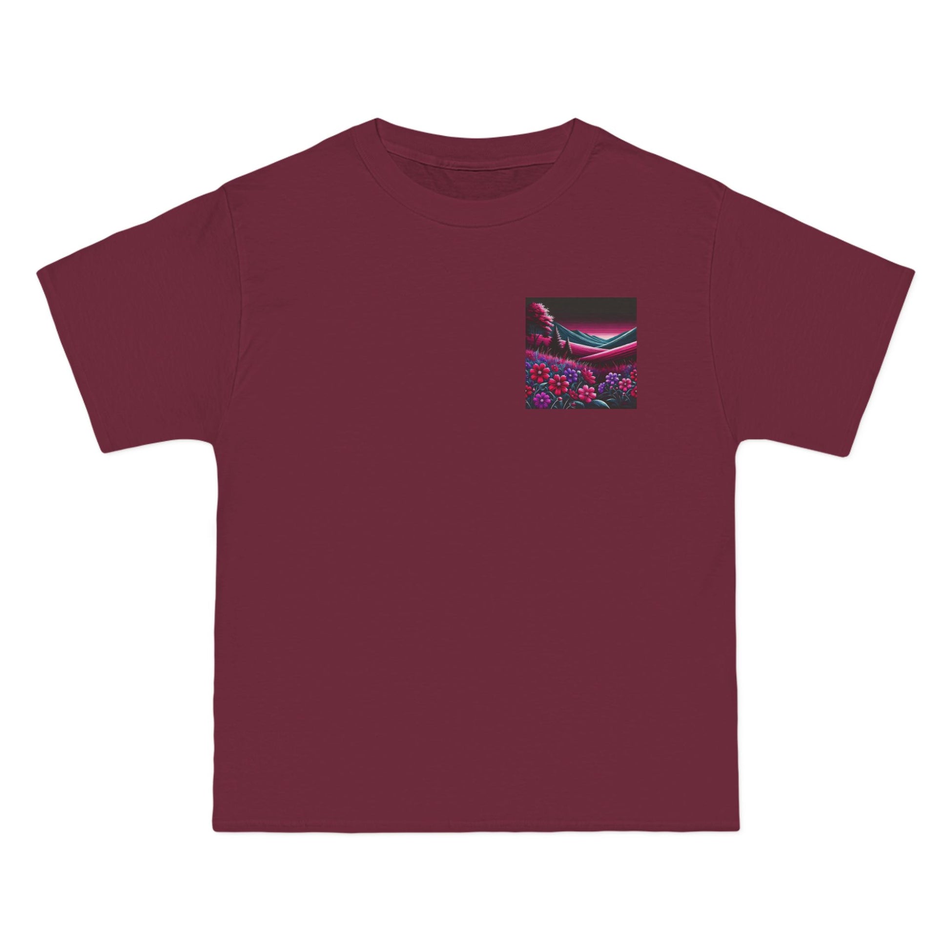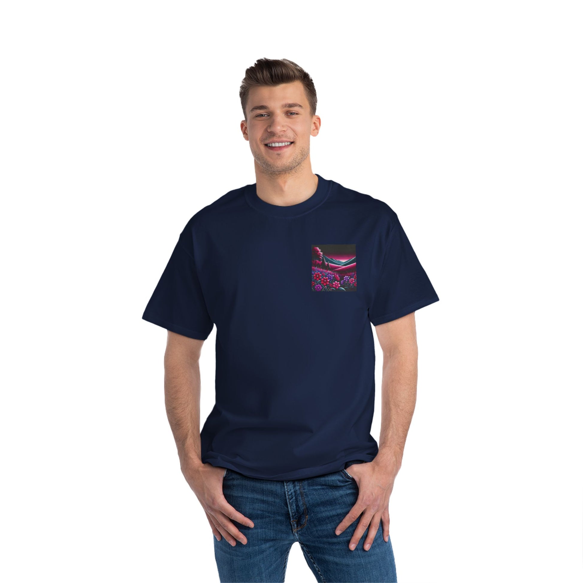 Introducing Floral Landscape: Floral Noir, a wearable art piece that unleashes your creativity and lets you wear your world. This unique, AI-generated design captures the enchanting beauty of rolling hills blanketed in radiant magenta flowers under an inky black sky. It's a surreal and captivating landscape, meticulously crafted to inspire and empower you.