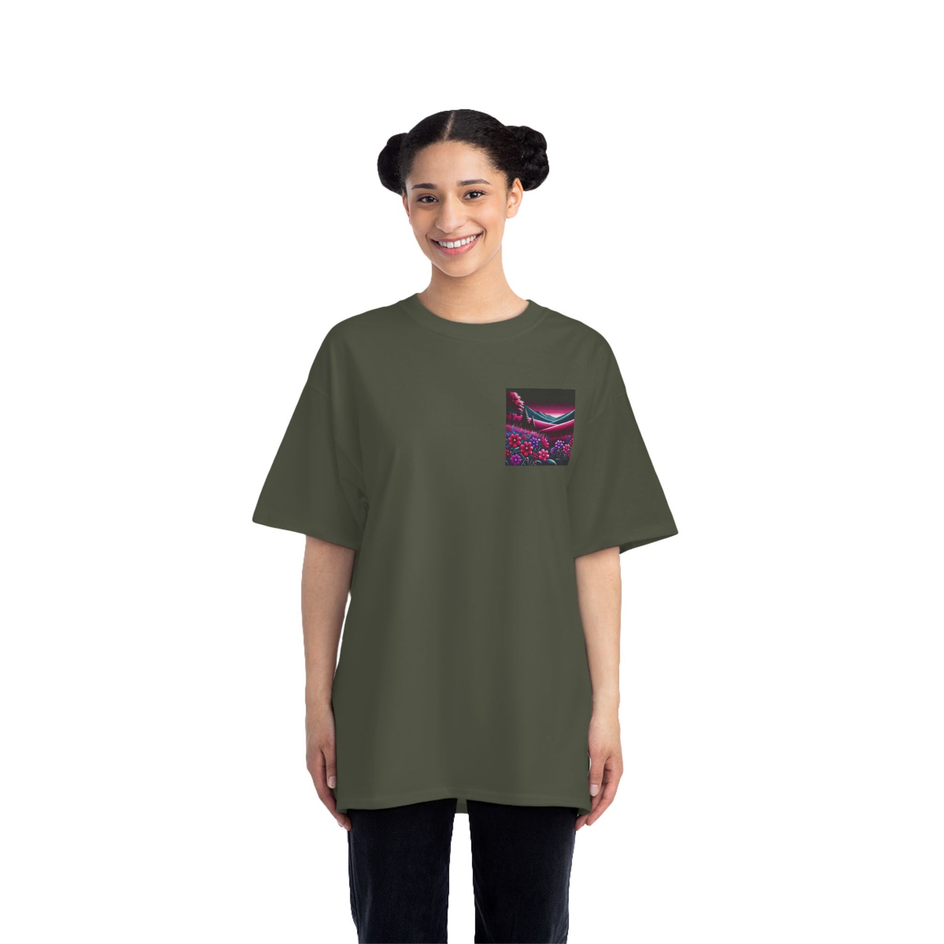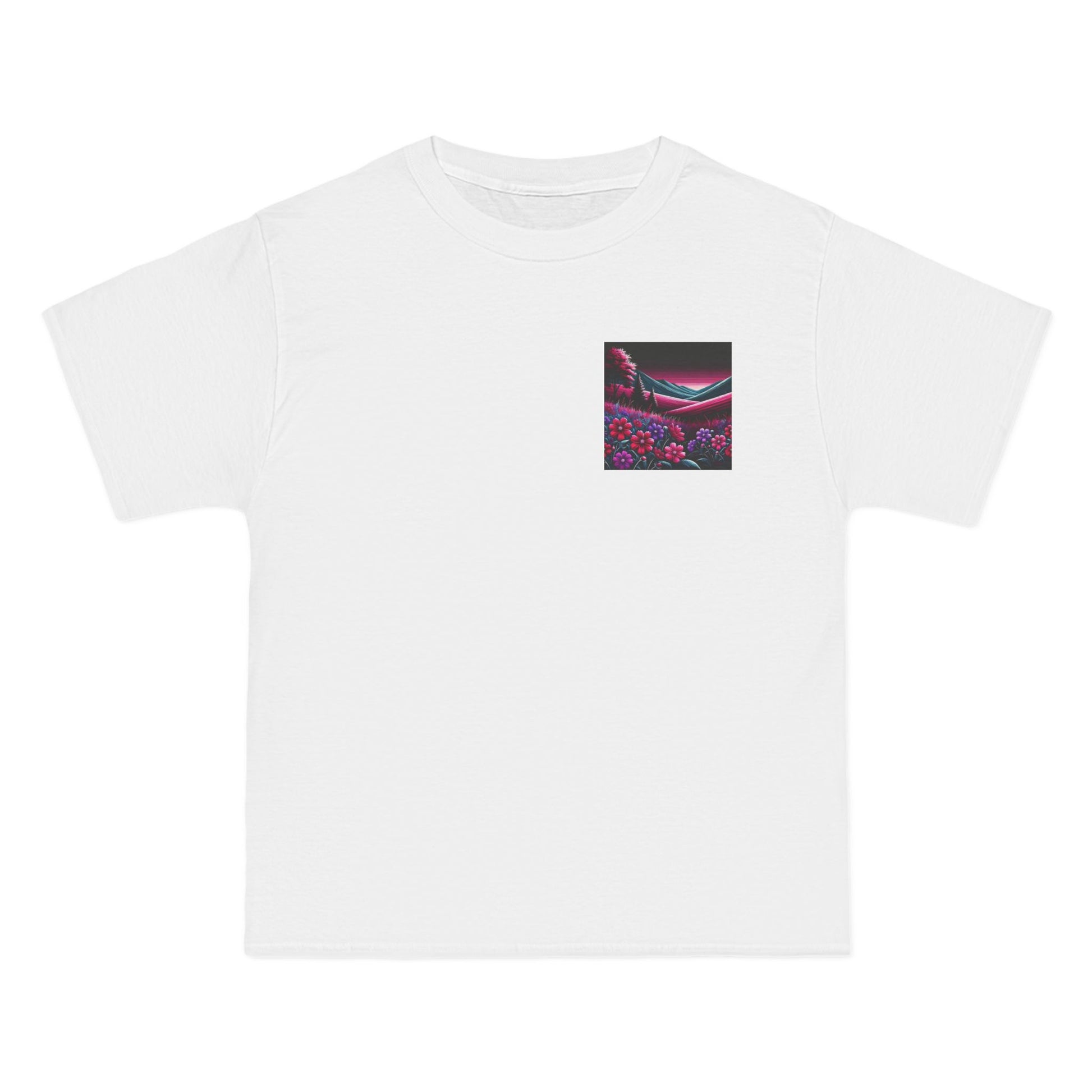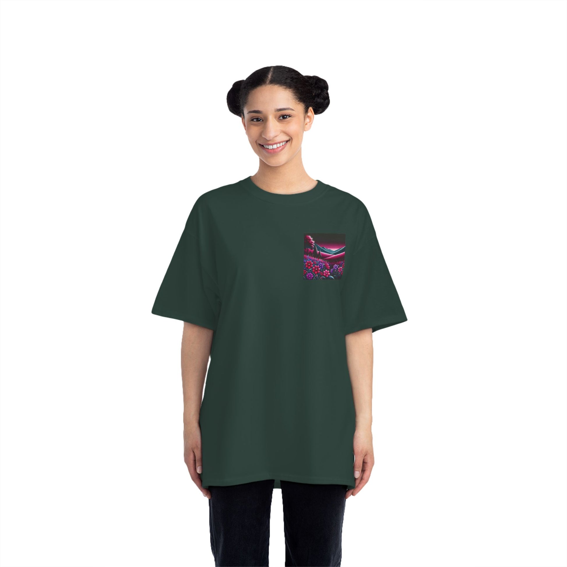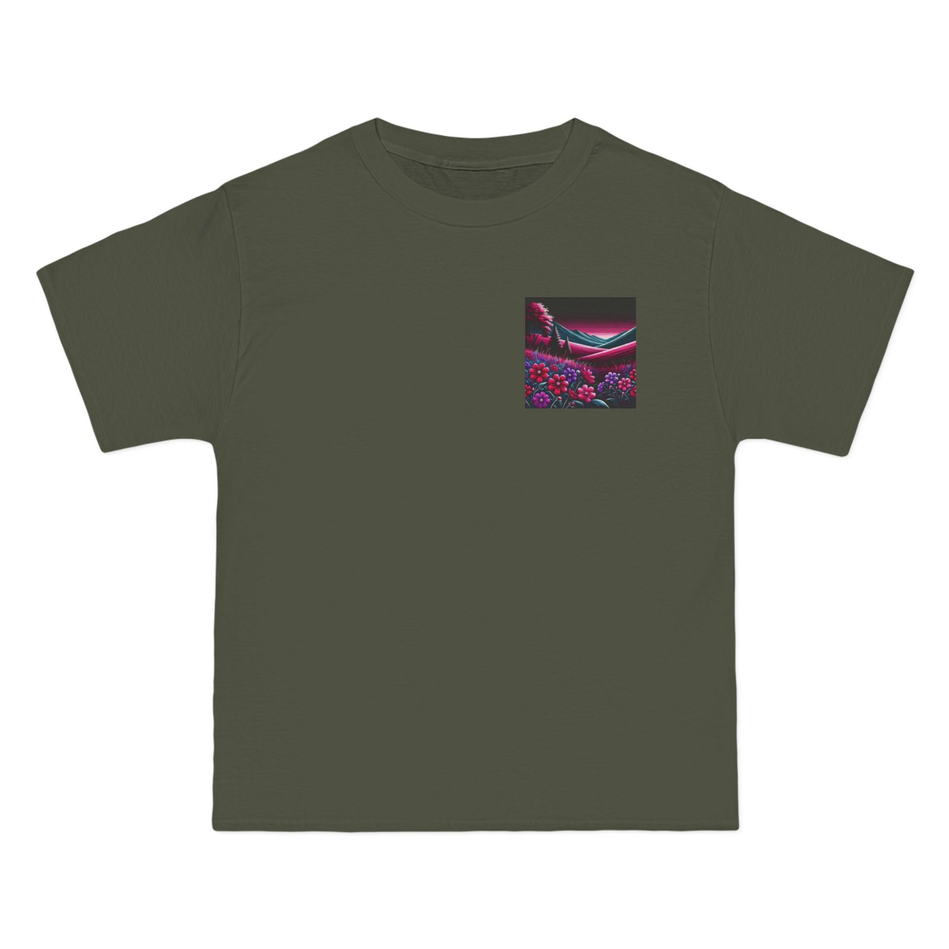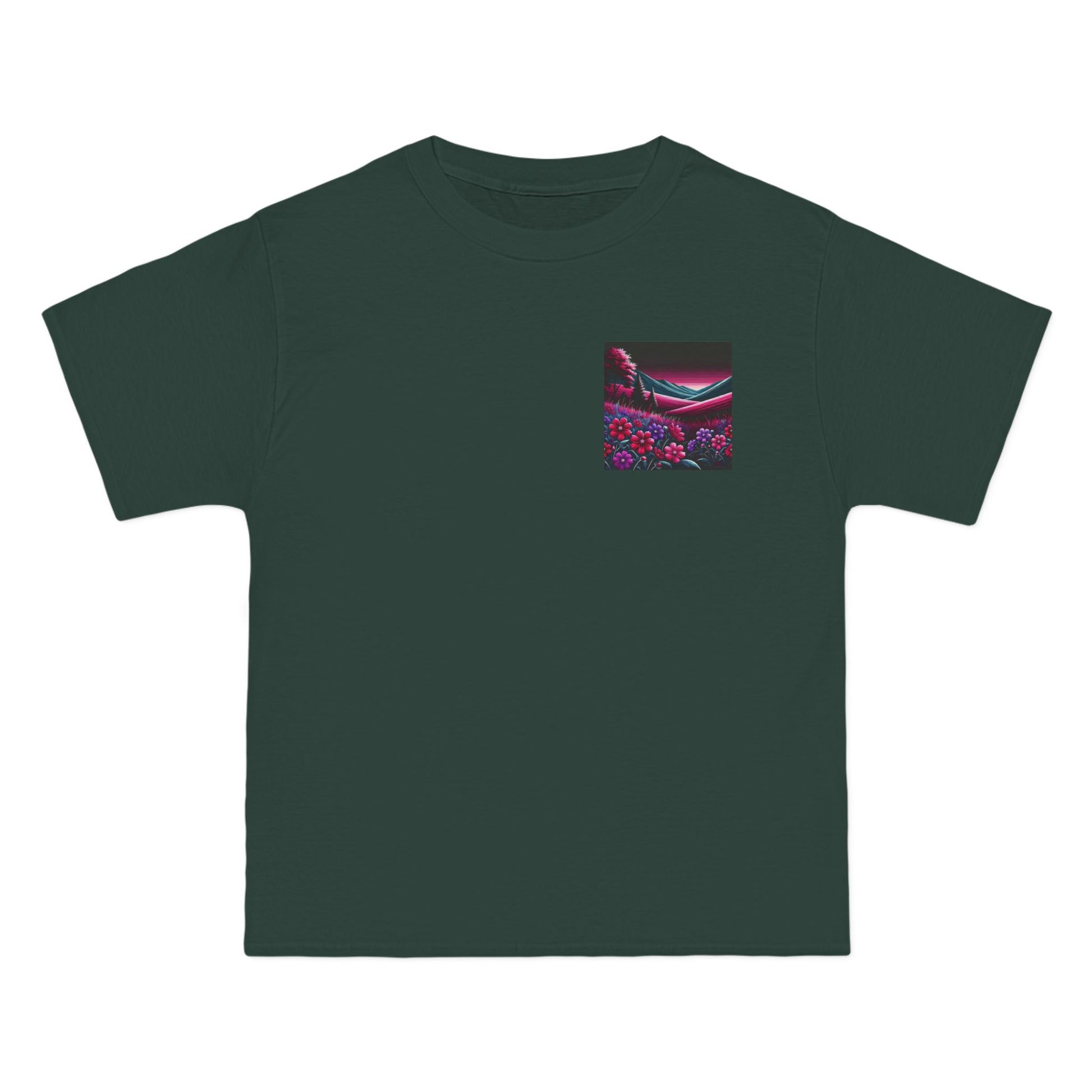Introducing Floral Landscape: Floral Noir, a wearable art piece that unleashes your creativity and lets you wear your world. This unique, AI-generated design captures the enchanting beauty of rolling hills blanketed in radiant magenta flowers under an inky black sky. It's a surreal and captivating landscape, meticulously crafted to inspire and empower you.