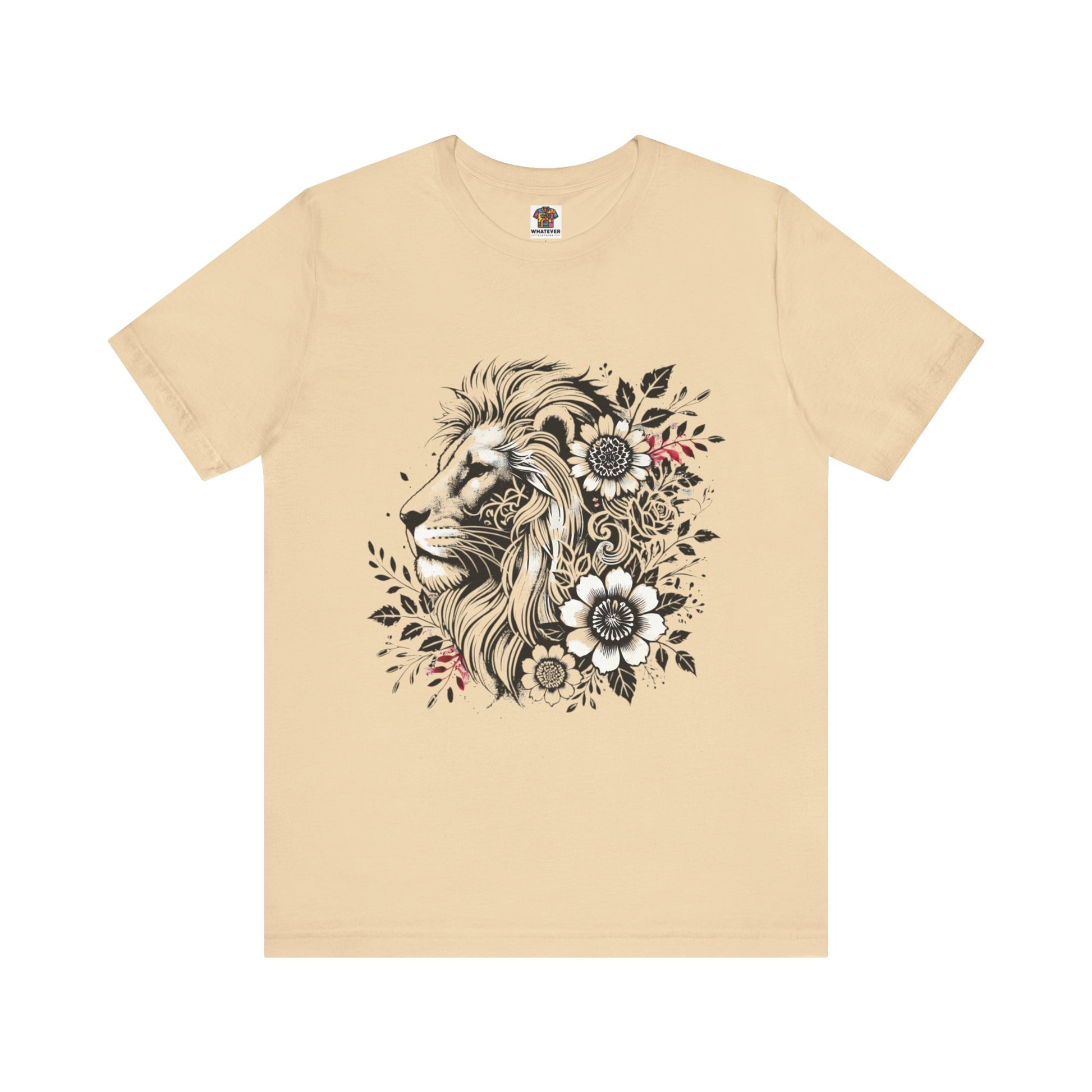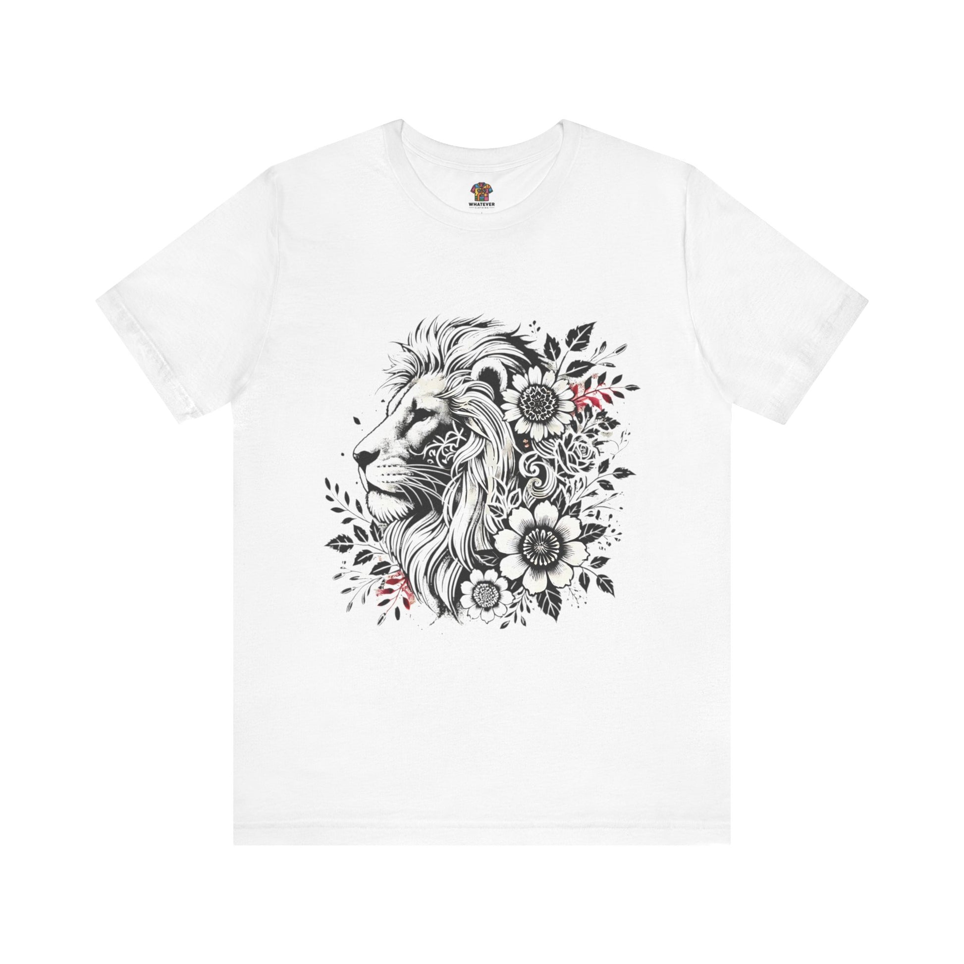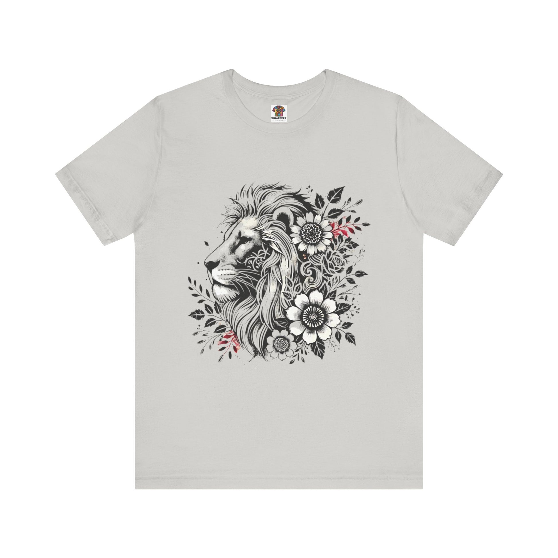 Introducing our Unisex Jersey Short Sleeve Tee, designed to elevate your casual wardrobe with a blend of comfort and style. This t-shirt captures a relaxed yet chic vibe, making it ideal for everyday wear or special occasions. Its unique graphic design featuring a majestic lion surrounded by floral elements adds a touch of artistry and makes it a perfect statement piece. It's great for both leisurely outings and social gatherings, fitting seamlessly into the lives of nature lovers and animal enthusiasts. Perfect as a gift for birthdays, holidays, or just to celebrate the beauty of nature any day of the year.