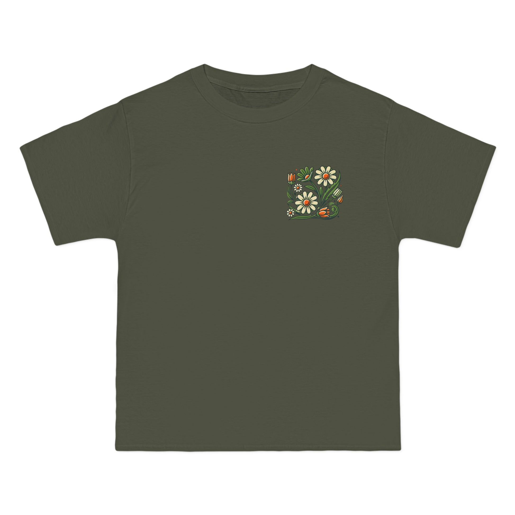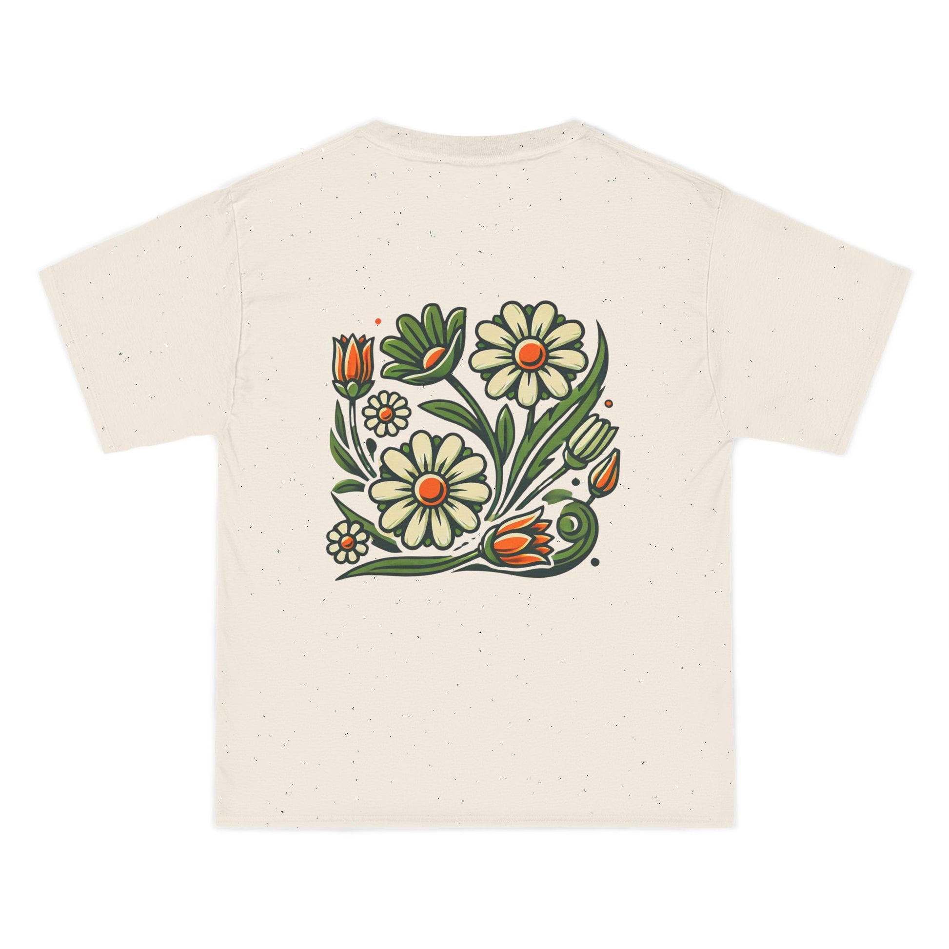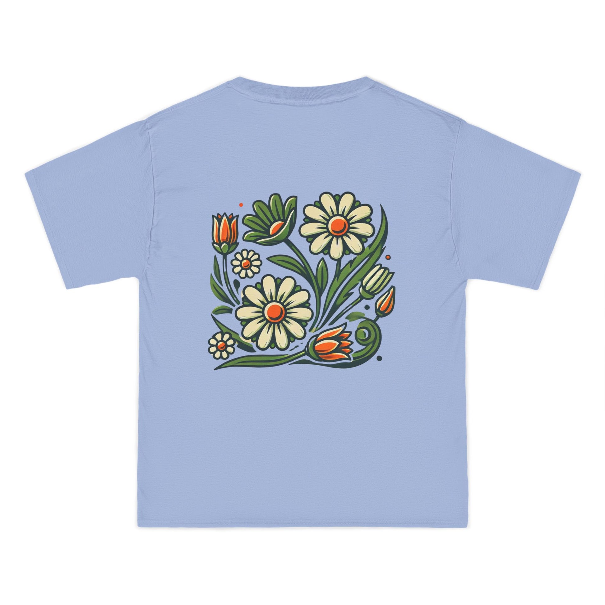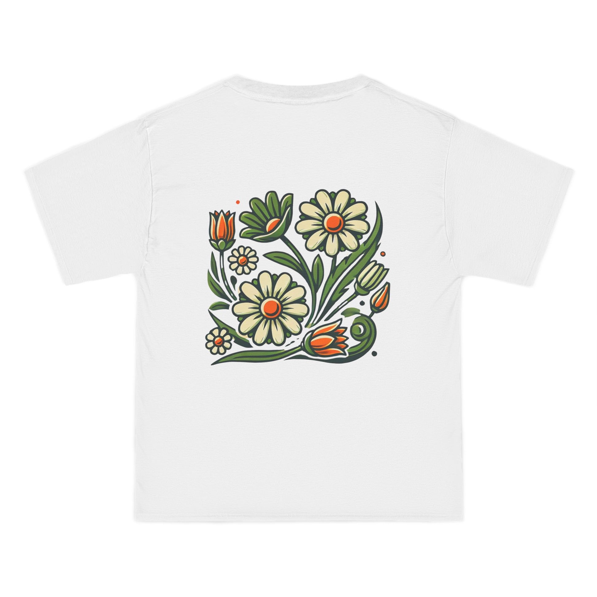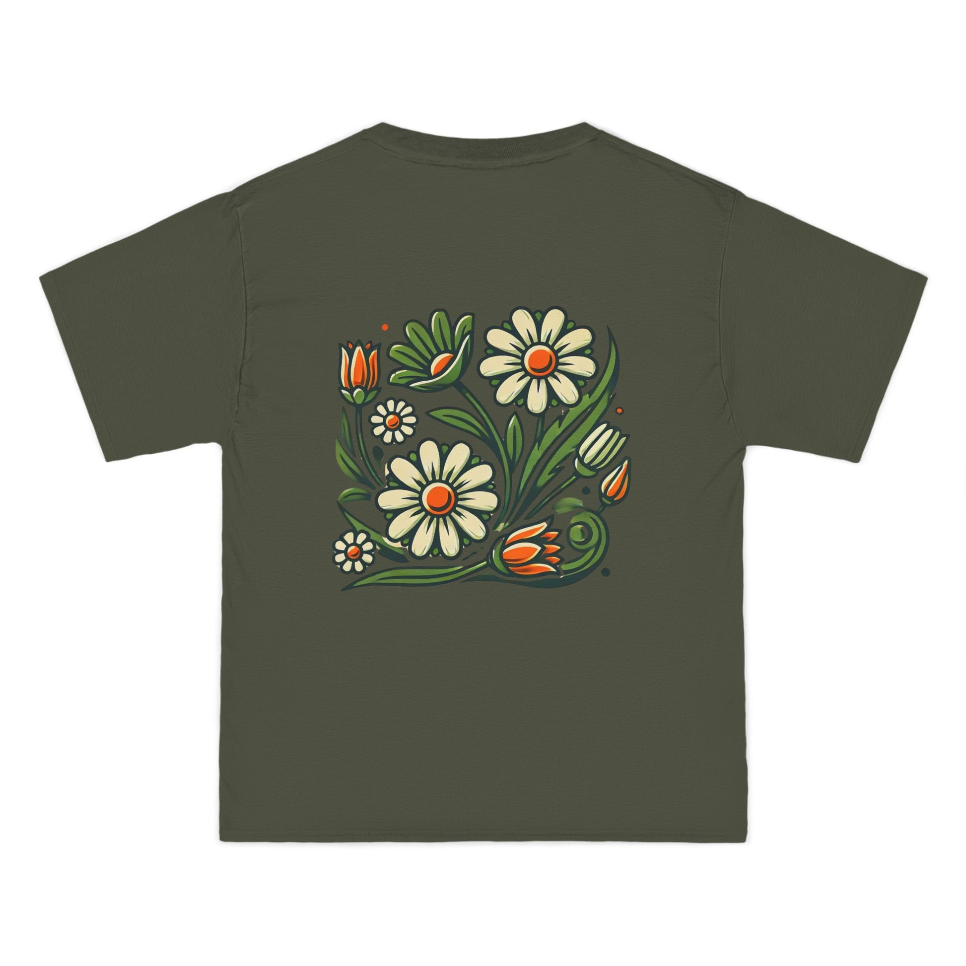 Step into the vibrant world of fashion with Whatever Clothing's Floral Orange Vibe! This unique piece showcases an enchanting blend of daisies and tulips, adorned with green petals and fiery orange centers. The design is a delightful tribute to Mother Nature, bursting with life and color, and it's all thanks to our innovative AI technology.