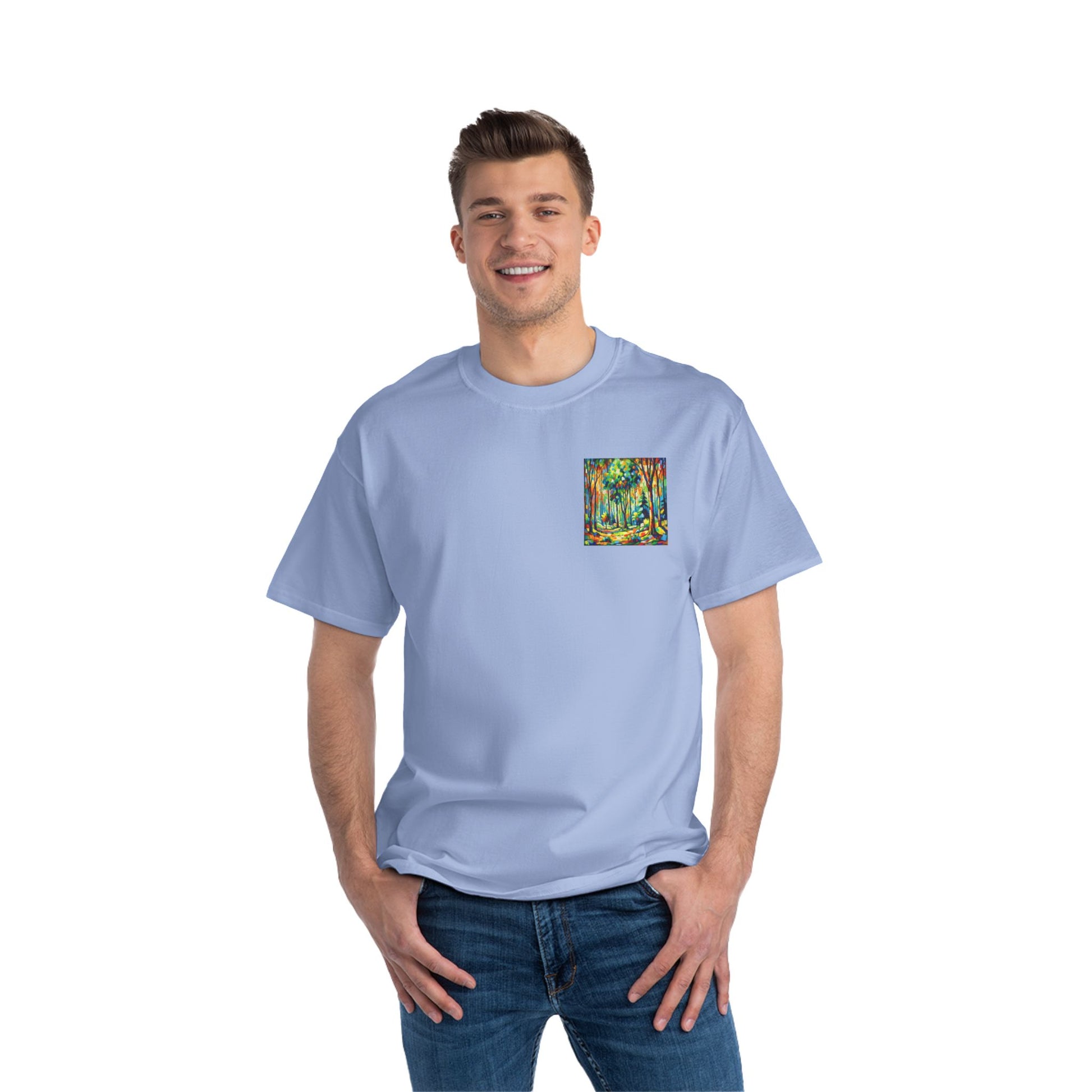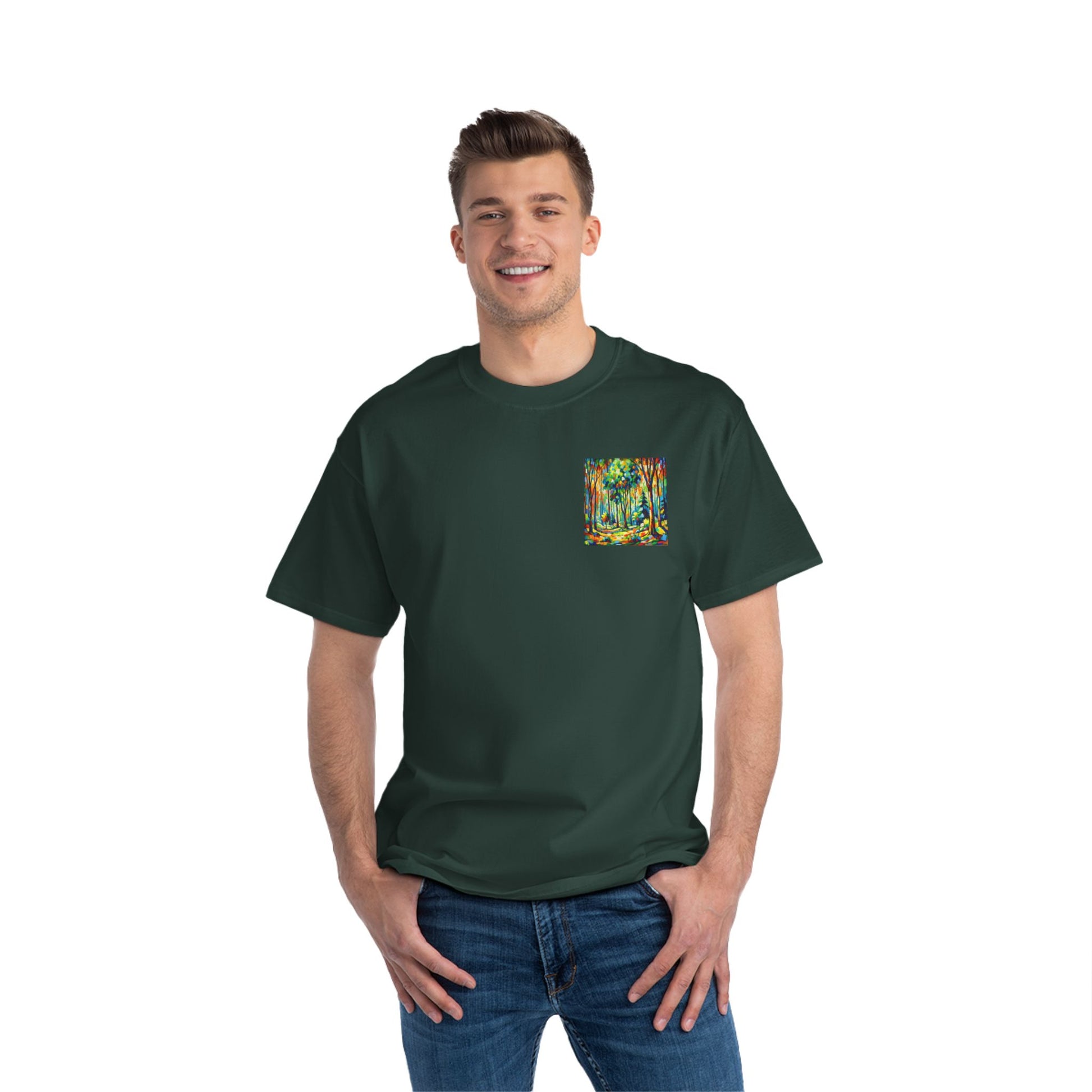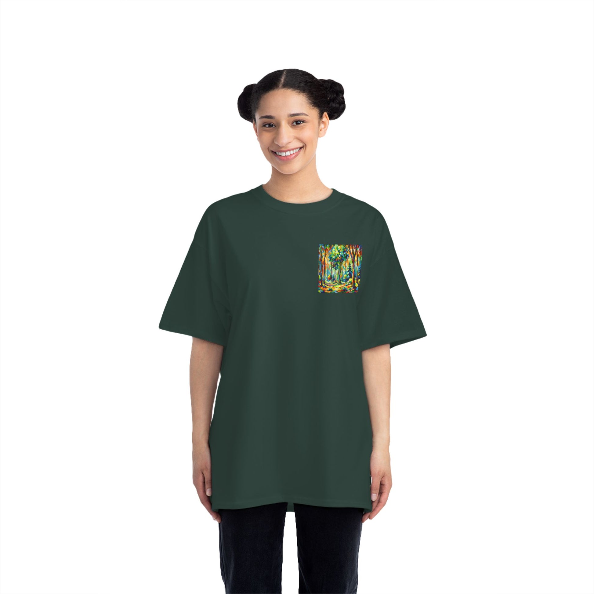 Inspired by the tranquility of nature and the explosive energy of Fauvism, this shirt brings the spirit of the forest to life. It's not just about wearing a design, but about embracing an emotion, a moment, a masterpiece. The vibrant, non-realistic colors paint a picture of the serenity and liveliness of the forest, evoking feelings of nostalgia and joy.