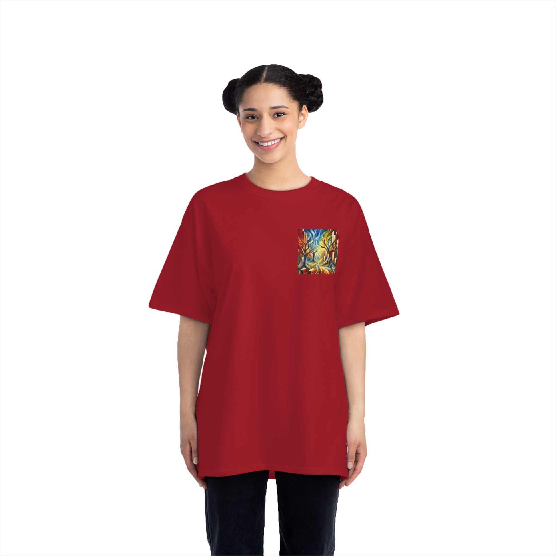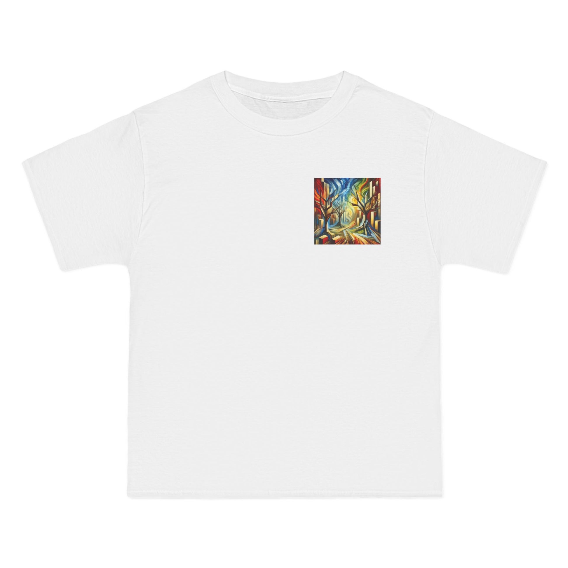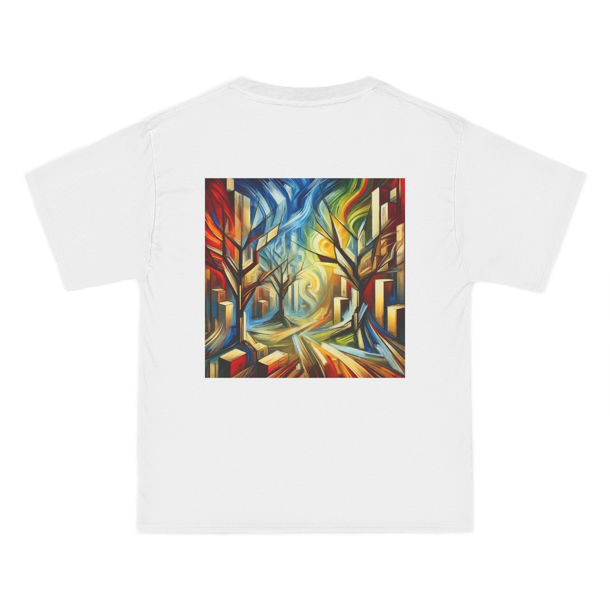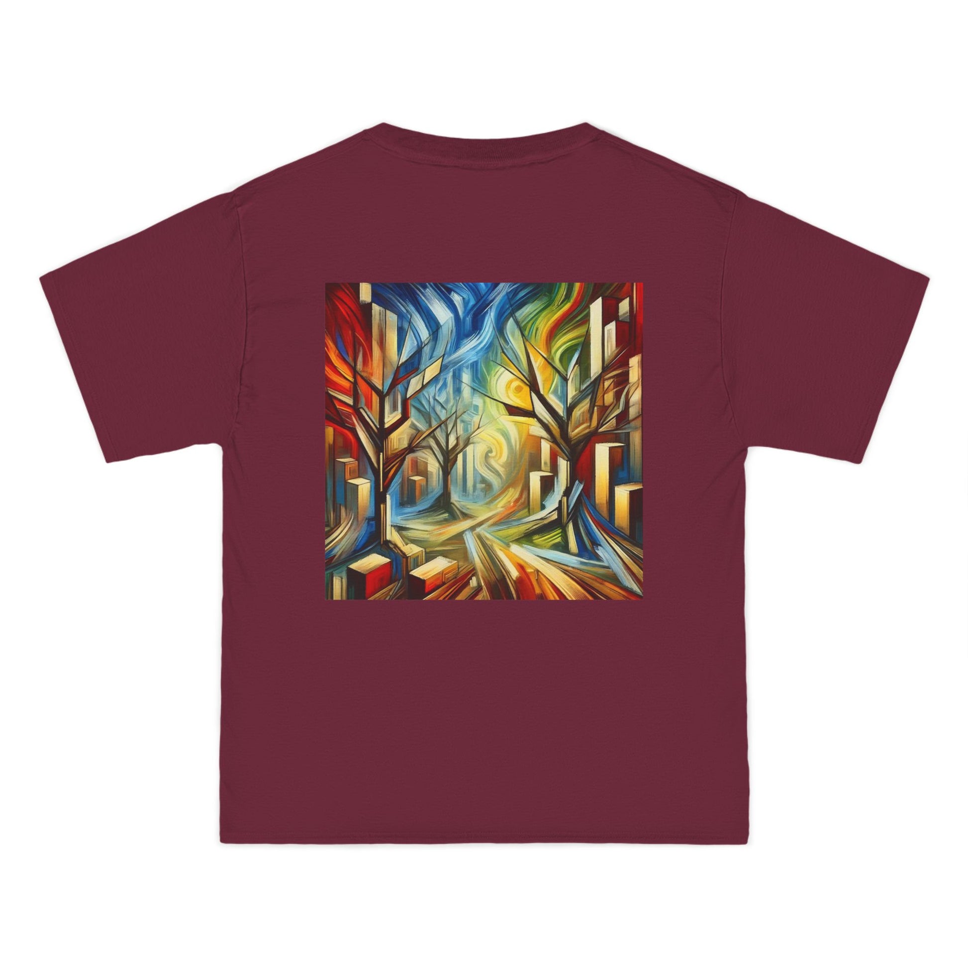 Step into a symphony of the city and the wilderness with our Fragmented Trees: Futurist Expressionism tee! This unique wearable art piece, crafted by advanced AI technology, features bold, angular trees with sharp, geometric branches as they stand tall against the backdrop of a chaotic cityscape. It's a design that's as complex and captivating as you are - a perfect blend of nature and the urban environment, just like the world we live in.