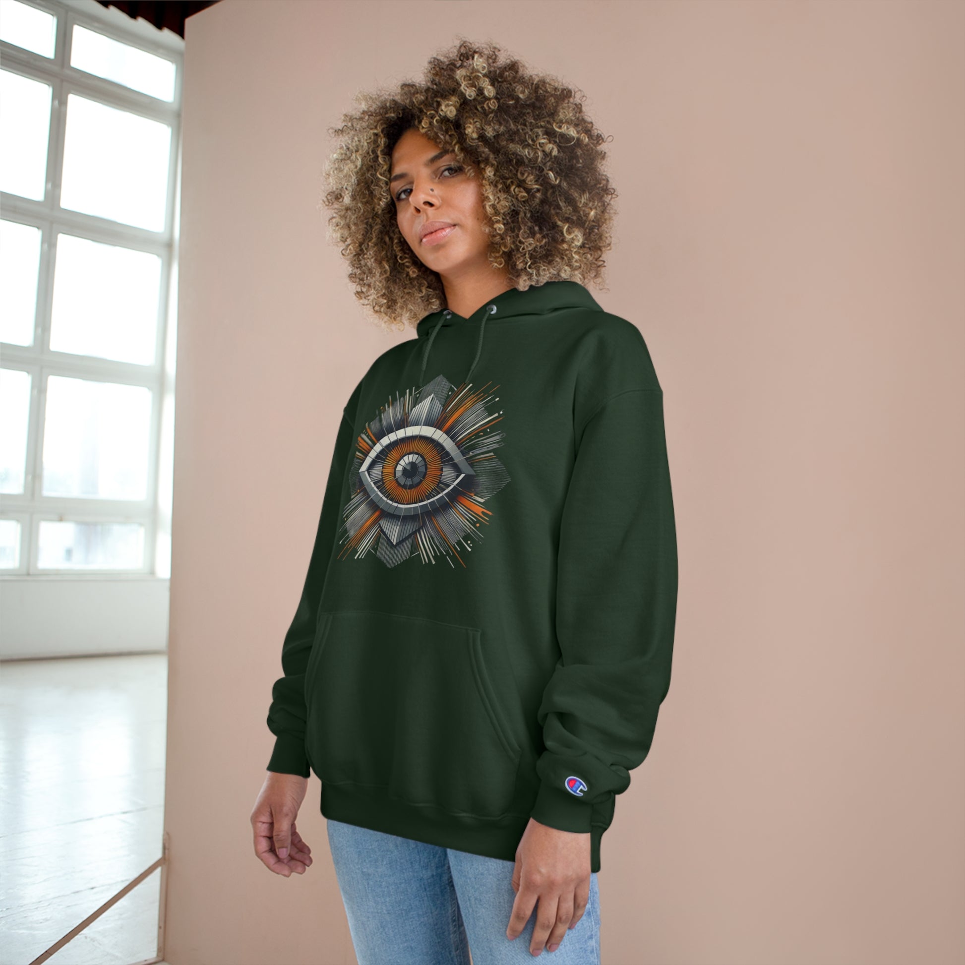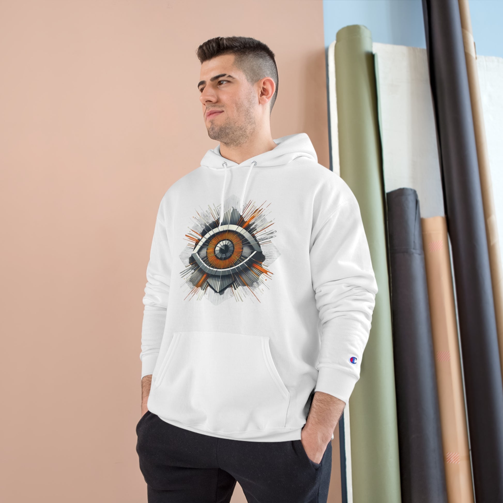 Step into the future and wear your world with our Futuristic Eye: Minimalist Geometric hoodie. This unique piece of wearable art combines the allure of the abstract with the precision of angular shapes and radiating lines. It's more than a hoodie; it's a statement.