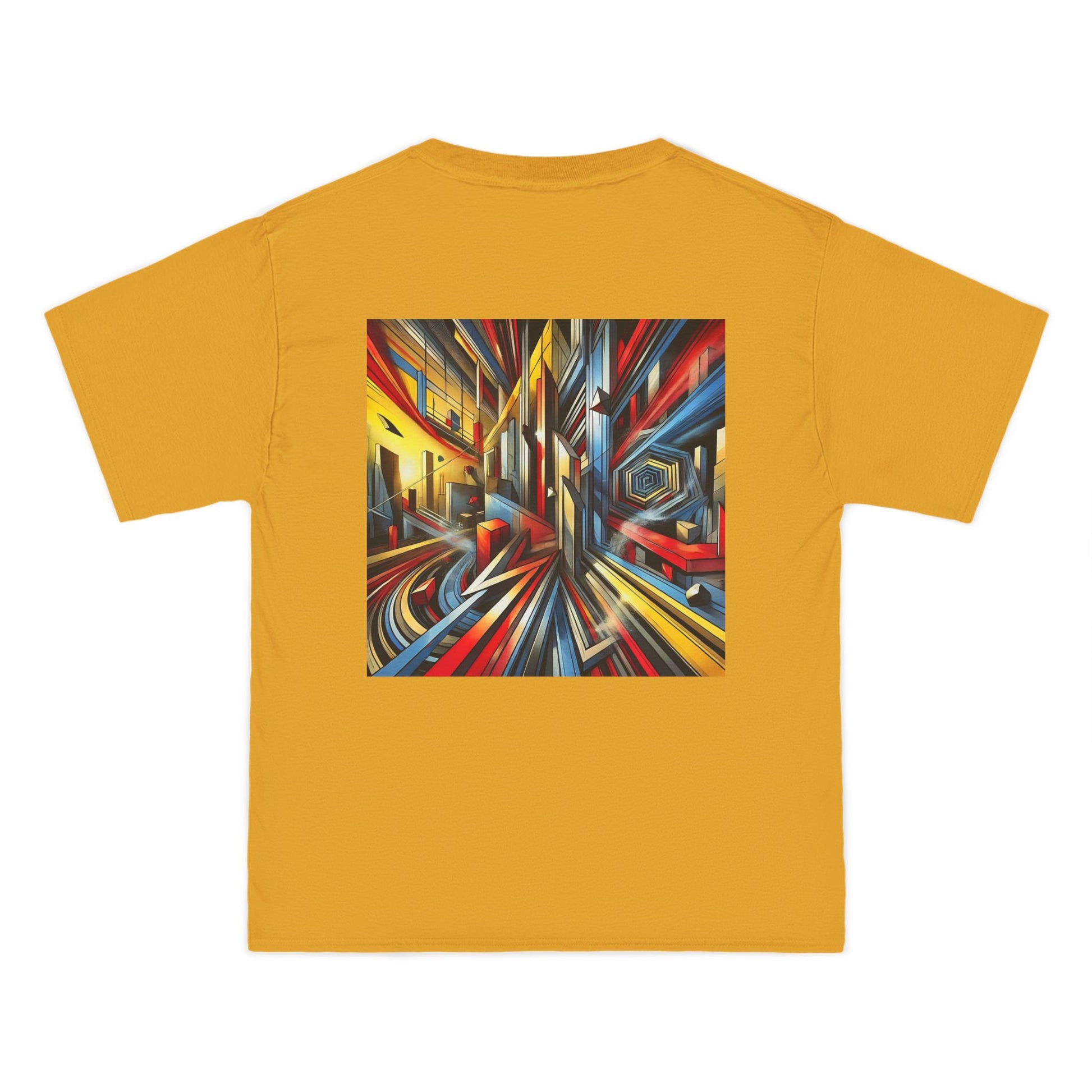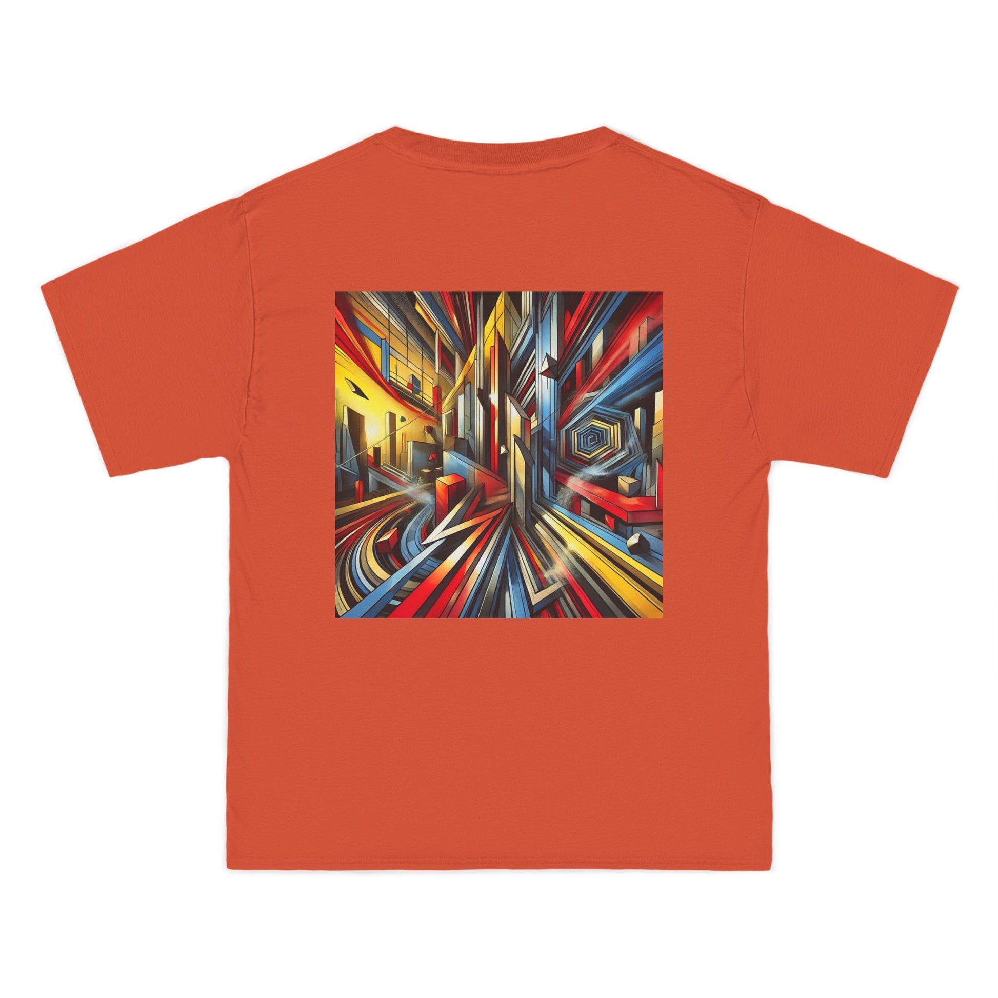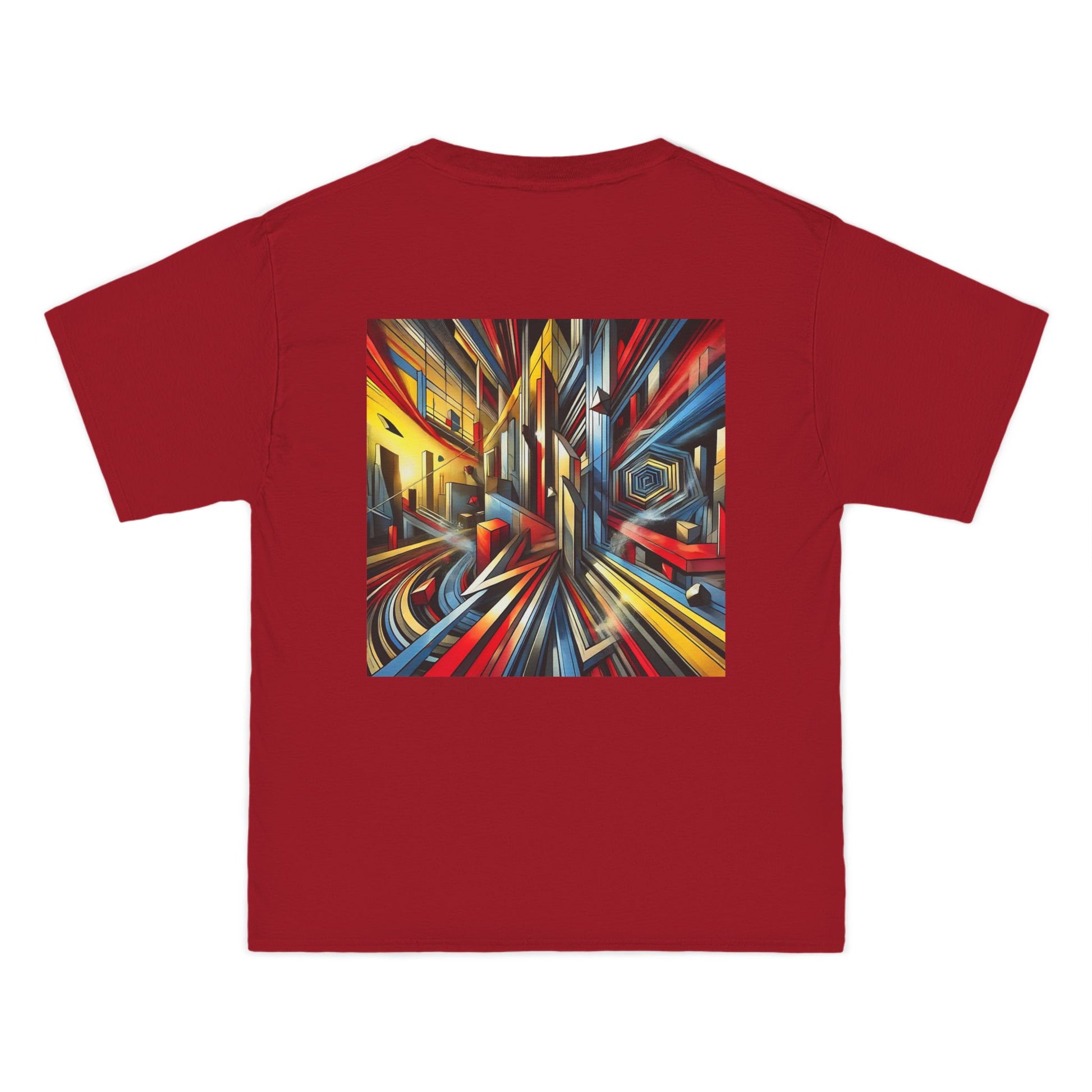Unleash the power of your imagination with our Geometric Chaos: Futurist Expressionism design. A flaring fusion of sharp, angular geometric shapes dancing with a vibrant cityscape, this print serves as a testament to the dynamic interaction between urban chaos and form. It's not just a piece of clothing, it's wearable art that allows you to 'Wear Your World' in your own unique way.